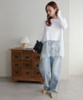 155cmスタッフ:ヒップがすっぽりと隠れるほどの着丈ですが、切り替え位置は腰あたりなので、レイヤードしてもメリハリのある雰囲気になります。トレンド感がありますが、シンプルなロングスリーブデザインなので、来年再来年と長年着まわしが楽しめそうです。