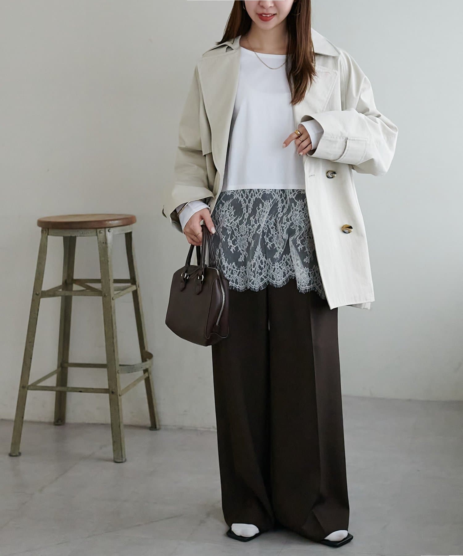 ・裾から覗く繊細で華やかなレースが、女性らしさをプラス。