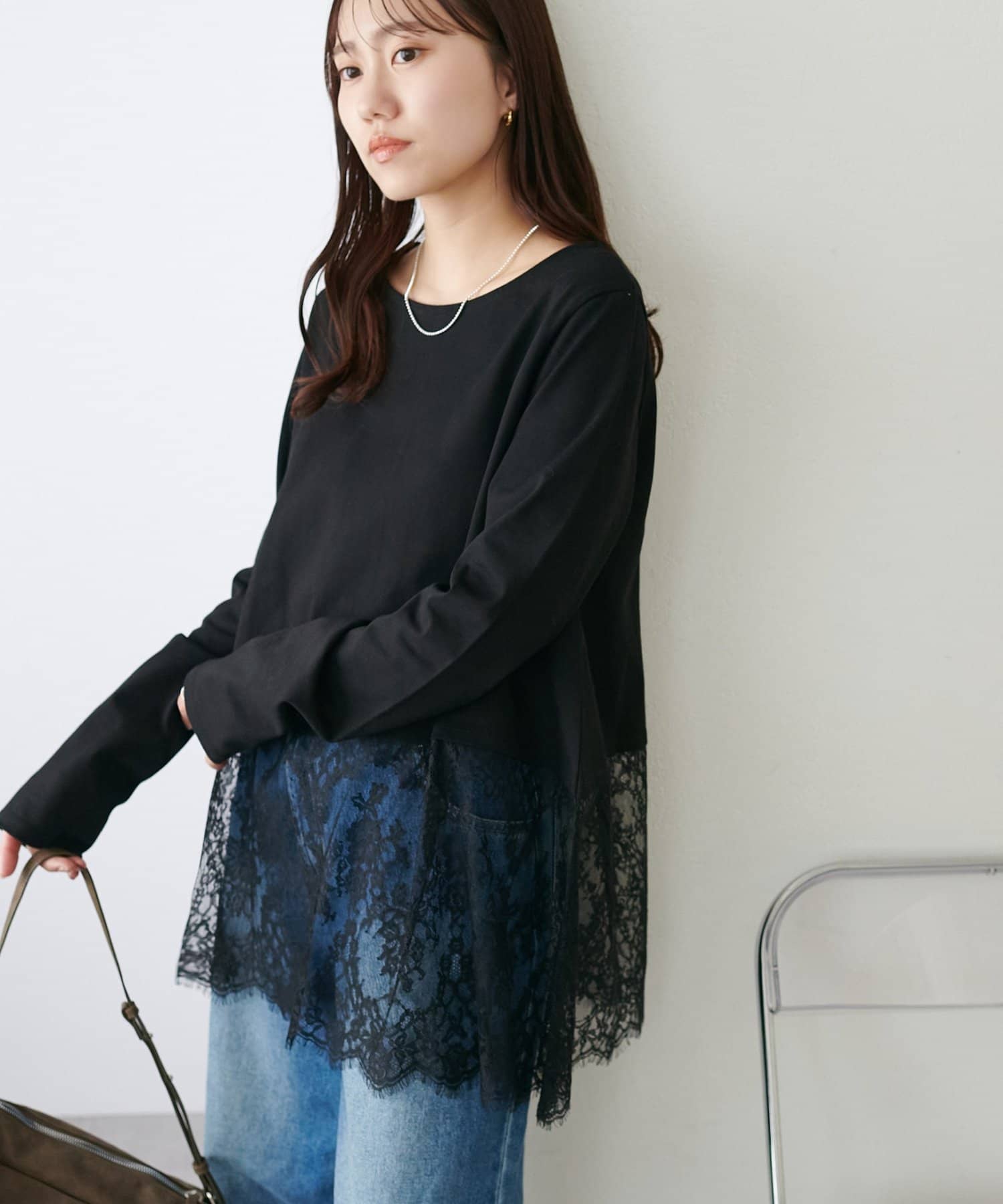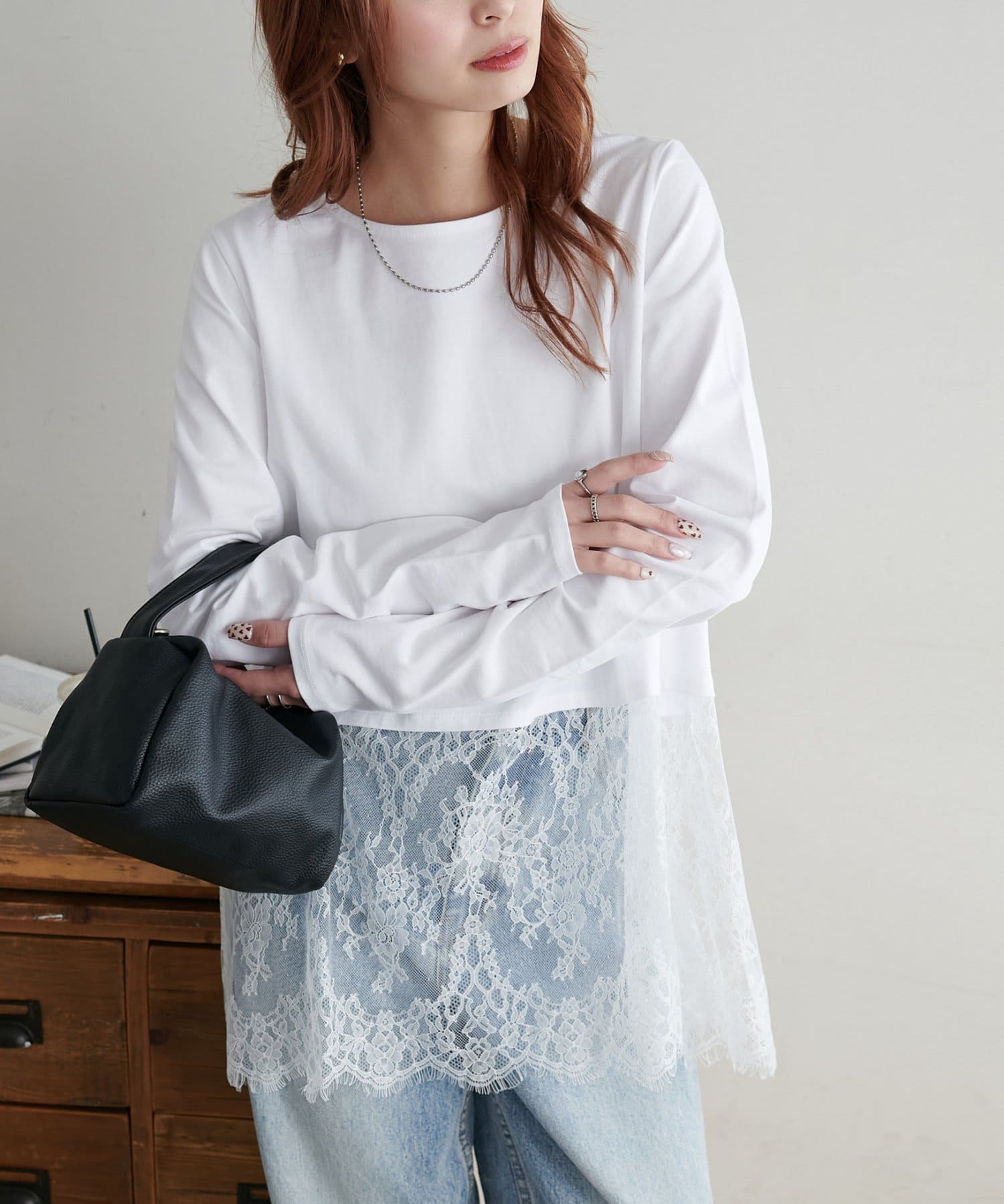 【トレンド/着回し力◎】裾レースロングスリーブ