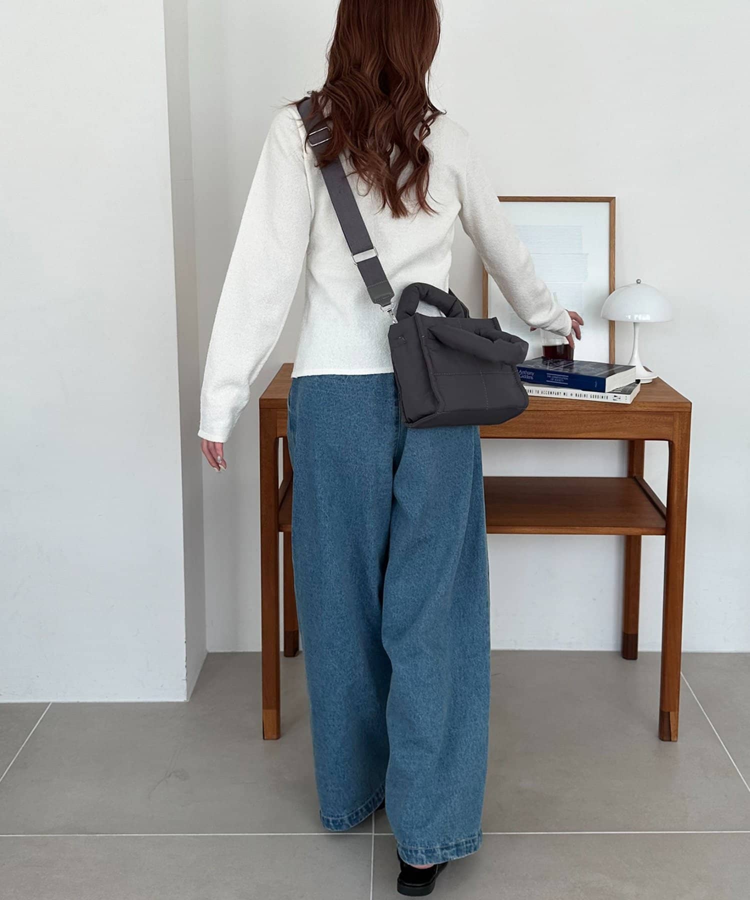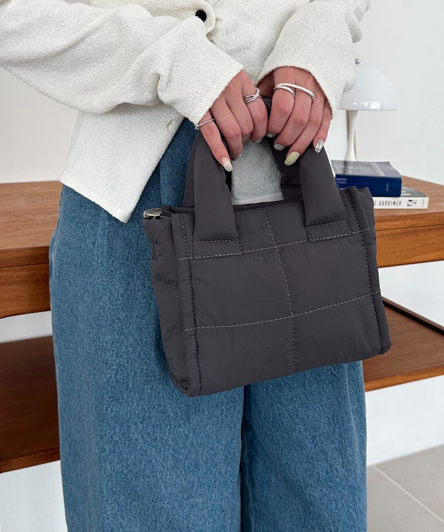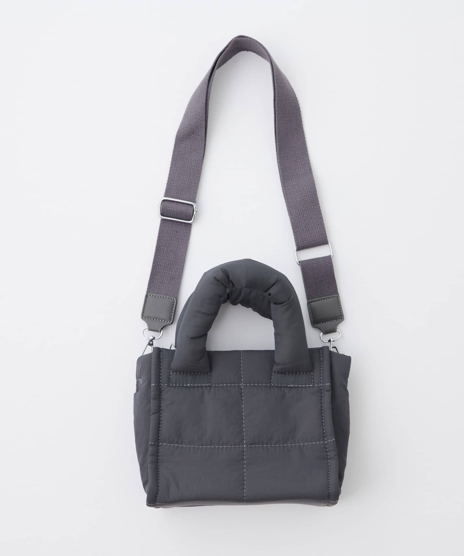 ふっくらとした立体的なキルティング素材が、コーディネートに柔らかな印象とアクセントを加えます。ハンドバッグとしても使える短い持ち手と、取り外し可能なショルダーストラップが付いた便利な2WAY仕様です。コンパクトながら、マチ8cmとしっかりとしたマチがあるため見た目以上の収納力◎普段使いはもちろん、身軽に動きたい旅行のサブバッグや、アクティブなレジャーシーンにも最適です♪