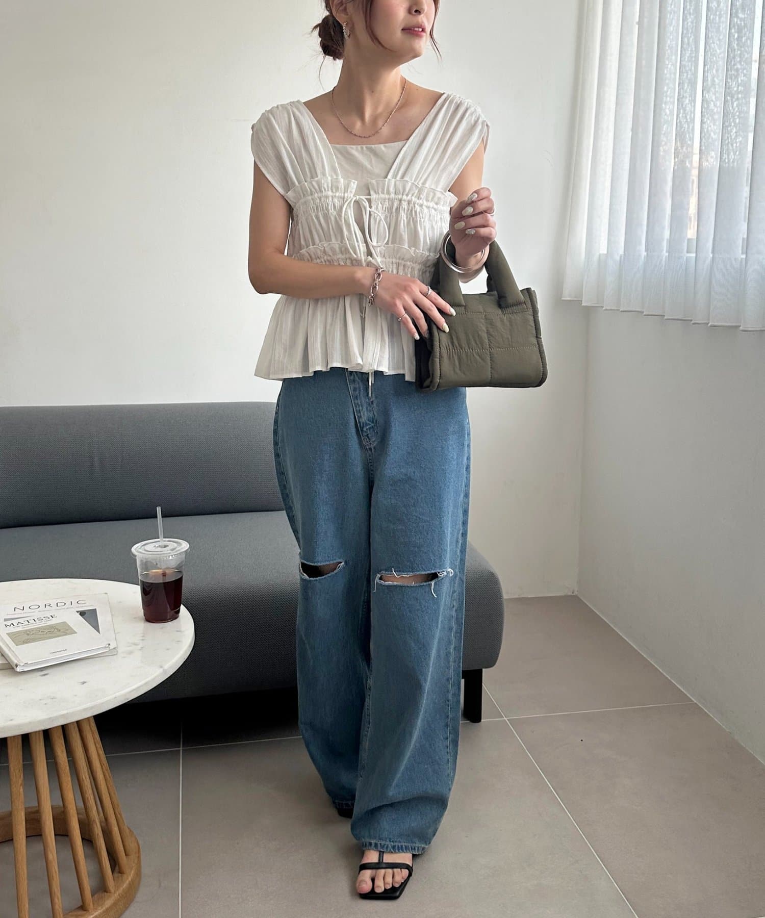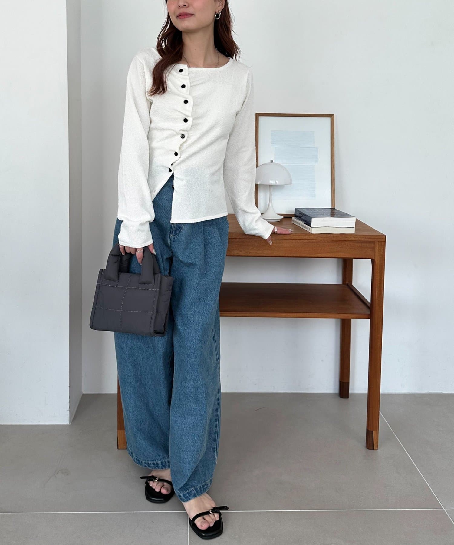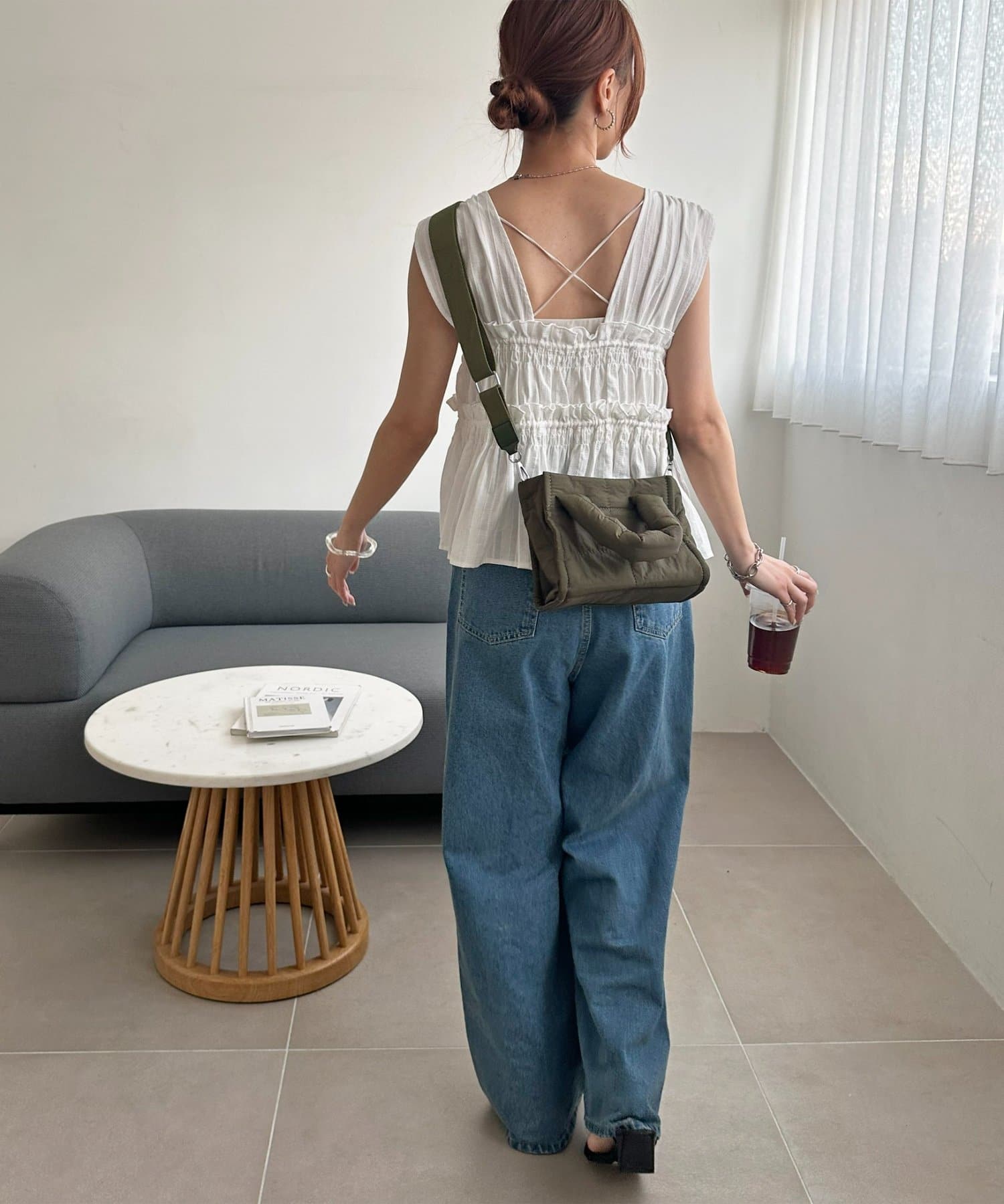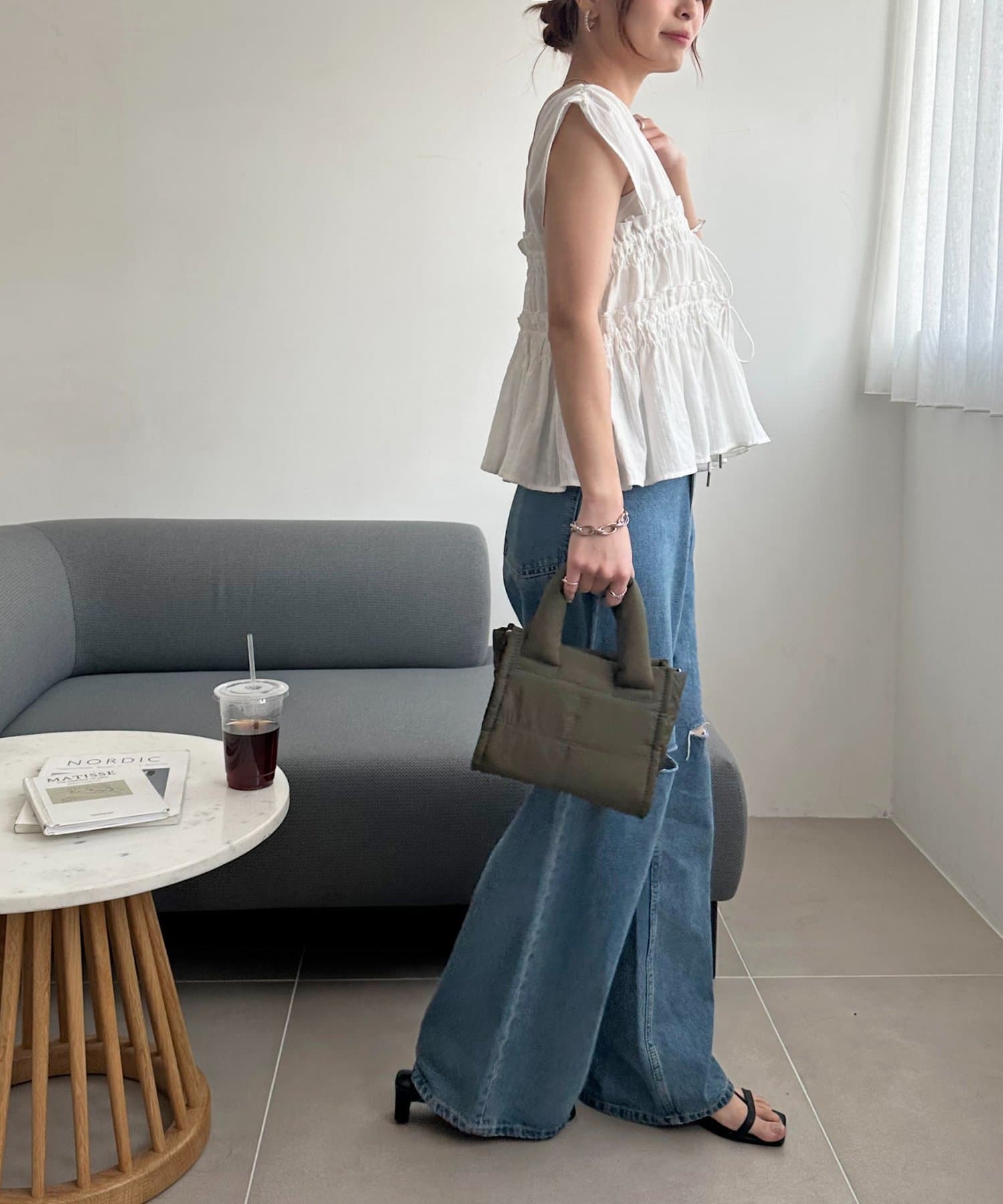 ふっくらとした立体的なキルティング素材が、コーディネートに柔らかな印象とアクセントを加えます。ハンドバッグとしても使える短い持ち手と、取り外し可能なショルダーストラップが付いた便利な2WAY仕様です。コンパクトながら、マチ8cmとしっかりとしたマチがあるため見た目以上の収納力◎普段使いはもちろん、身軽に動きたい旅行のサブバッグや、アクティブなレジャーシーンにも最適です♪