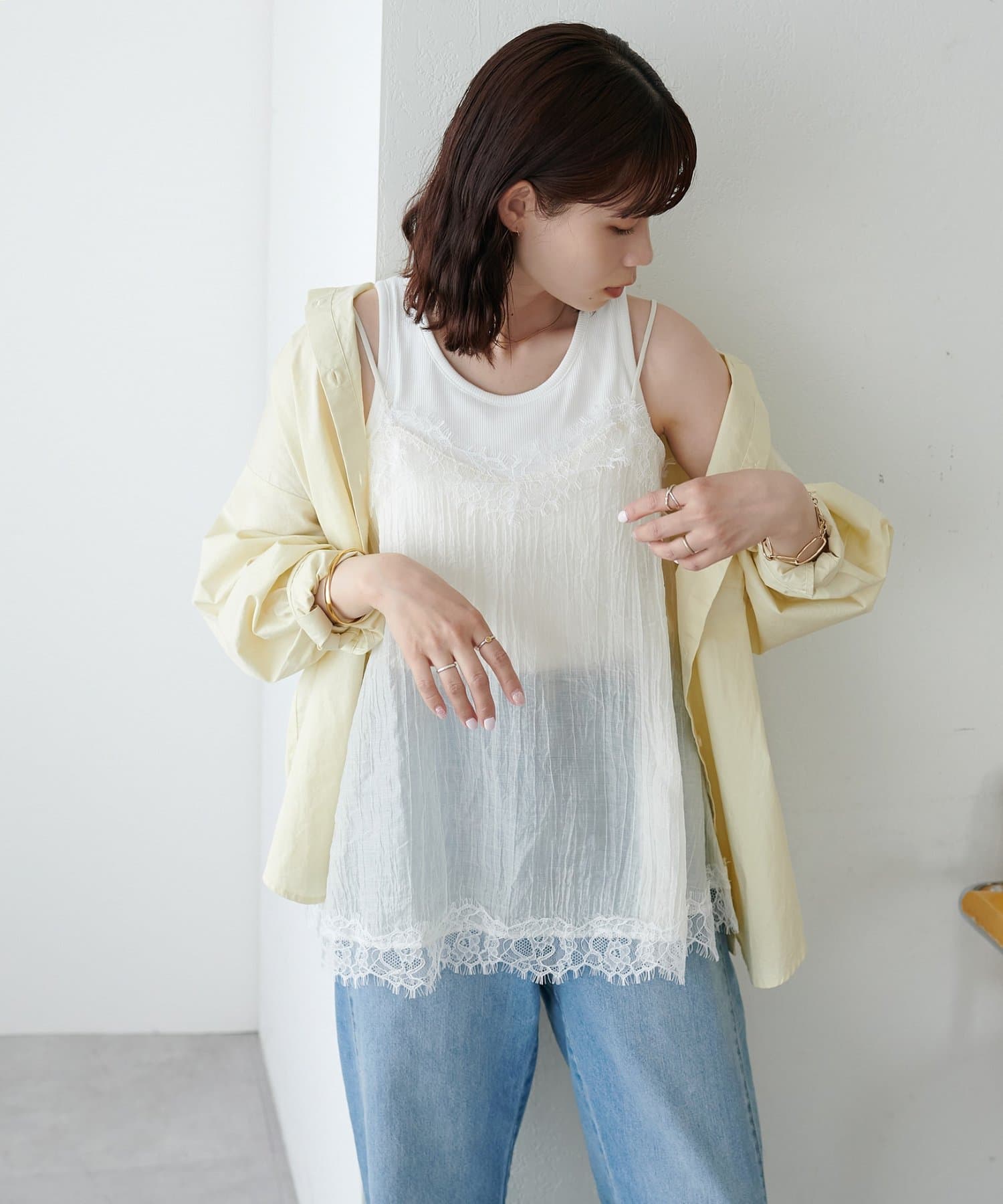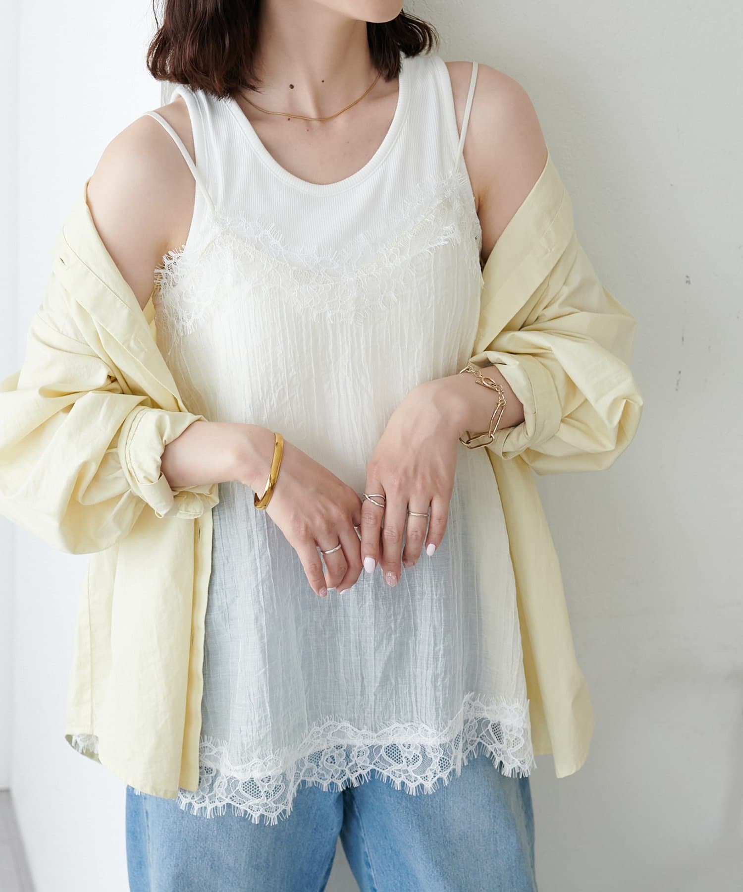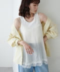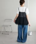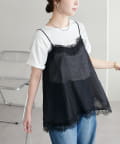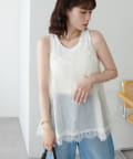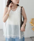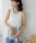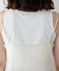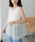 ・リブ素材のタンクトップに、軽やかなシアー素材を重ねたドッキングデザイン。一枚で凝ったレイヤードスタイルが完成◎