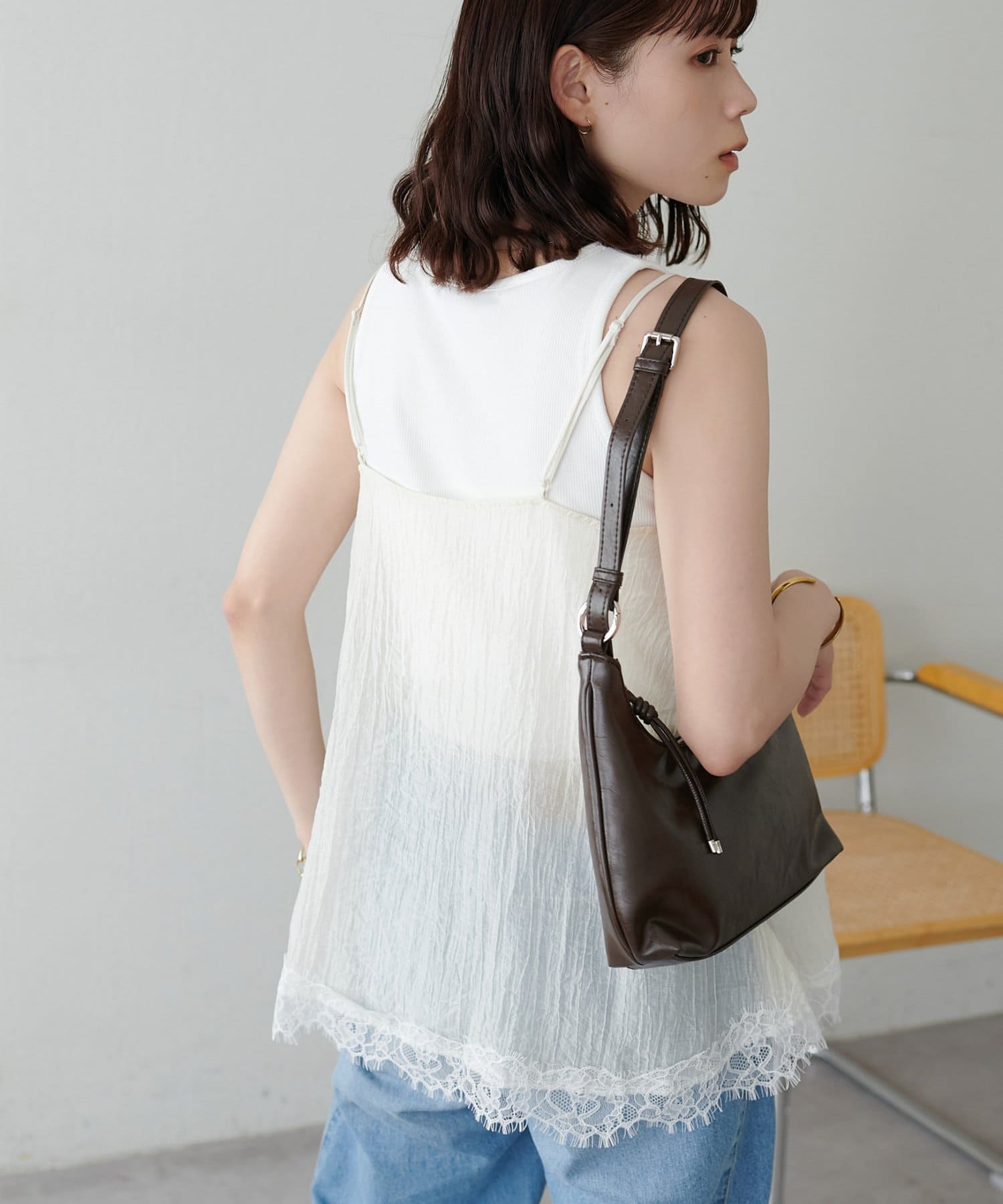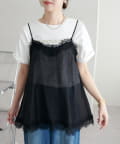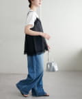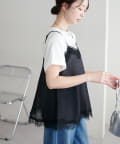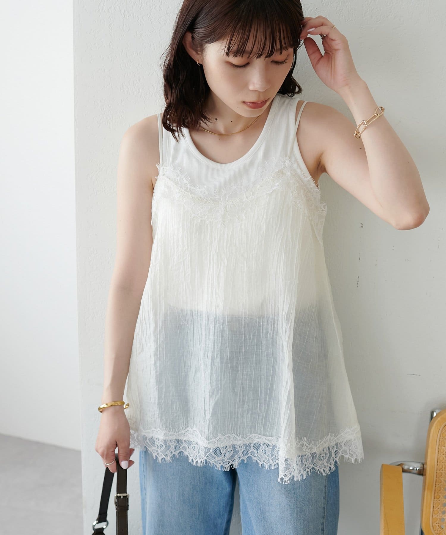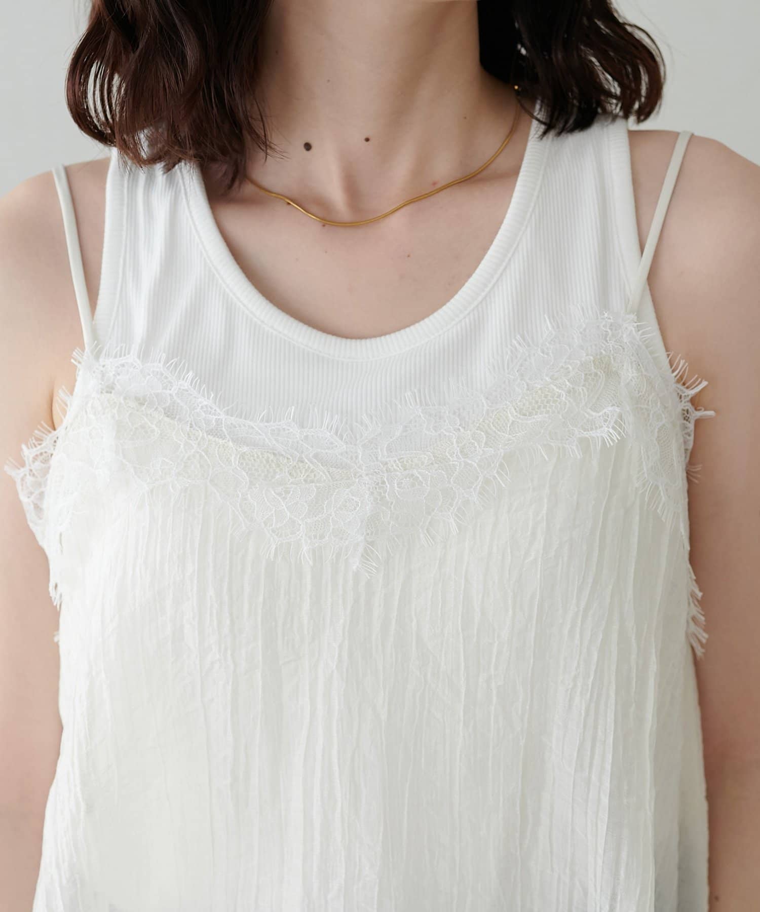 ・リブ素材のタンクトップに、軽やかなシアー素材を重ねたドッキングデザイン。一枚で凝ったレイヤードスタイルが完成◎