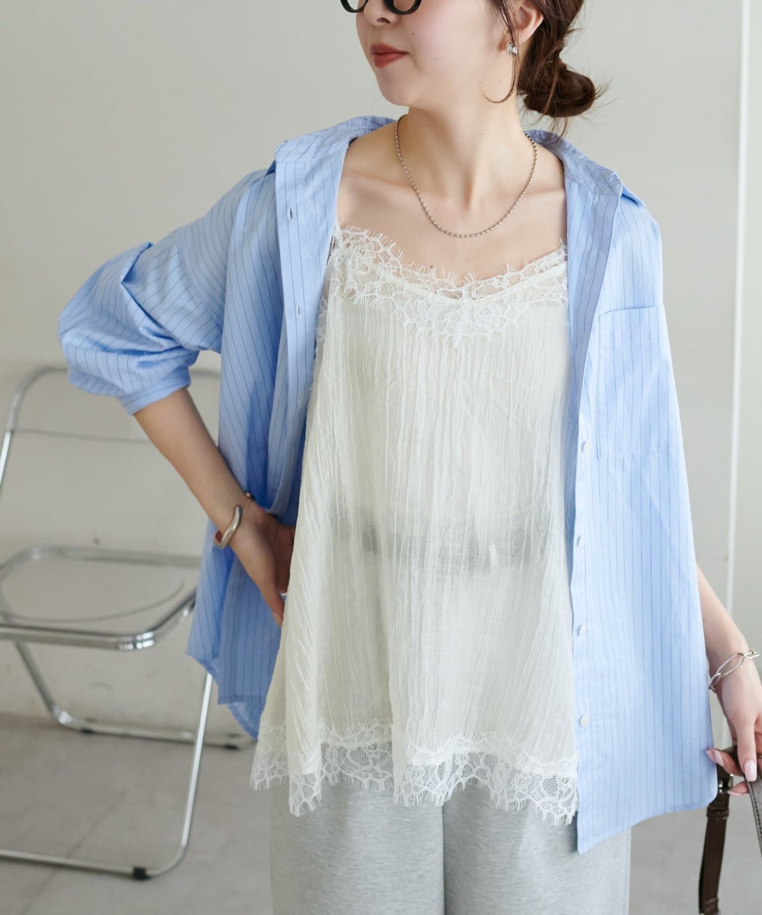 ・シアーシャツやカーディガンを軽く羽織り、フレアスカートやプリーツスカートと合わせれば、上品でフェミニンなコーディネートが完成◎
