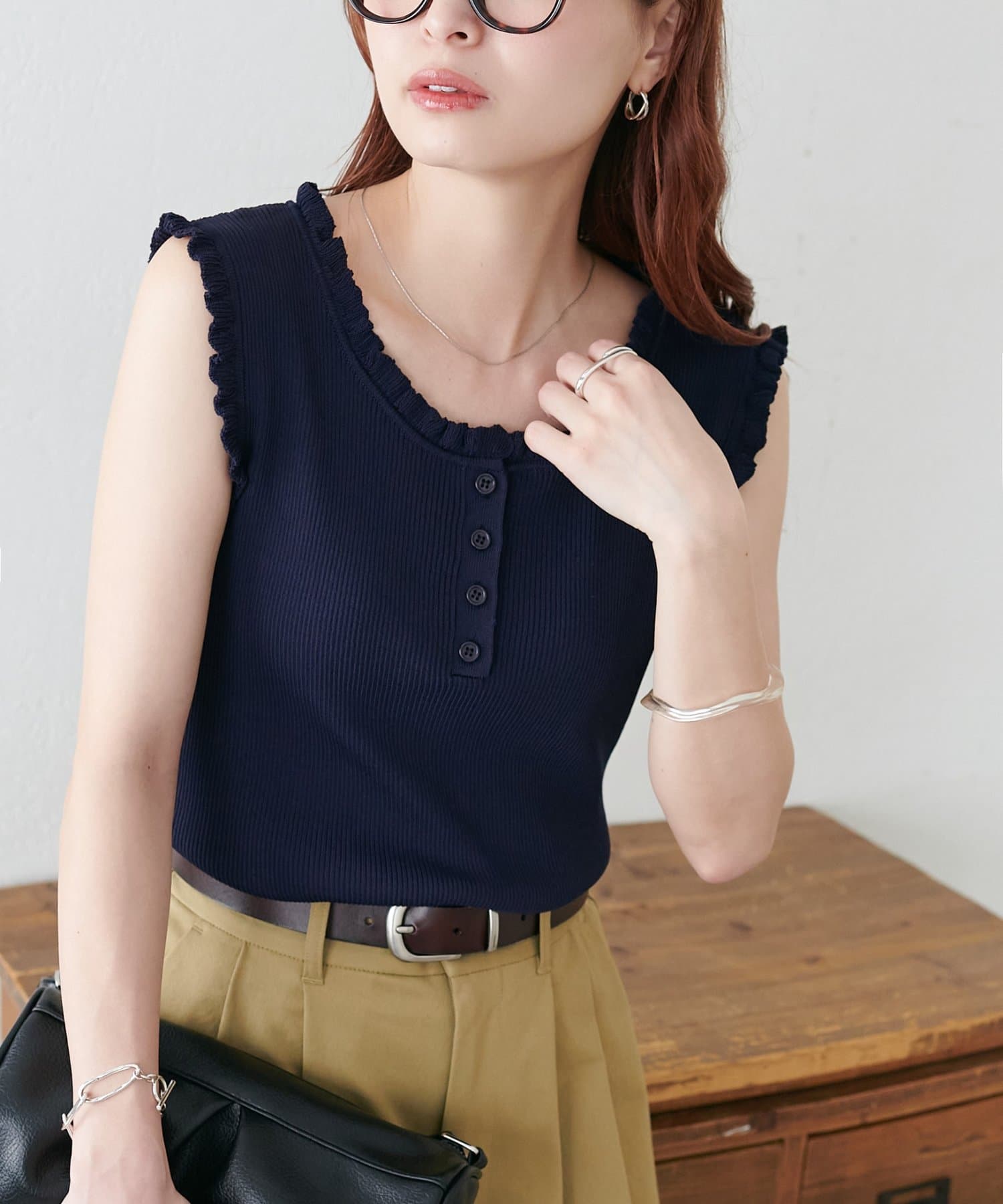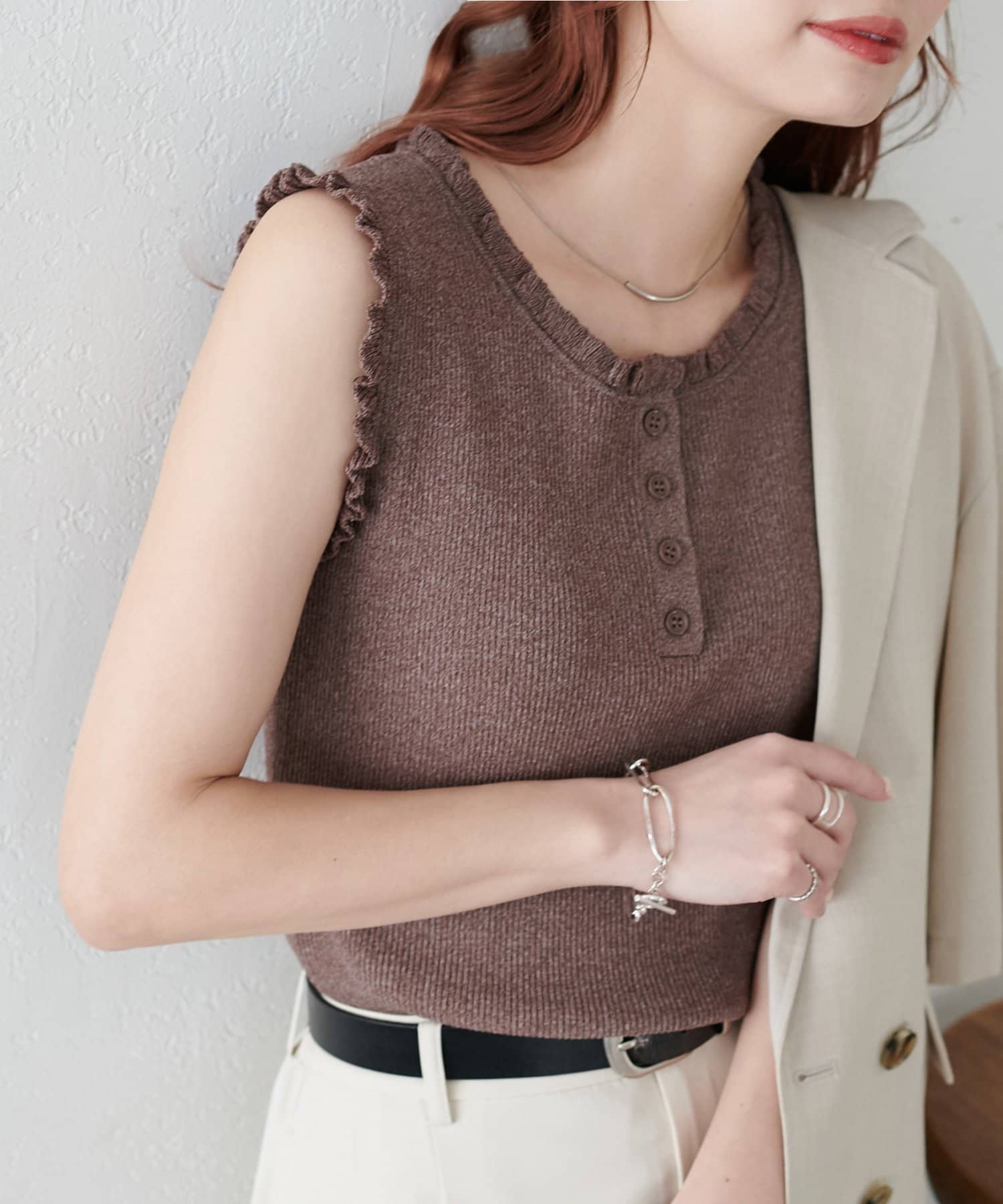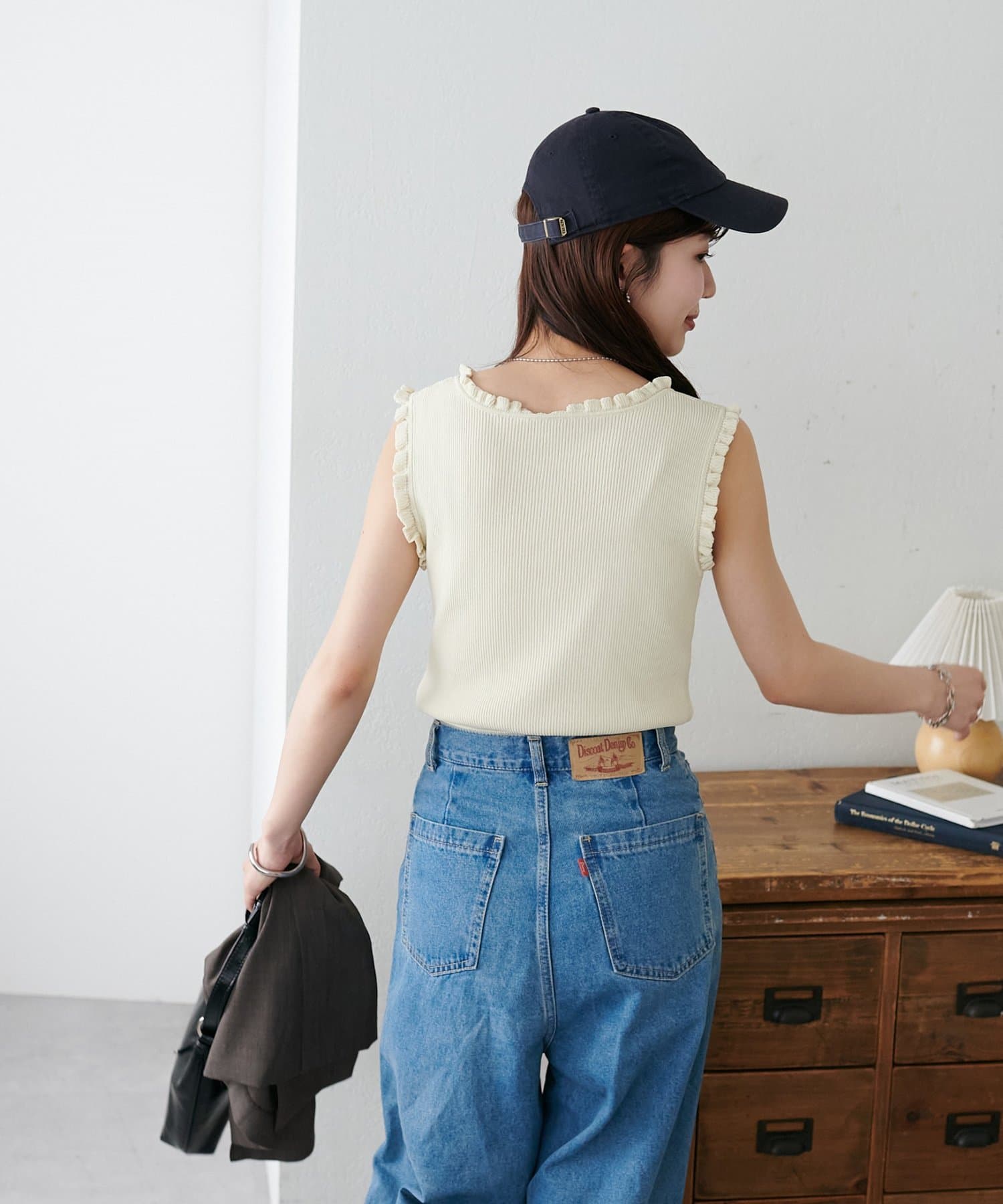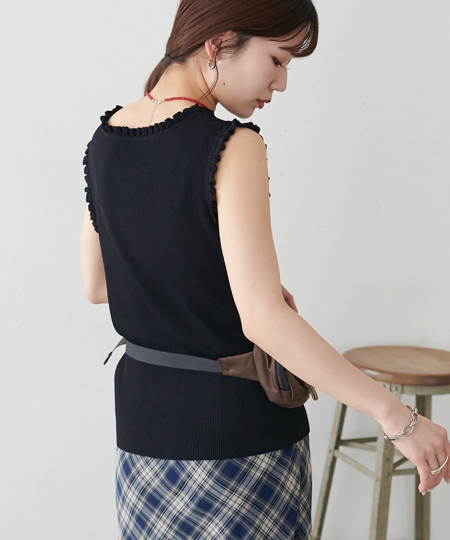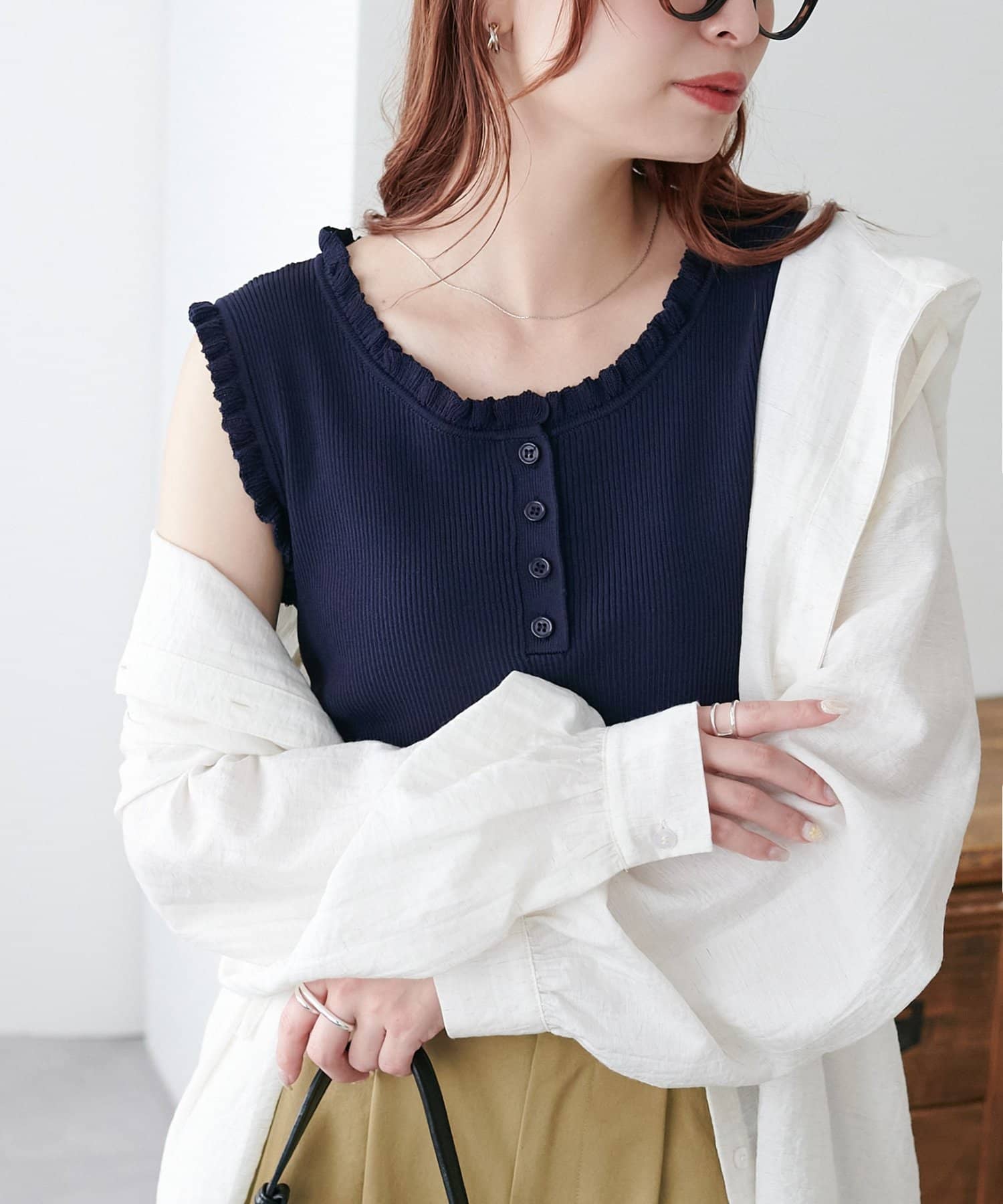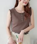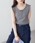 さりげないフリルが大人可愛い、着回し力抜群のタンクトップ