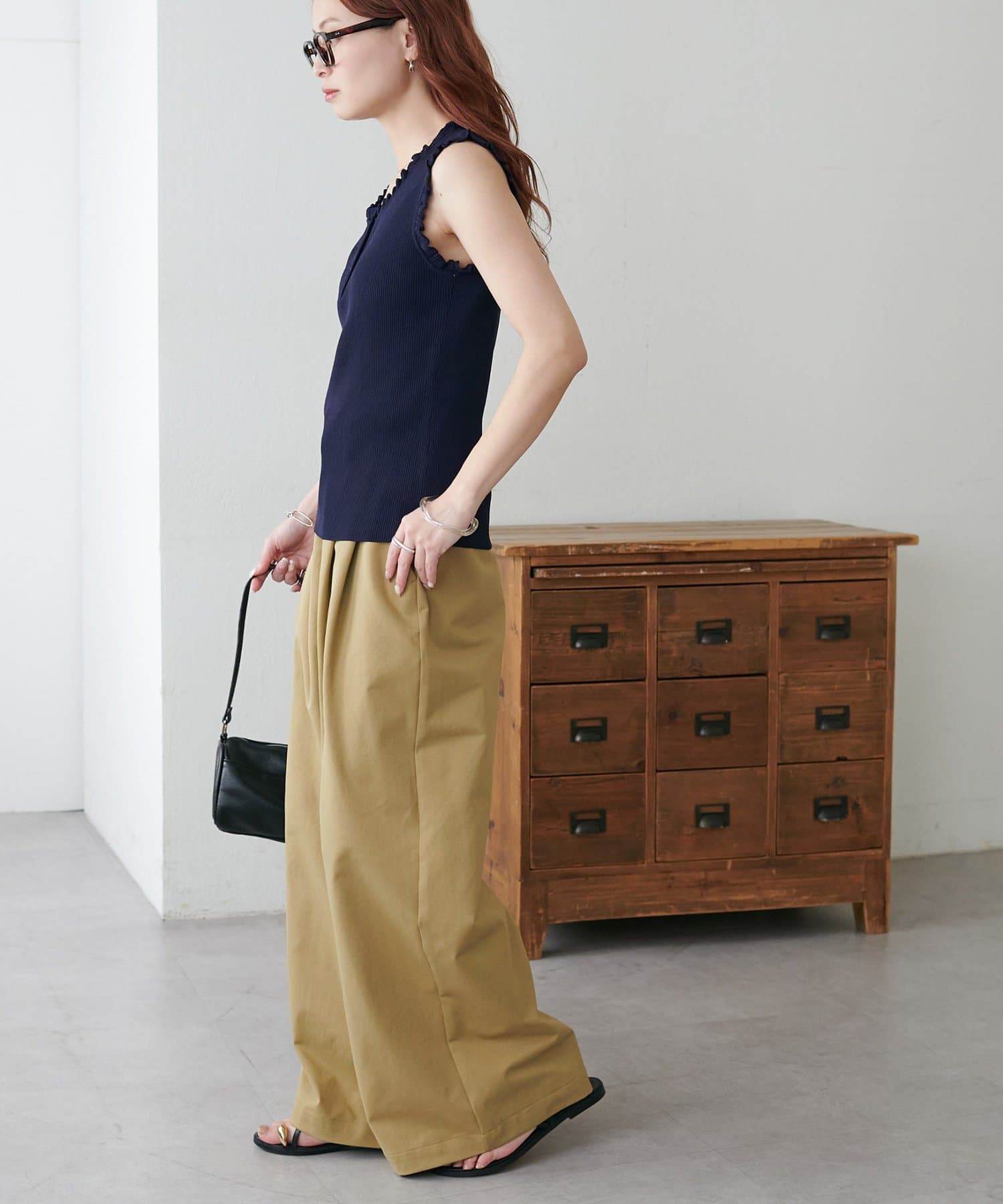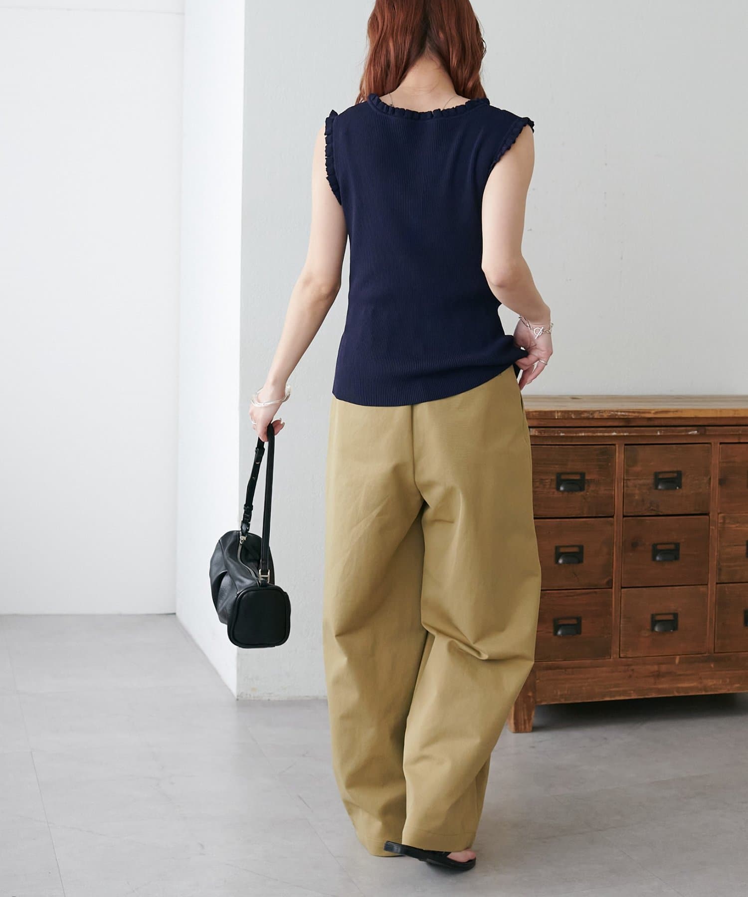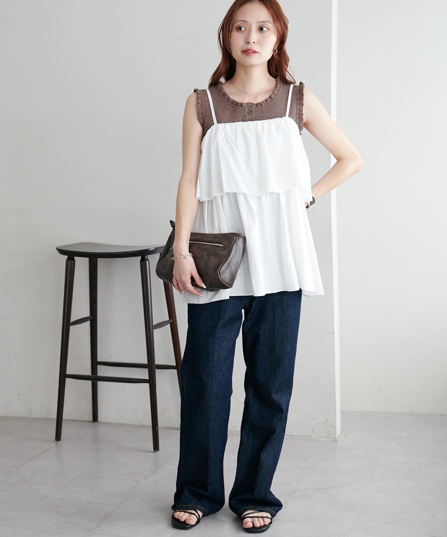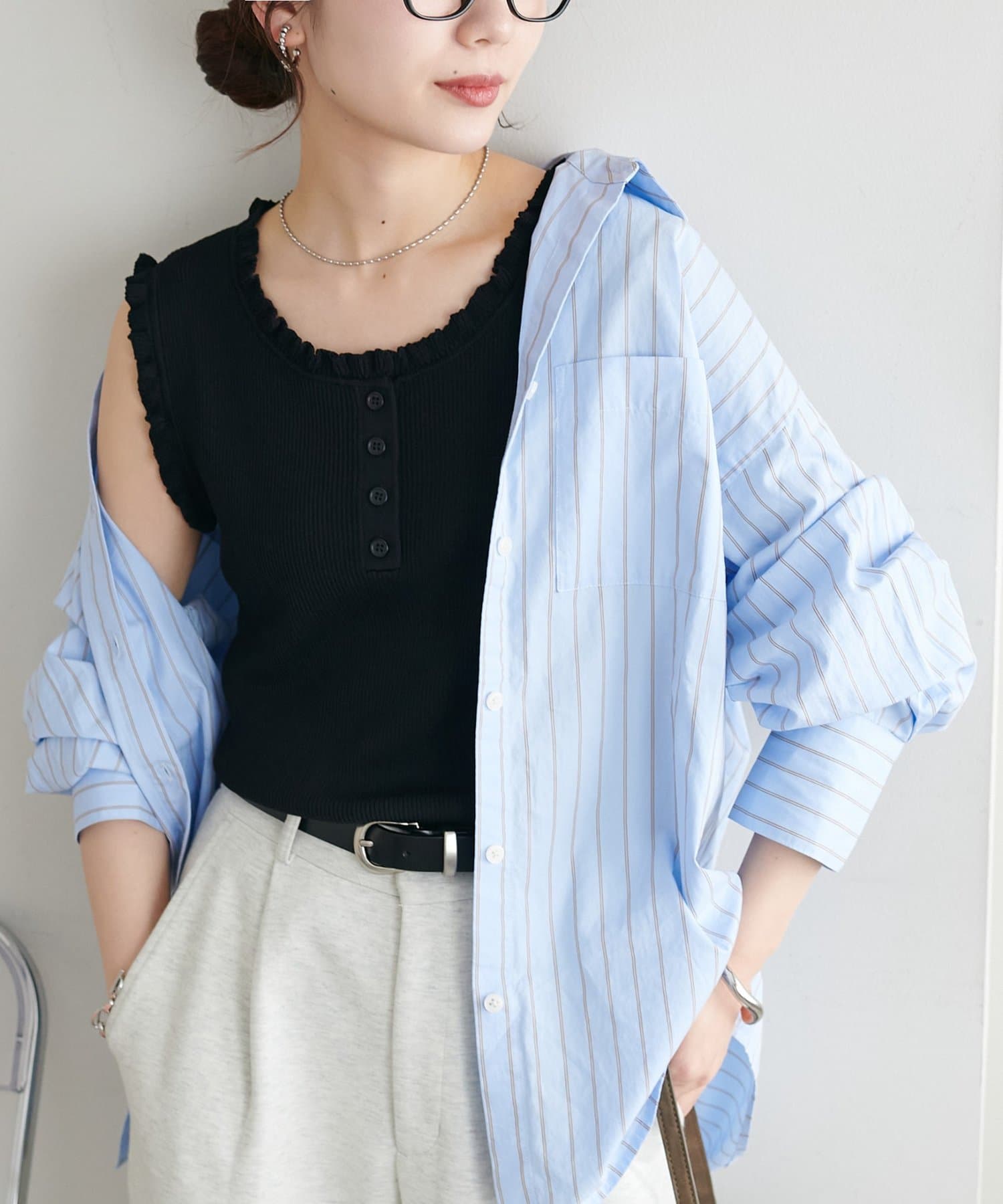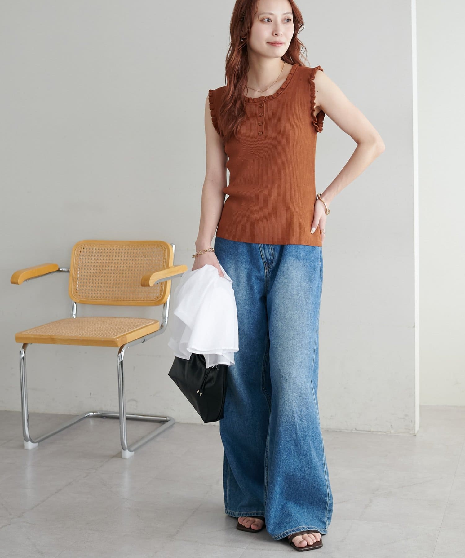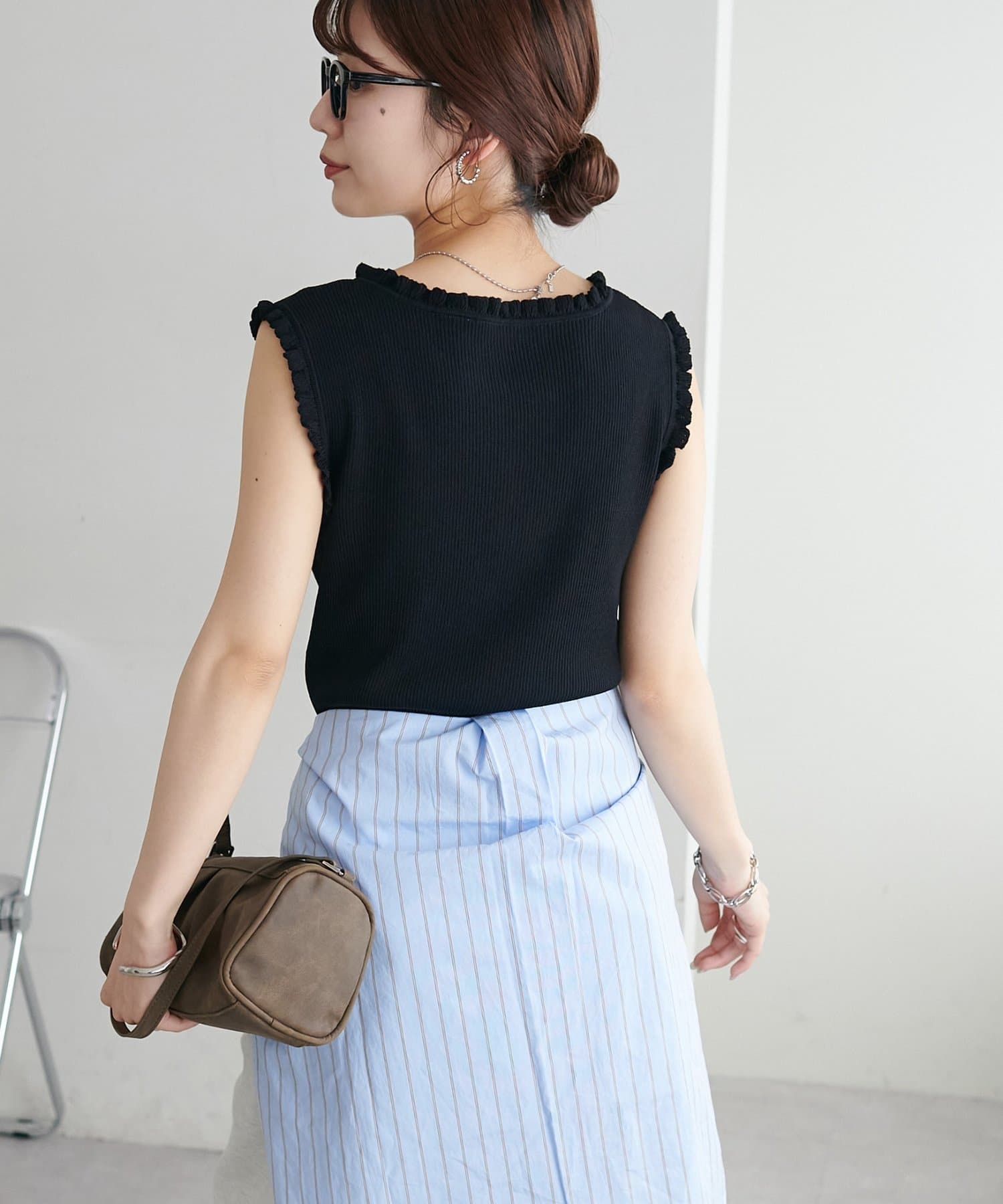 さりげないフリルが大人可愛い、着回し力抜群のタンクトップ