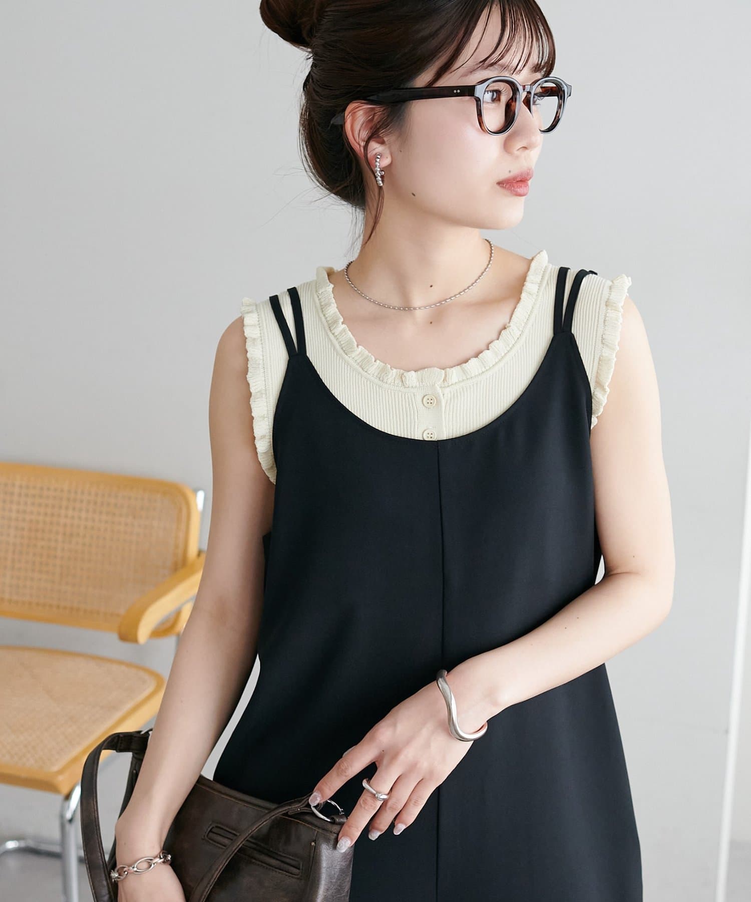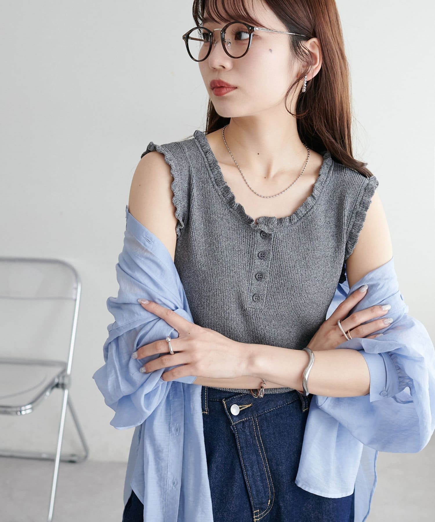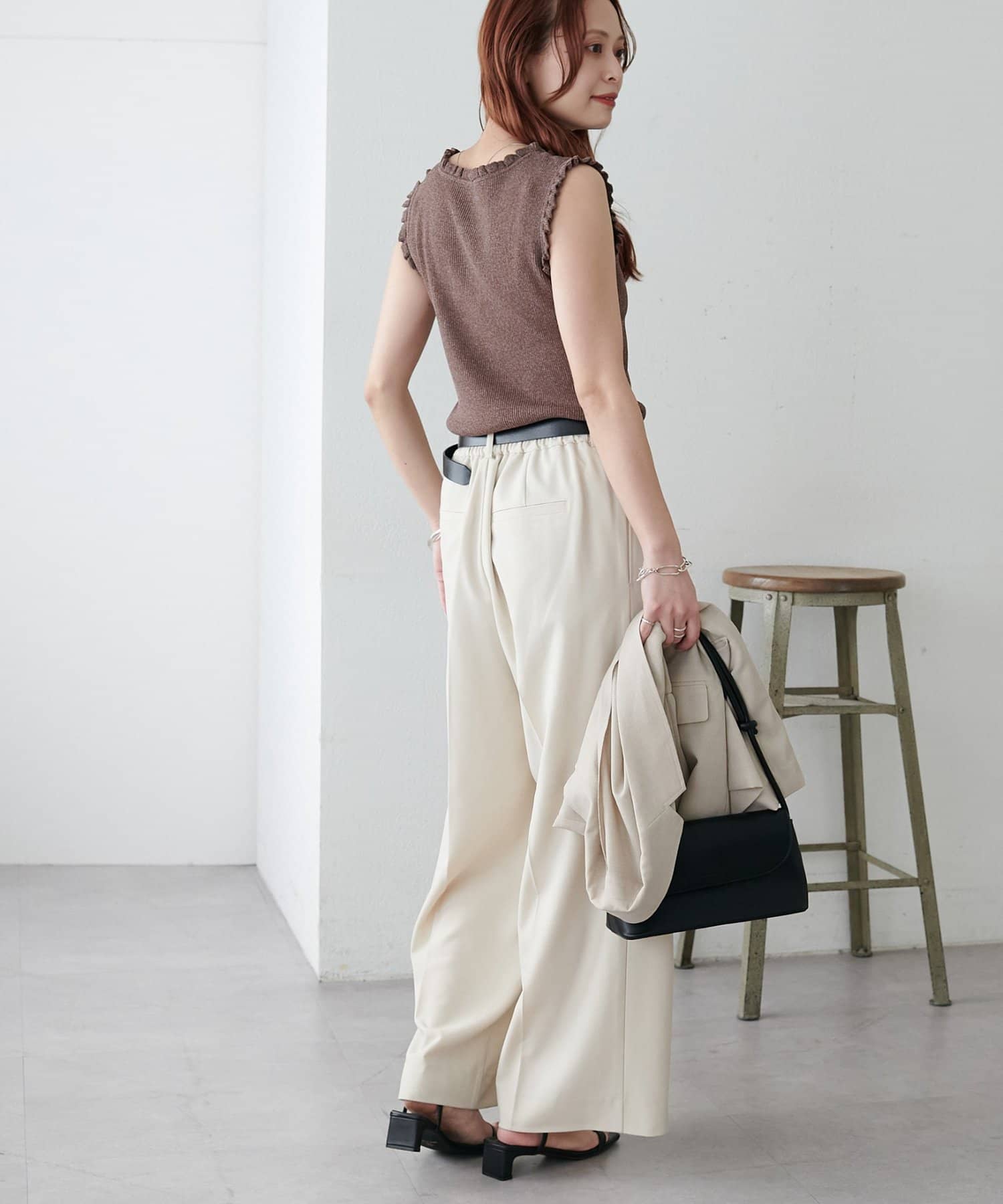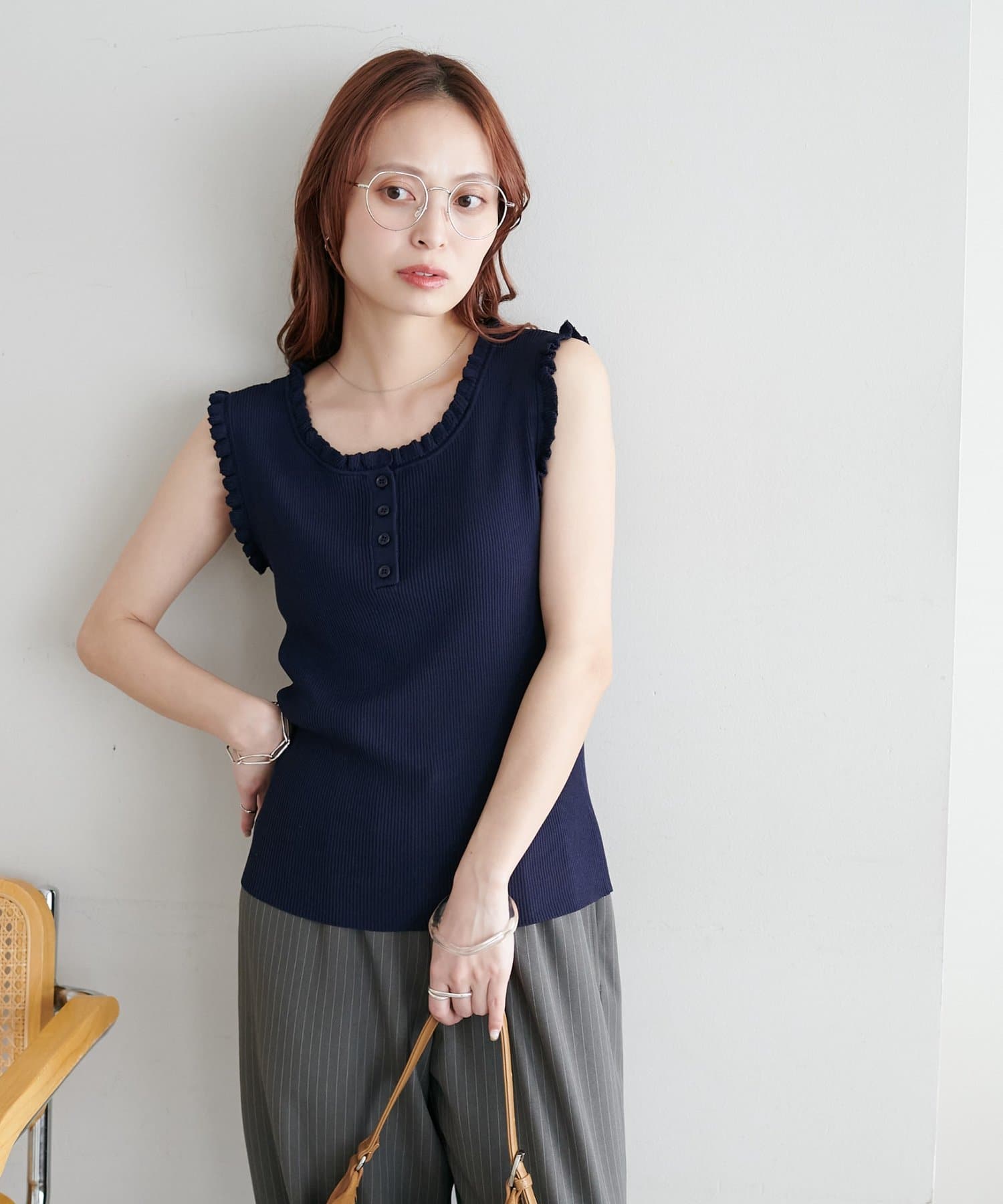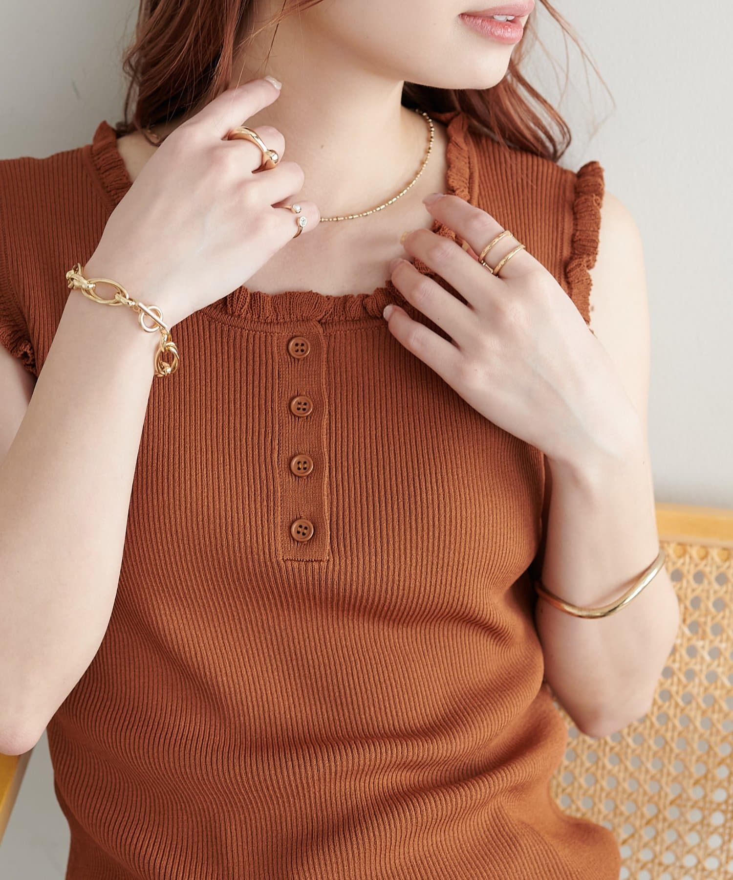 さりげないフリルが大人可愛い、着回し力抜群のタンクトップ