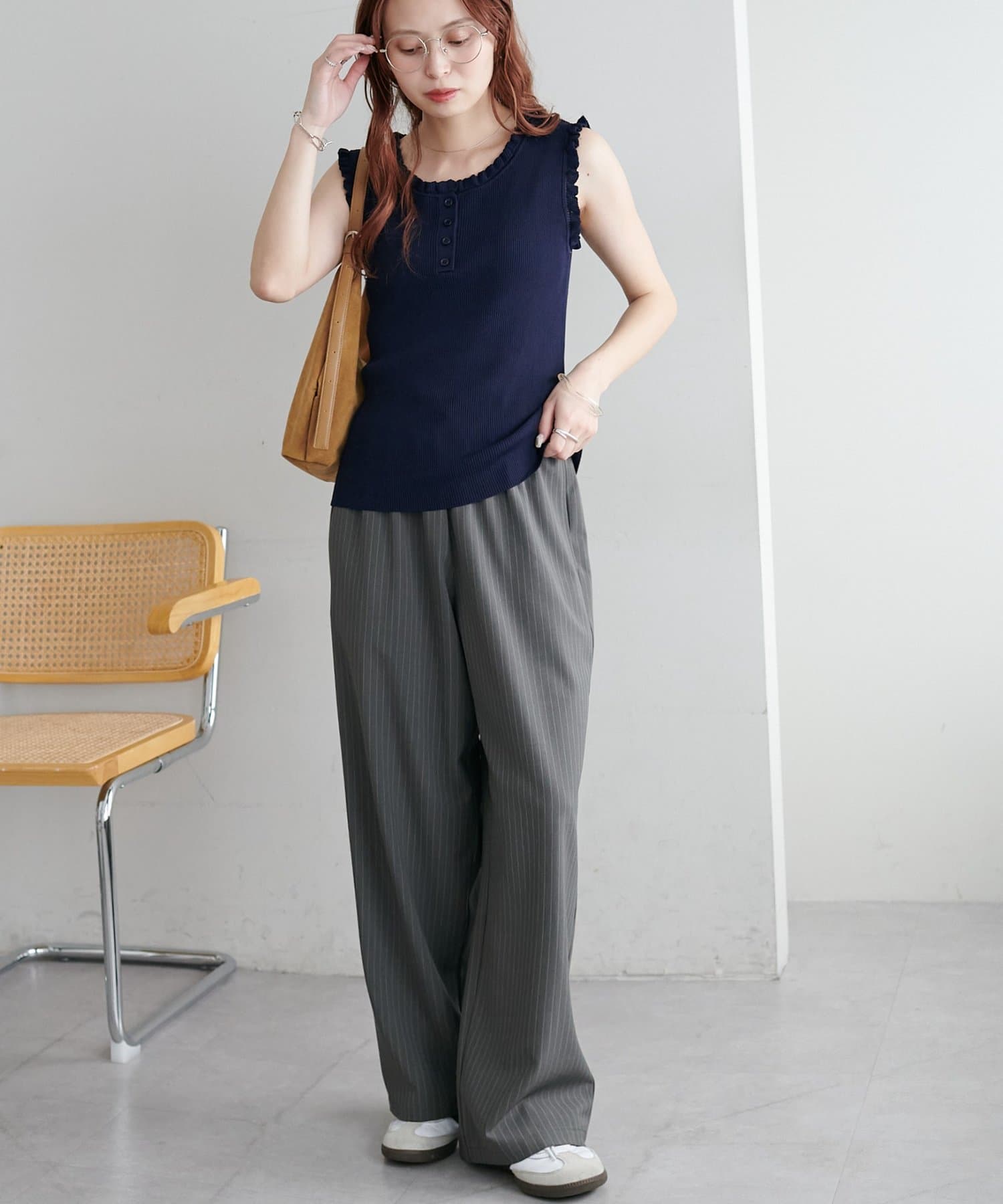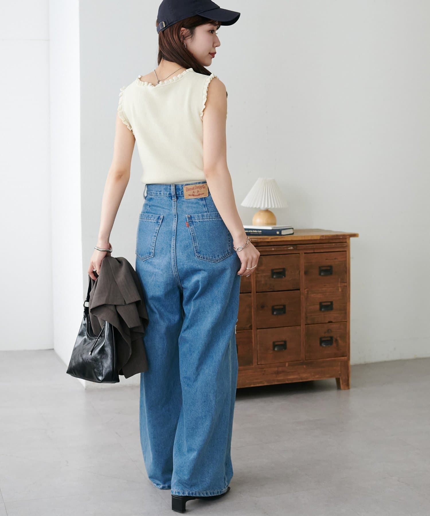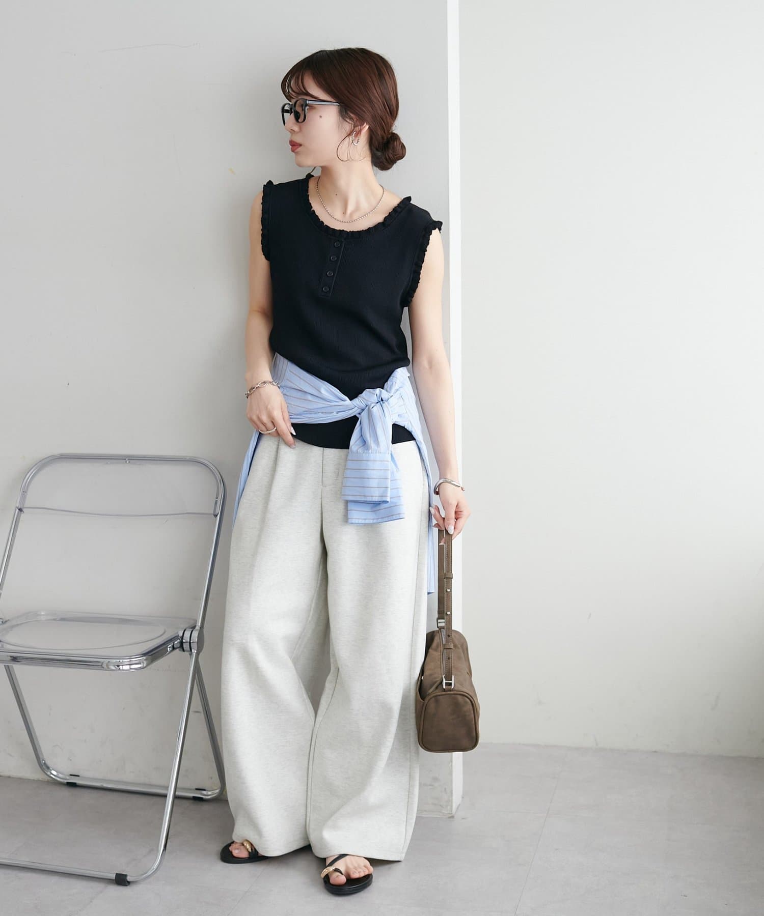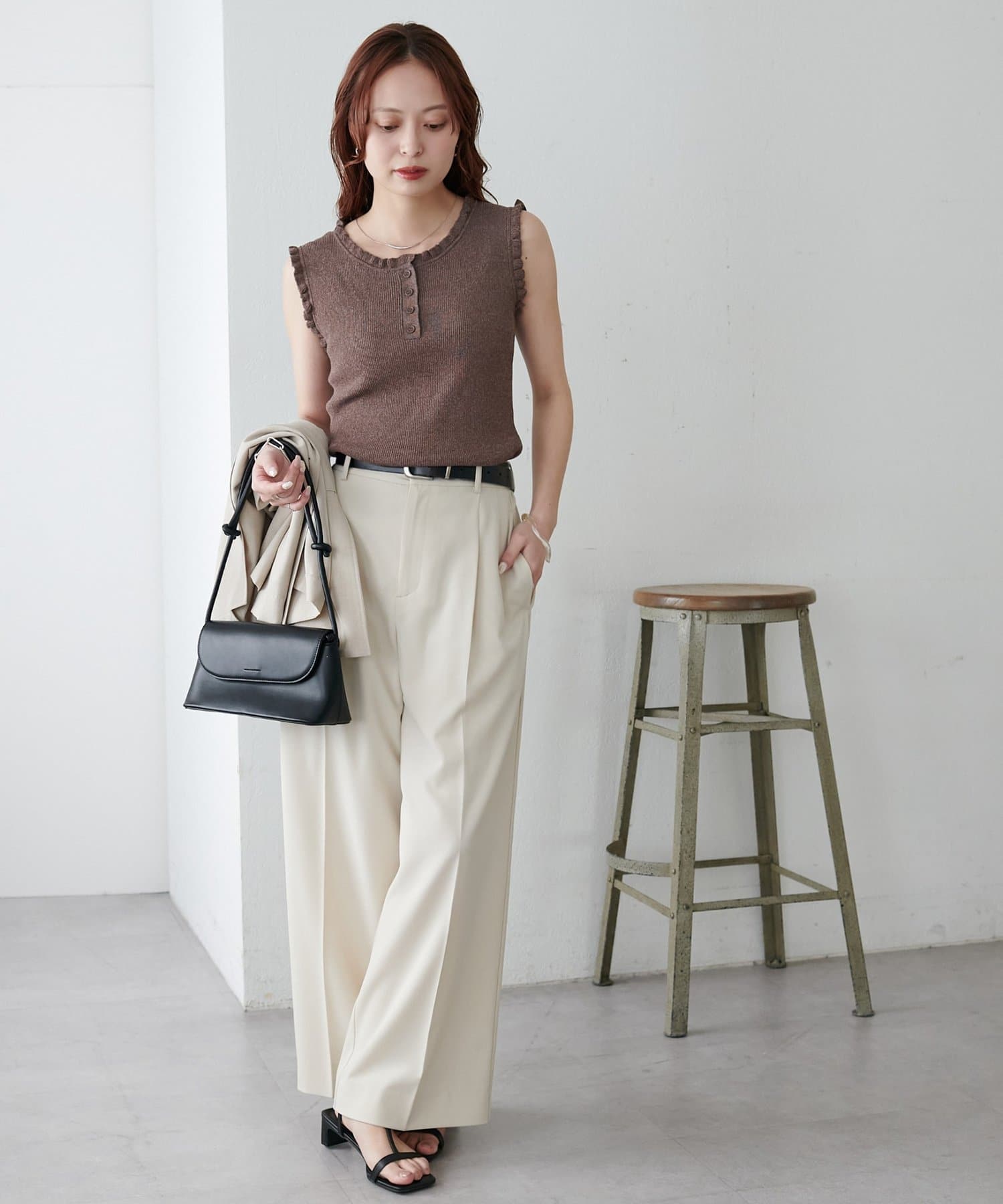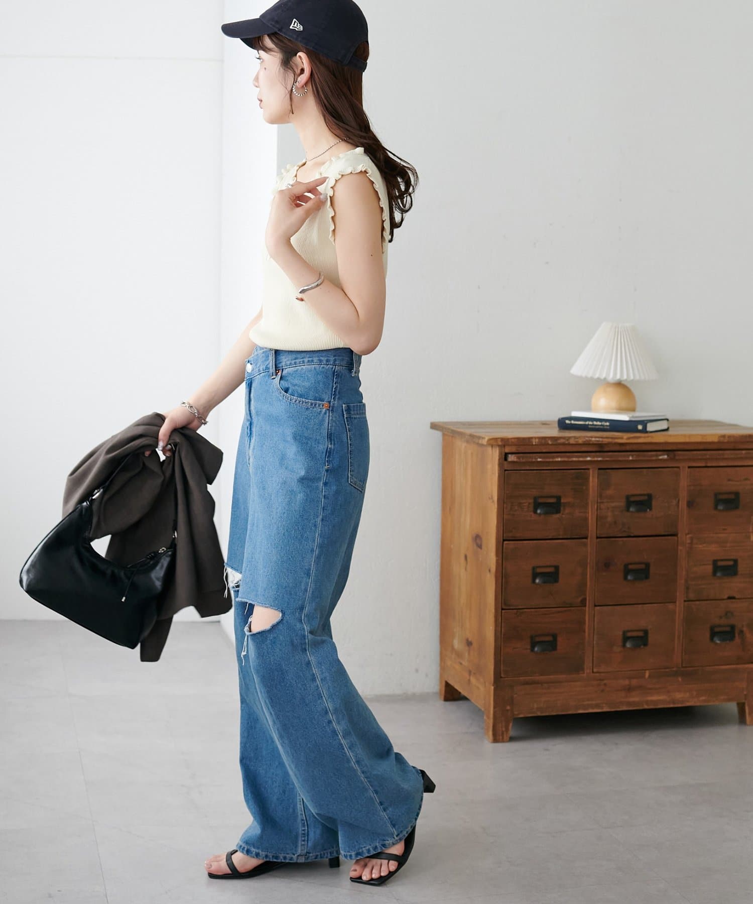 さりげないフリルが大人可愛い、着回し力抜群のタンクトップ