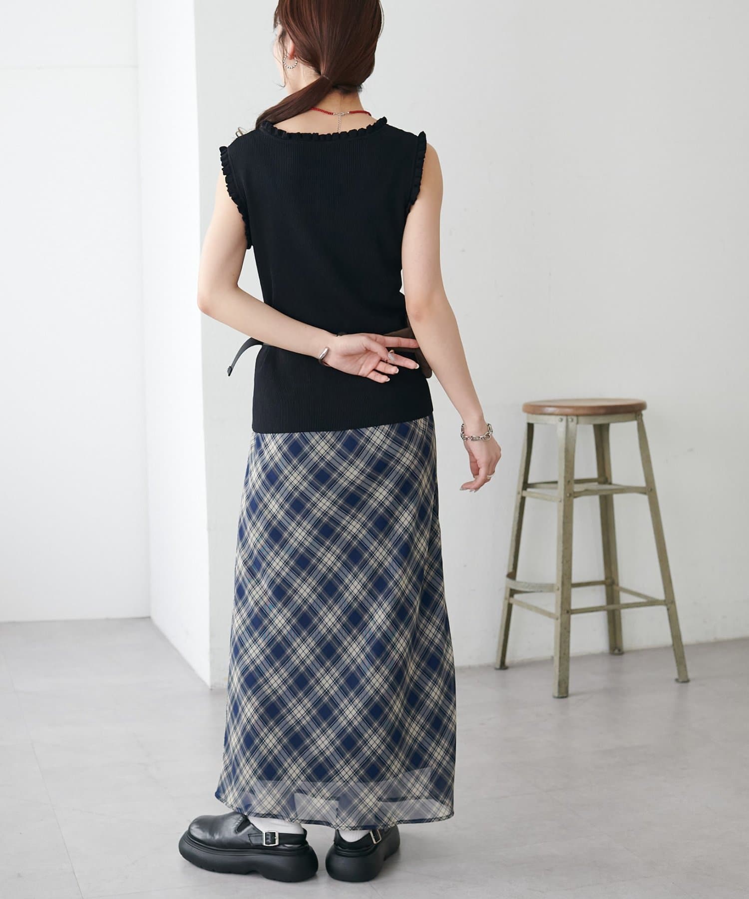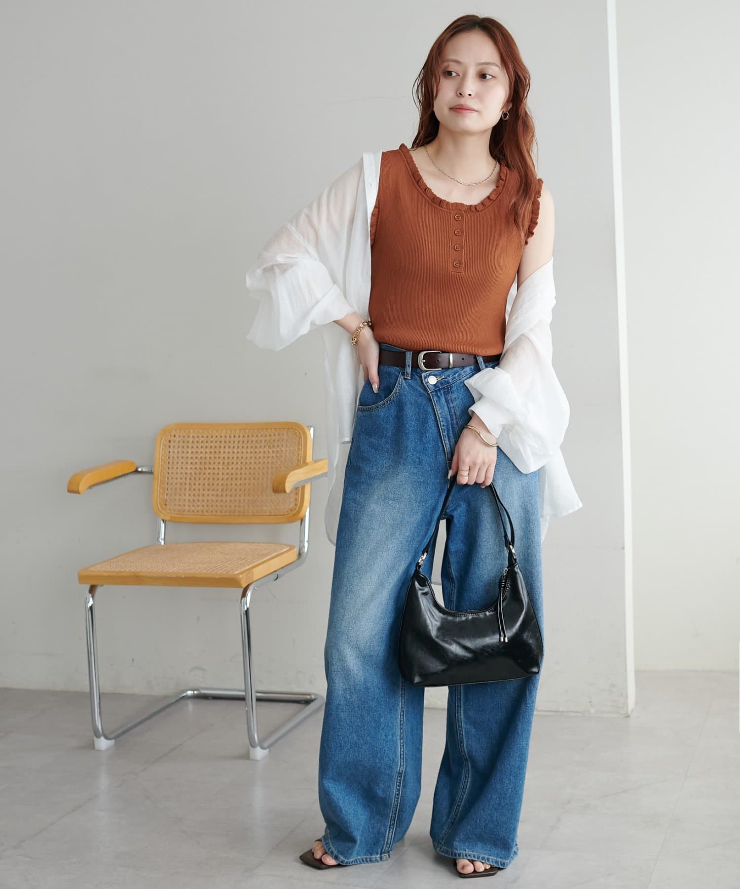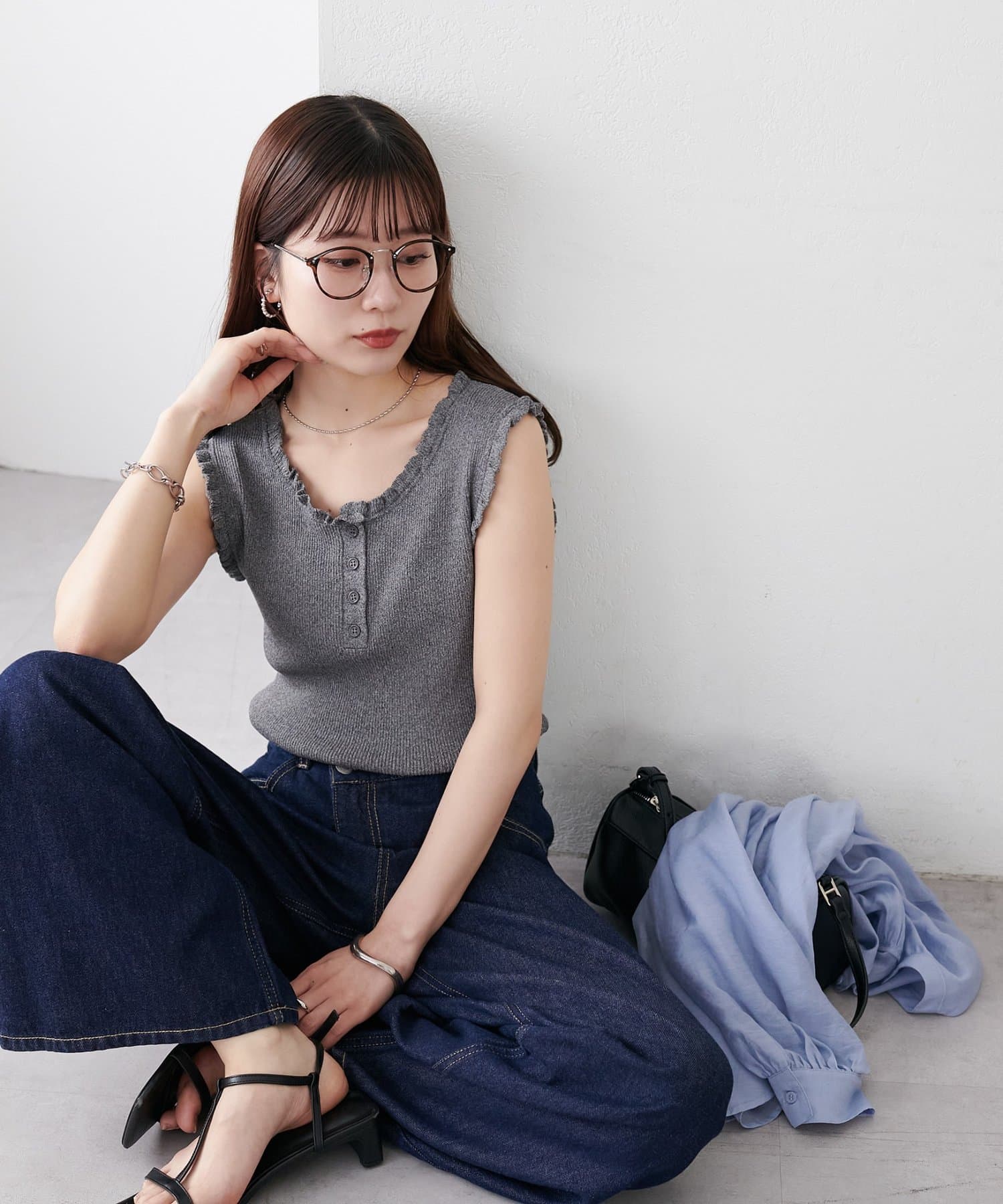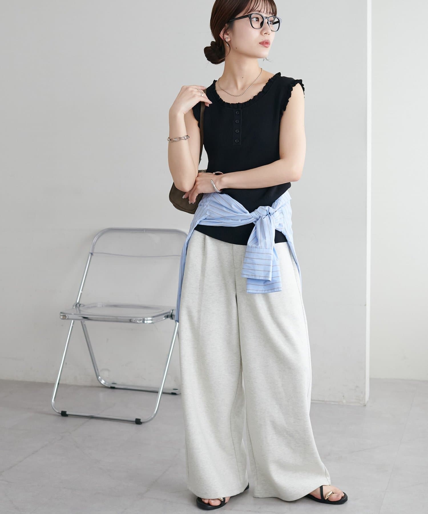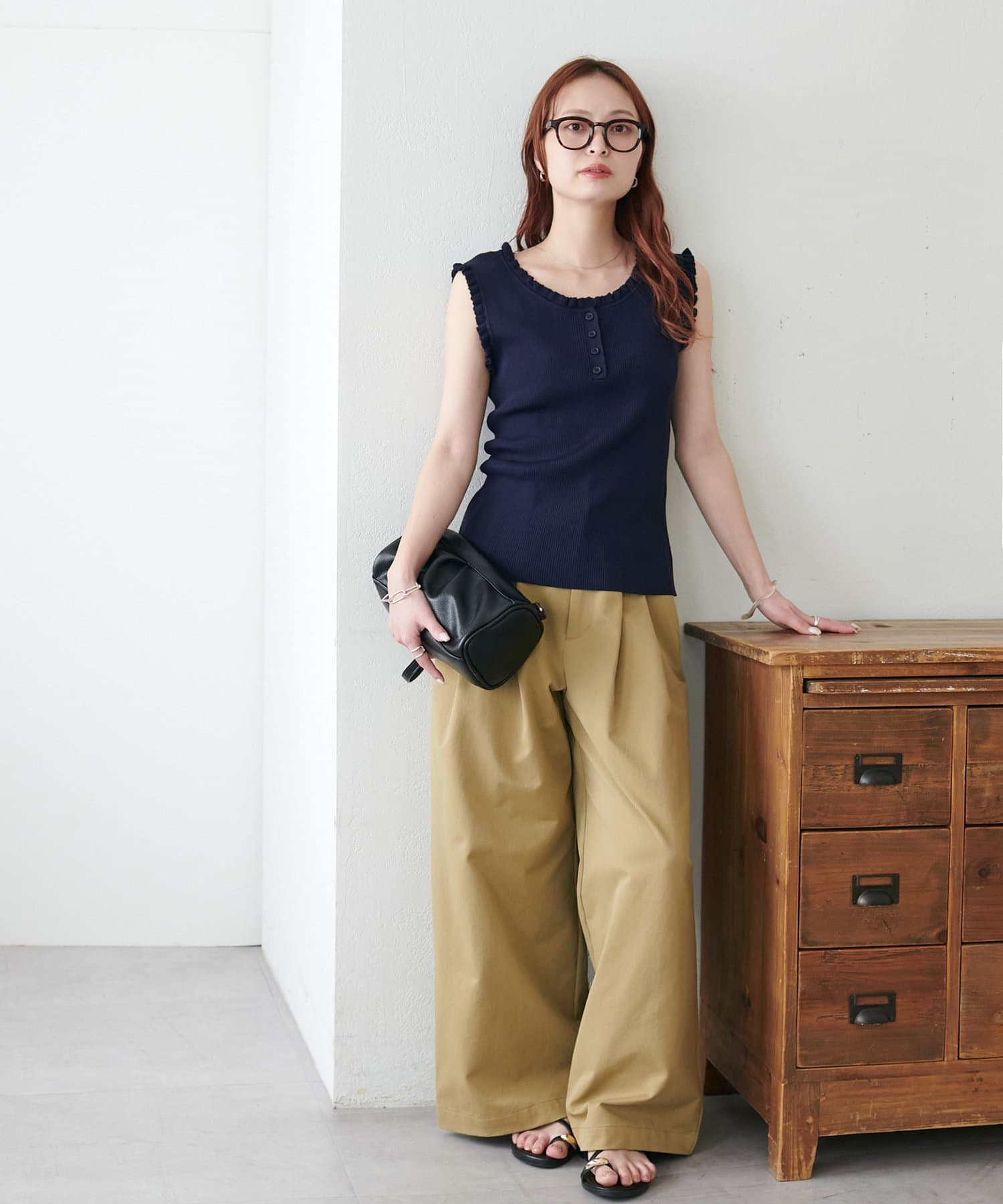 さりげないフリルが大人可愛い、着回し力抜群のタンクトップ