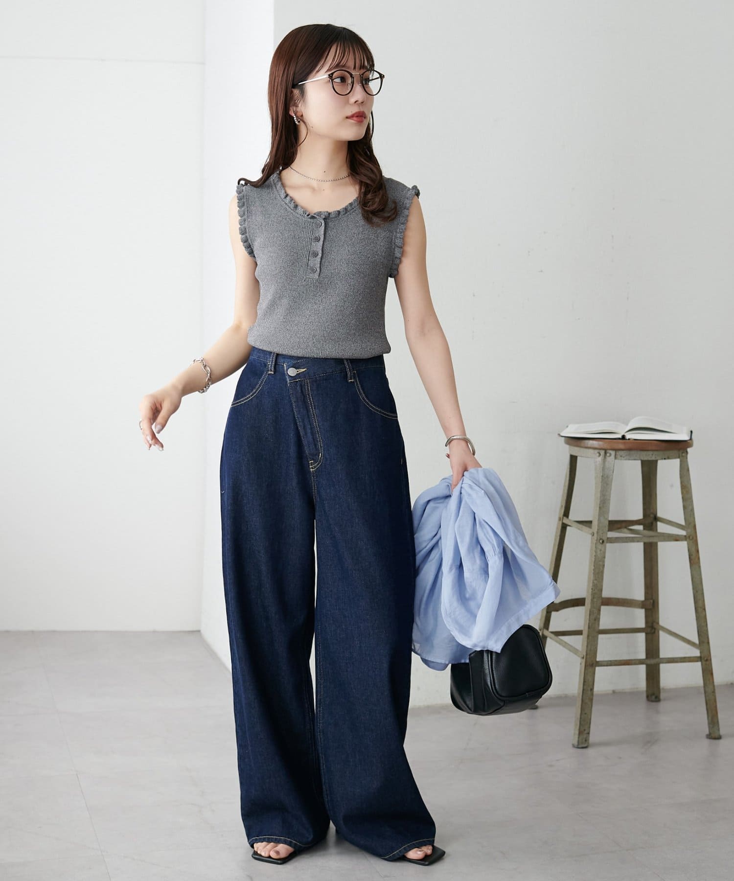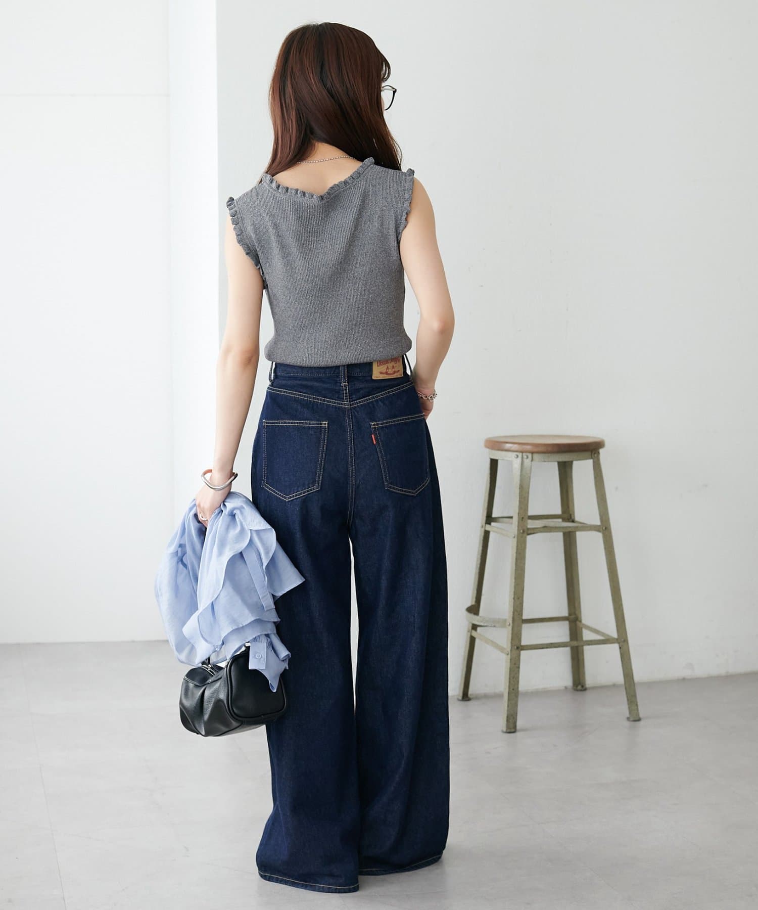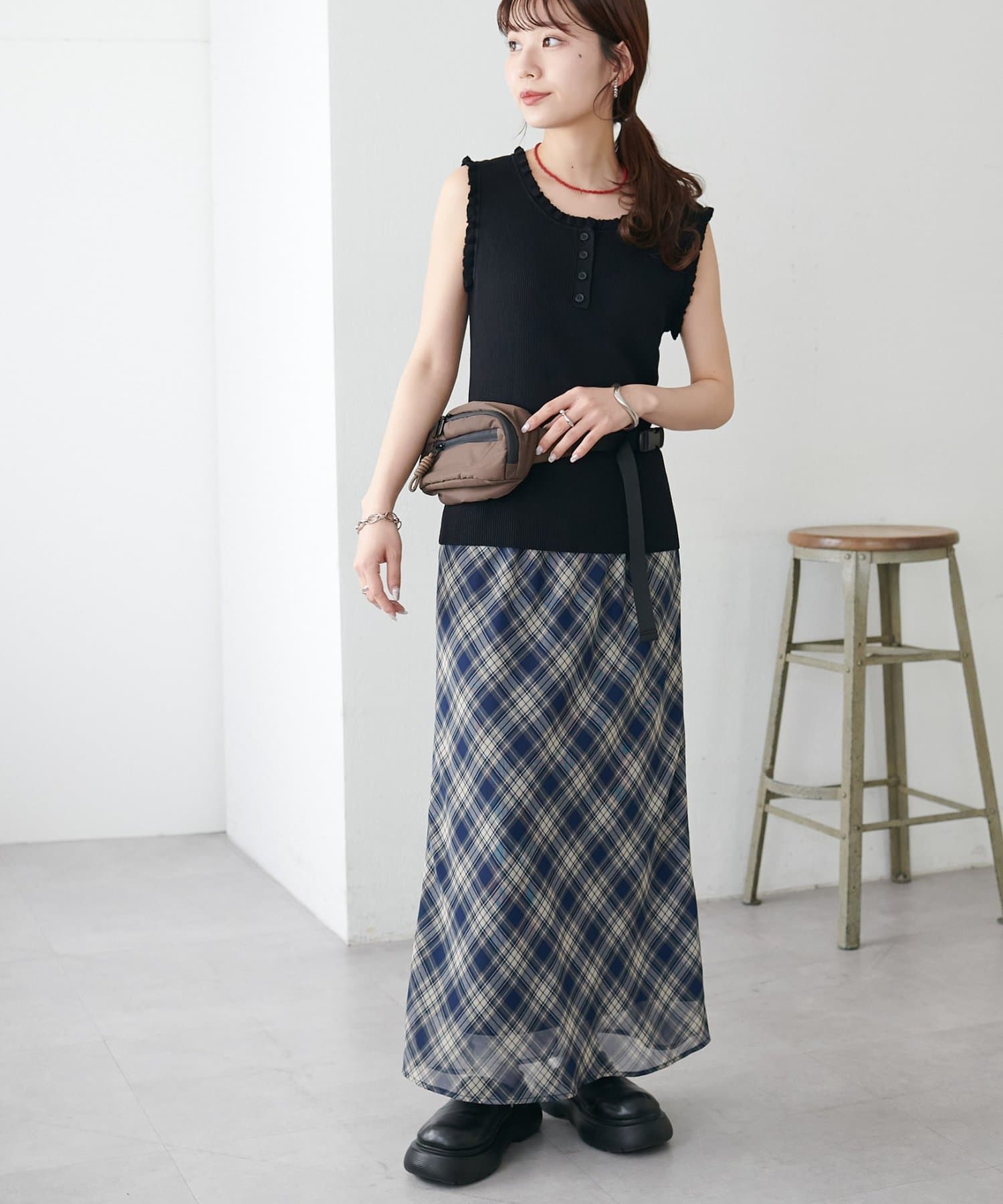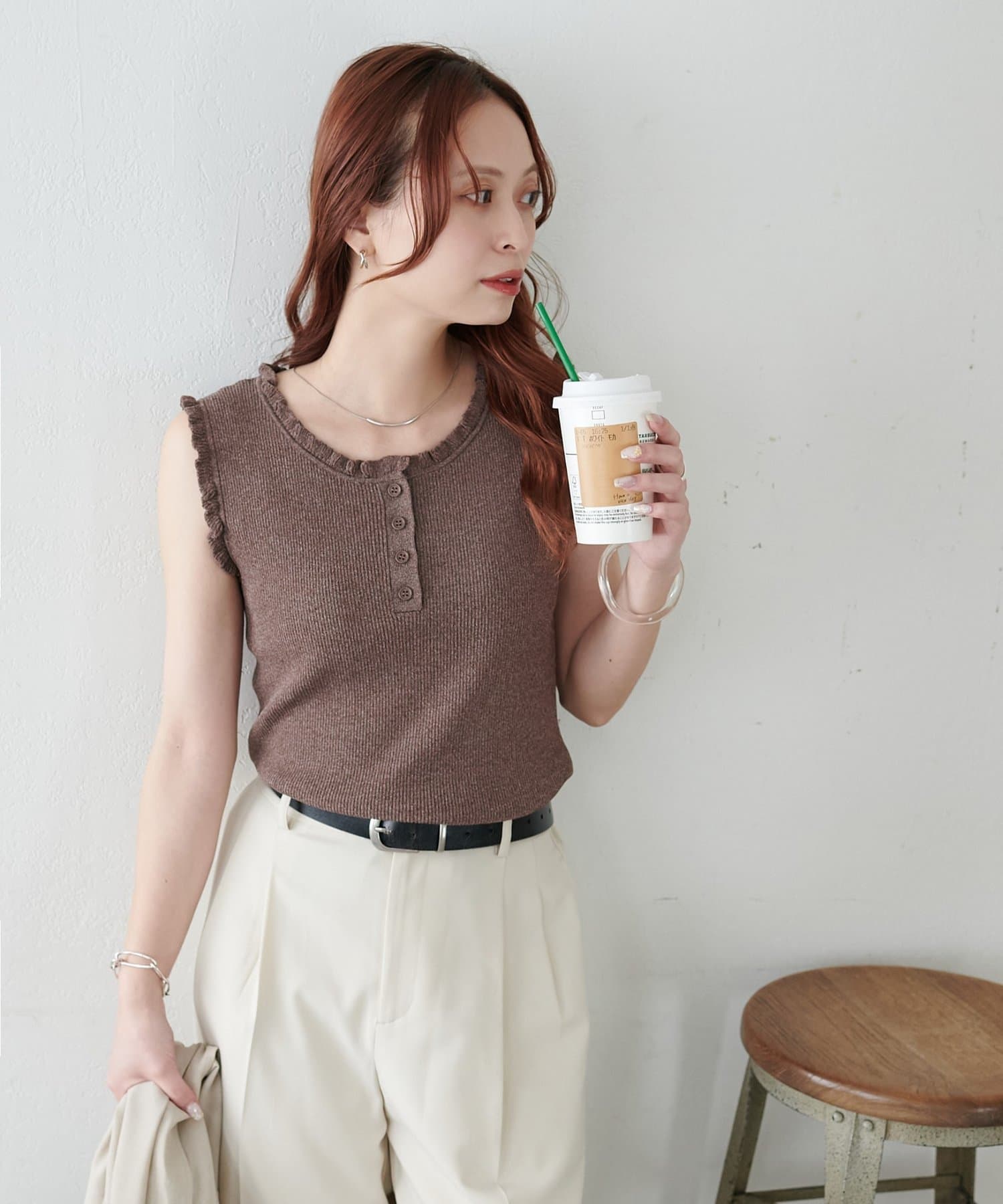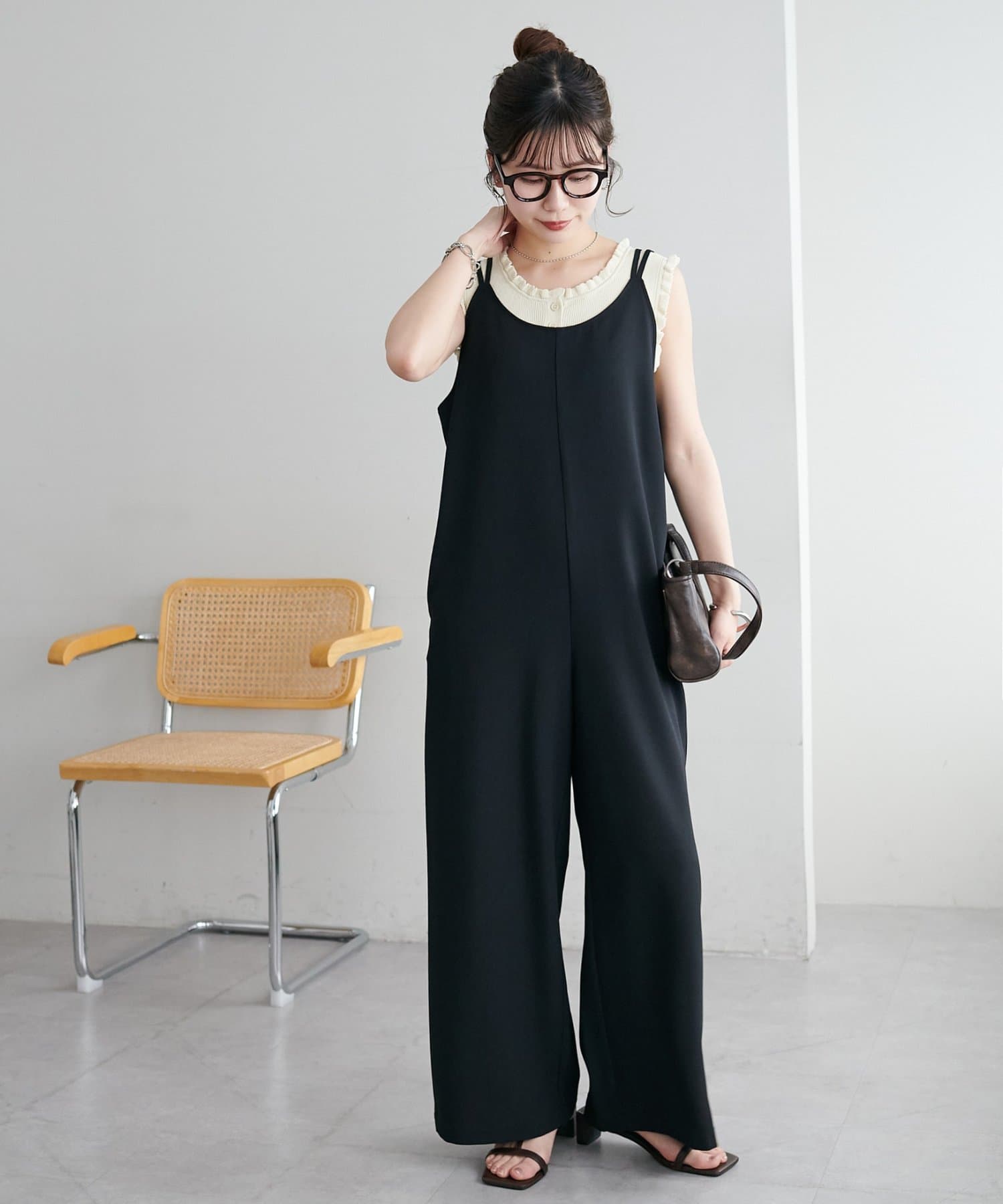さりげないフリルが大人可愛い、着回し力抜群のタンクトップ