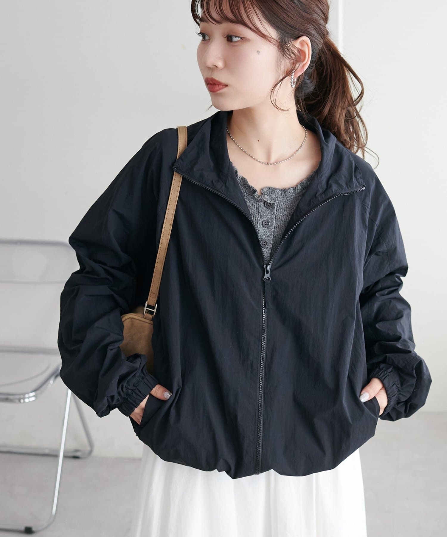 163cmスタッフ:腰位置くらいの丈感。ハイウエストのボトムスと合わせると、スタイルアップして見えるのでおすすめです!
