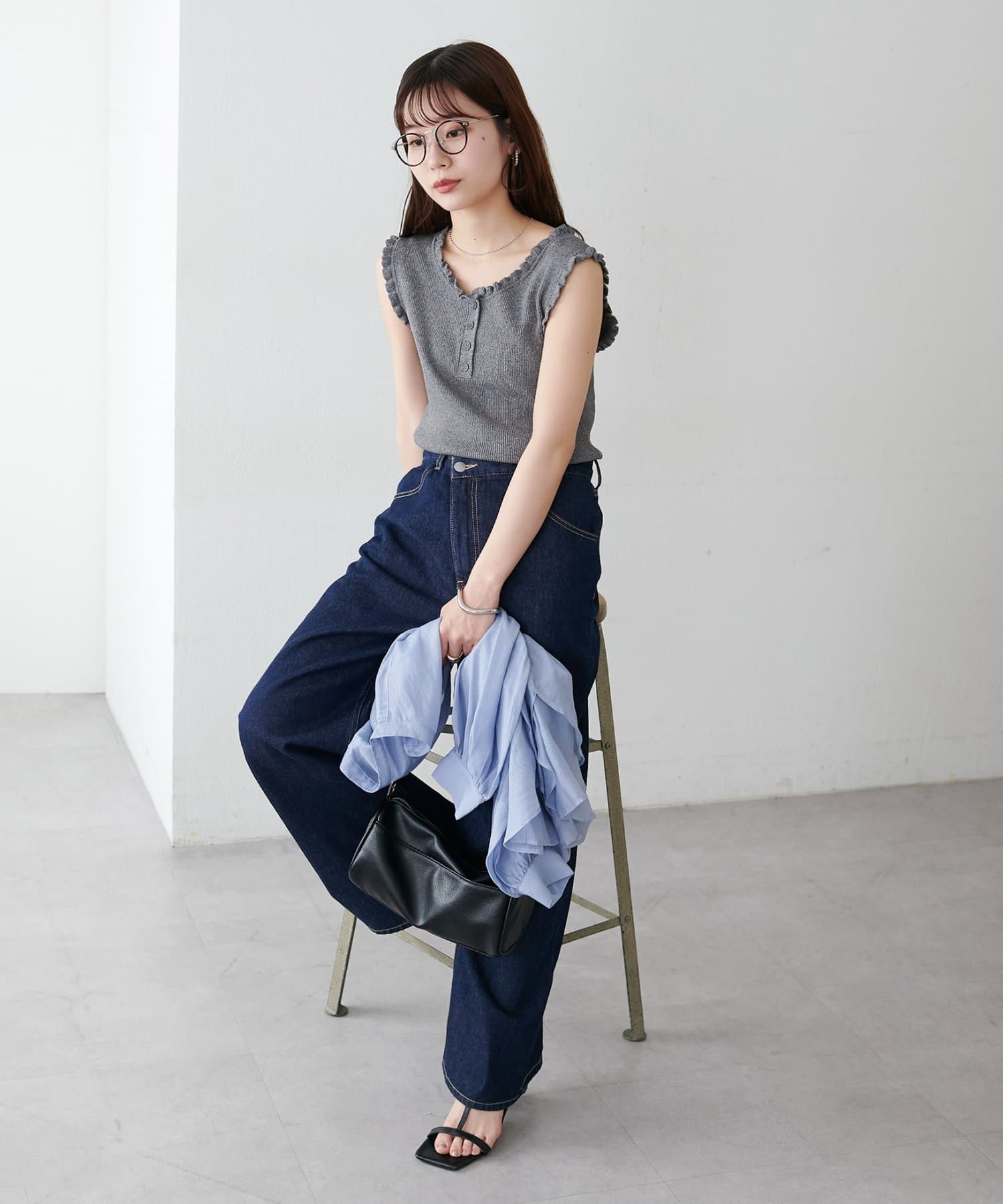 ・フレアスカートやナロースカートと合わせれば、フリルの甘さが引き立つフェミニンなコーディネートが完成♪