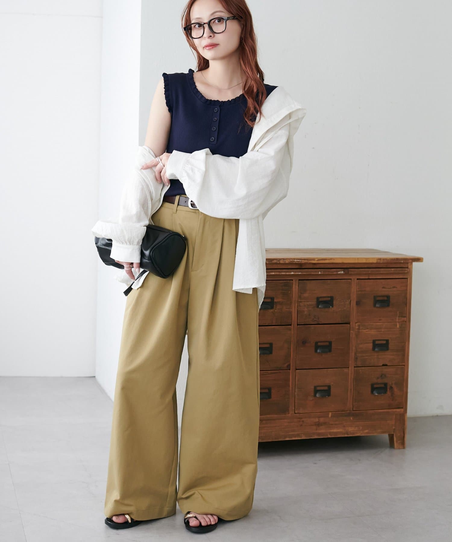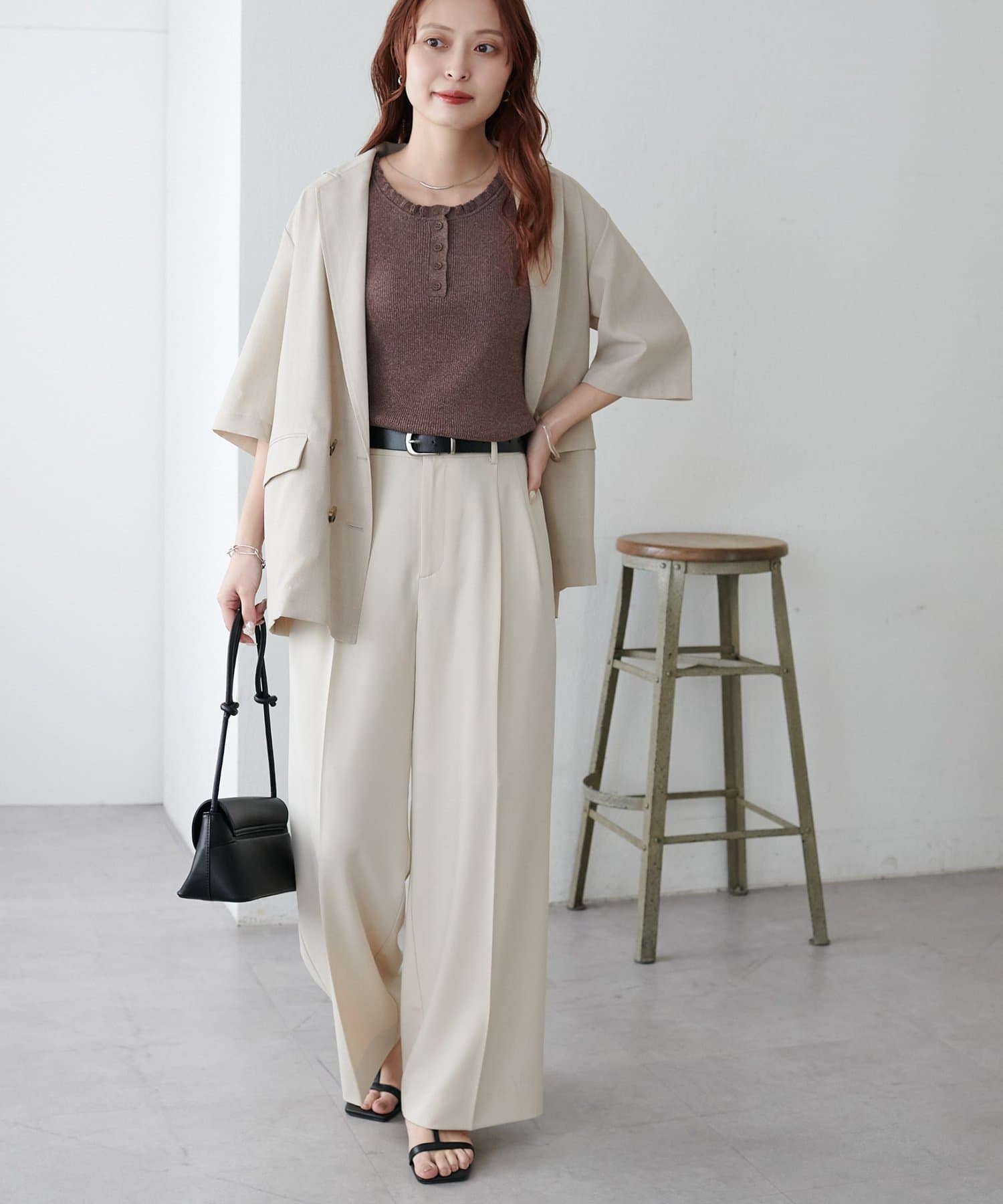 ・きれいめなスラックスやテーパードパンツに合わせると、きちんと感のあるオフィスカジュアルとしても着回せます!
