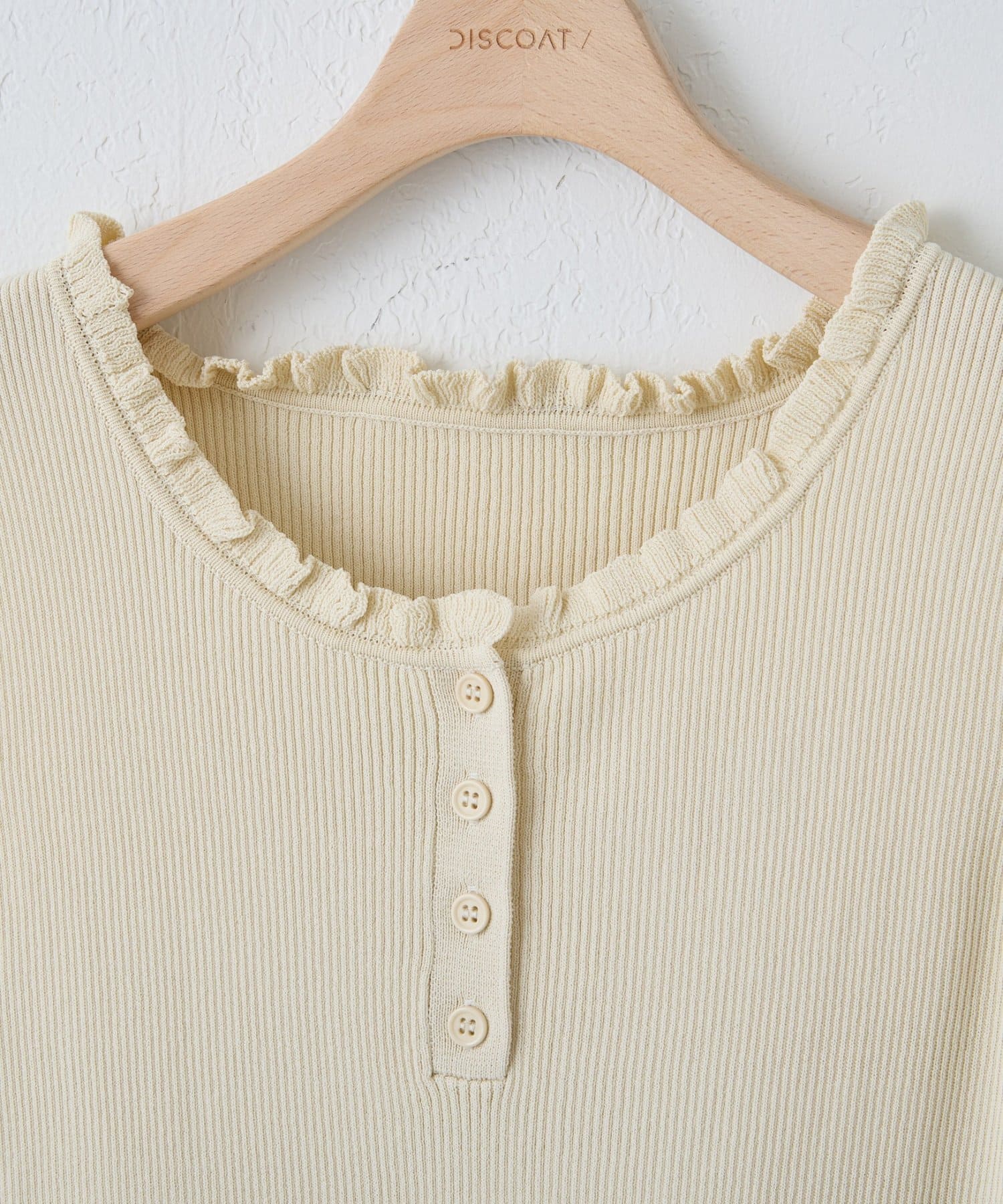 ・首元とアームホールにあしらわれたミニフリルがフェミニンなアクセントに♪