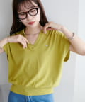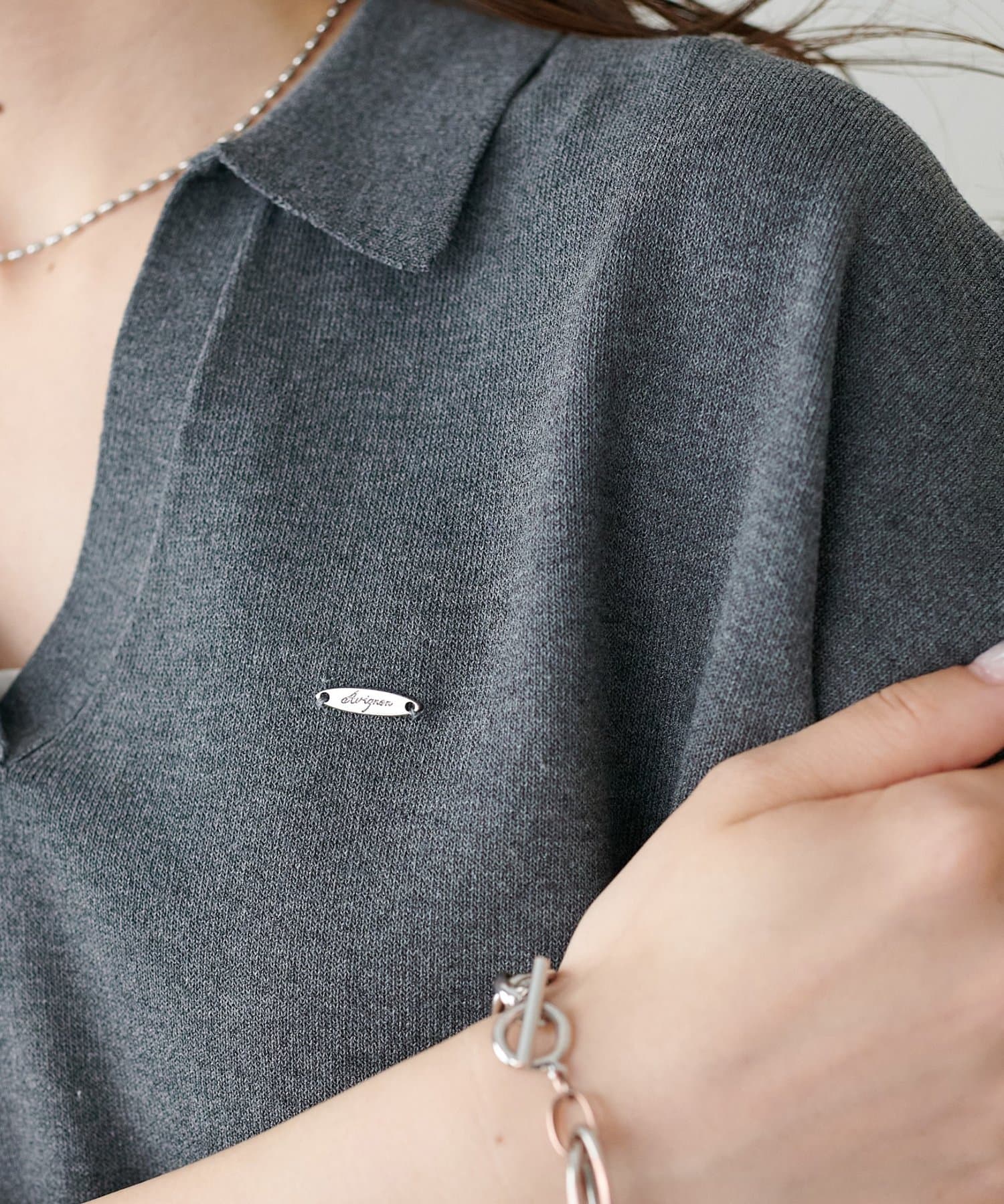 きちんと感と抜け感を両立♪胸元のプレートが上品なアクセントになるサマーニット