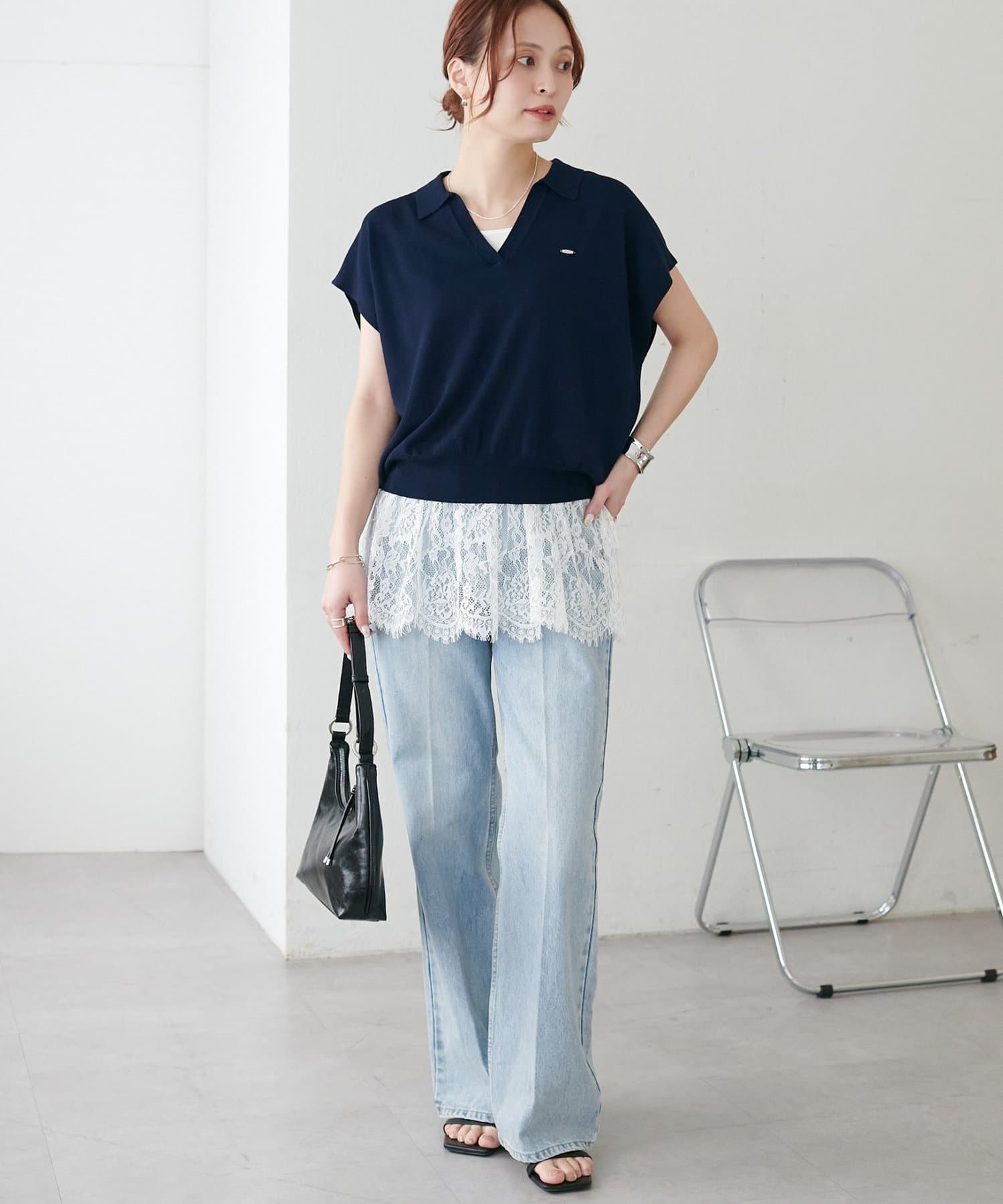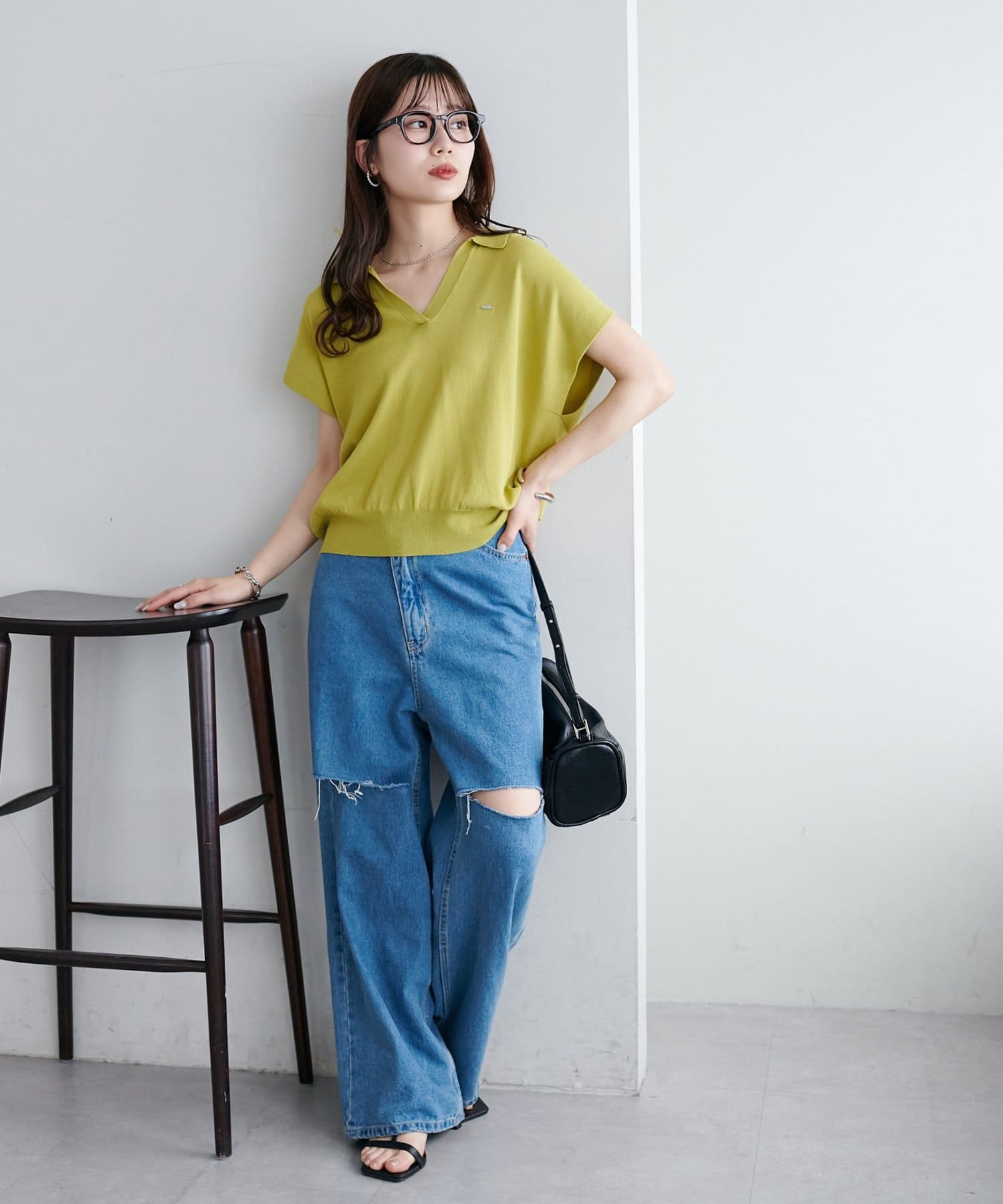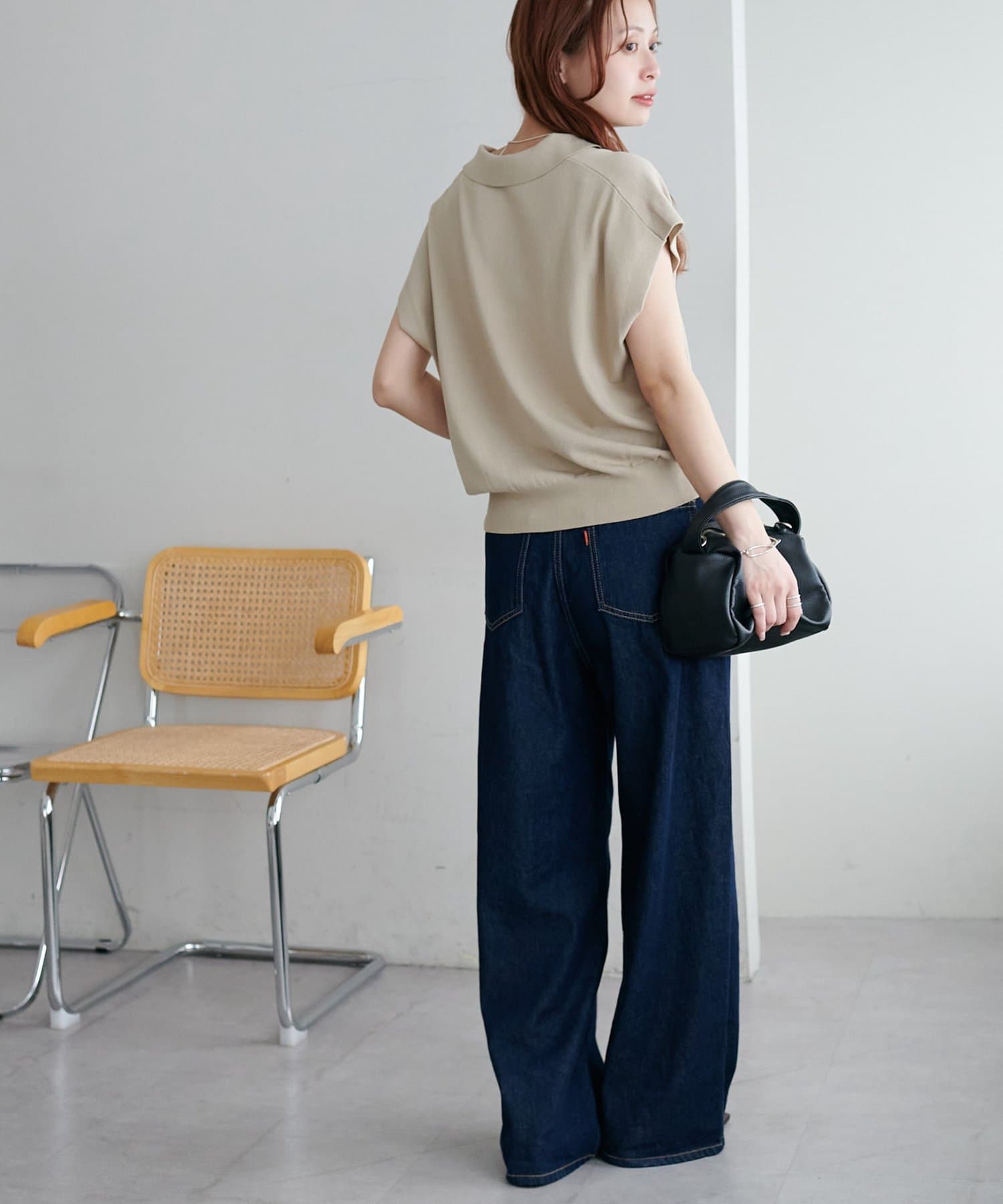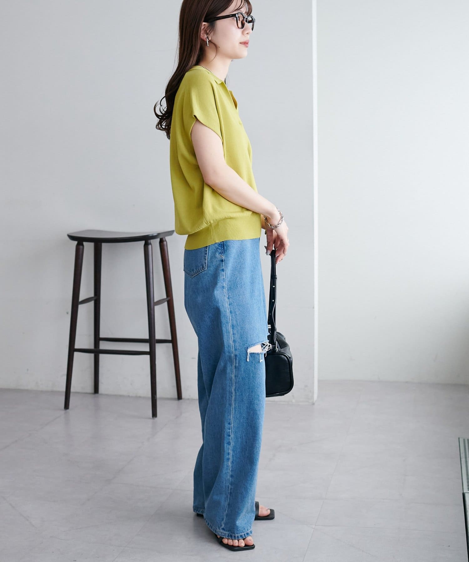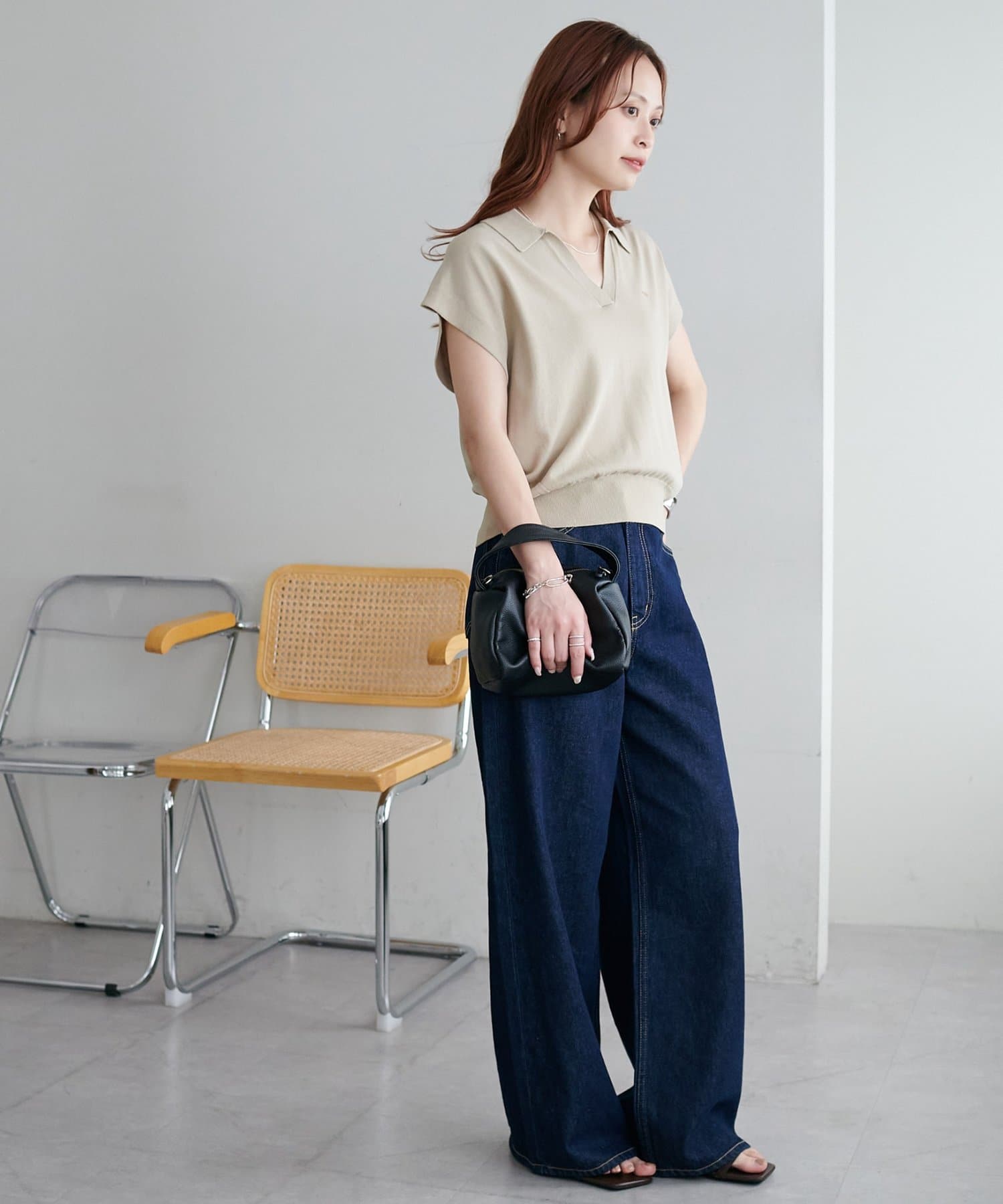・ワイドデニムと合わせて抜け感のあるカジュアルスタイルに。