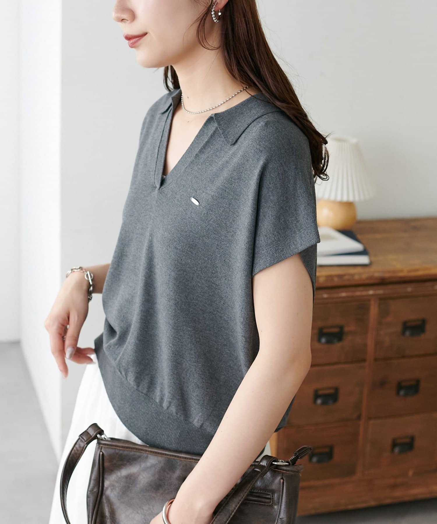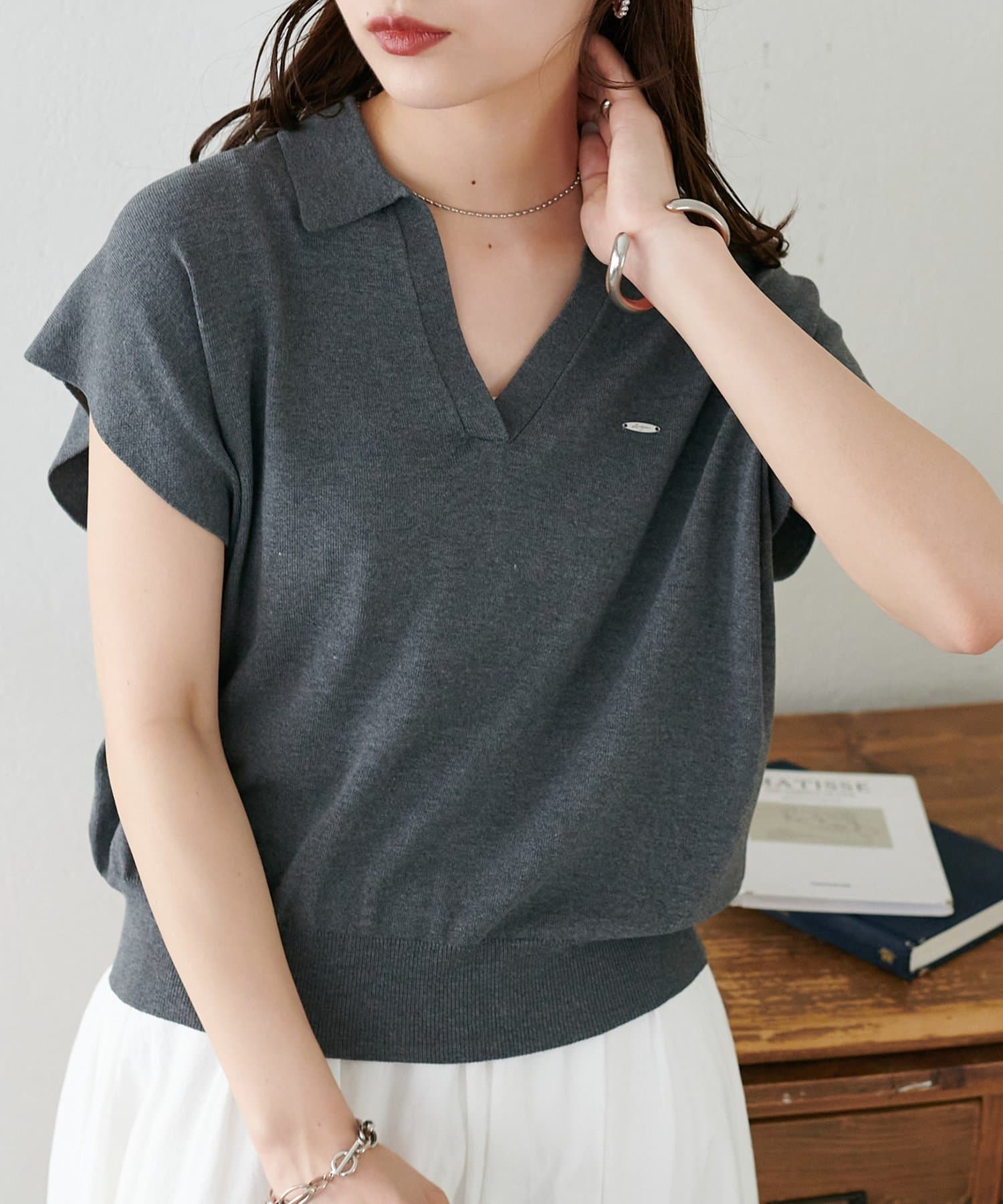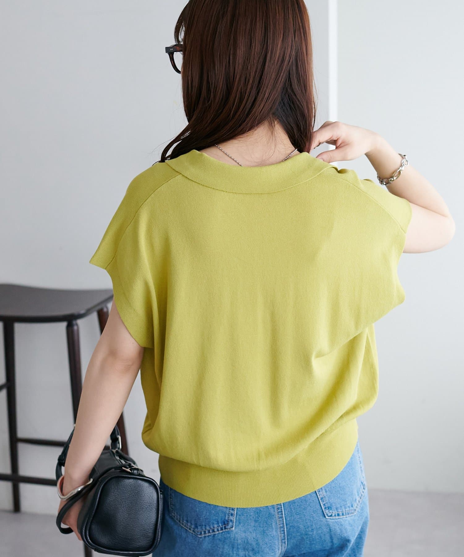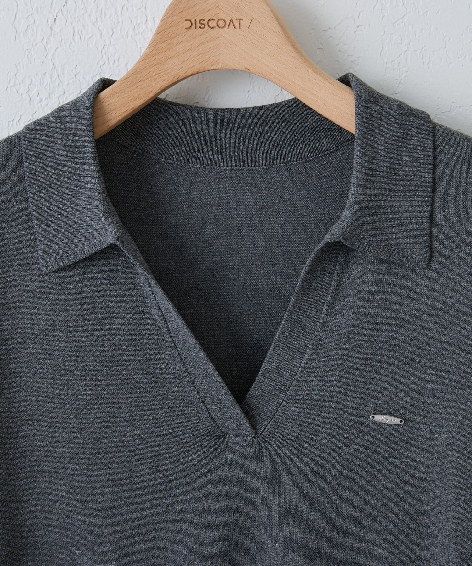 【UVカット/遮熱】衿付きプレートスキッパーニット