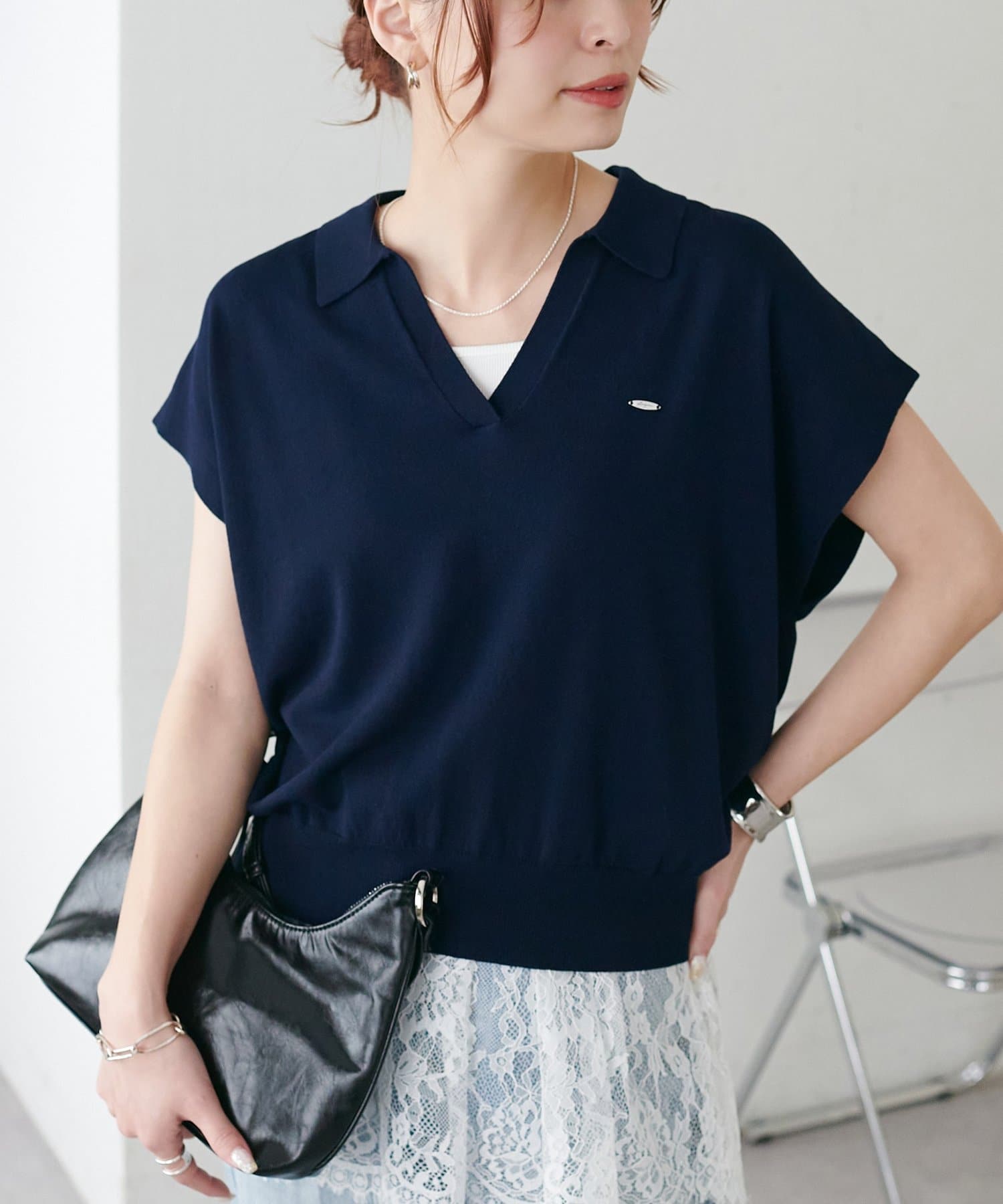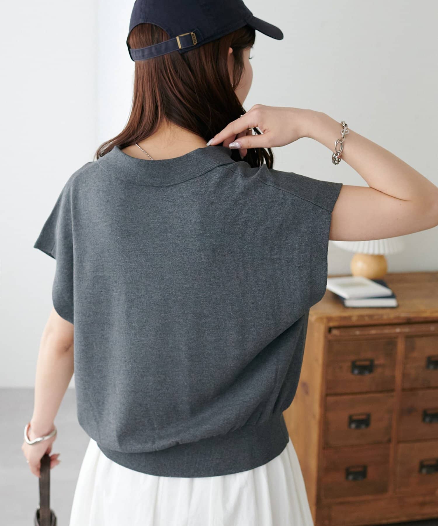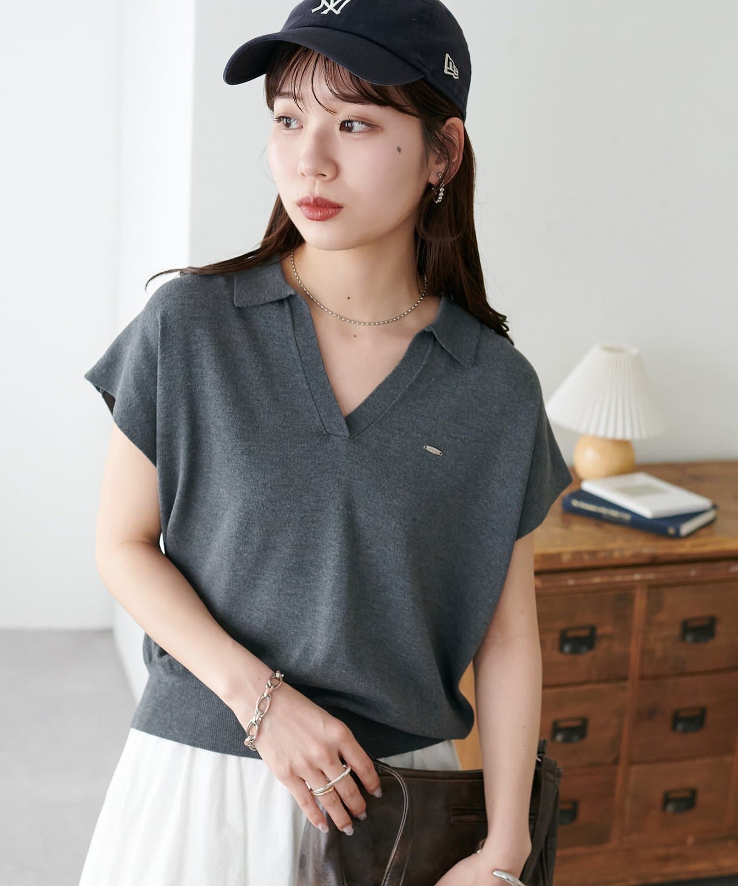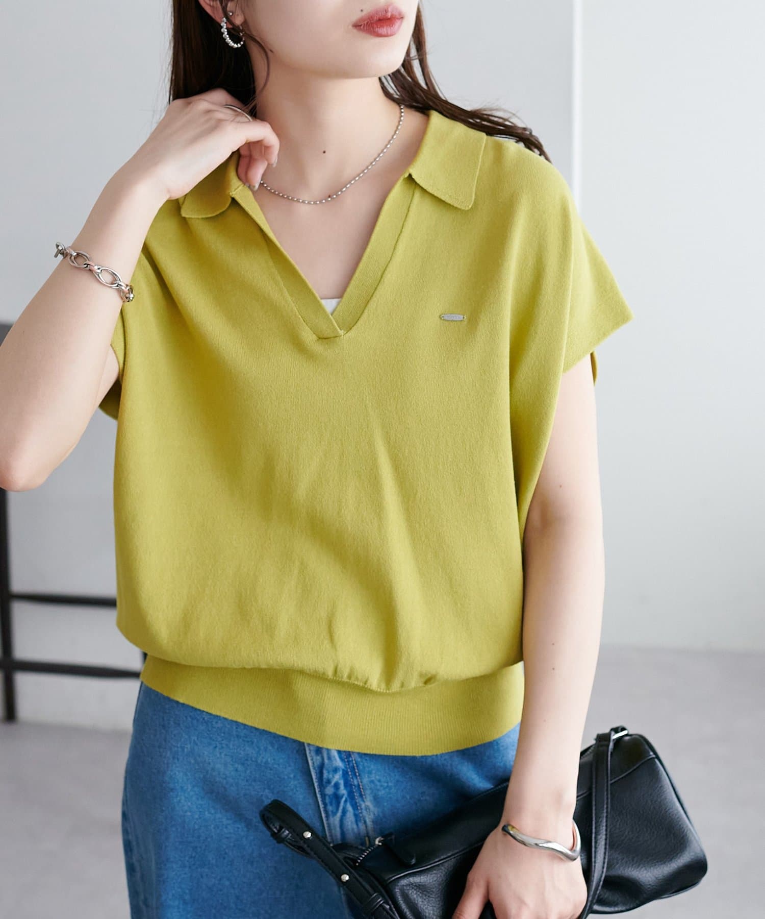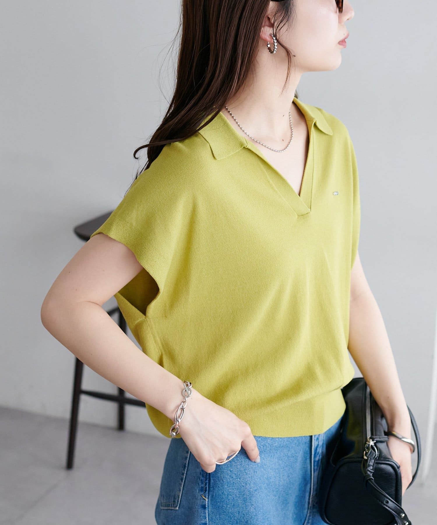 【UVカット/遮熱】衿付きプレートスキッパーニット
