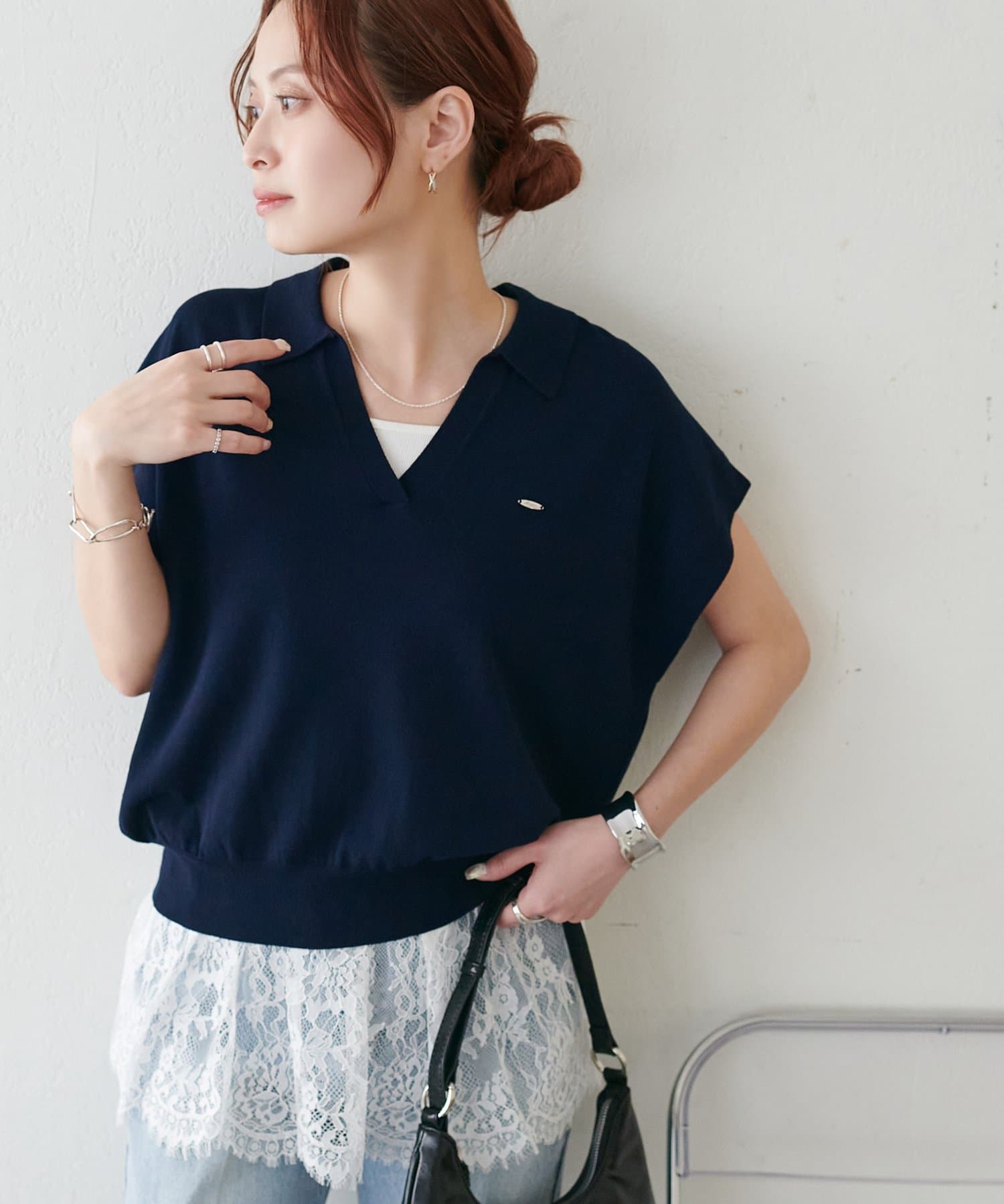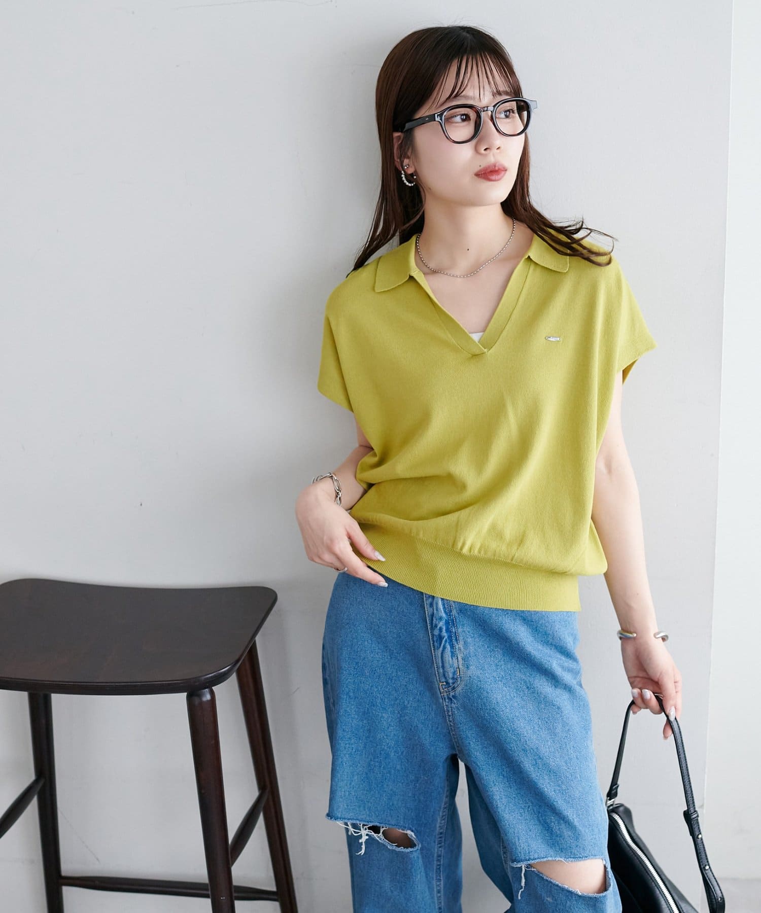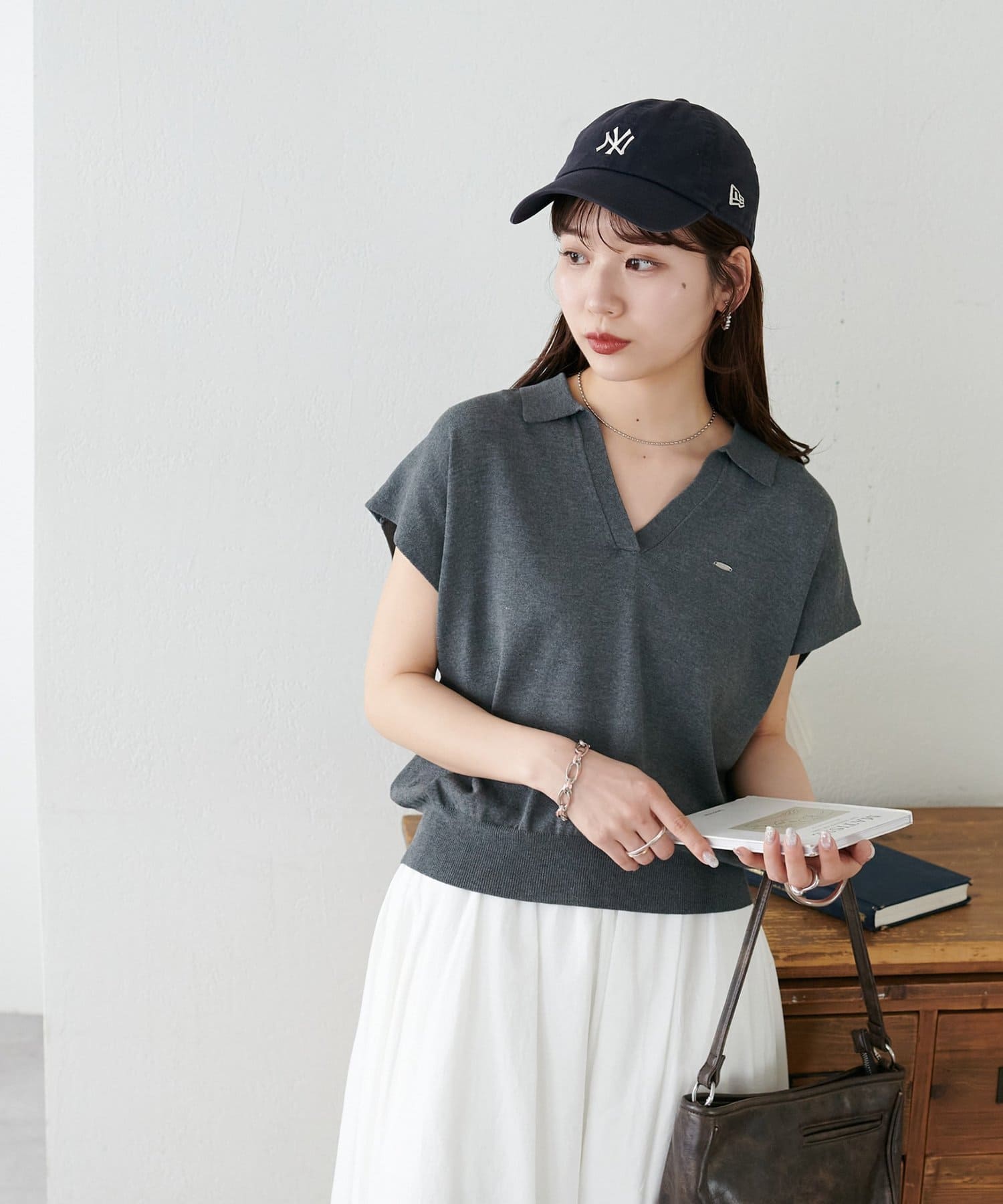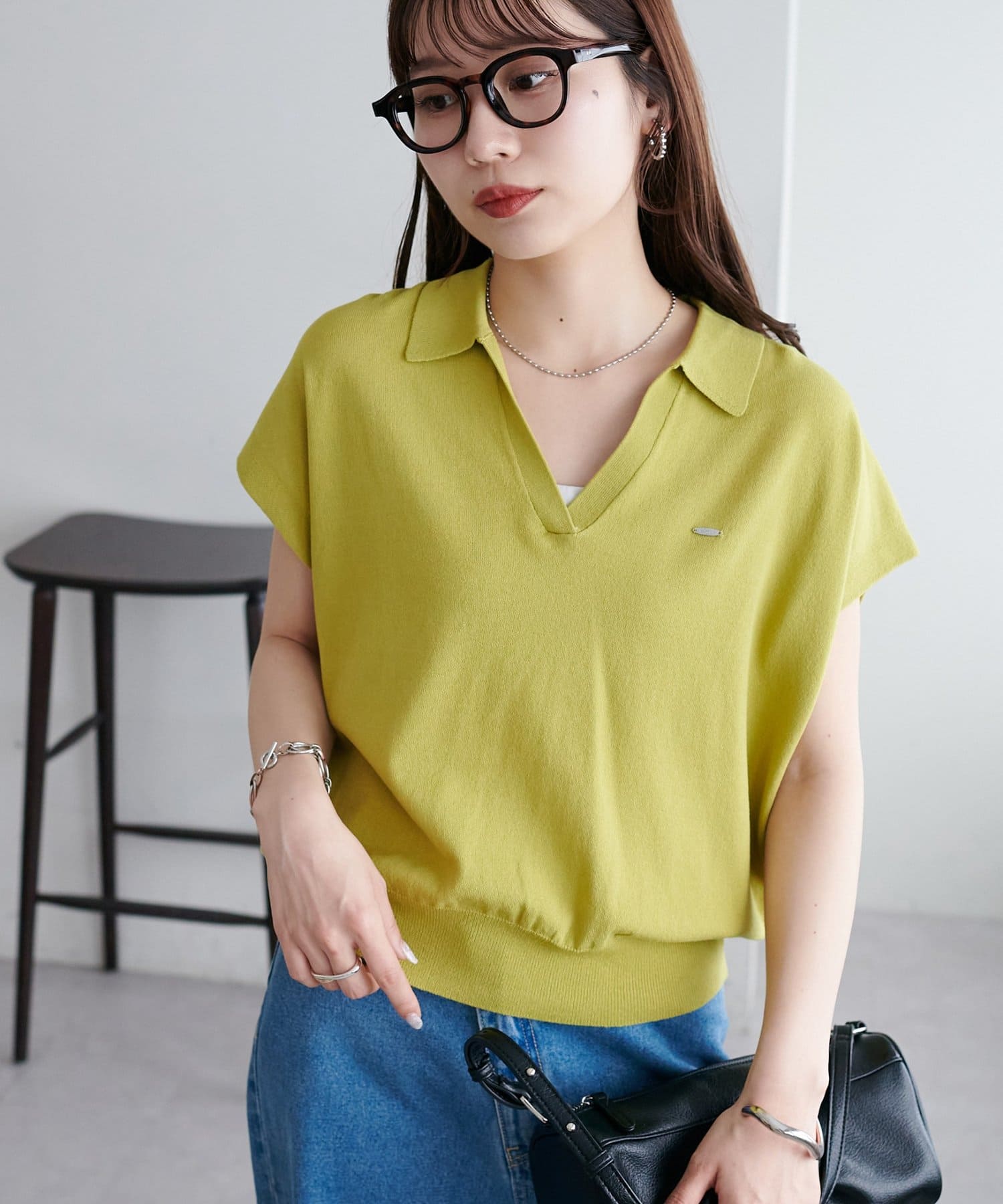 【UVカット/遮熱】衿付きプレートスキッパーニット