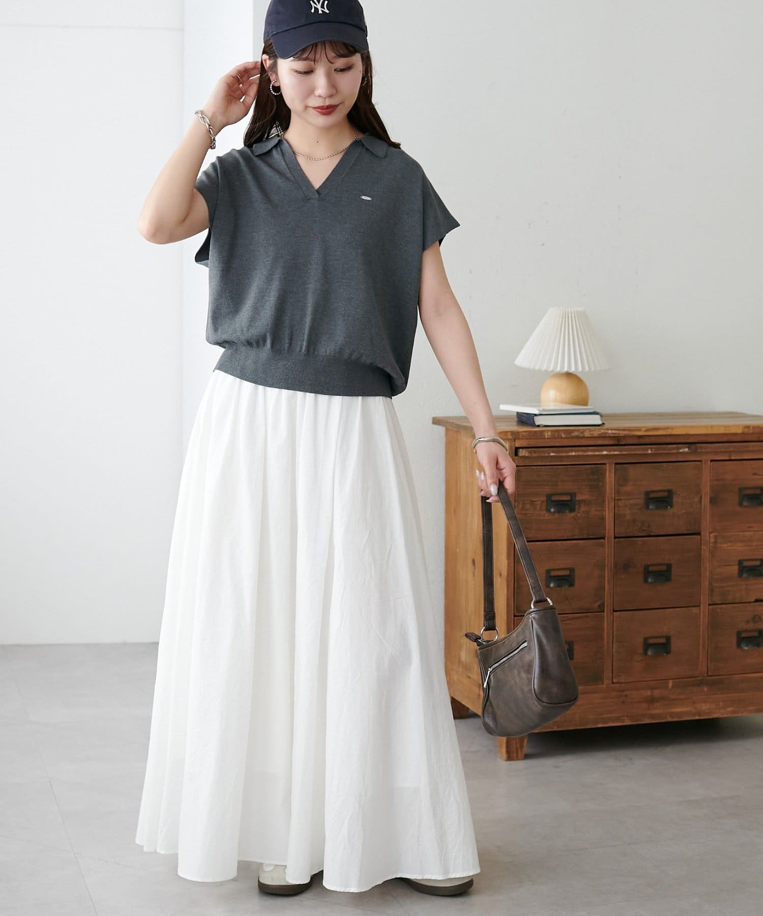 ・揺れ感のあるロングスカートやナロースカートを合わせれば、上品で女性らしい雰囲気を演出できます♪