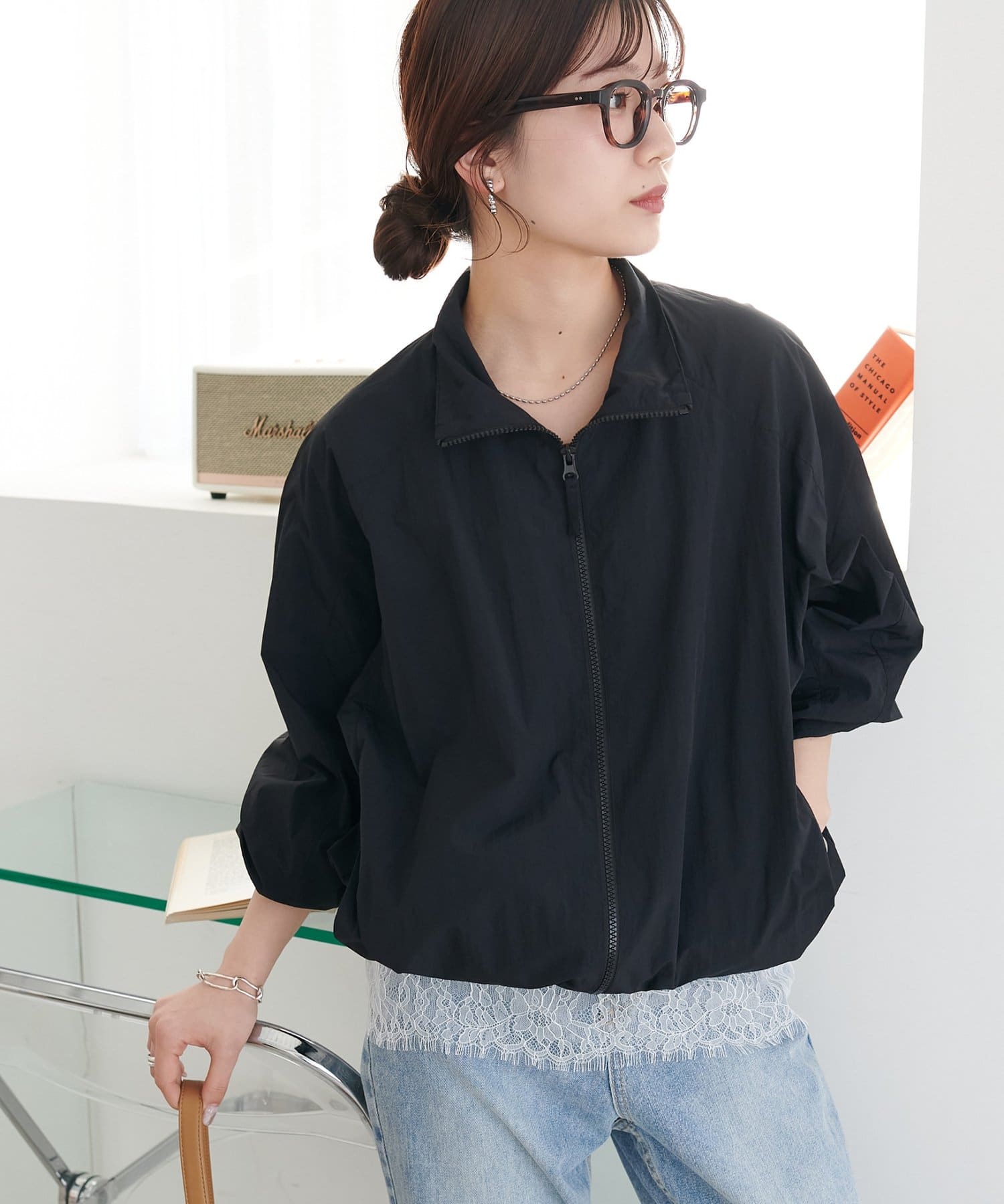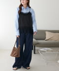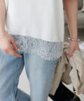 162cmスタッフ:短すぎないので、ハイウエストのボトムスはもちろん、通常のパンツとも合わせやすいです◎ジャケットのインナーとして着ると、胸元のレースがアクセントになり素敵です。