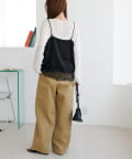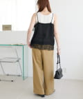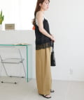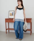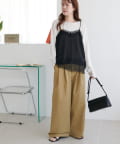 153cmスタッフ:肩紐を短めに調整すると、お尻がすっぽり隠れる丈感になりました。身幅にゆとりがあるので体のラインを拾わず、華奢に見せてくれます♪パンツと合わせて裾のレースを見せるスタイリングがおすすめです!