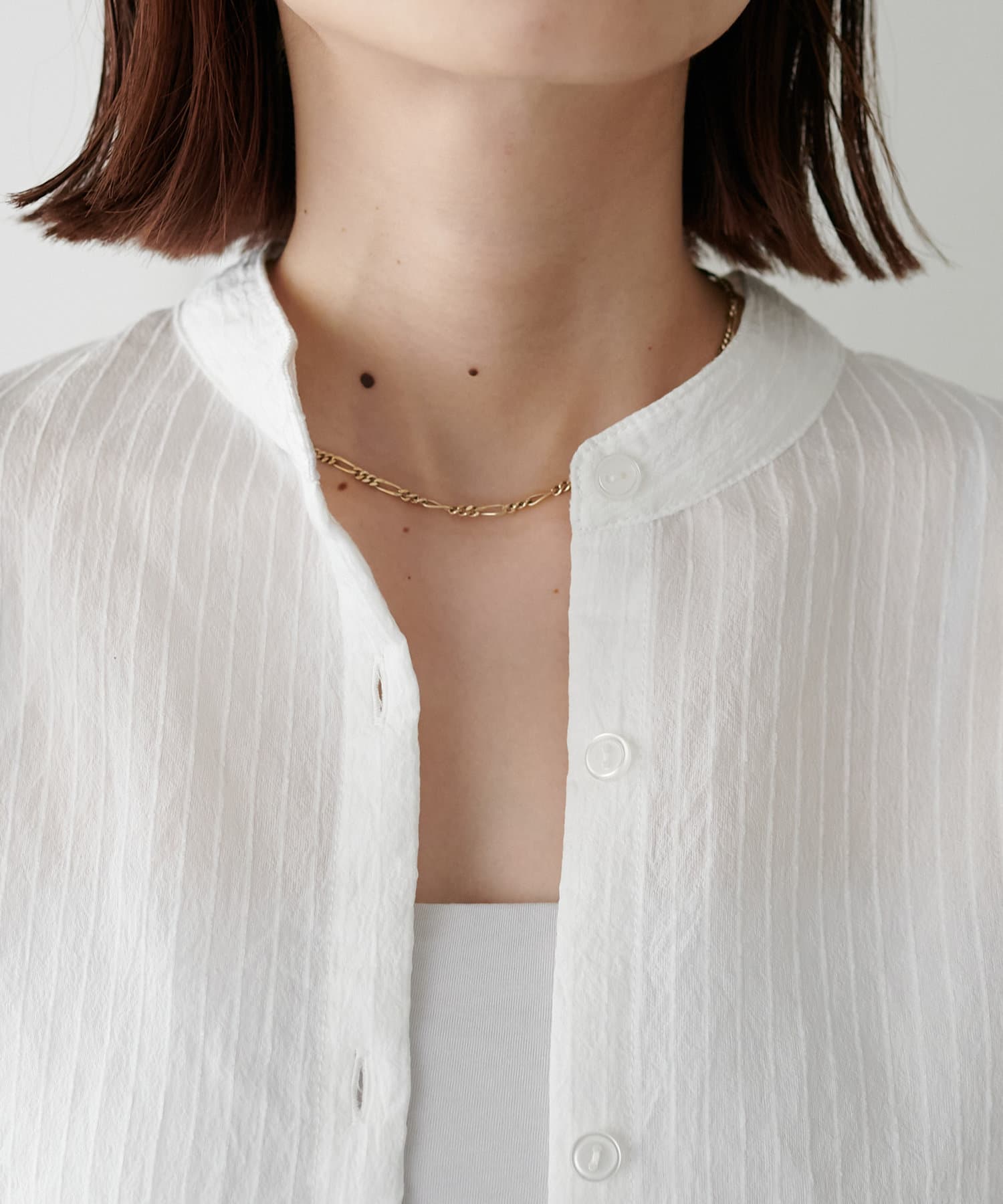 ・バンドカラーデザインで首元もすっきり