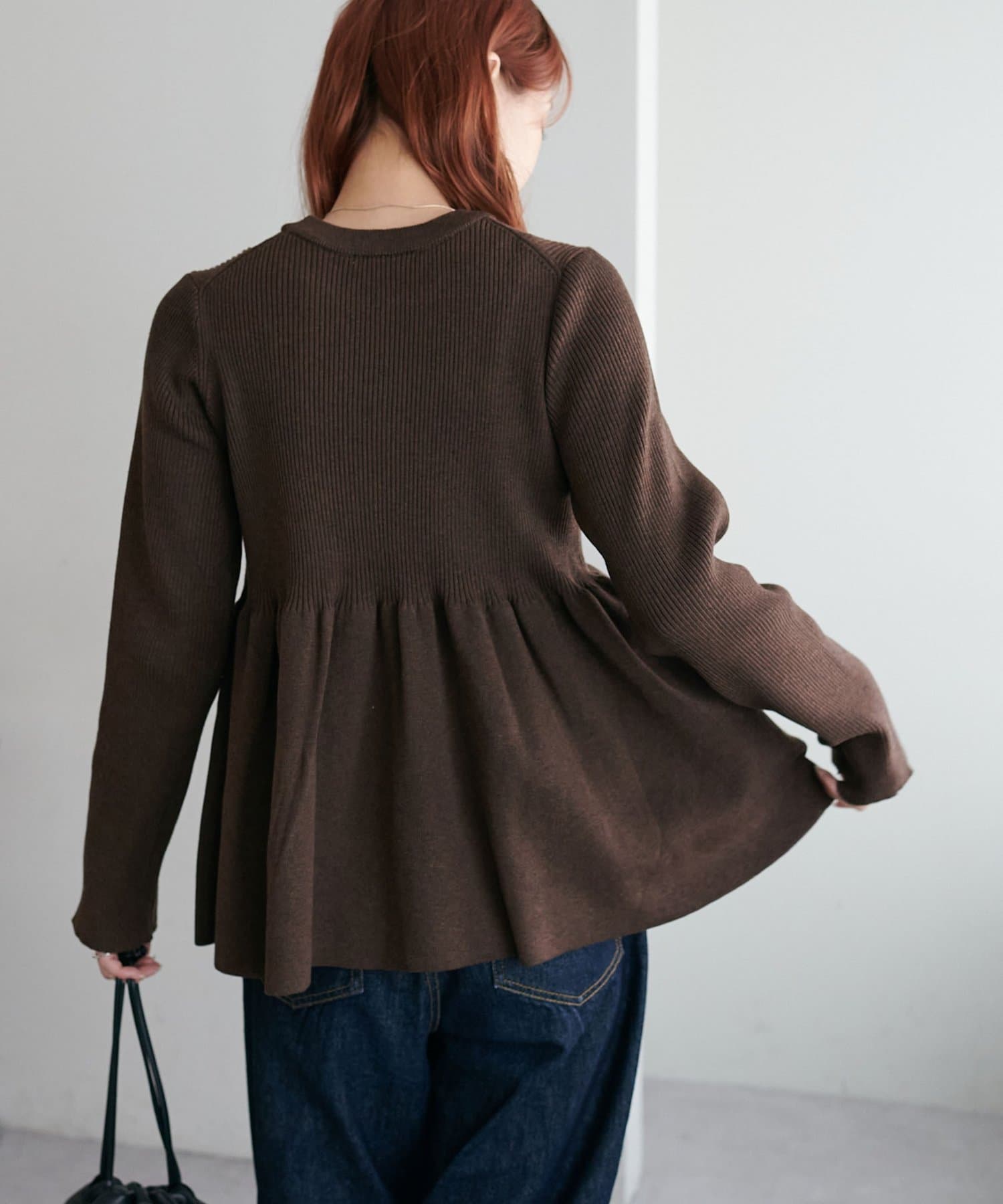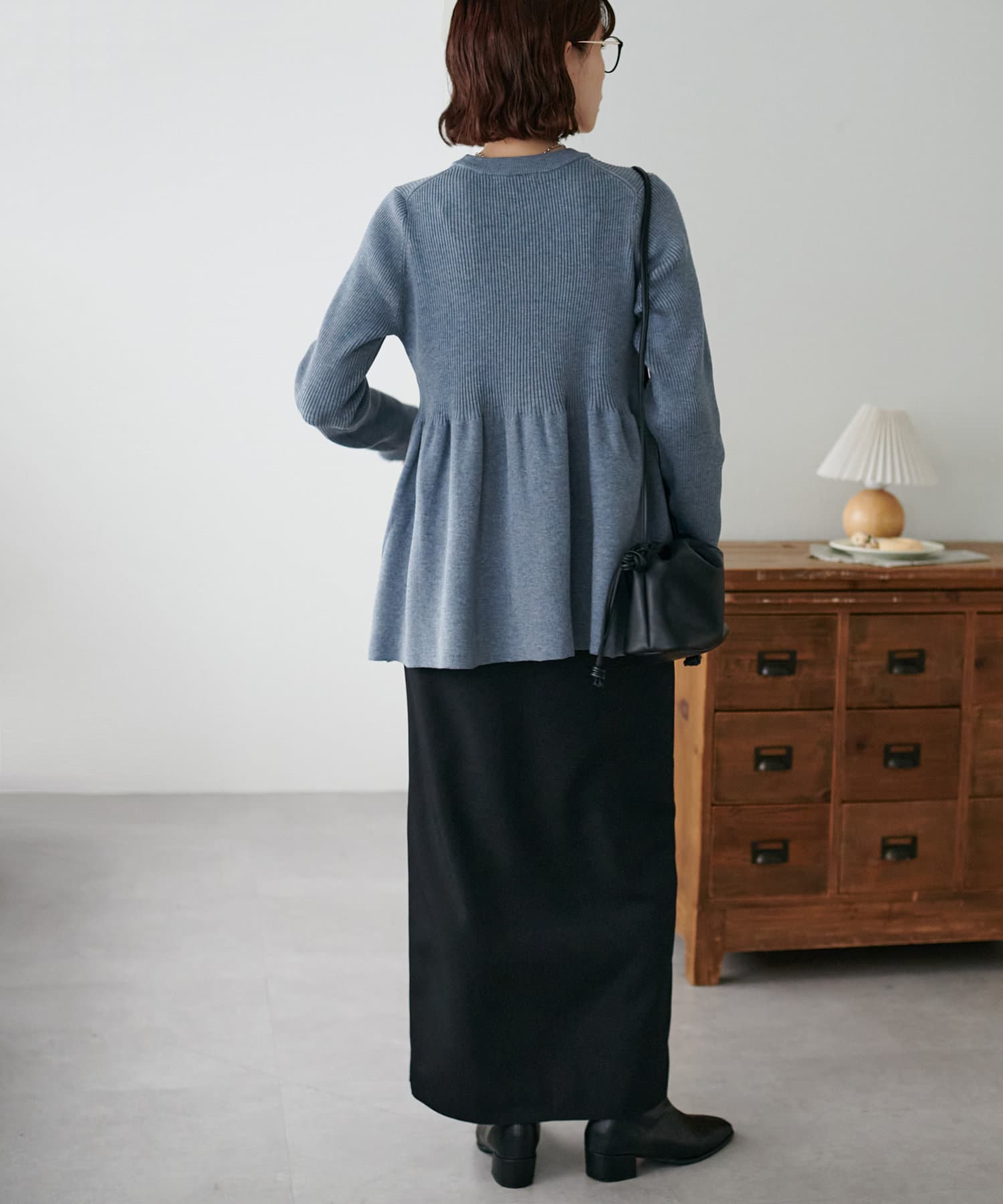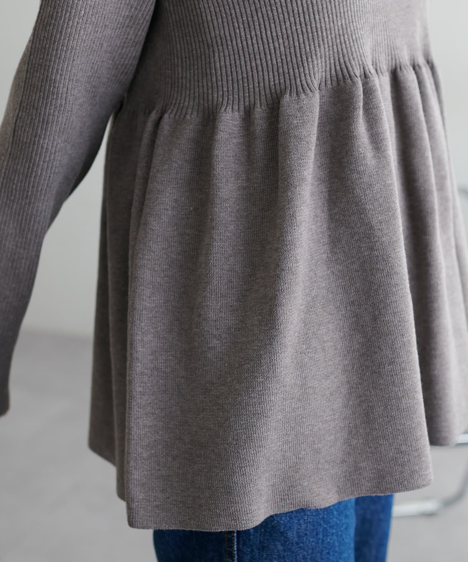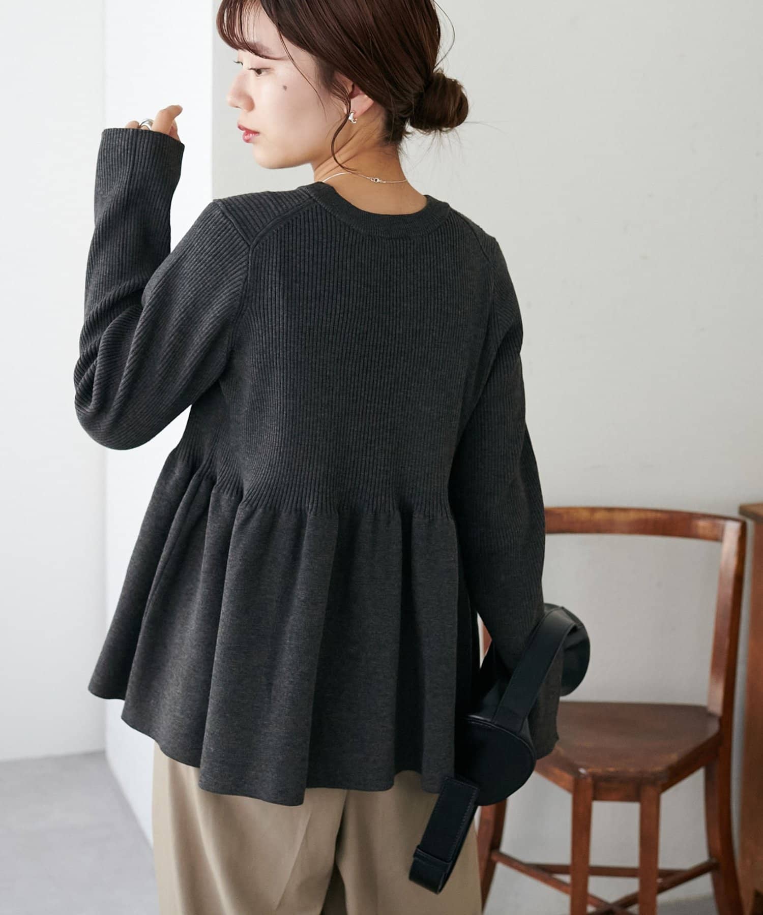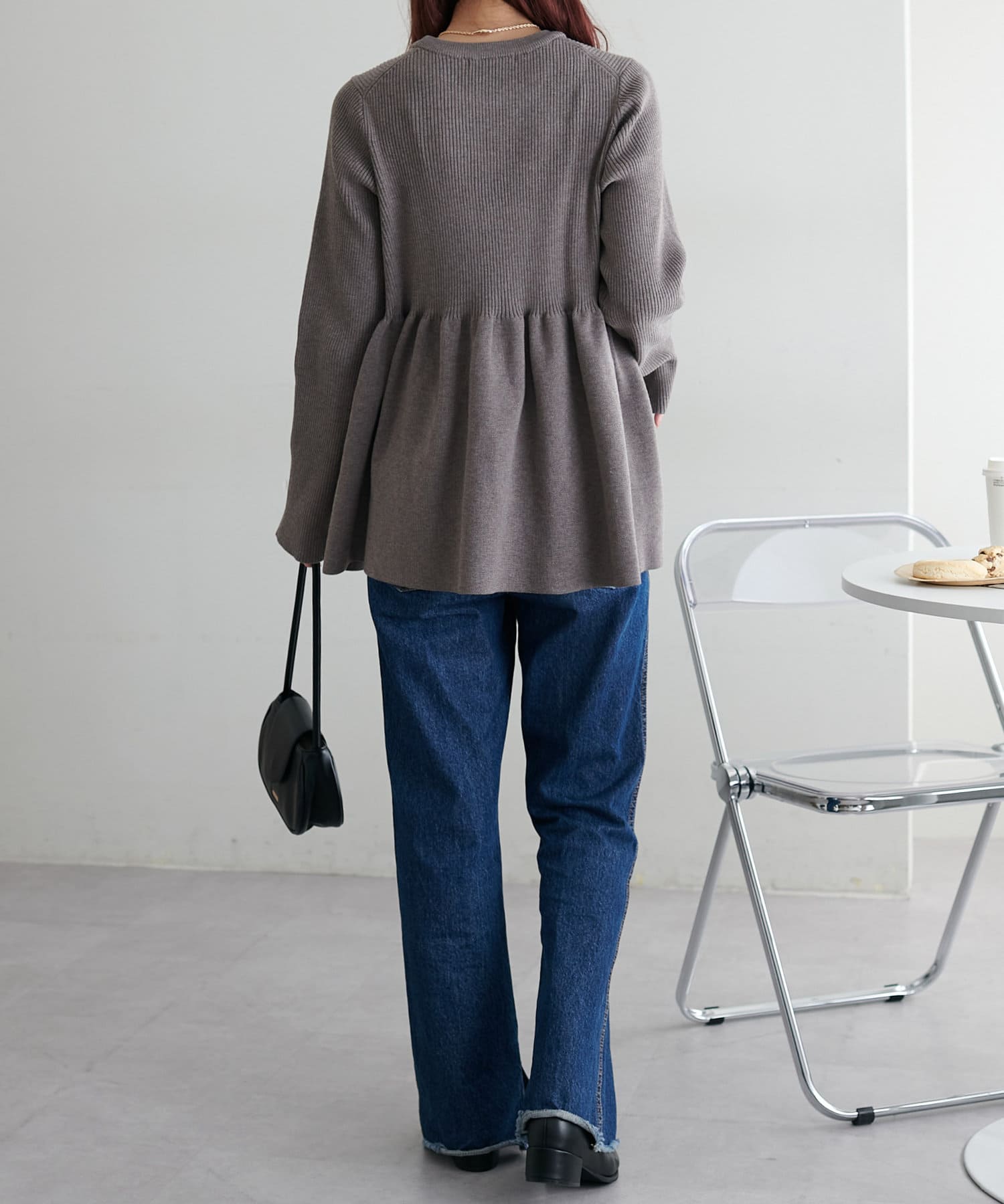 ・ウエストから裾にかけてふわっと広がるペプラムデザインのニット