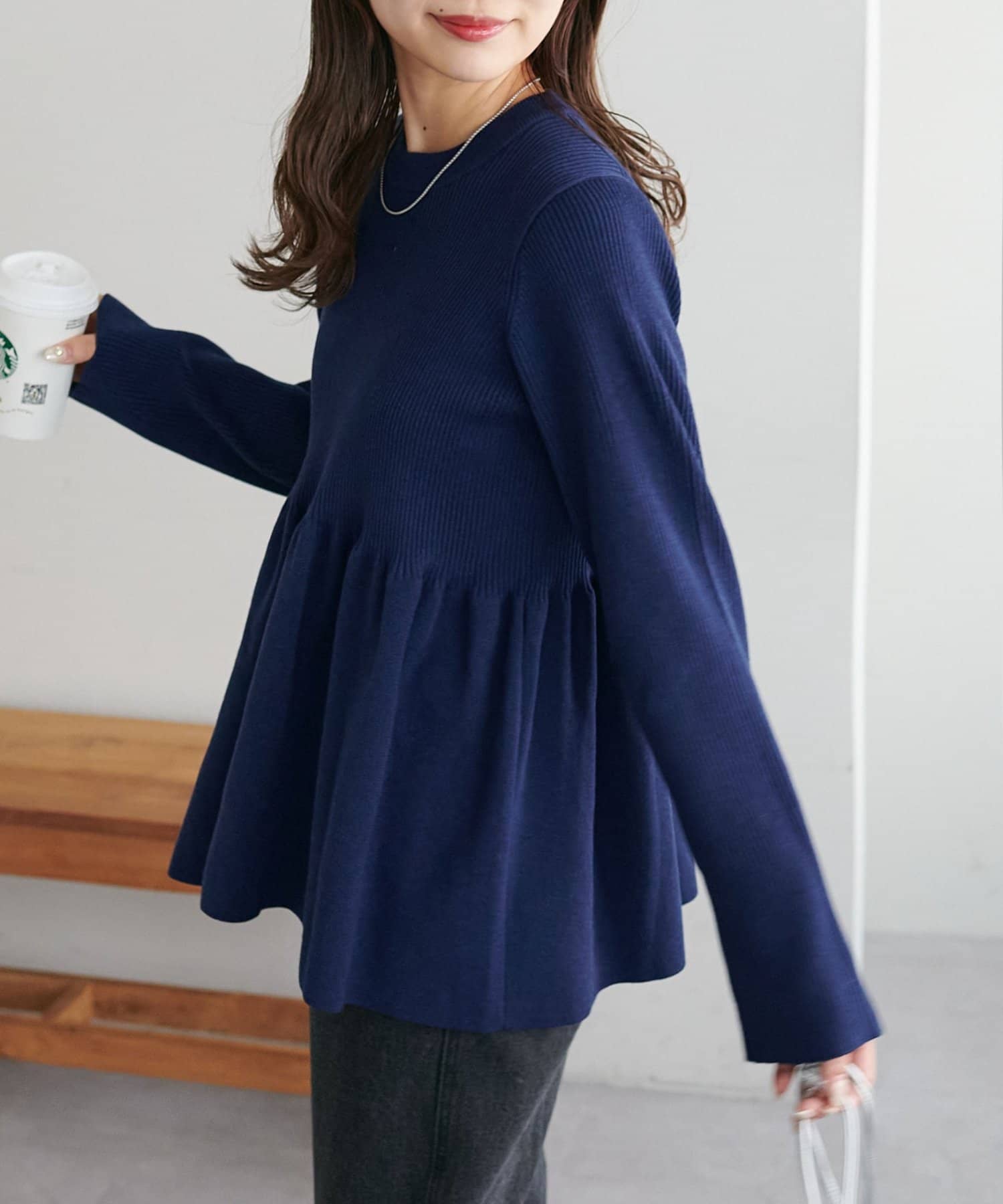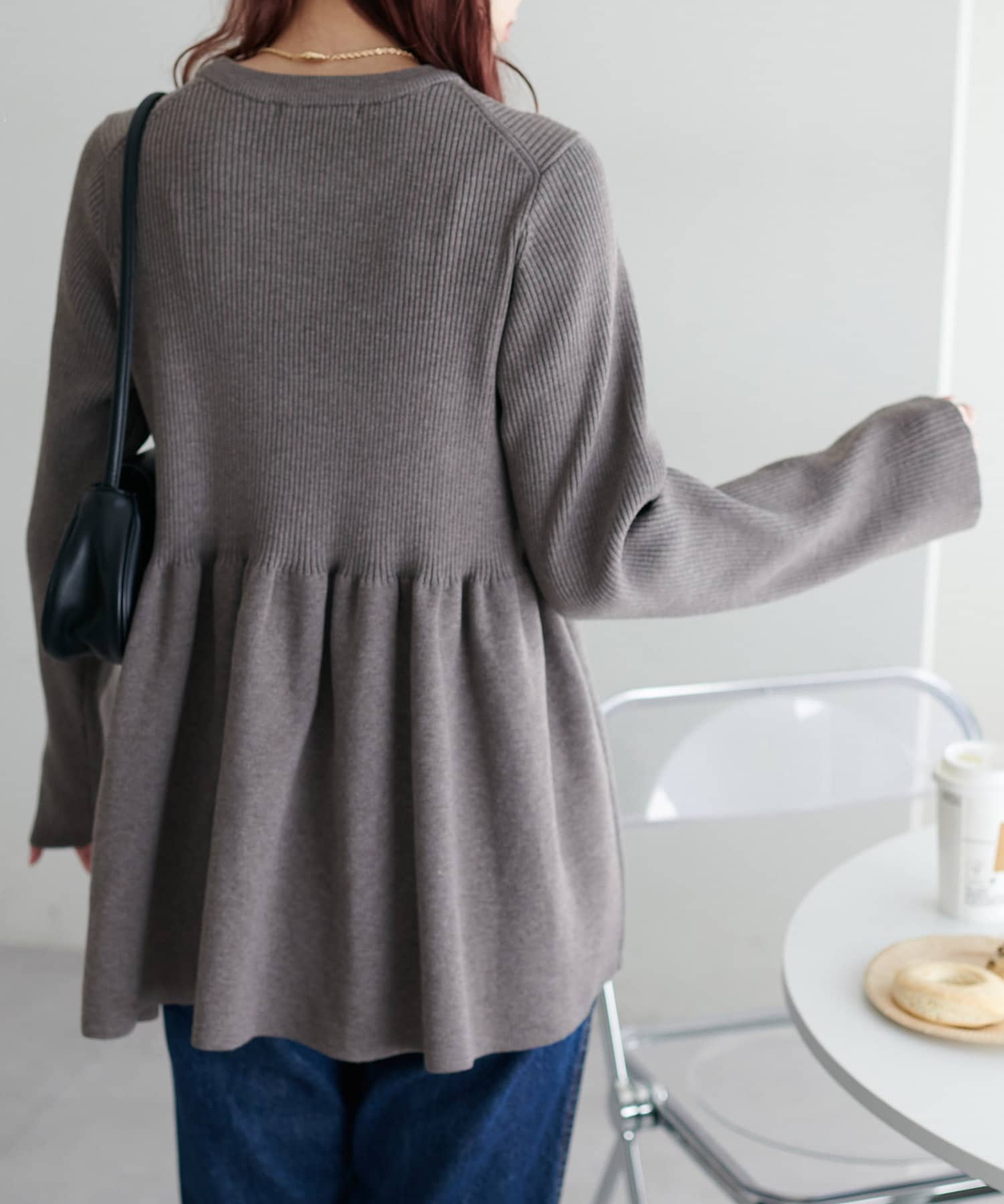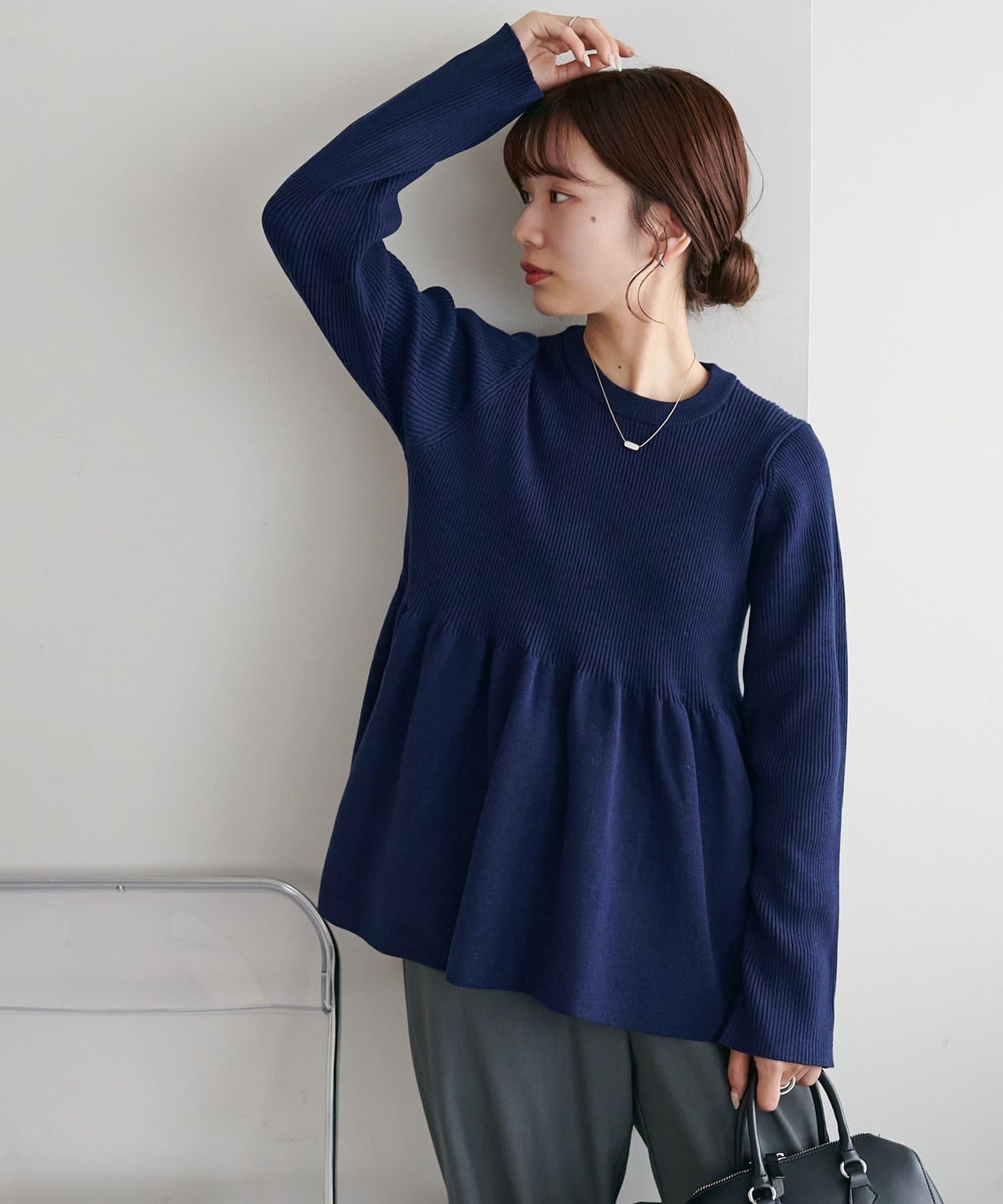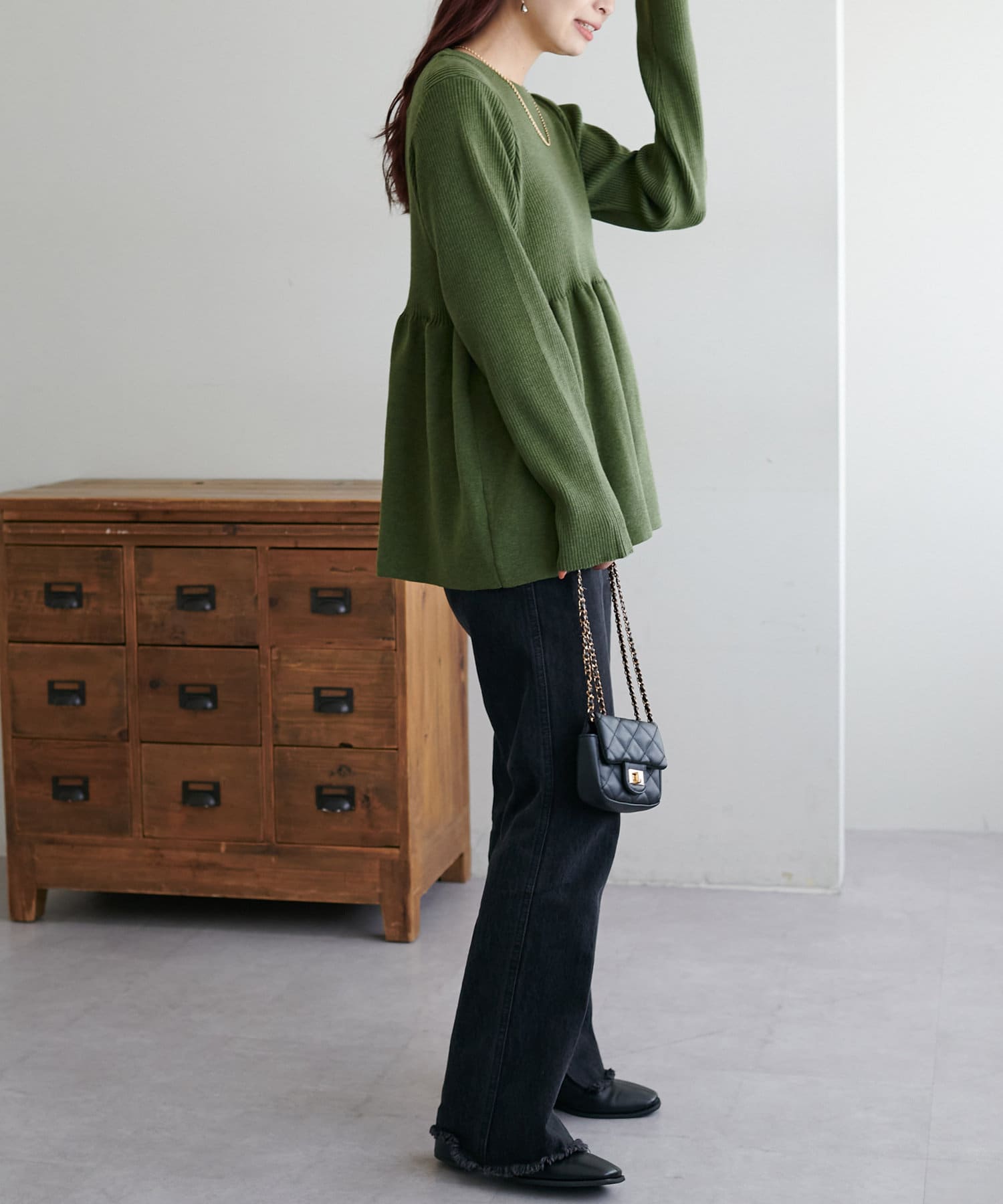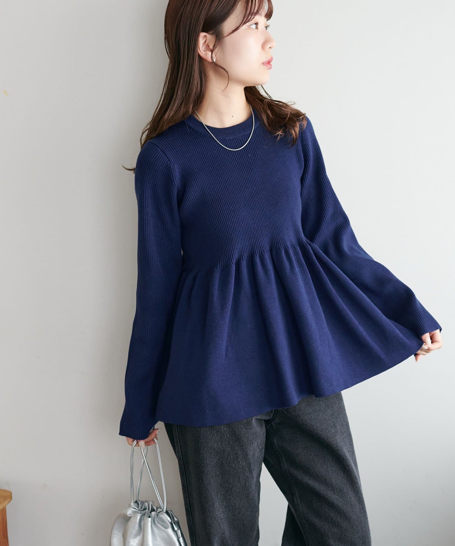 ・ウエストから裾にかけてふわっと広がるペプラムデザインのニット