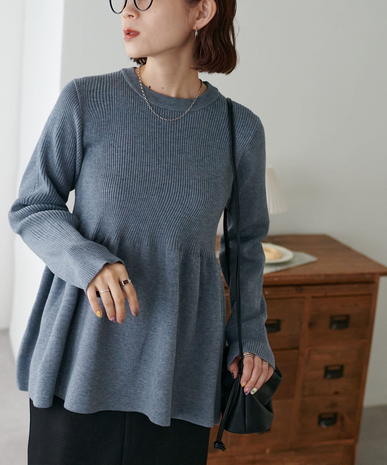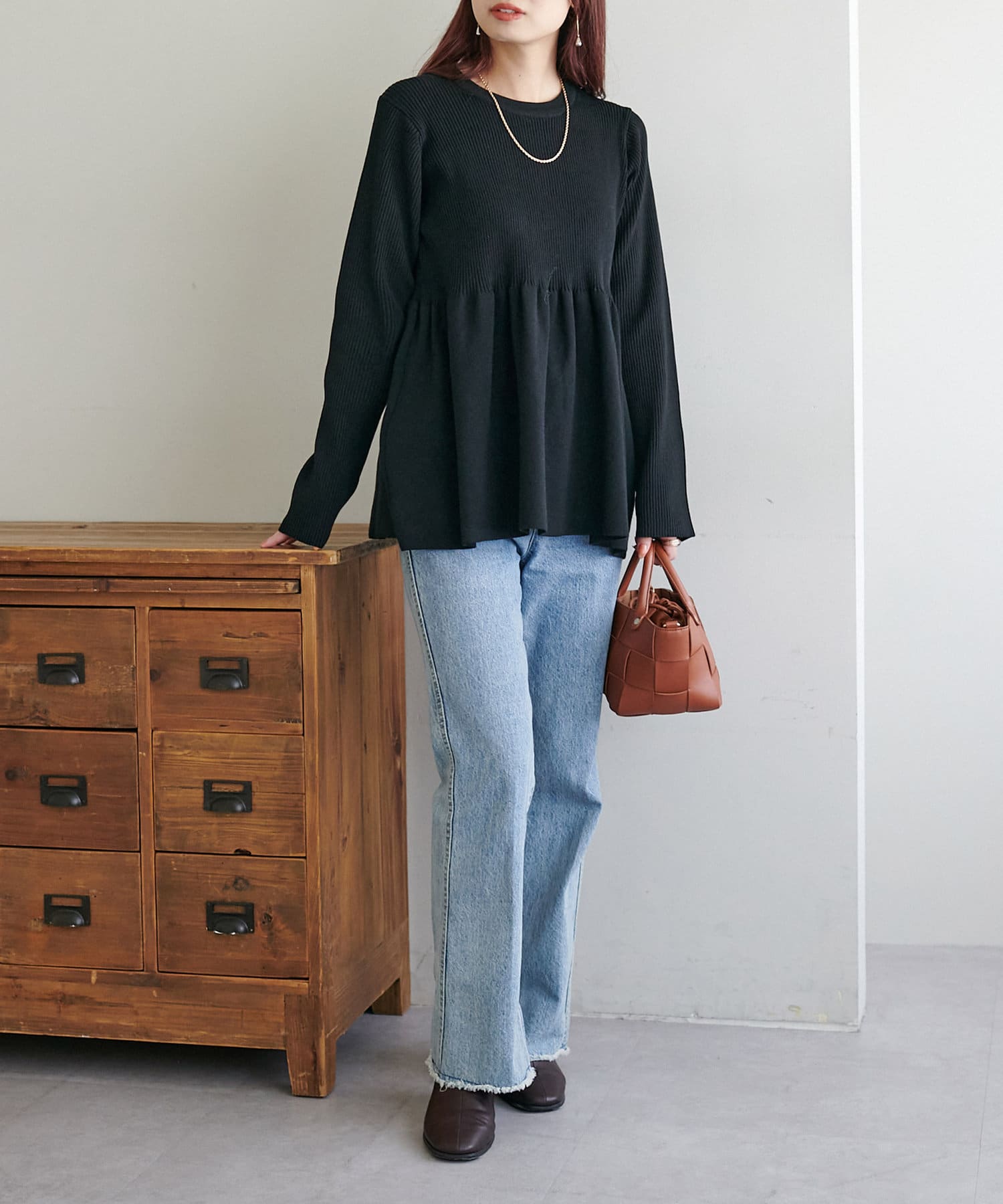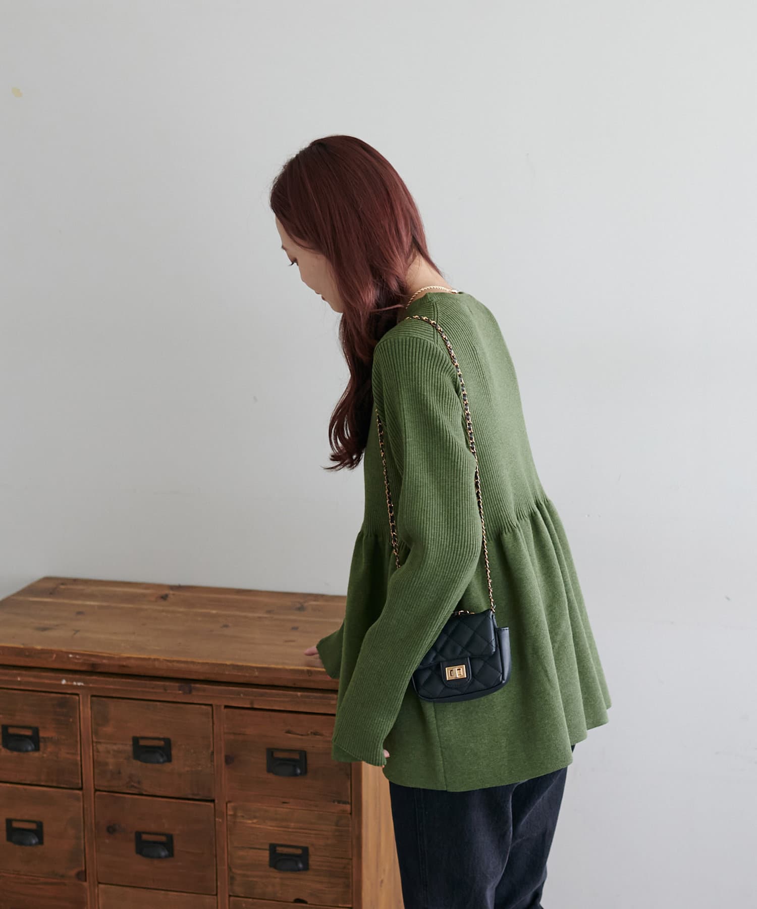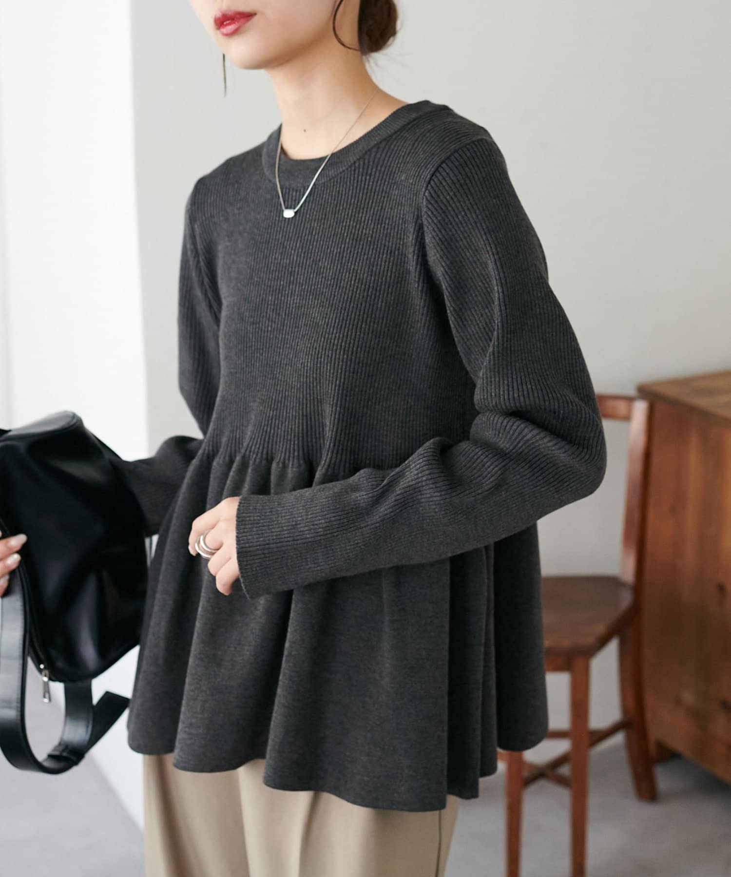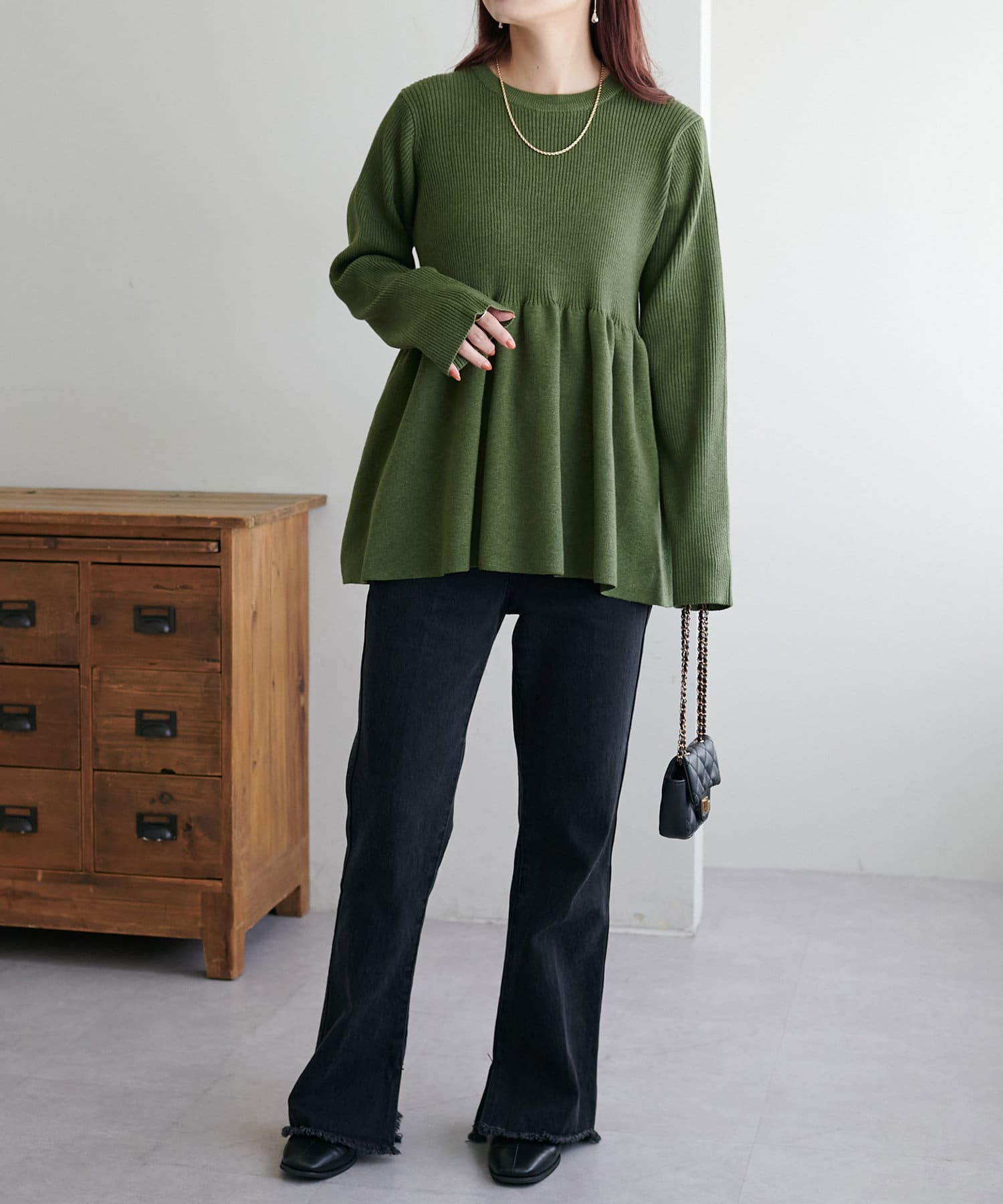 ・ウエストから裾にかけてふわっと広がるペプラムデザインのニット