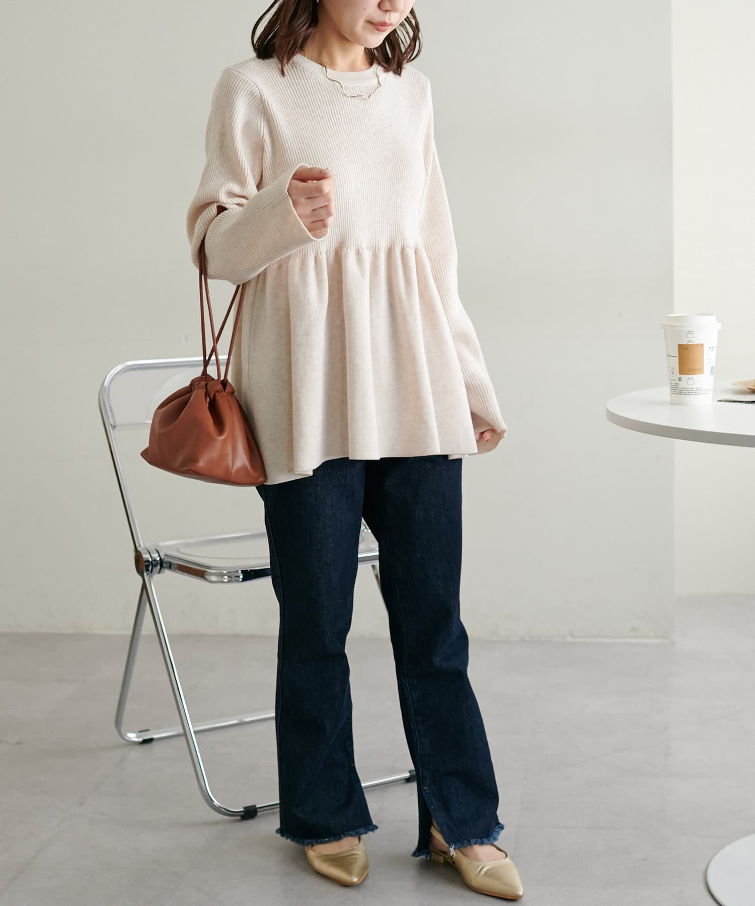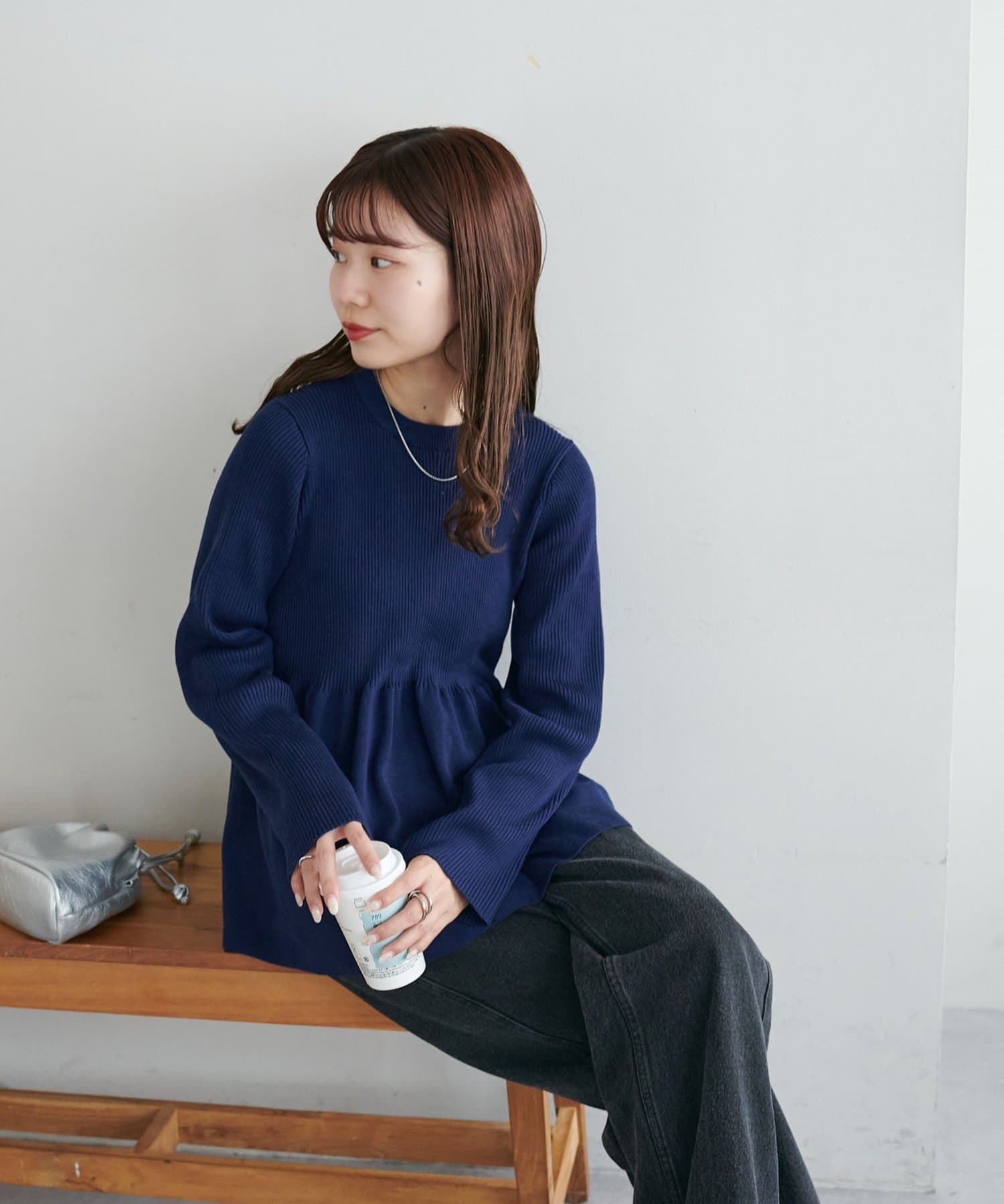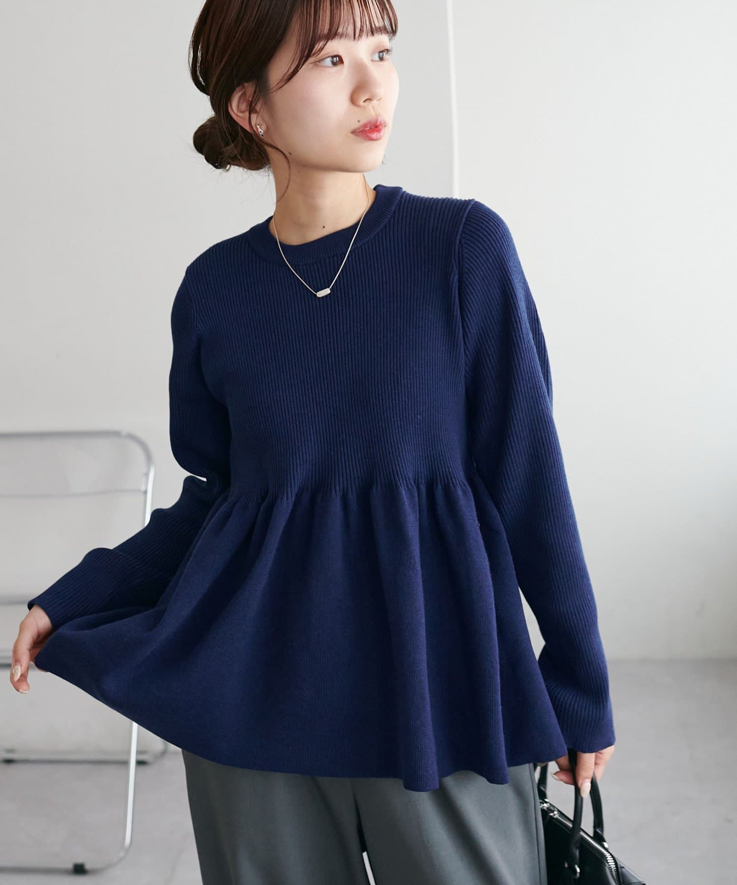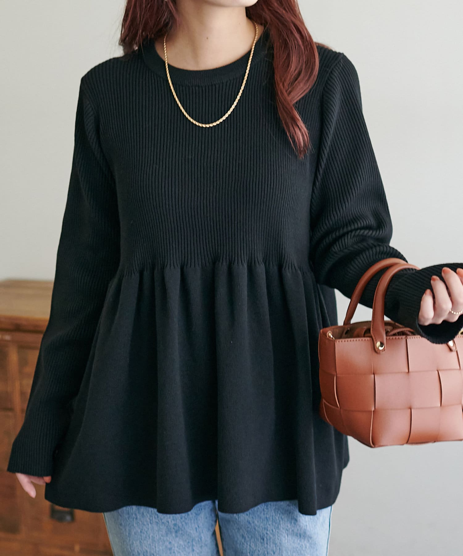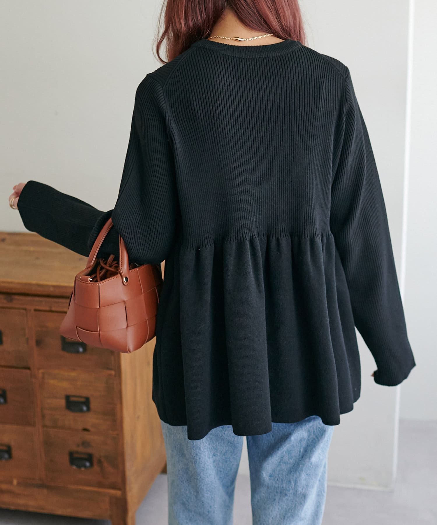 ・ウエストから裾にかけてふわっと広がるペプラムデザインのニット