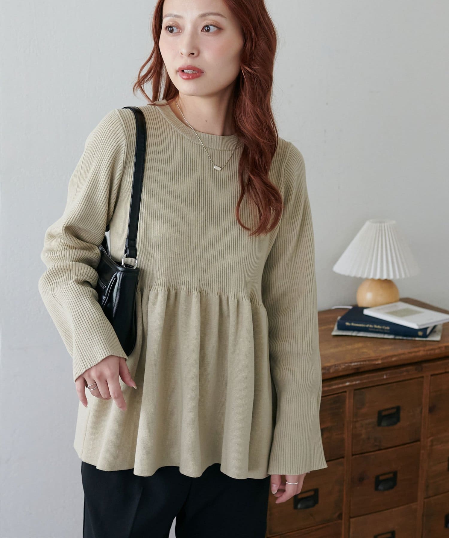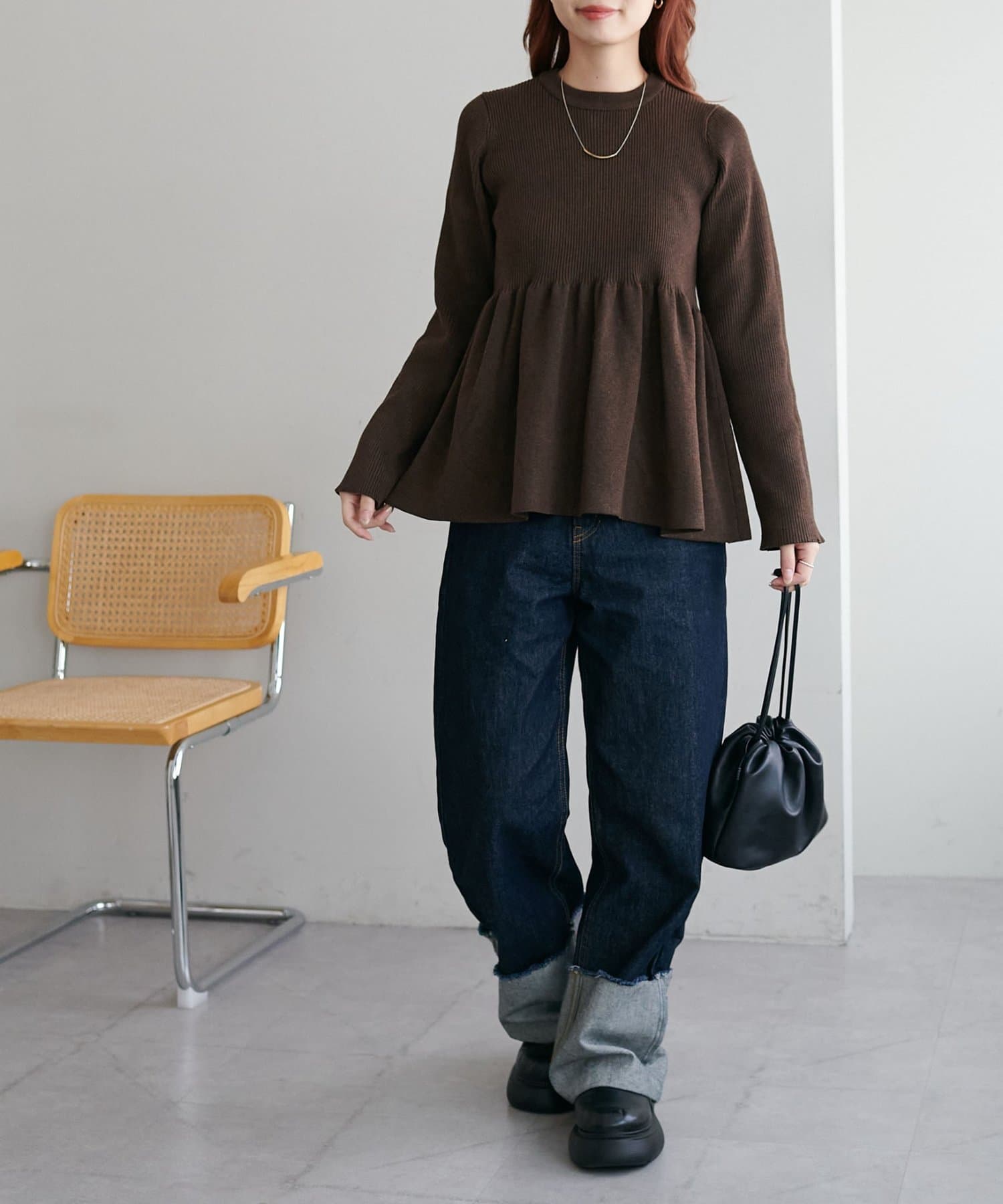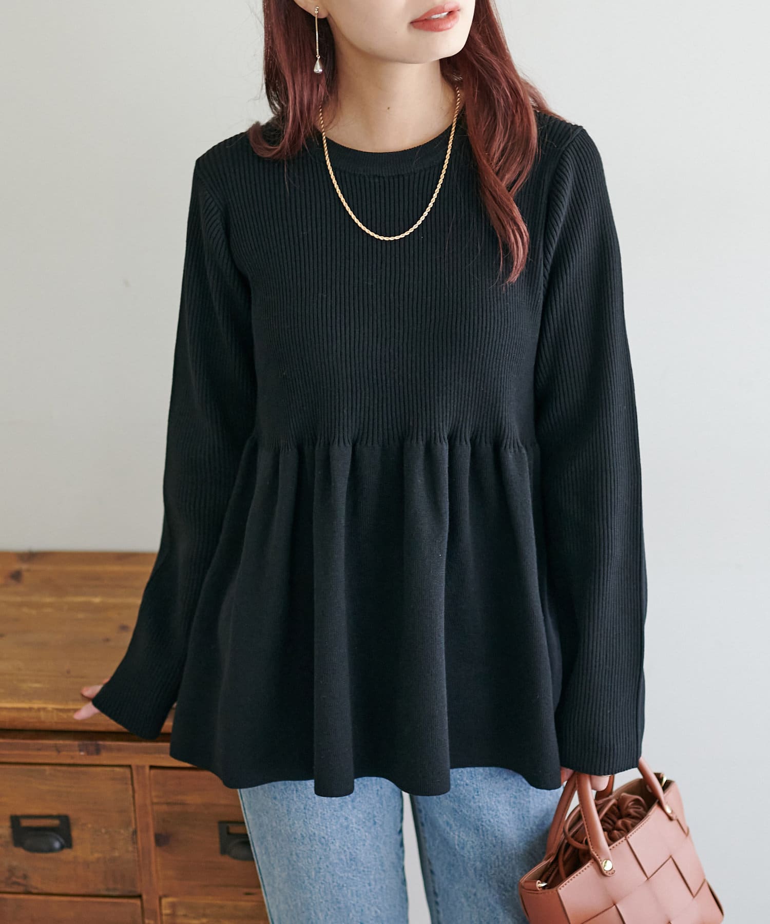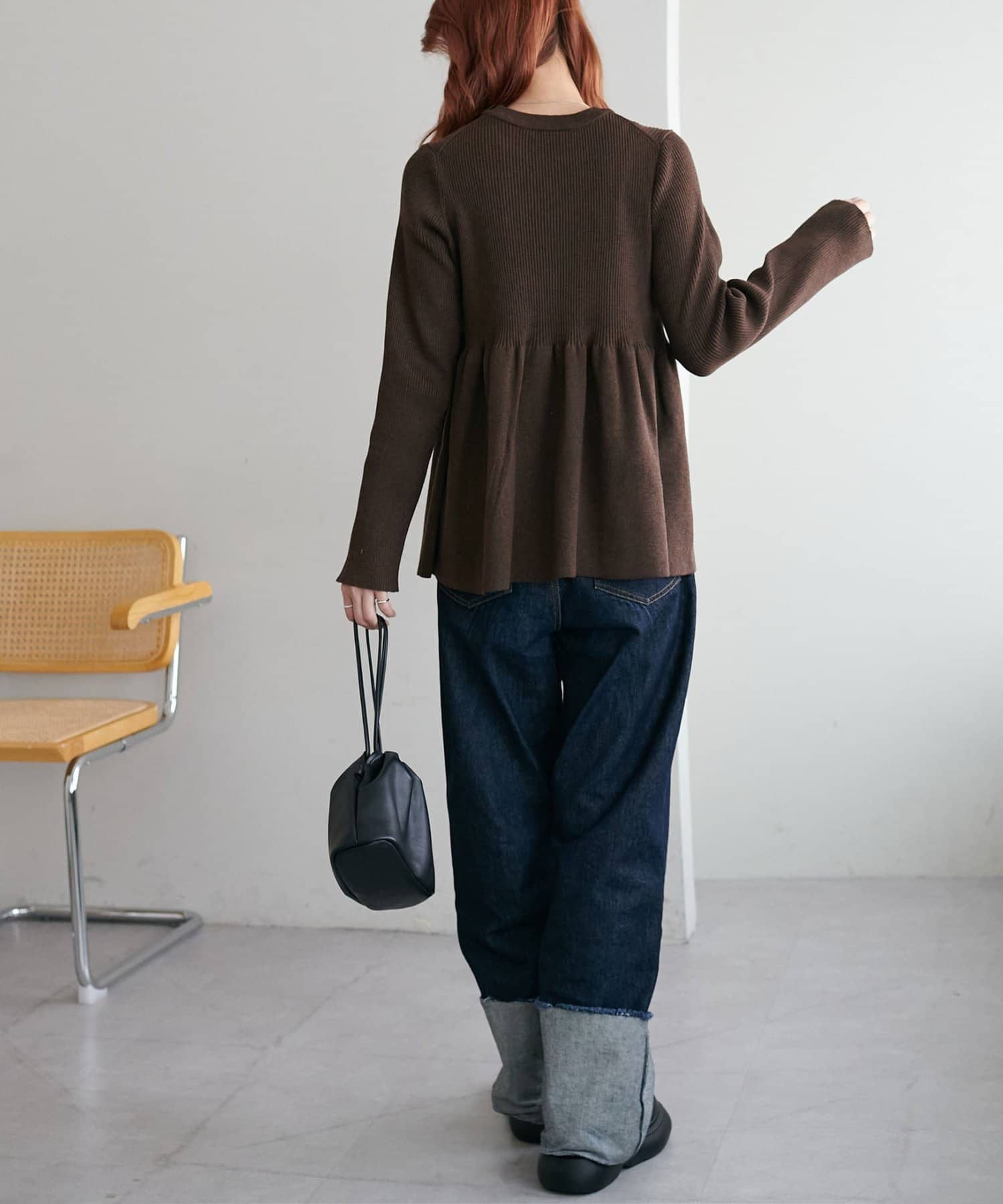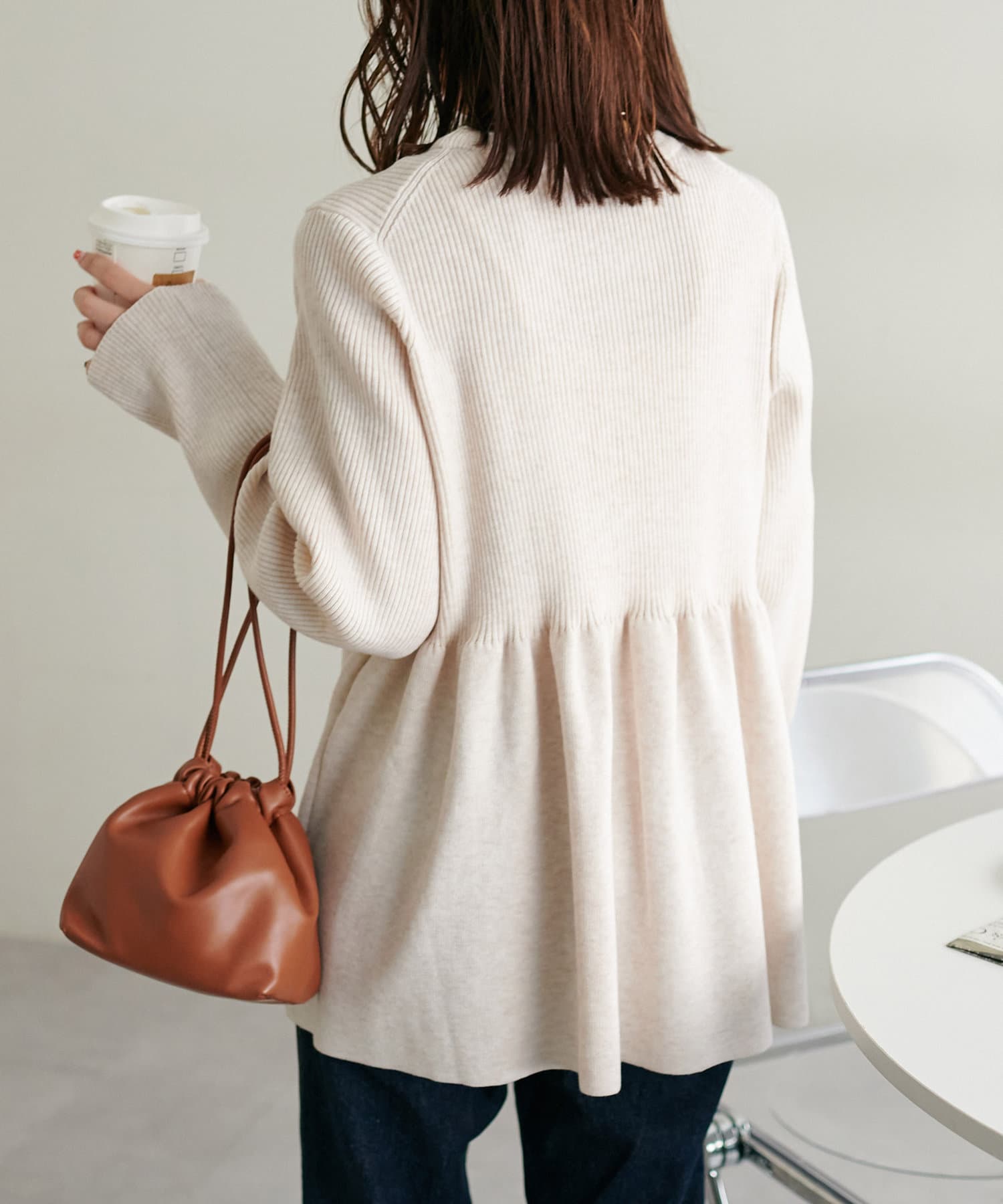 ・ウエストから裾にかけてふわっと広がるペプラムデザインのニット