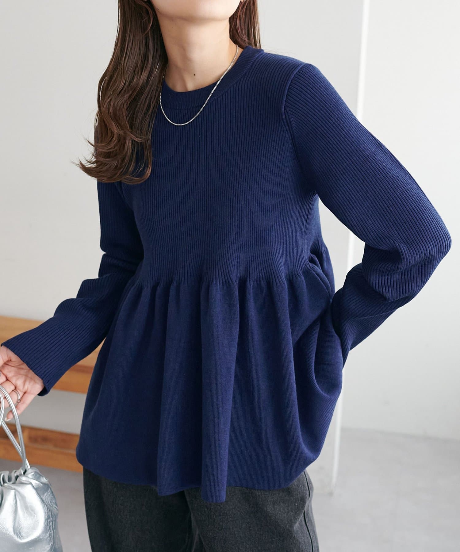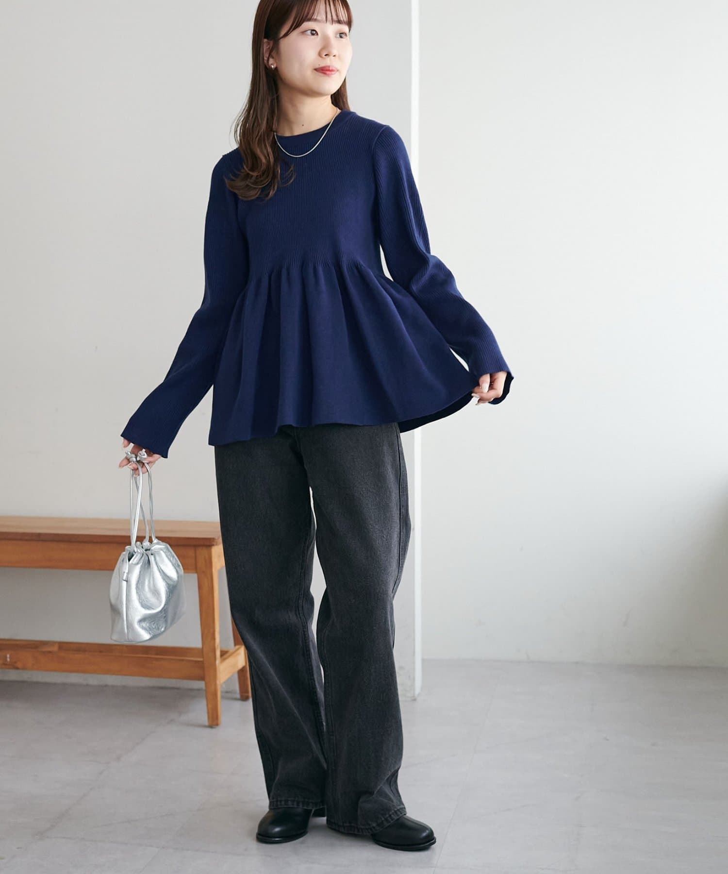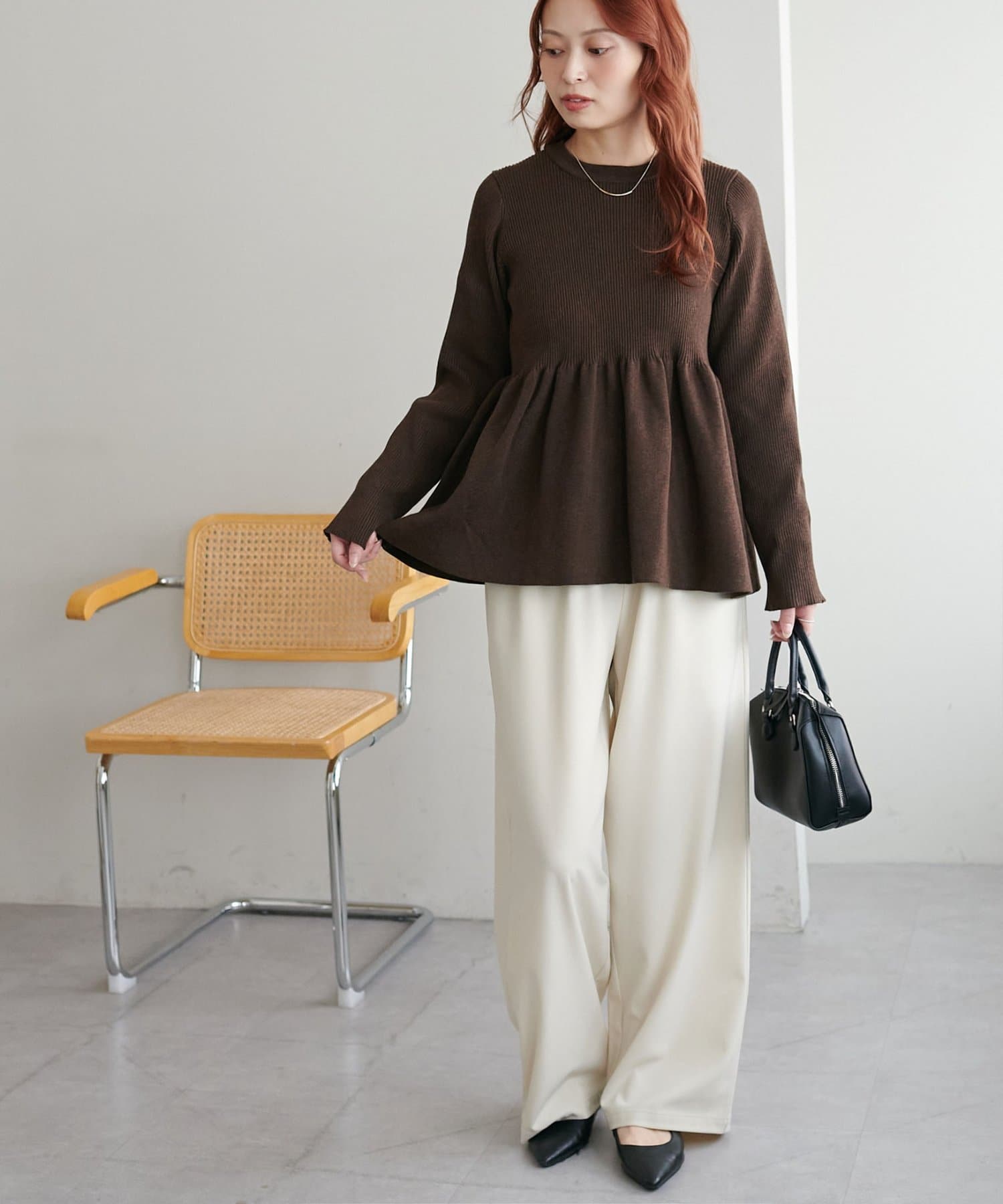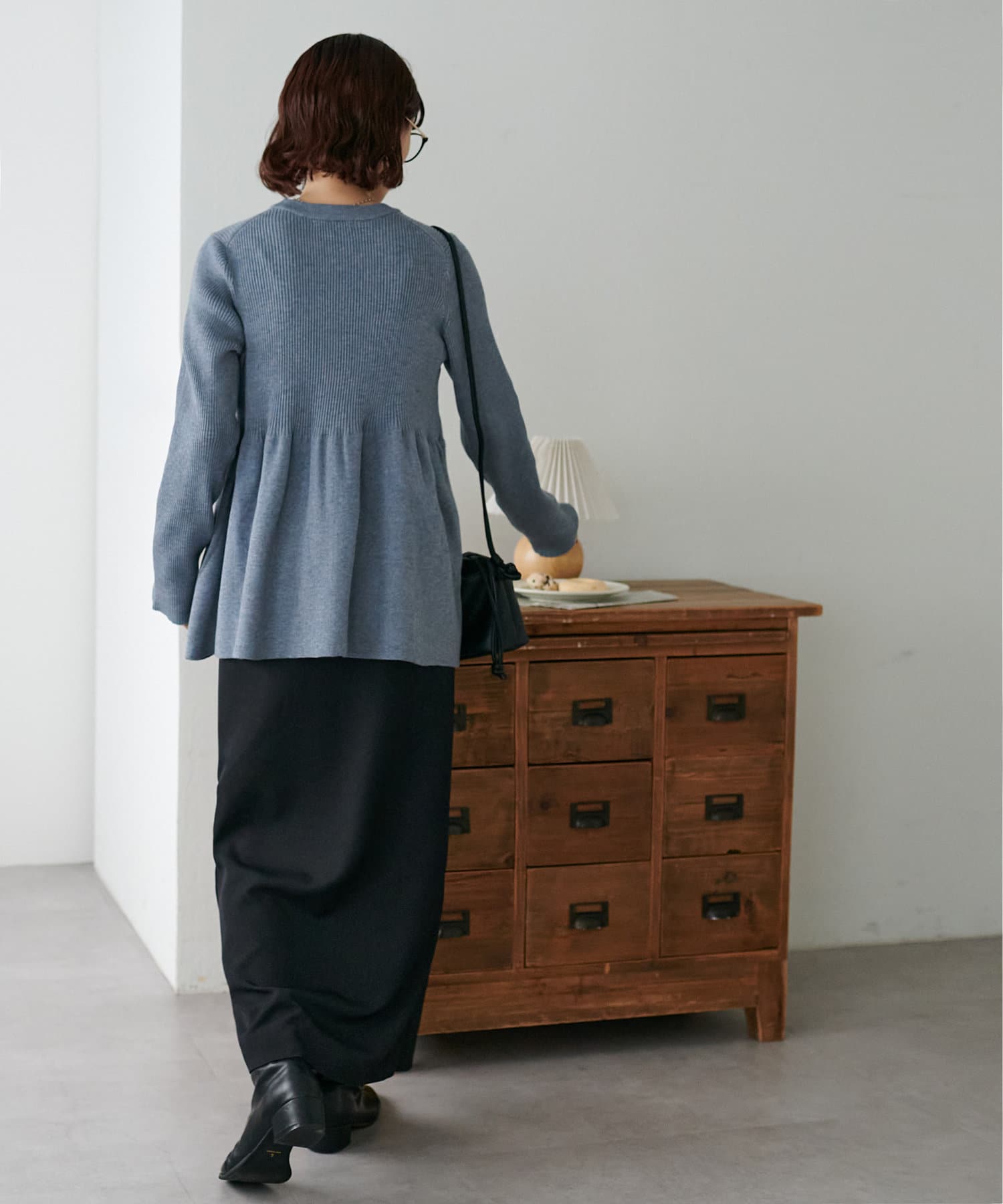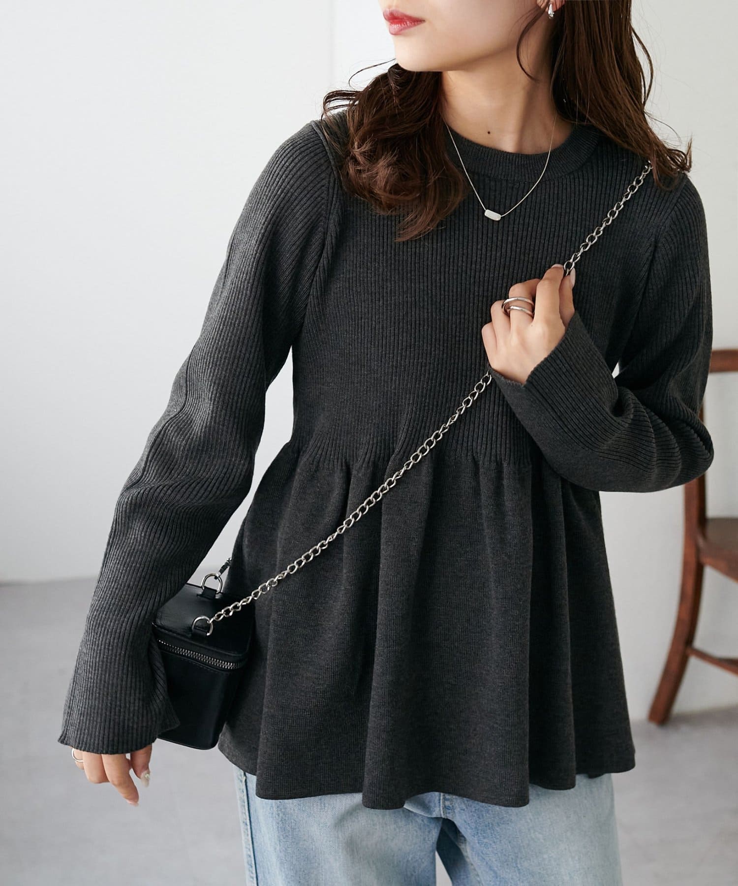 ・ウエストから裾にかけてふわっと広がるペプラムデザインのニット