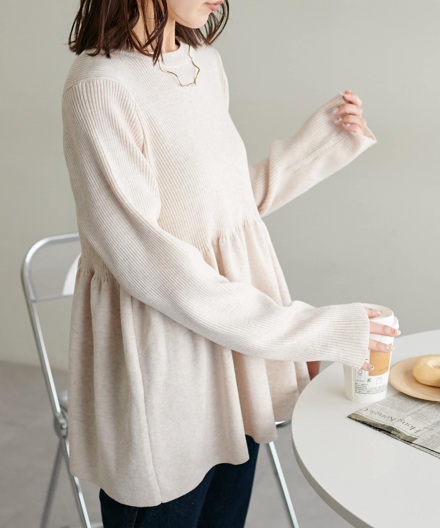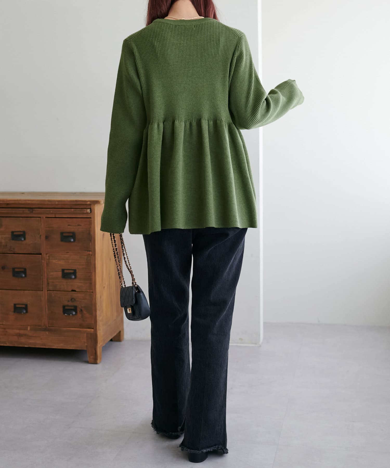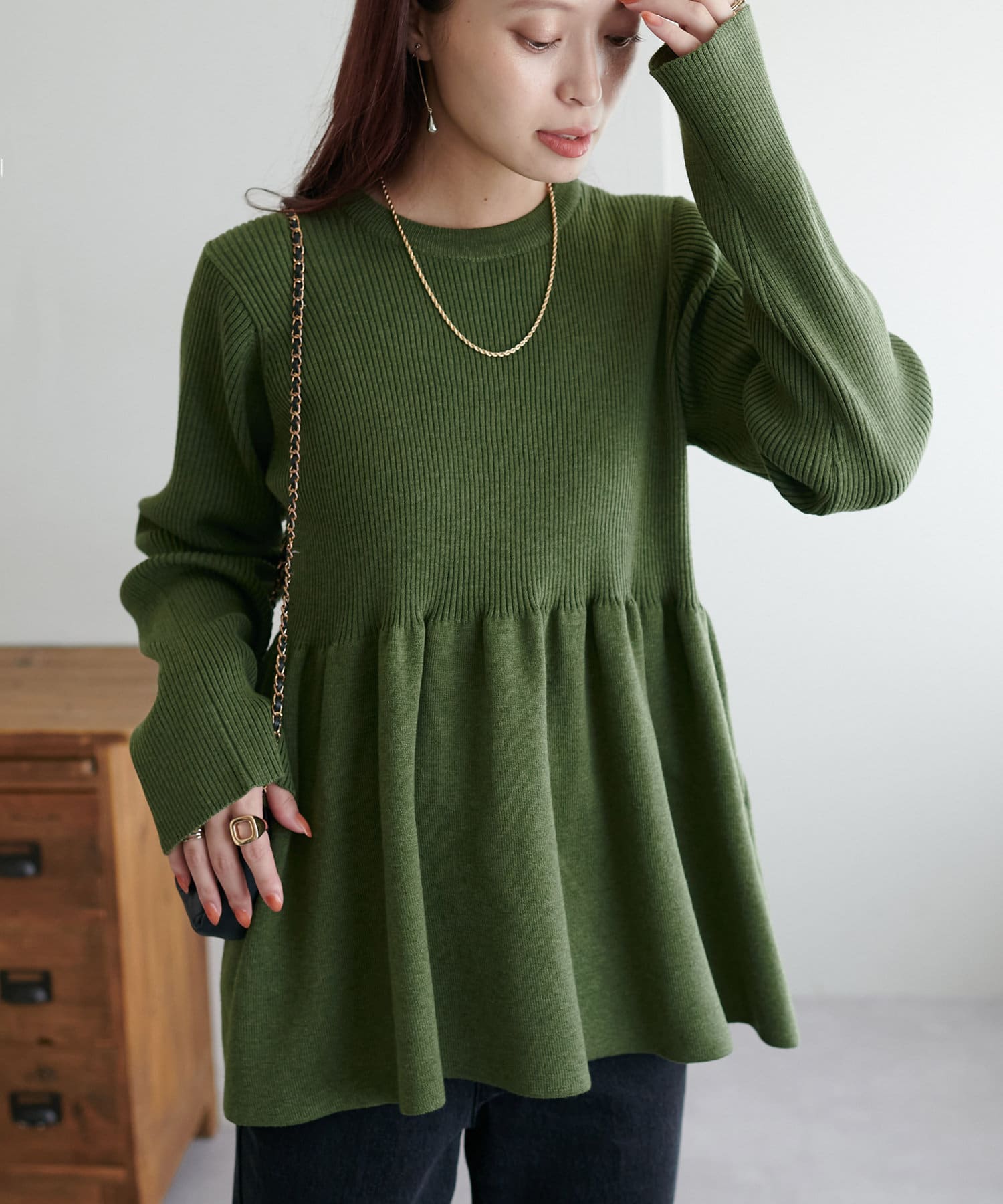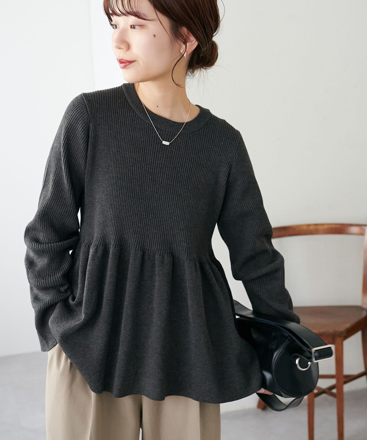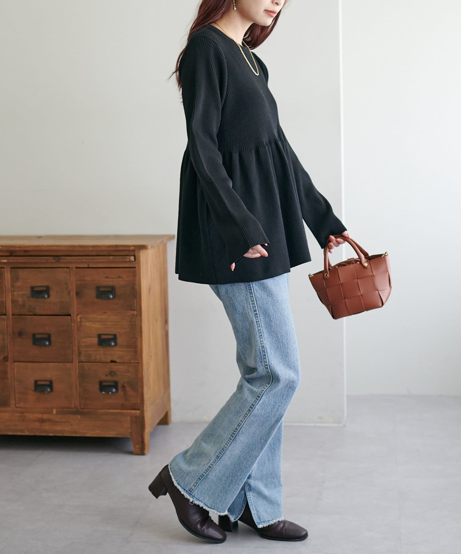 ・ウエストから裾にかけてふわっと広がるペプラムデザインのニット
