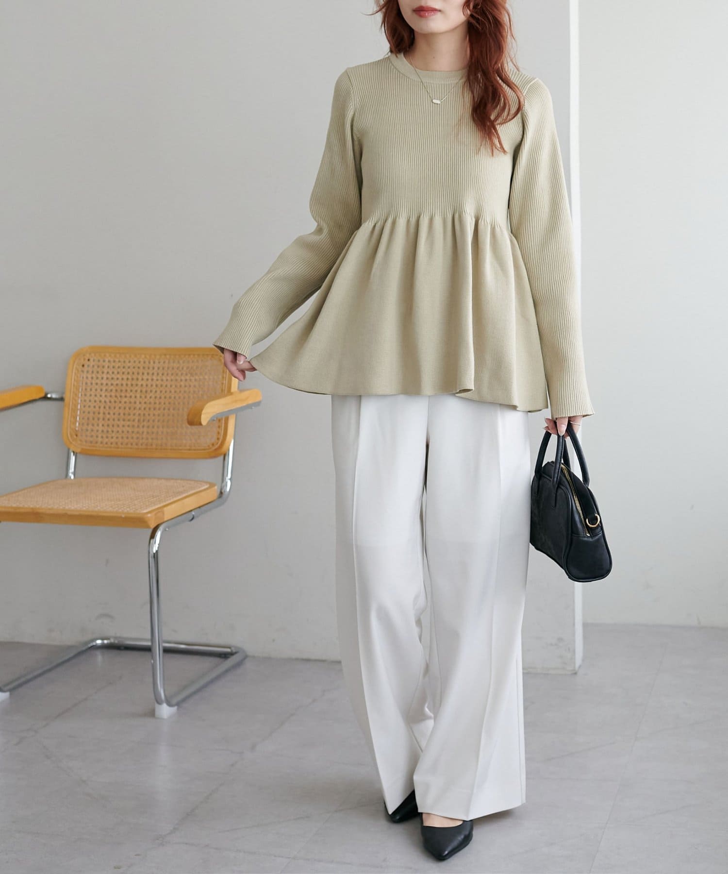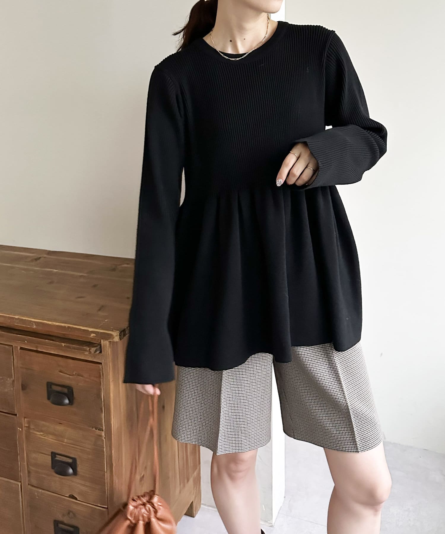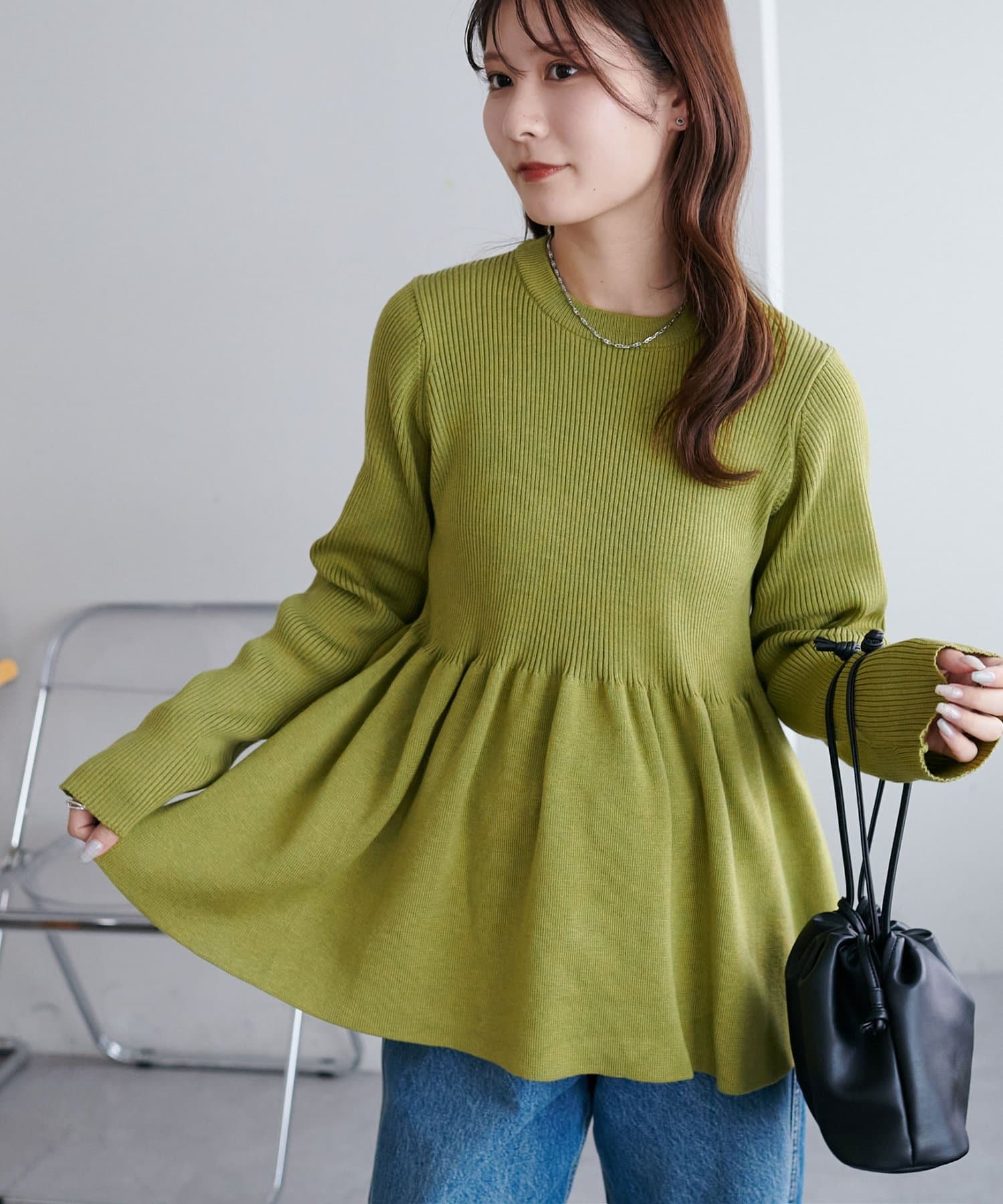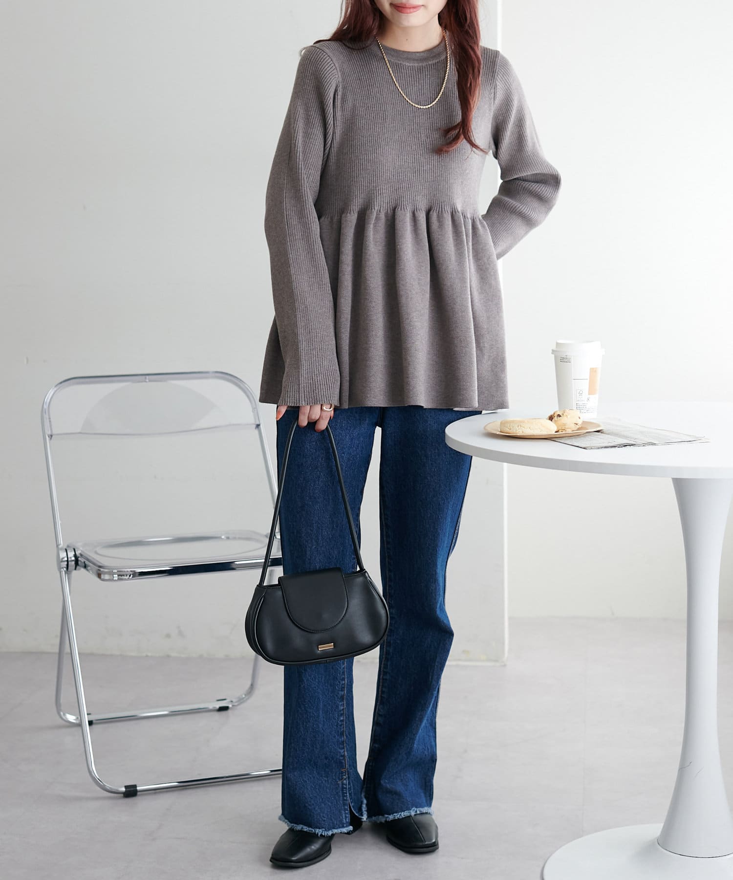 ・ウエストから裾にかけてふわっと広がるペプラムデザインのニット