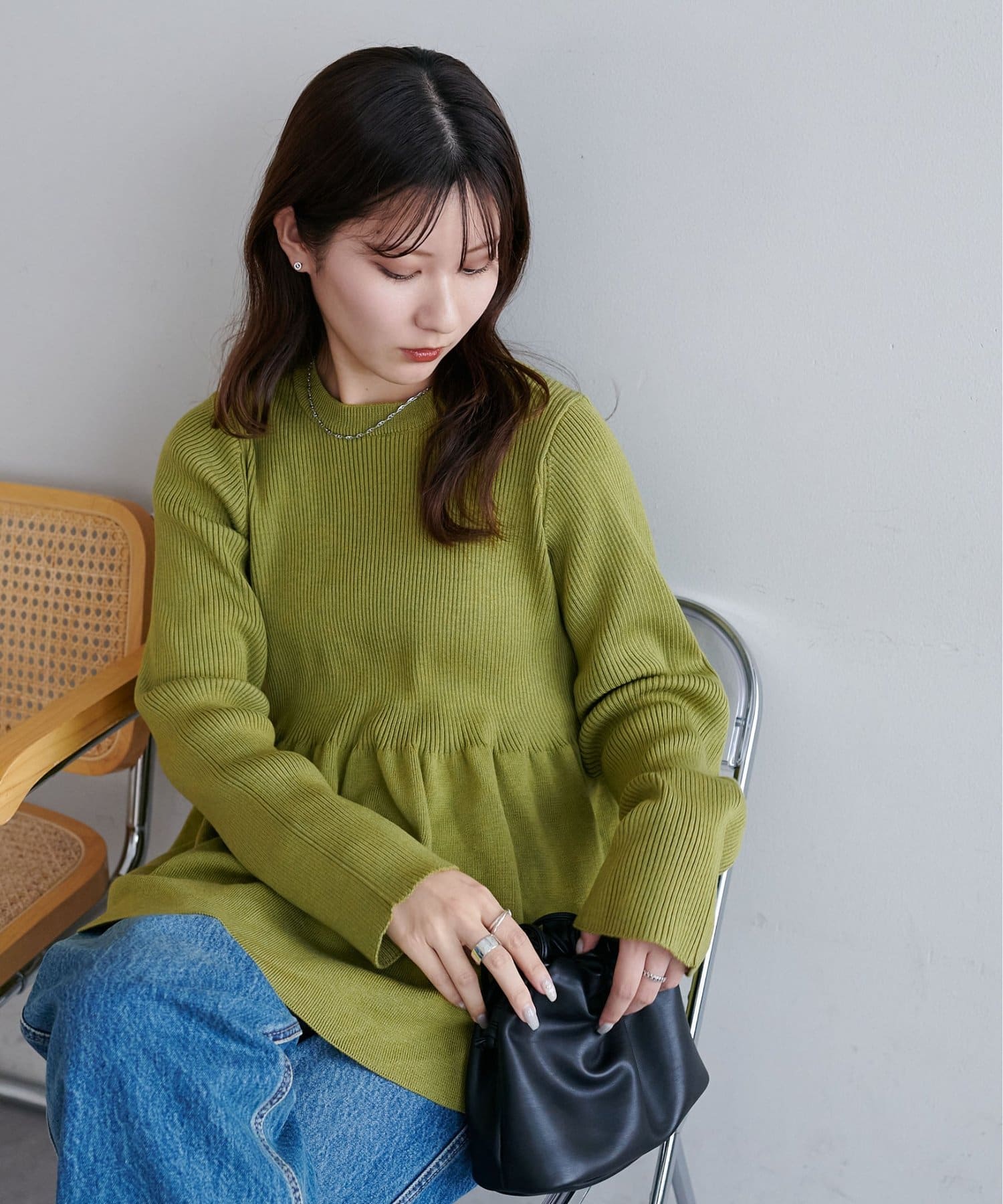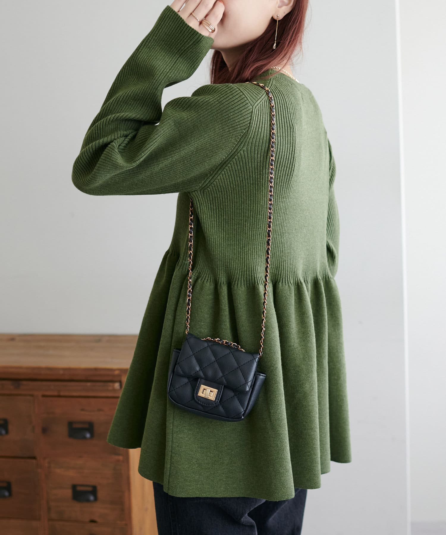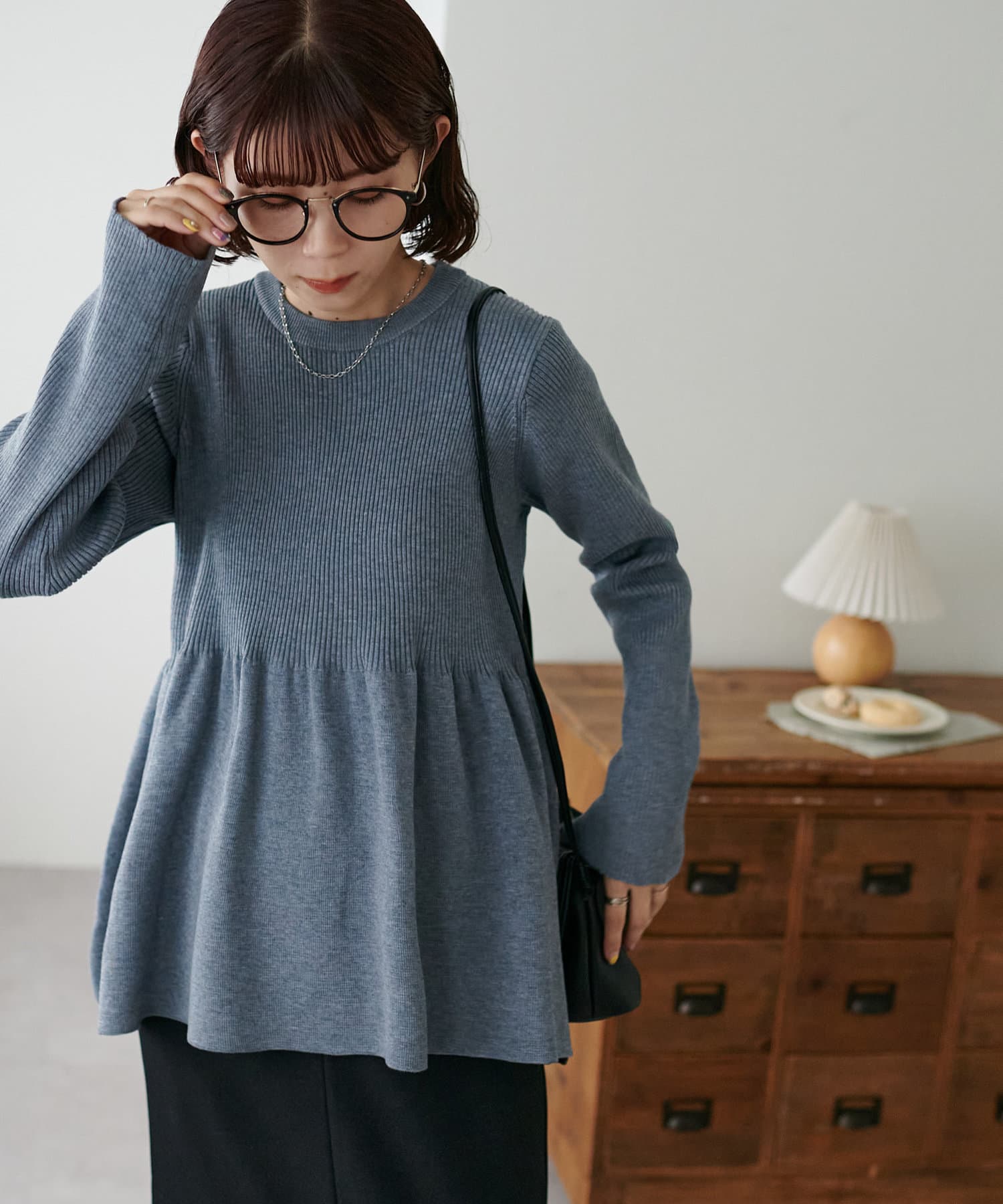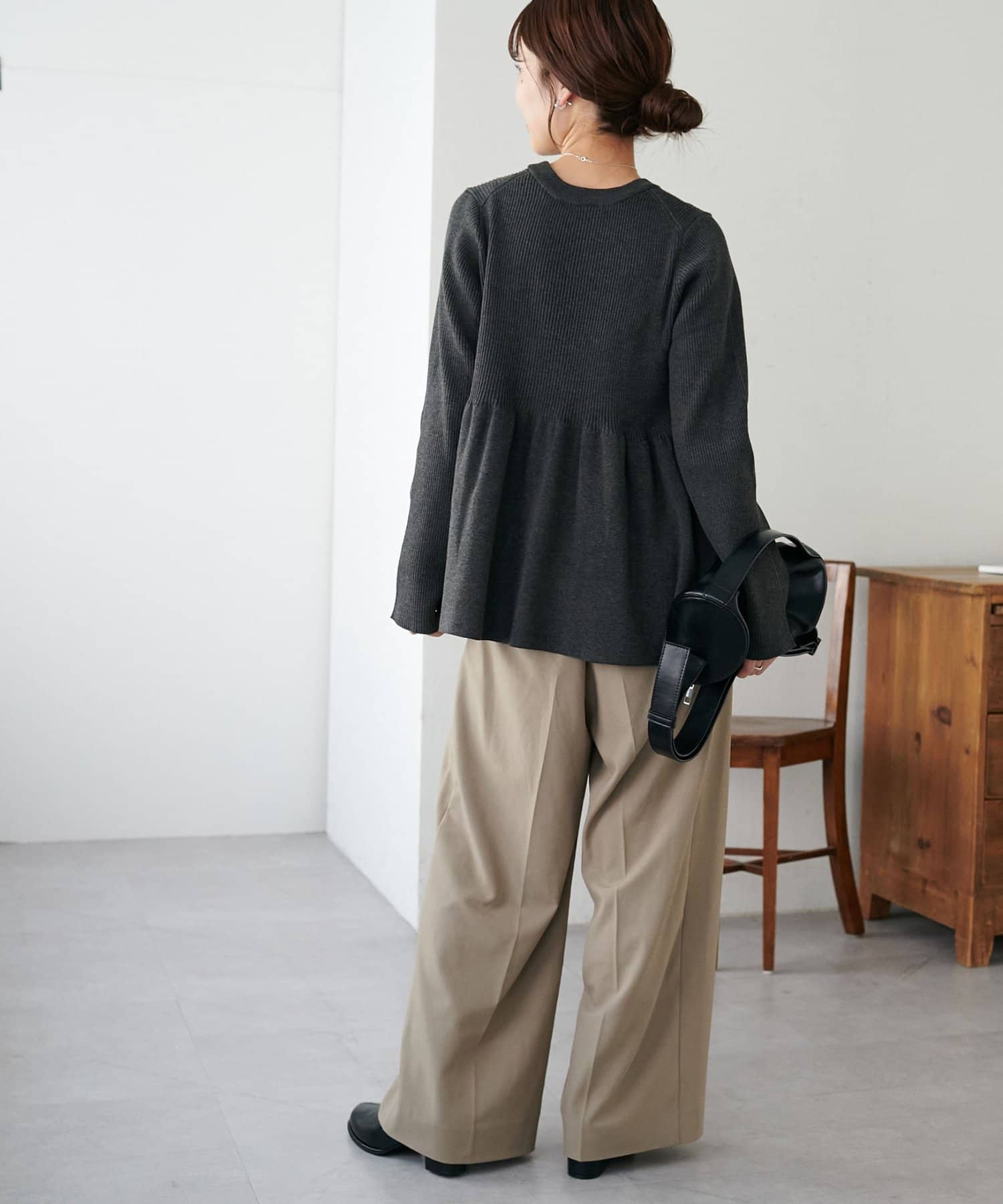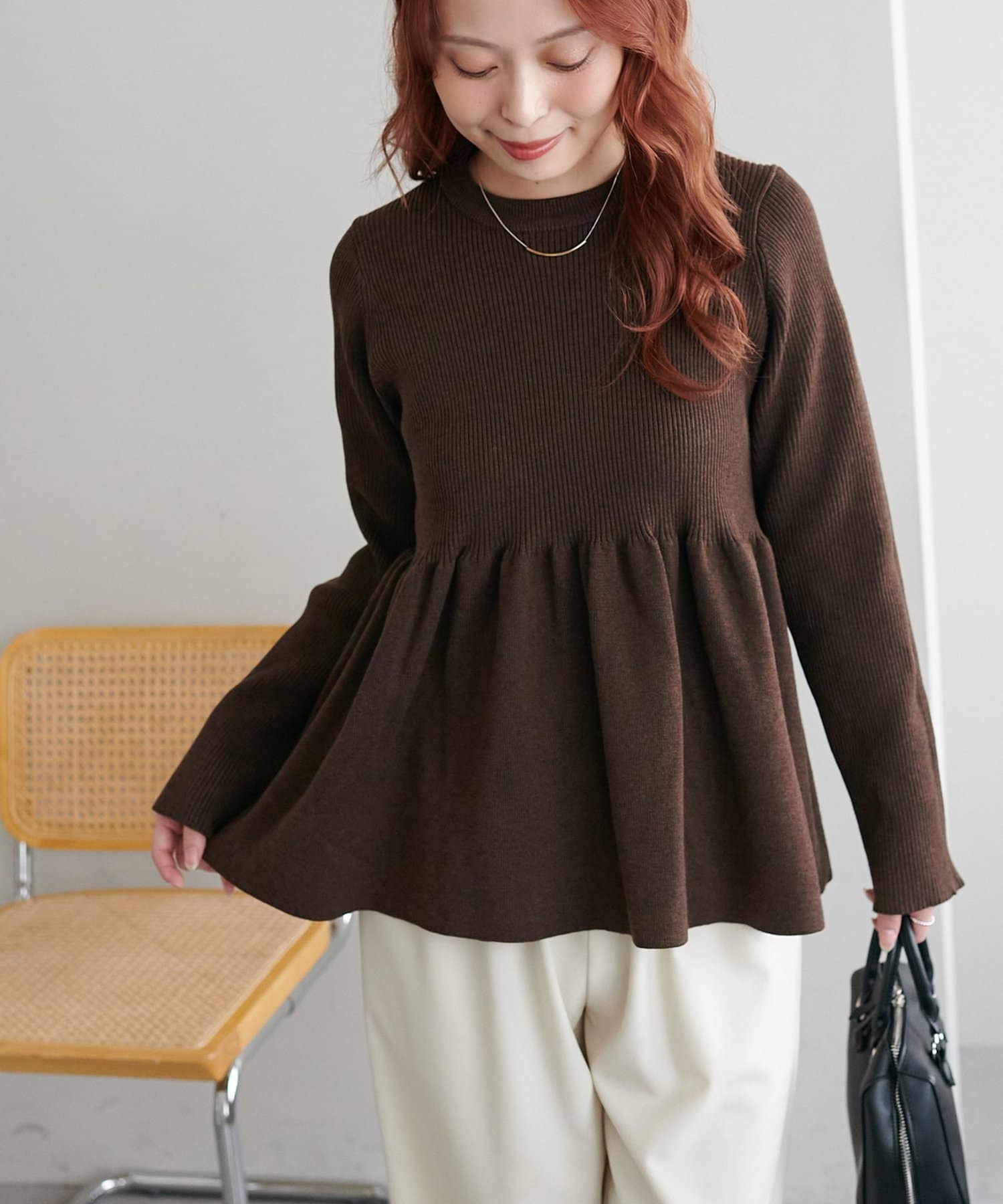 ・ウエストから裾にかけてふわっと広がるペプラムデザインのニット