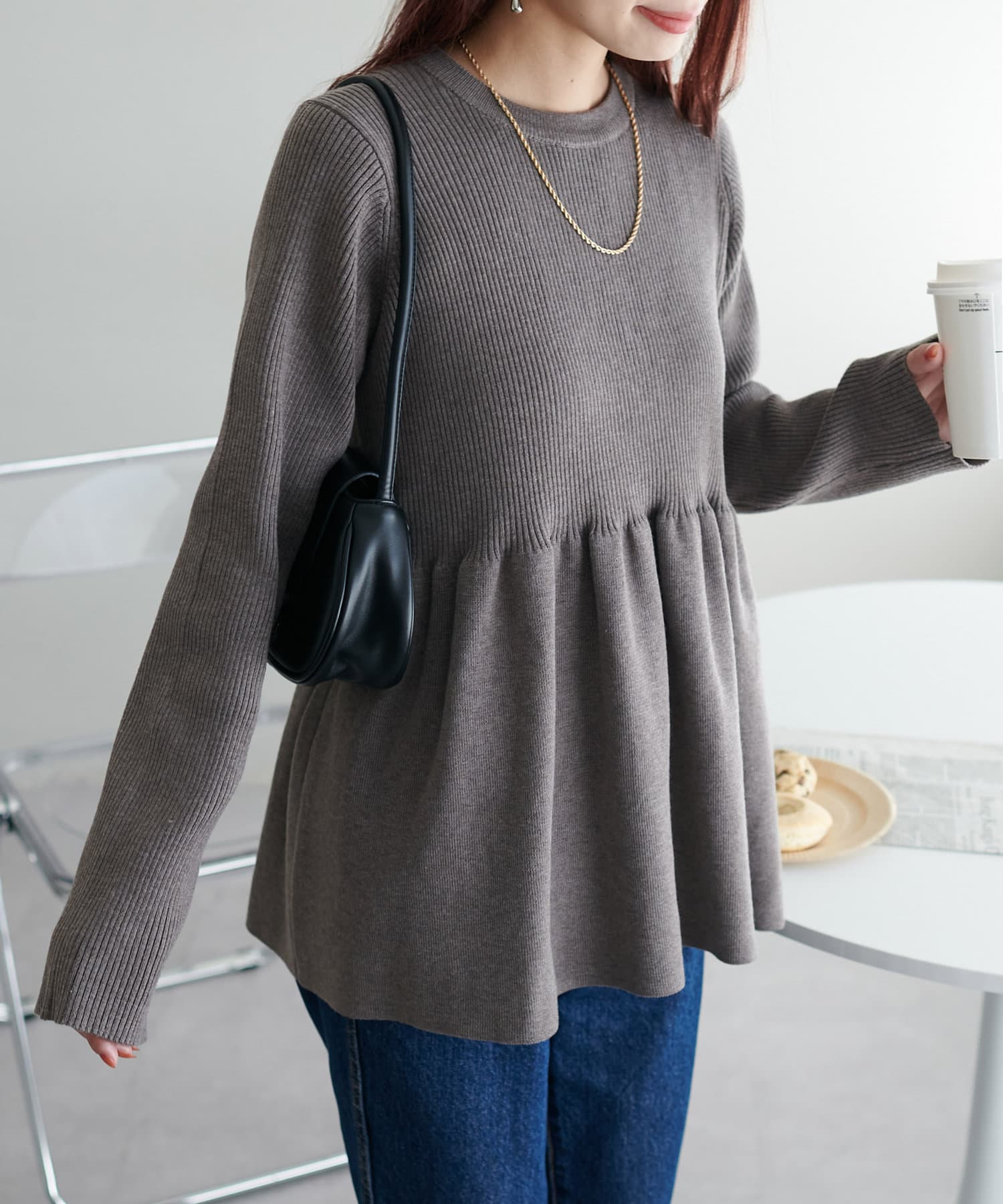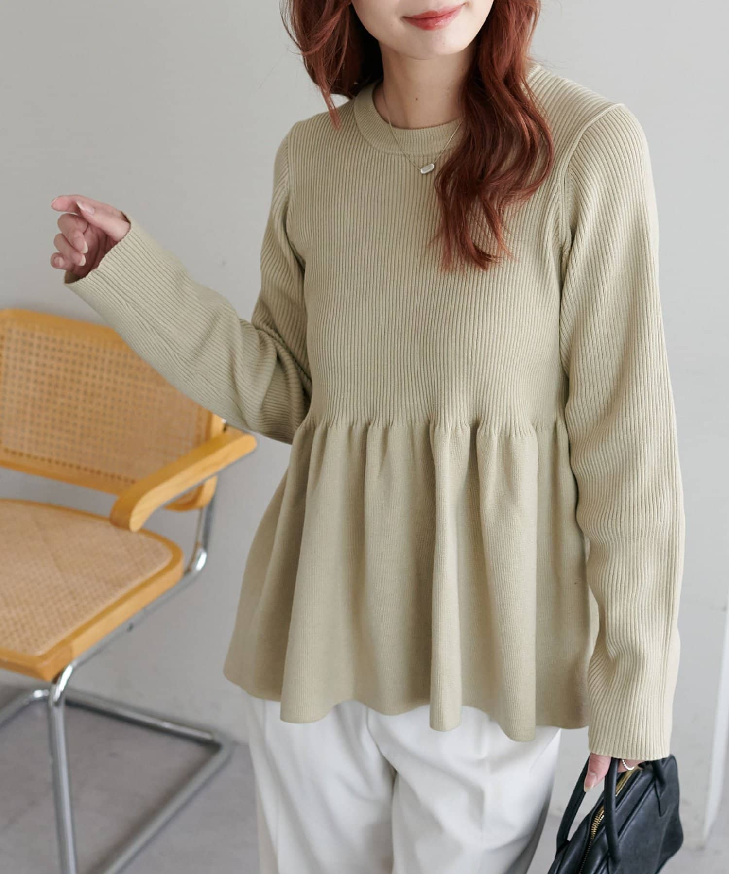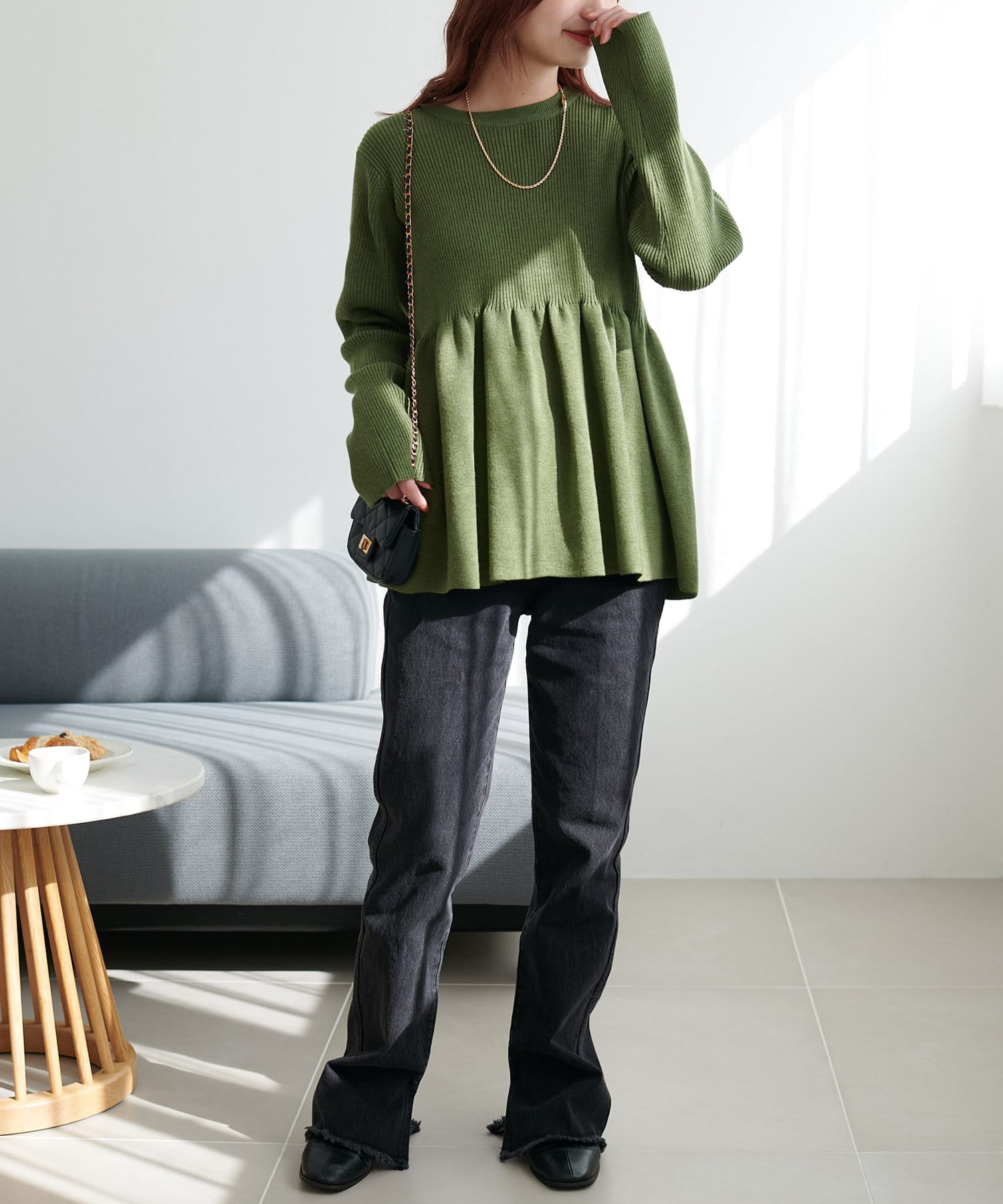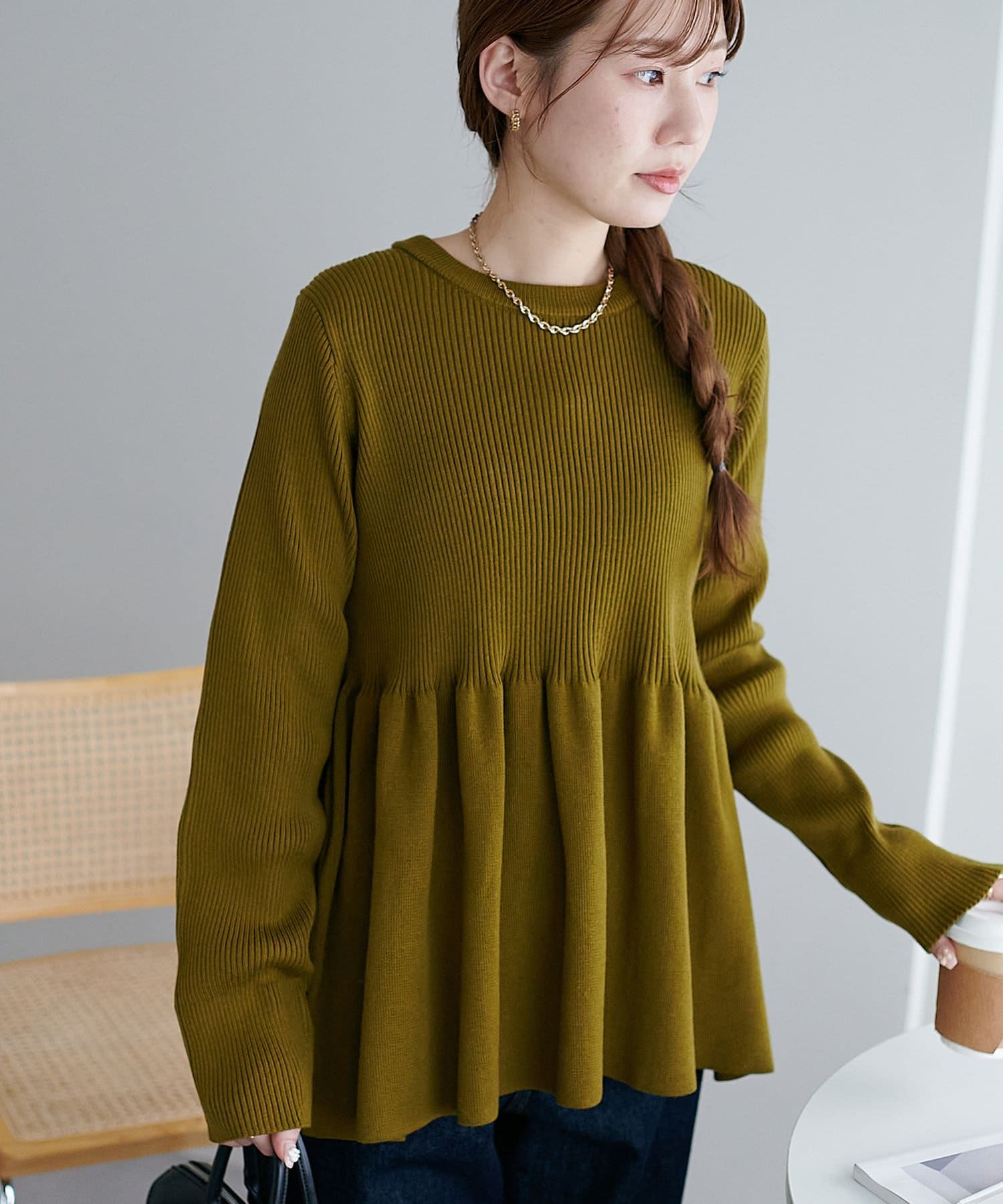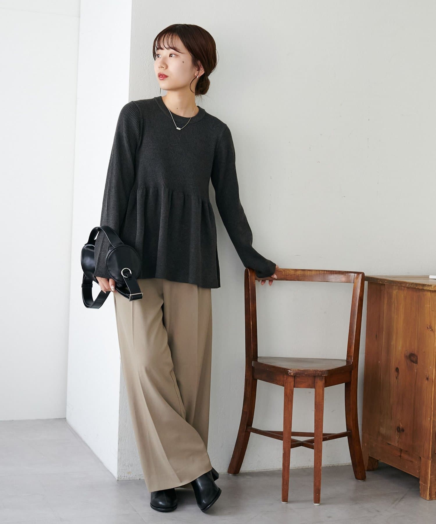 ・ウエストから裾にかけてふわっと広がるペプラムデザインのニット