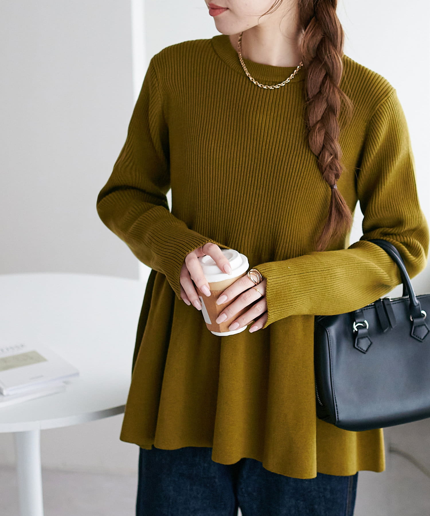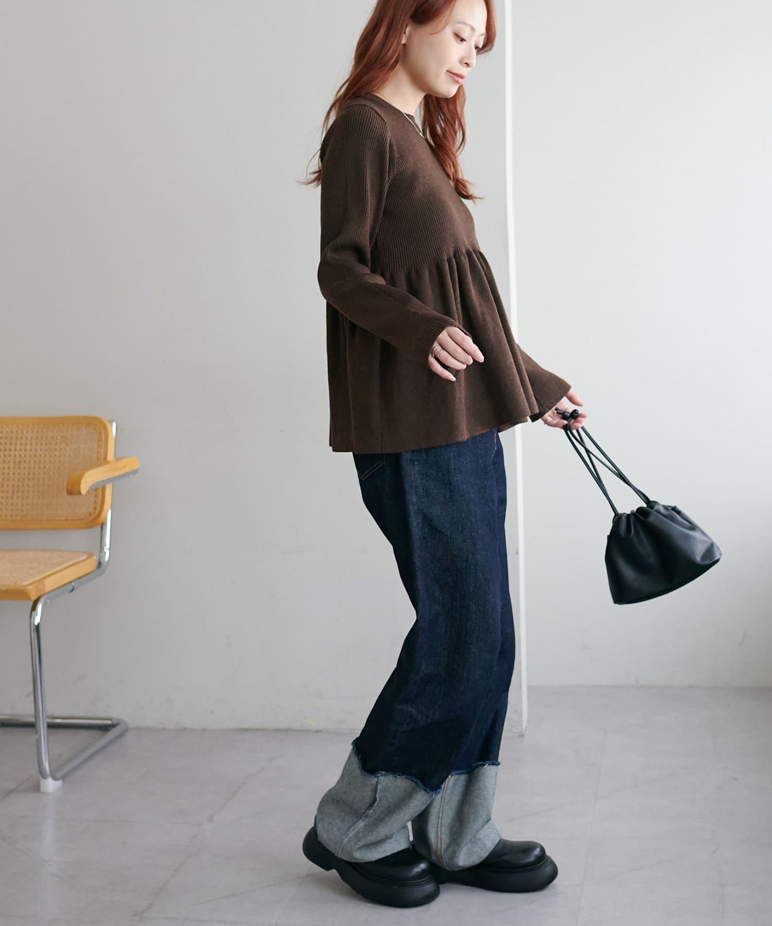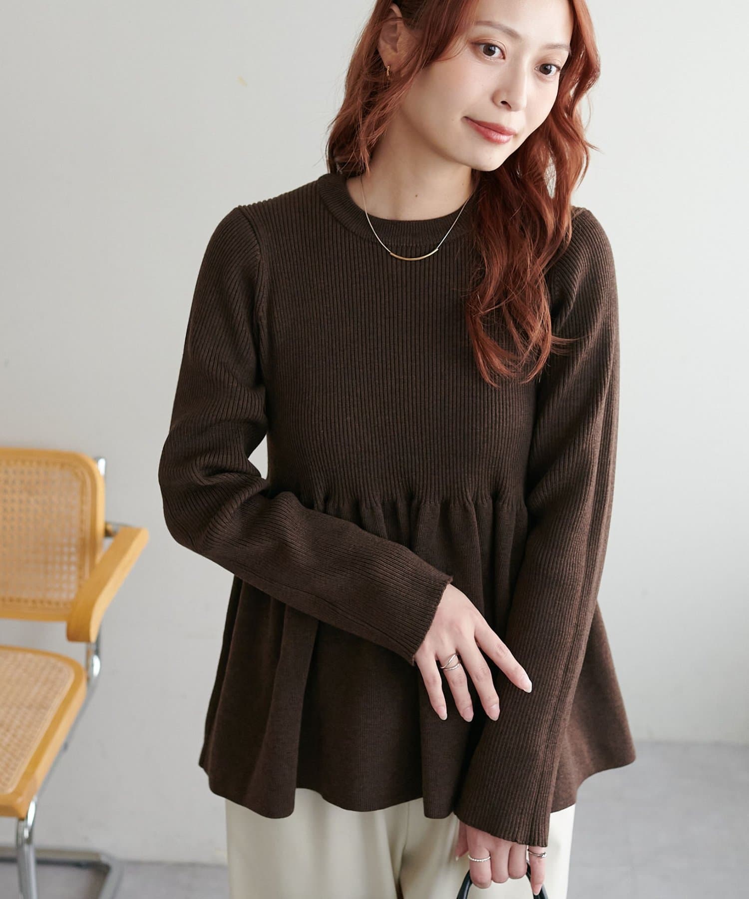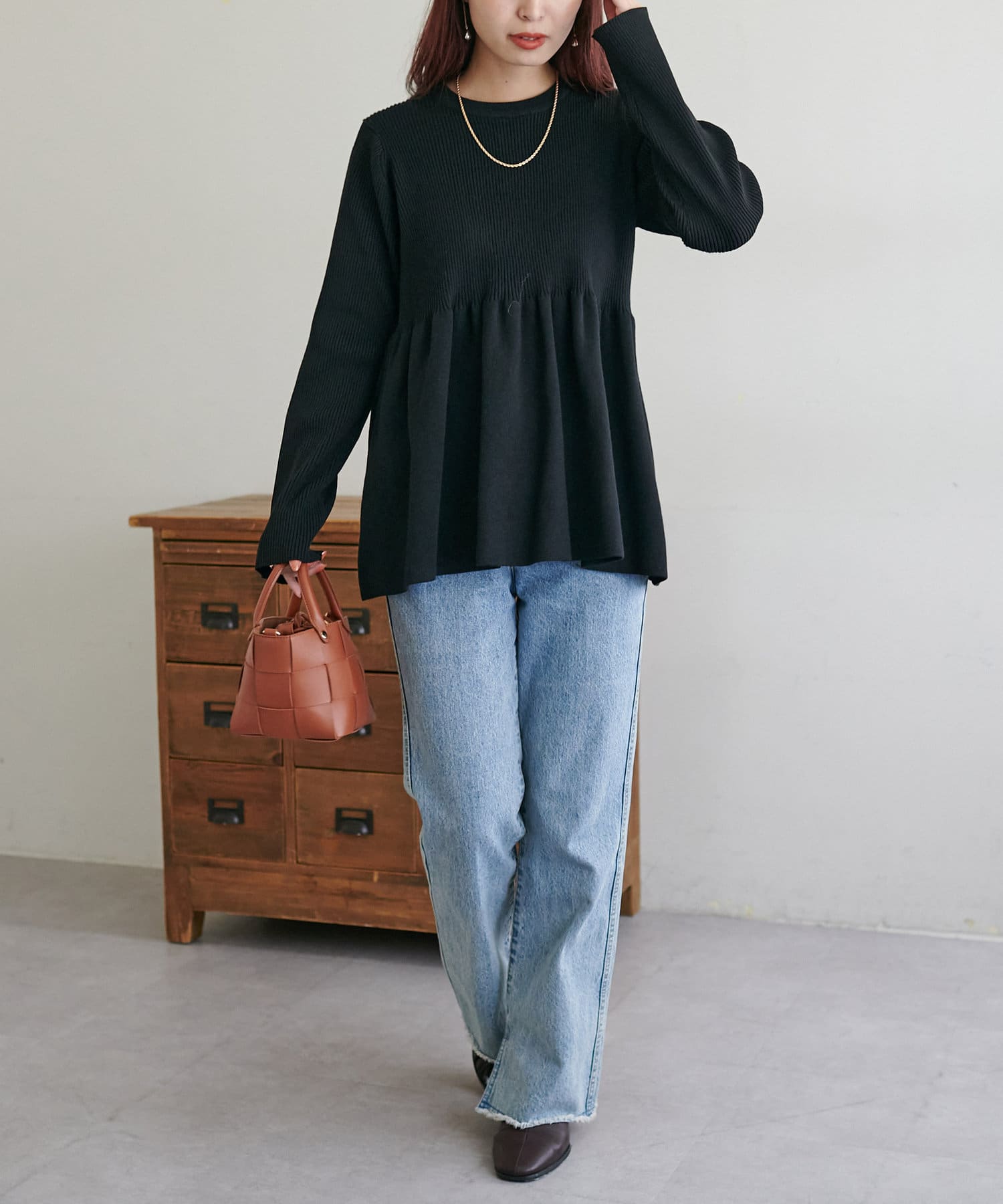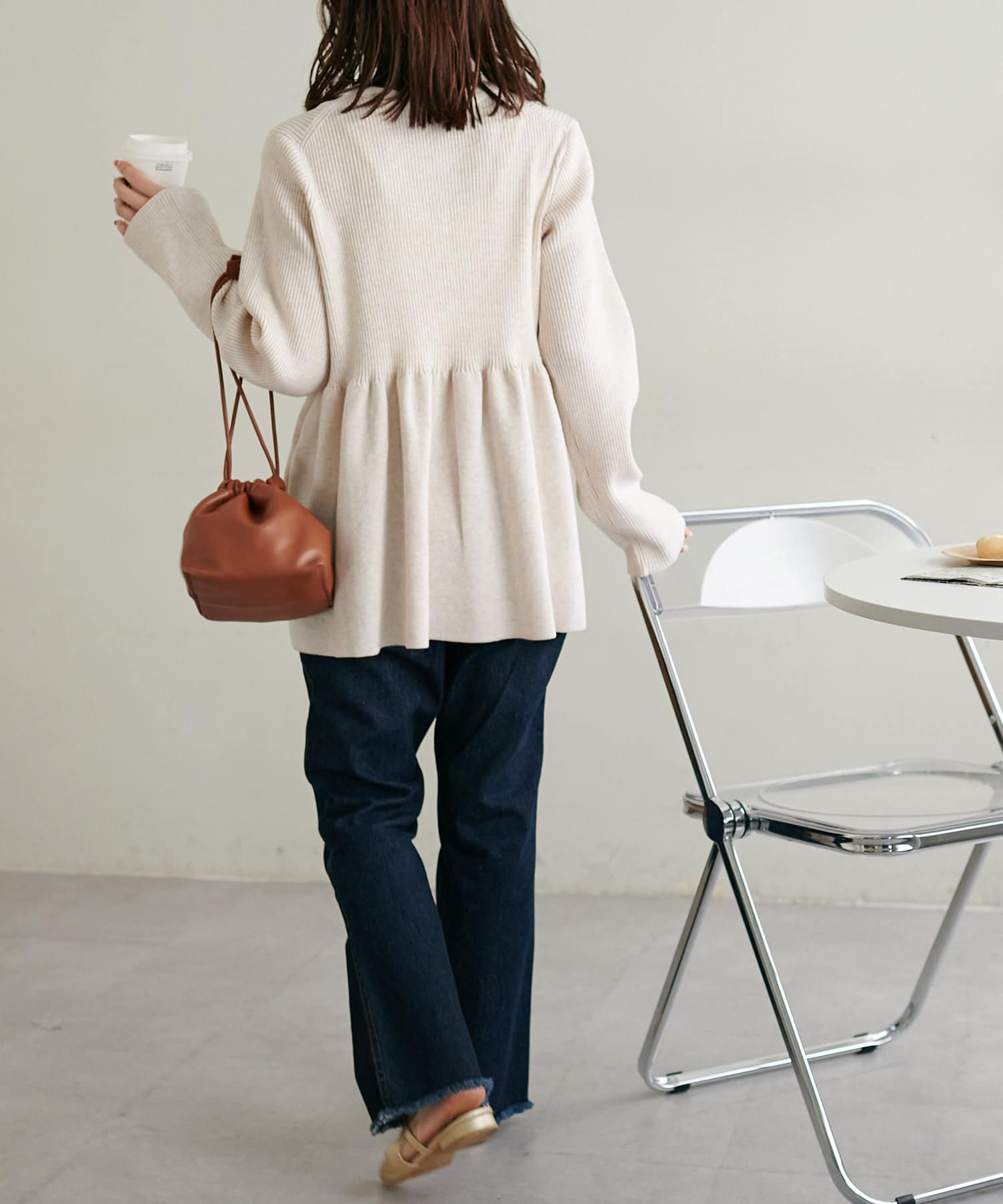 ・ウエストから裾にかけてふわっと広がるペプラムデザインのニット