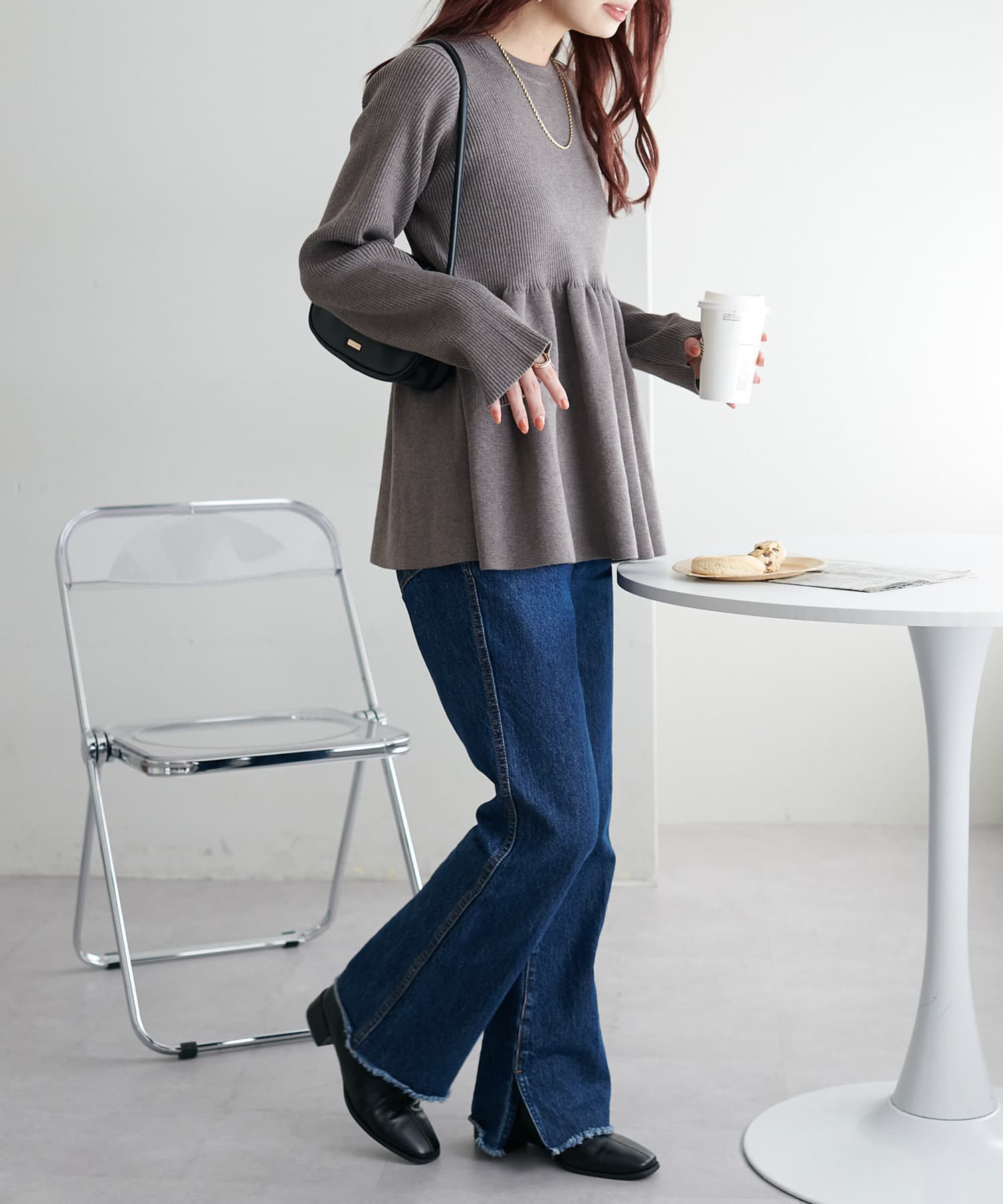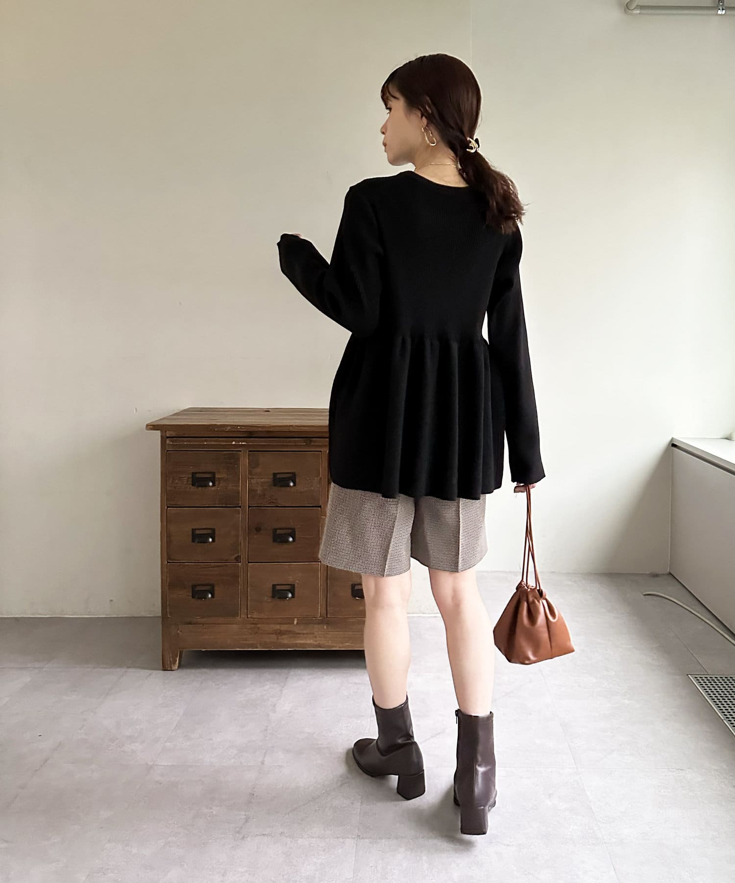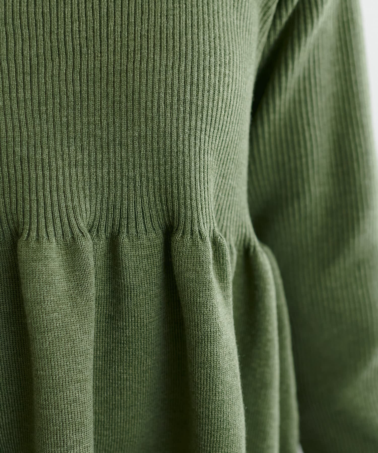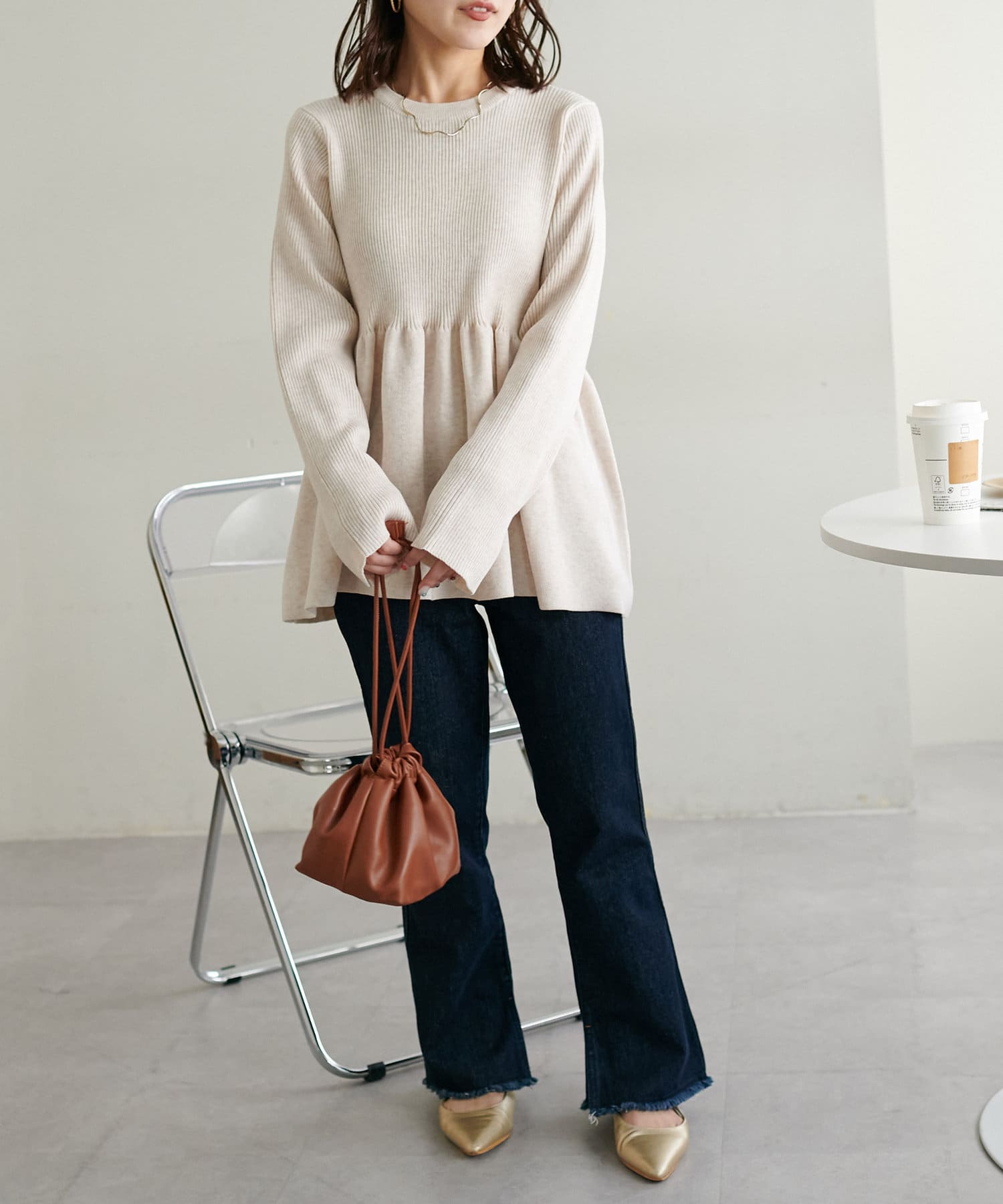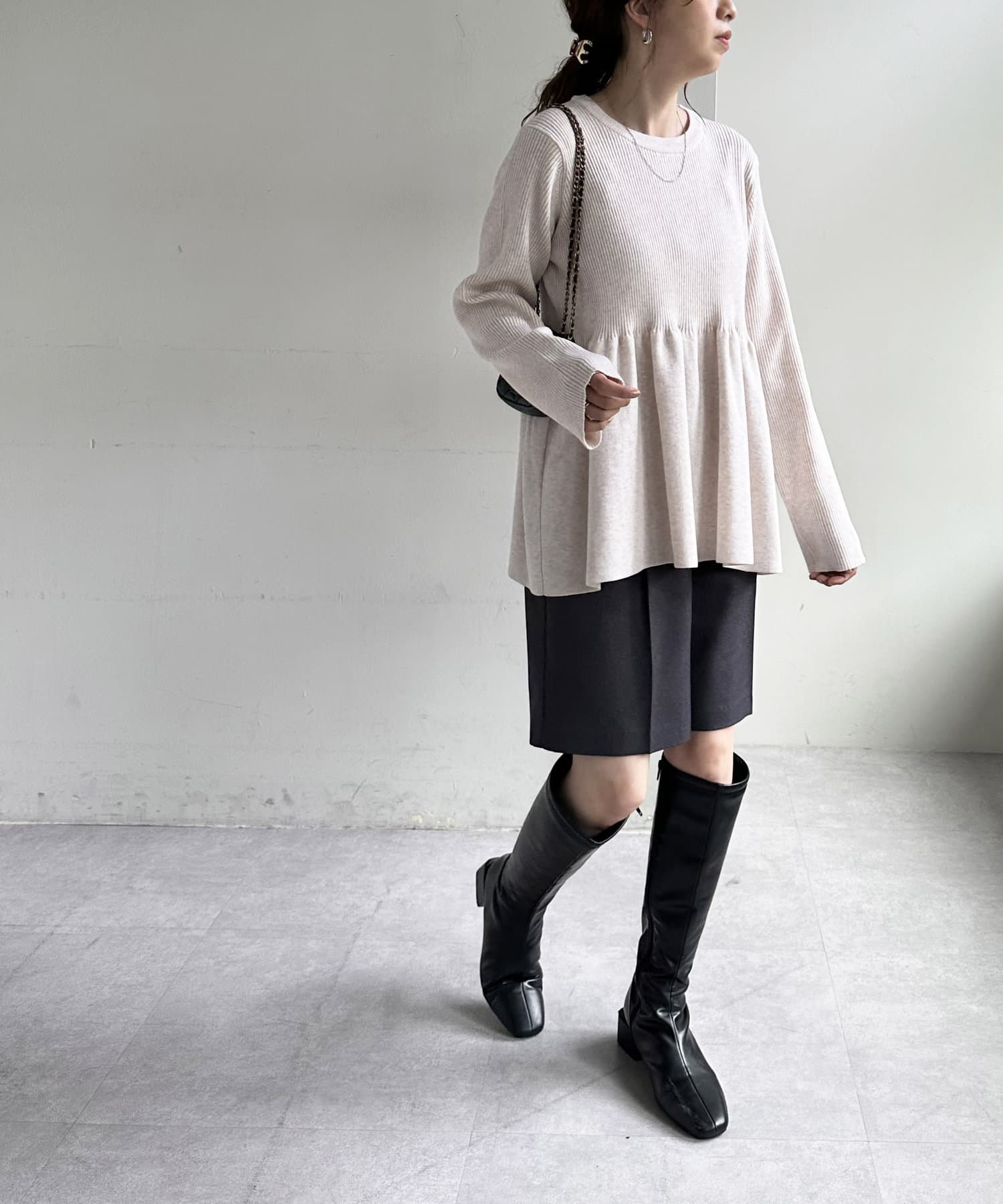 ・ウエストから裾にかけてふわっと広がるペプラムデザインのニット