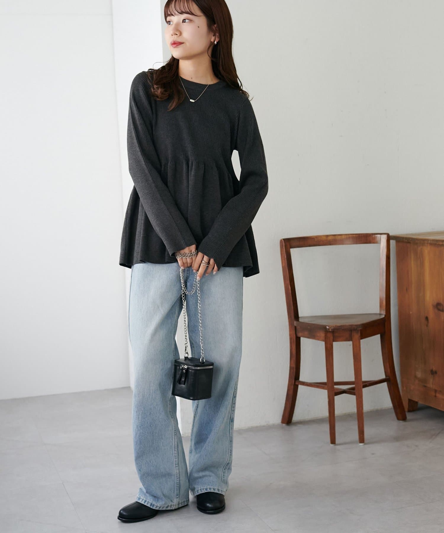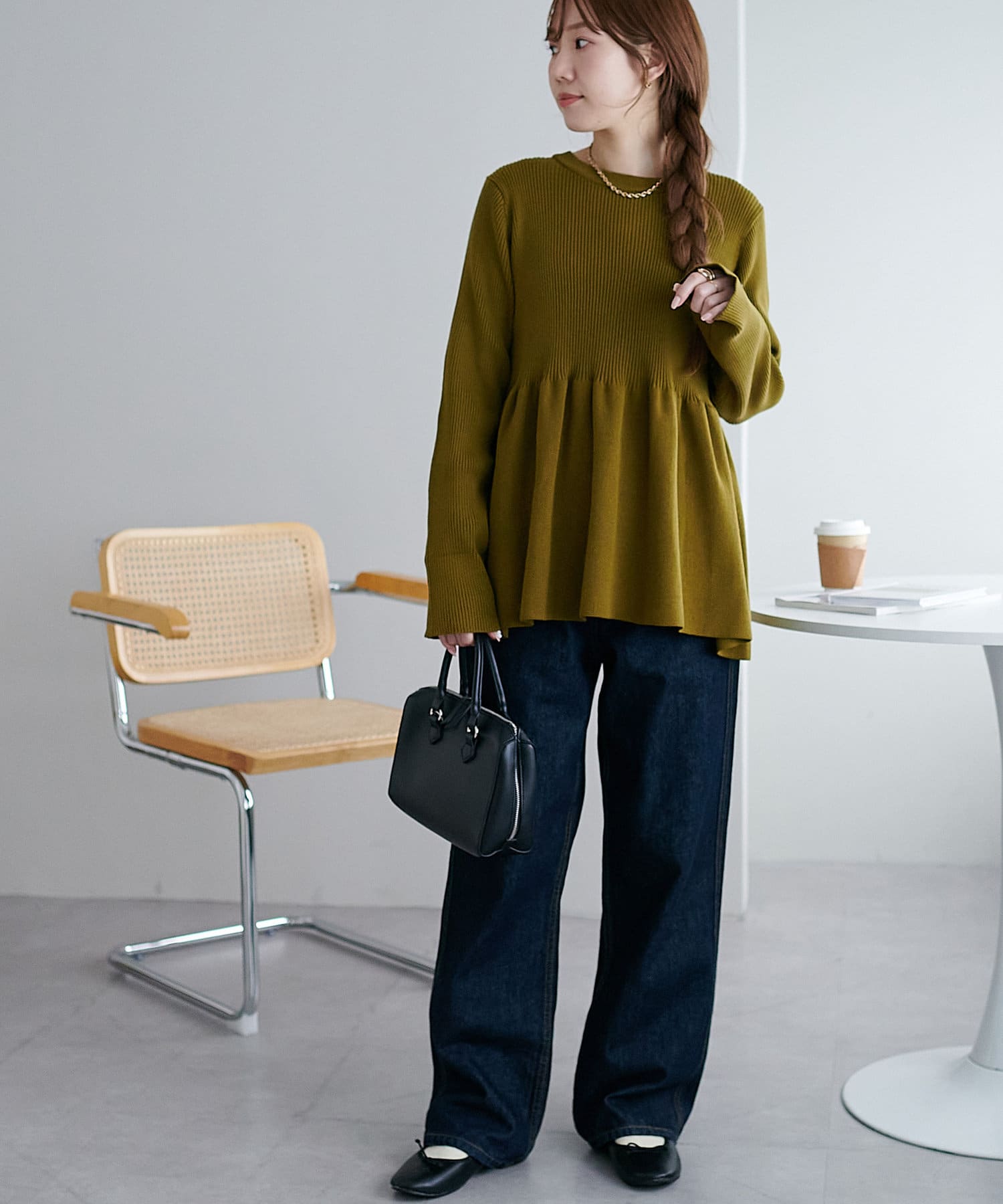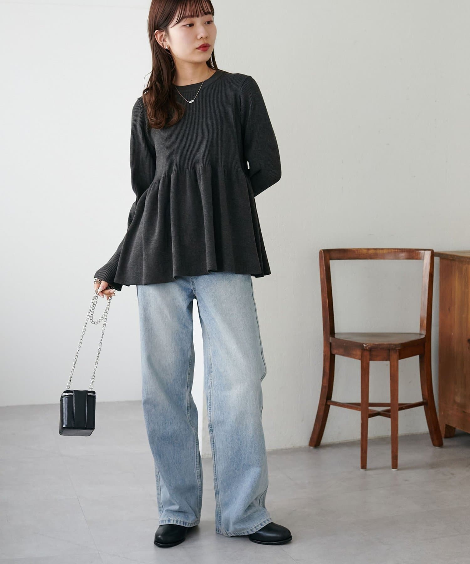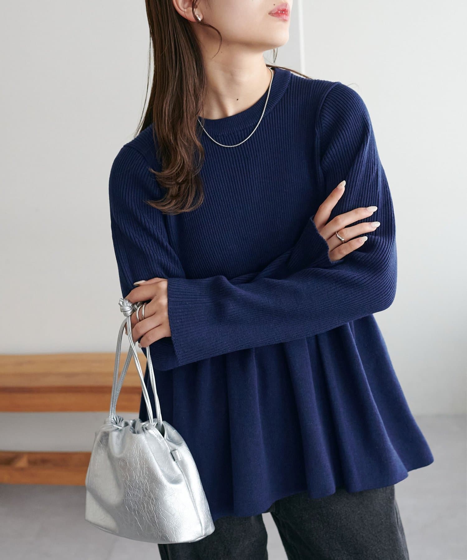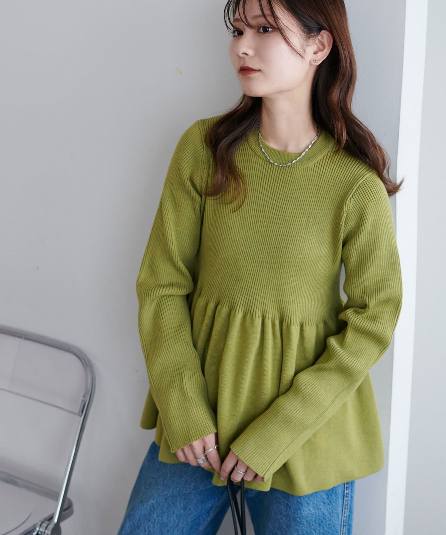 ・ウエストから裾にかけてふわっと広がるペプラムデザインのニット