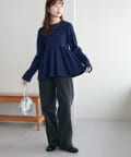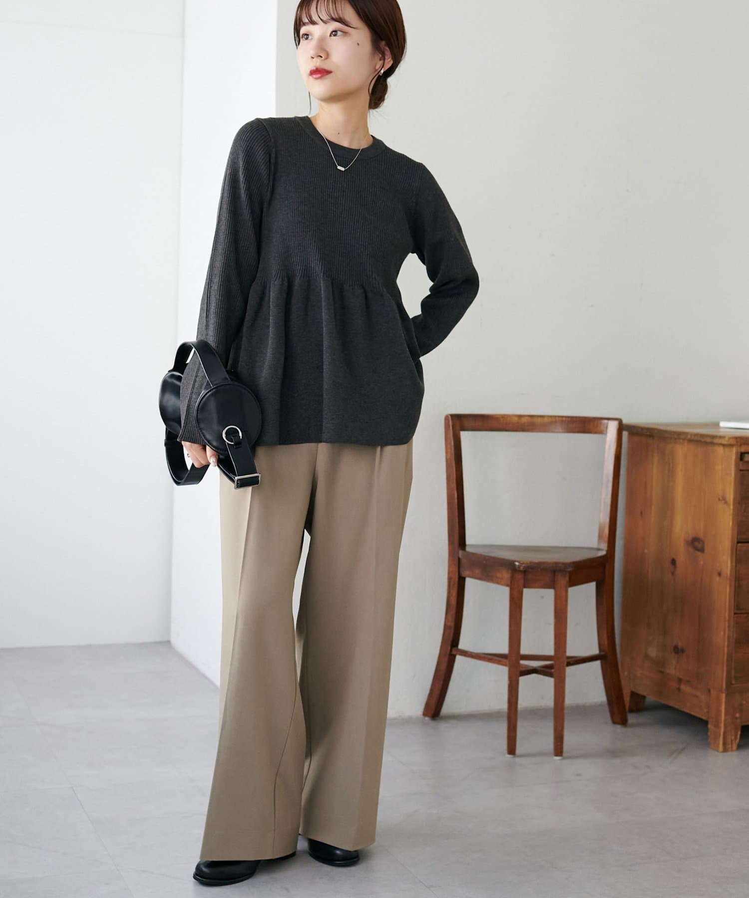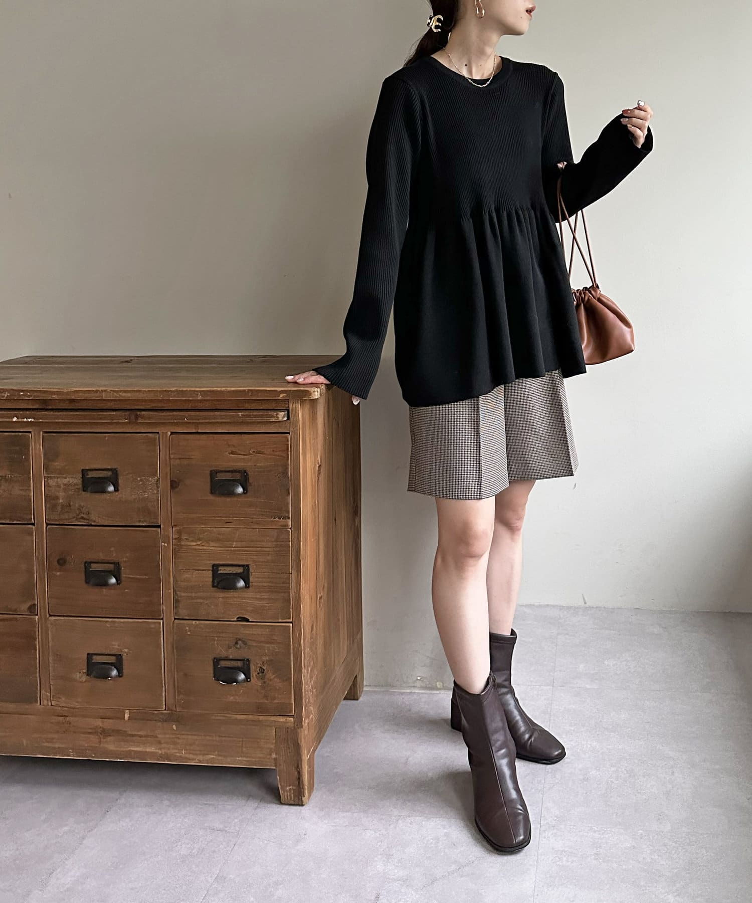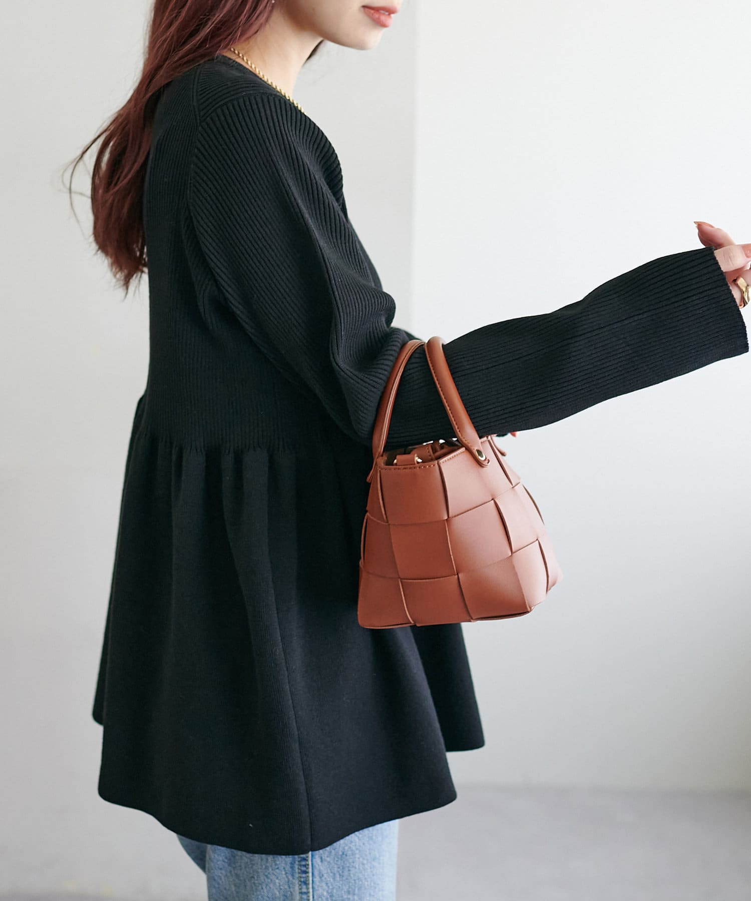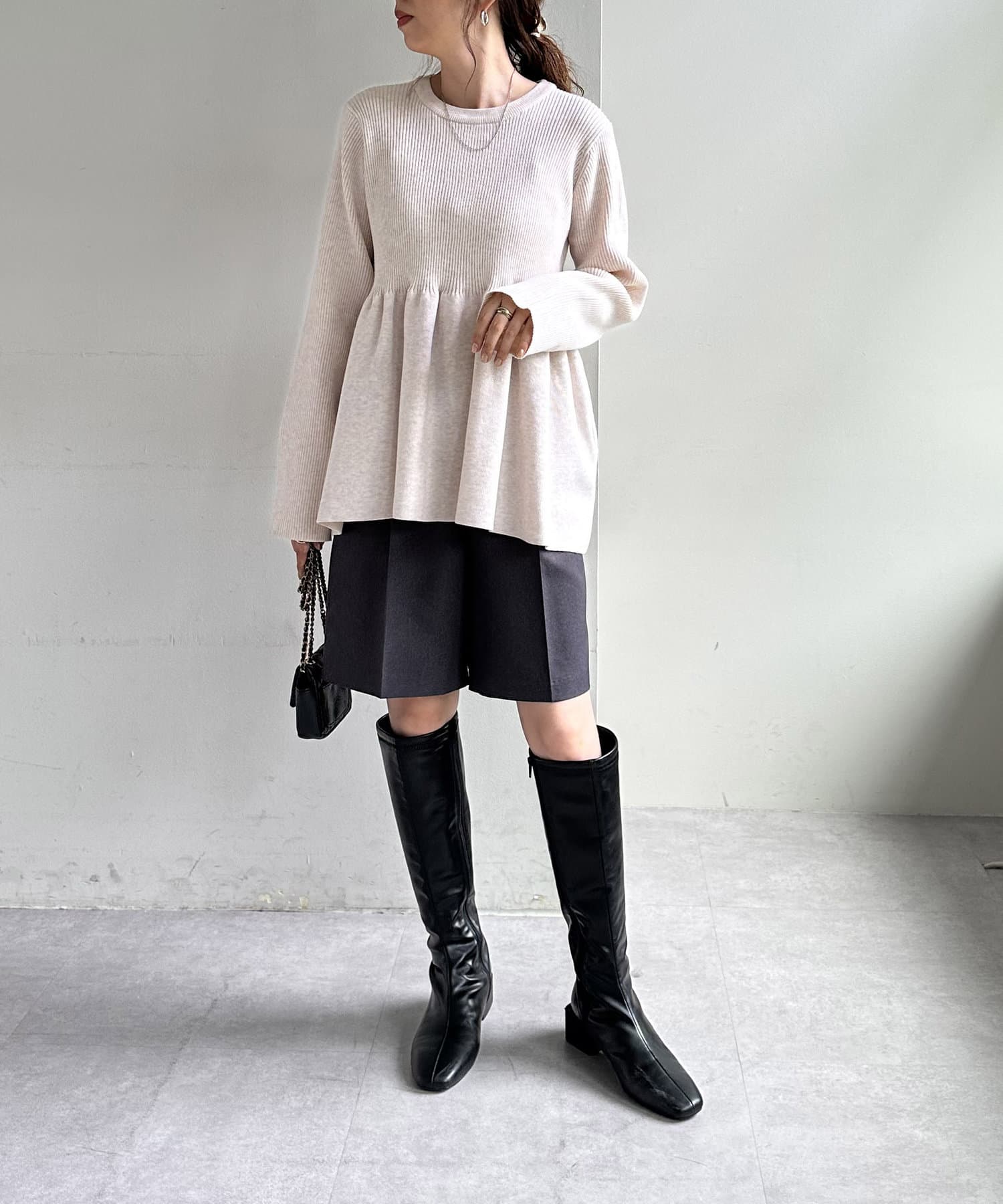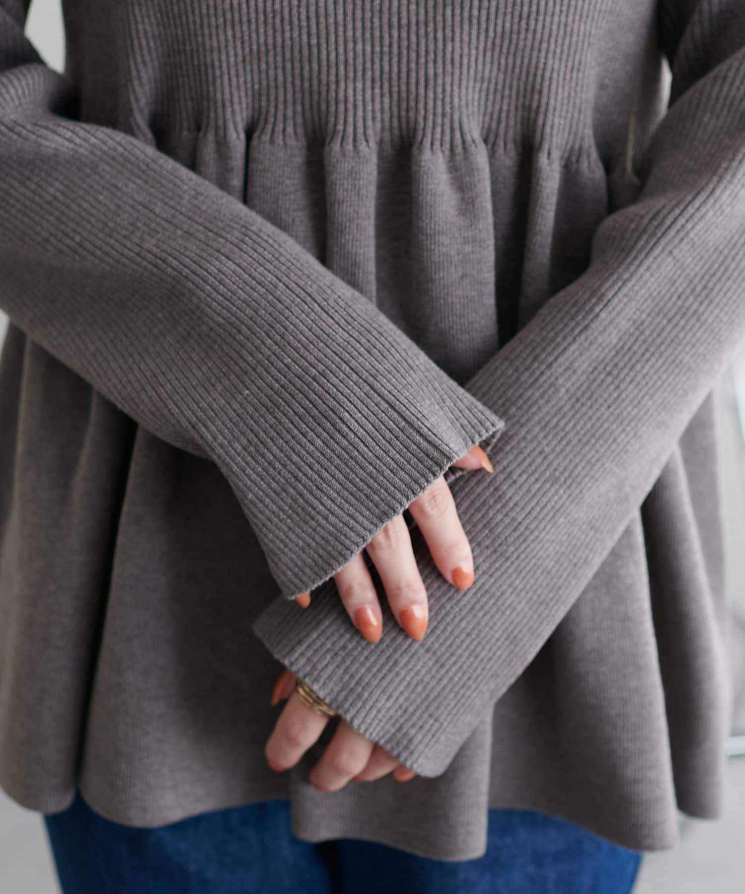 ・ウエストから裾にかけてふわっと広がるペプラムデザインのニット