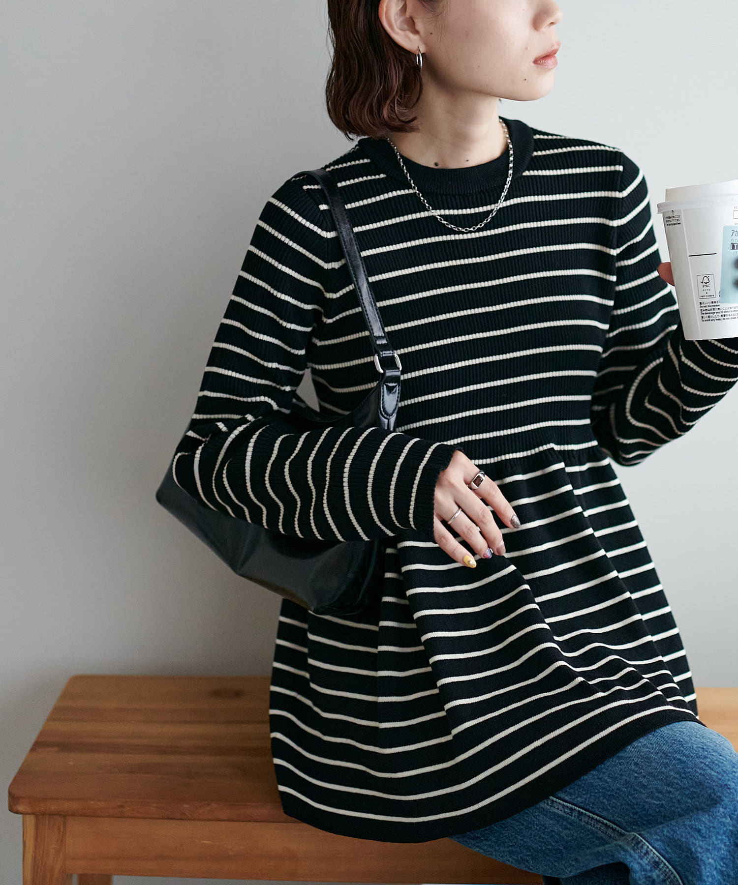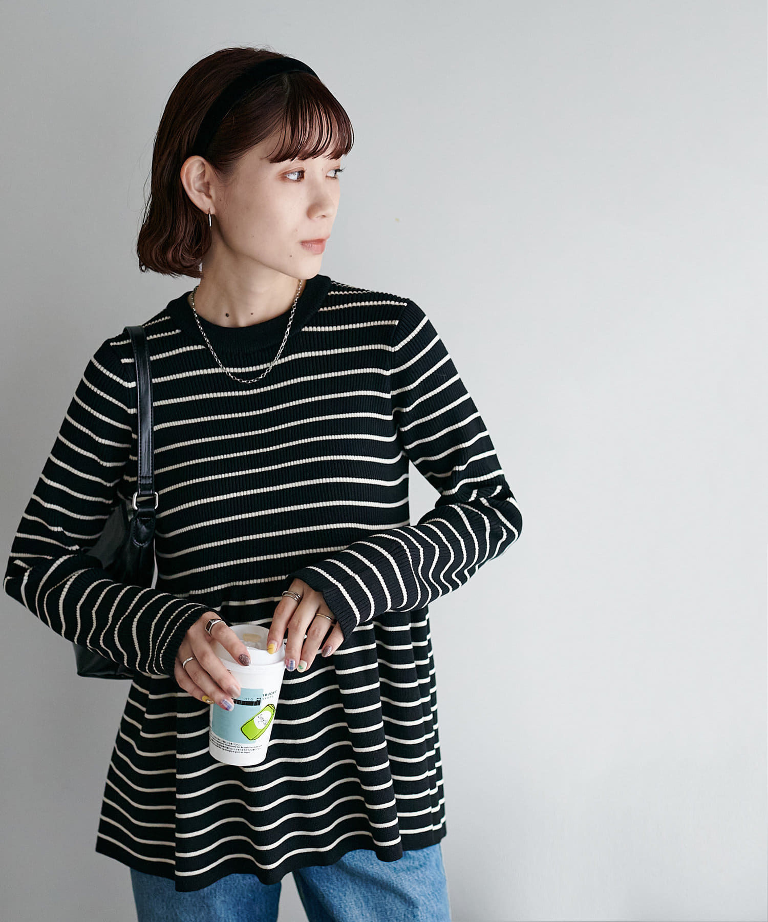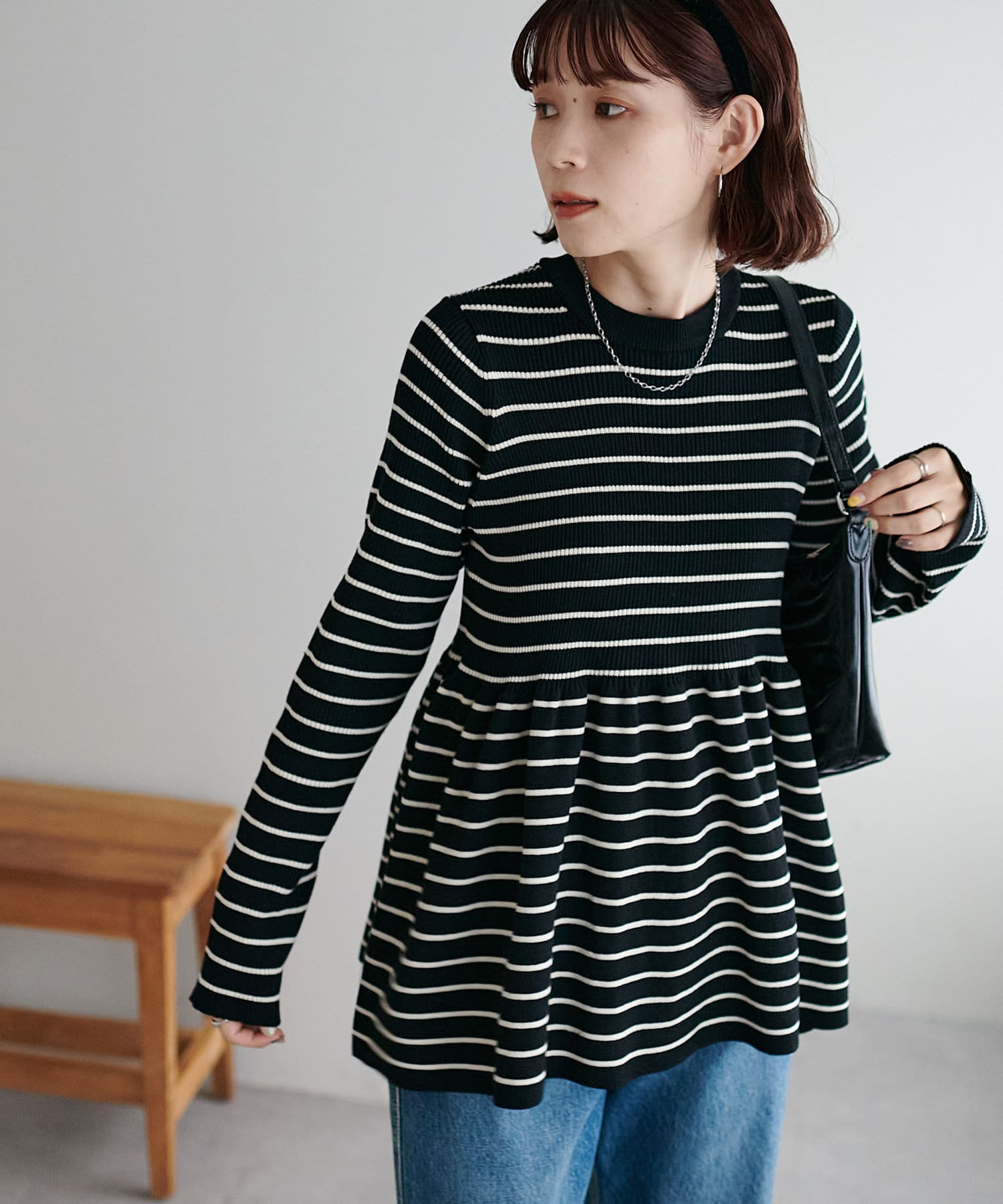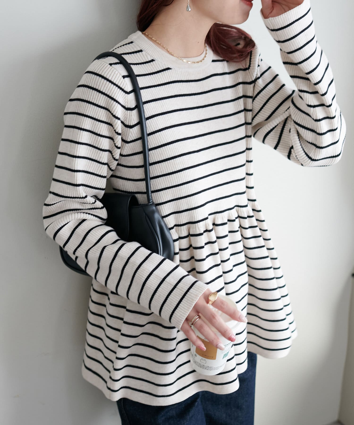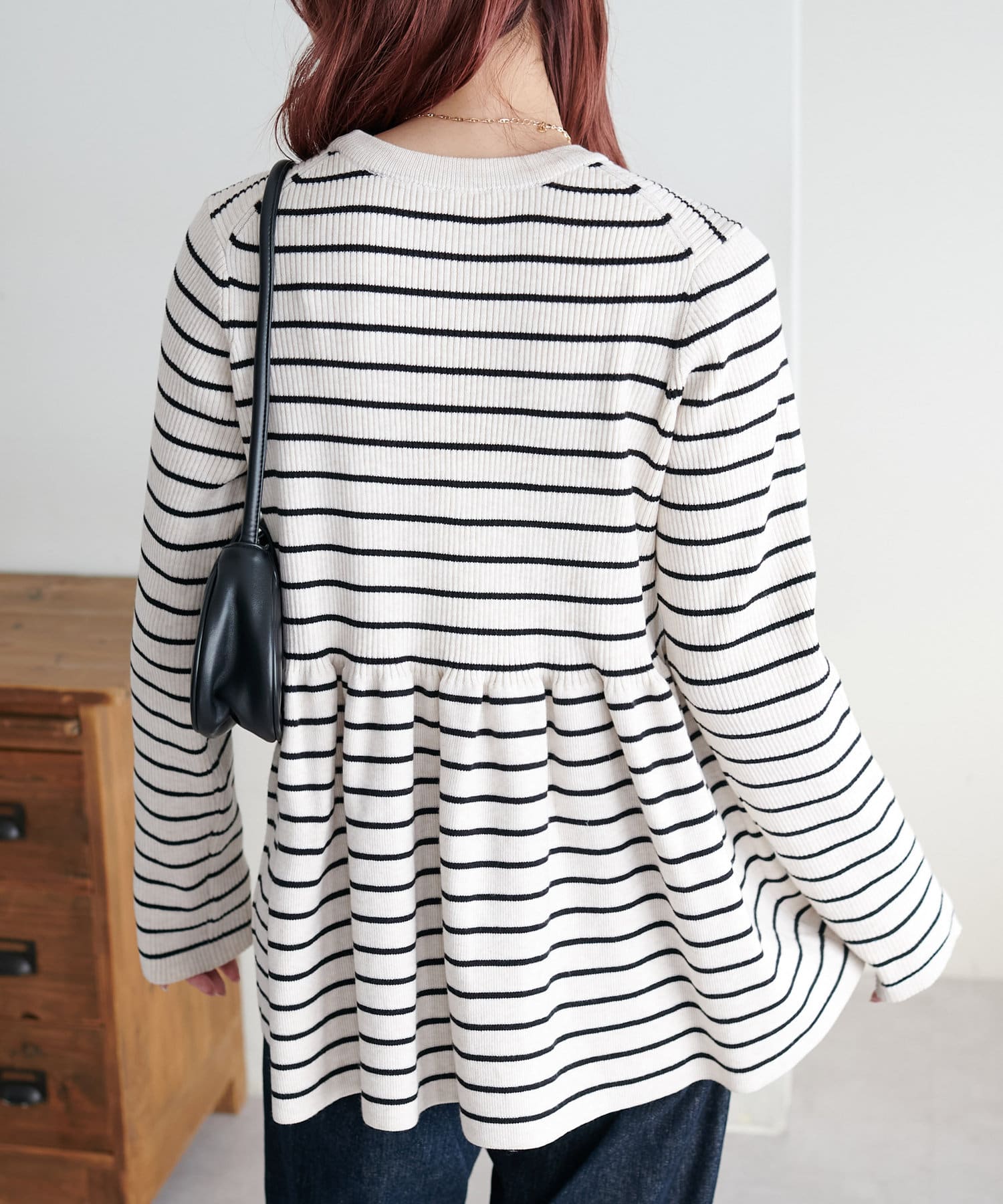 ・ウエストから裾にかけてふわっと広がるペプラムデザインのニット
