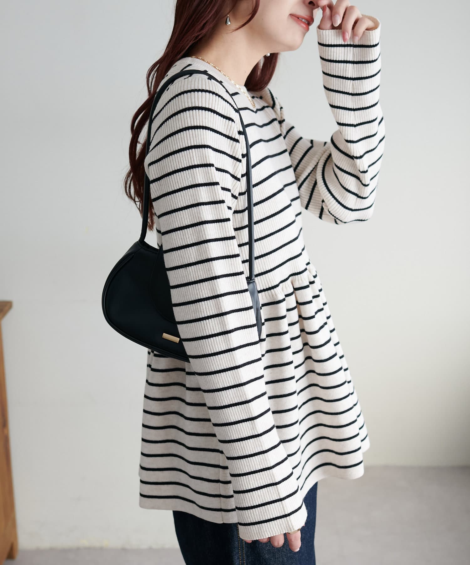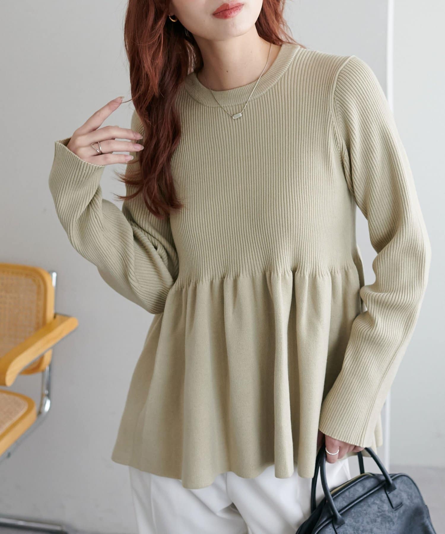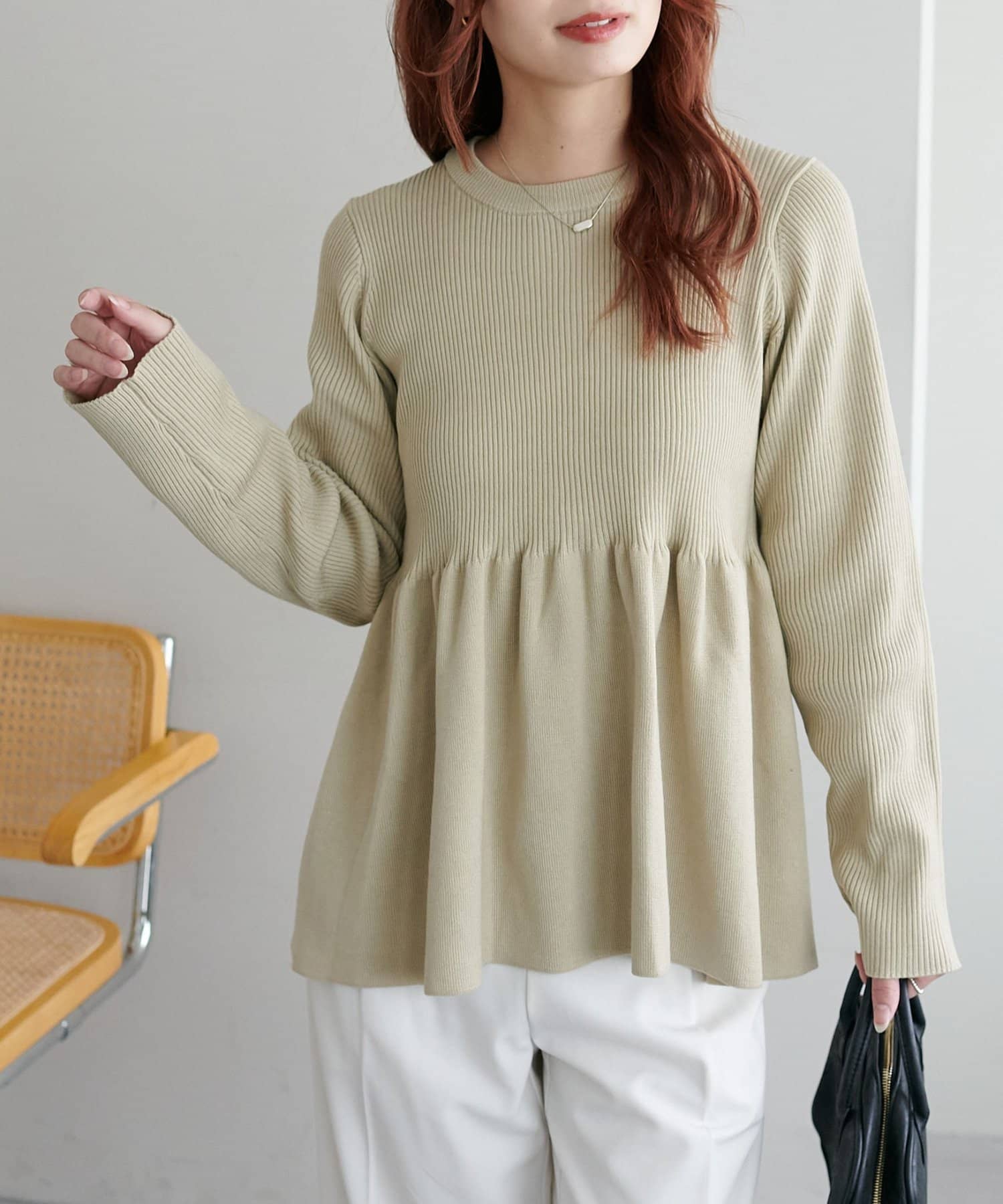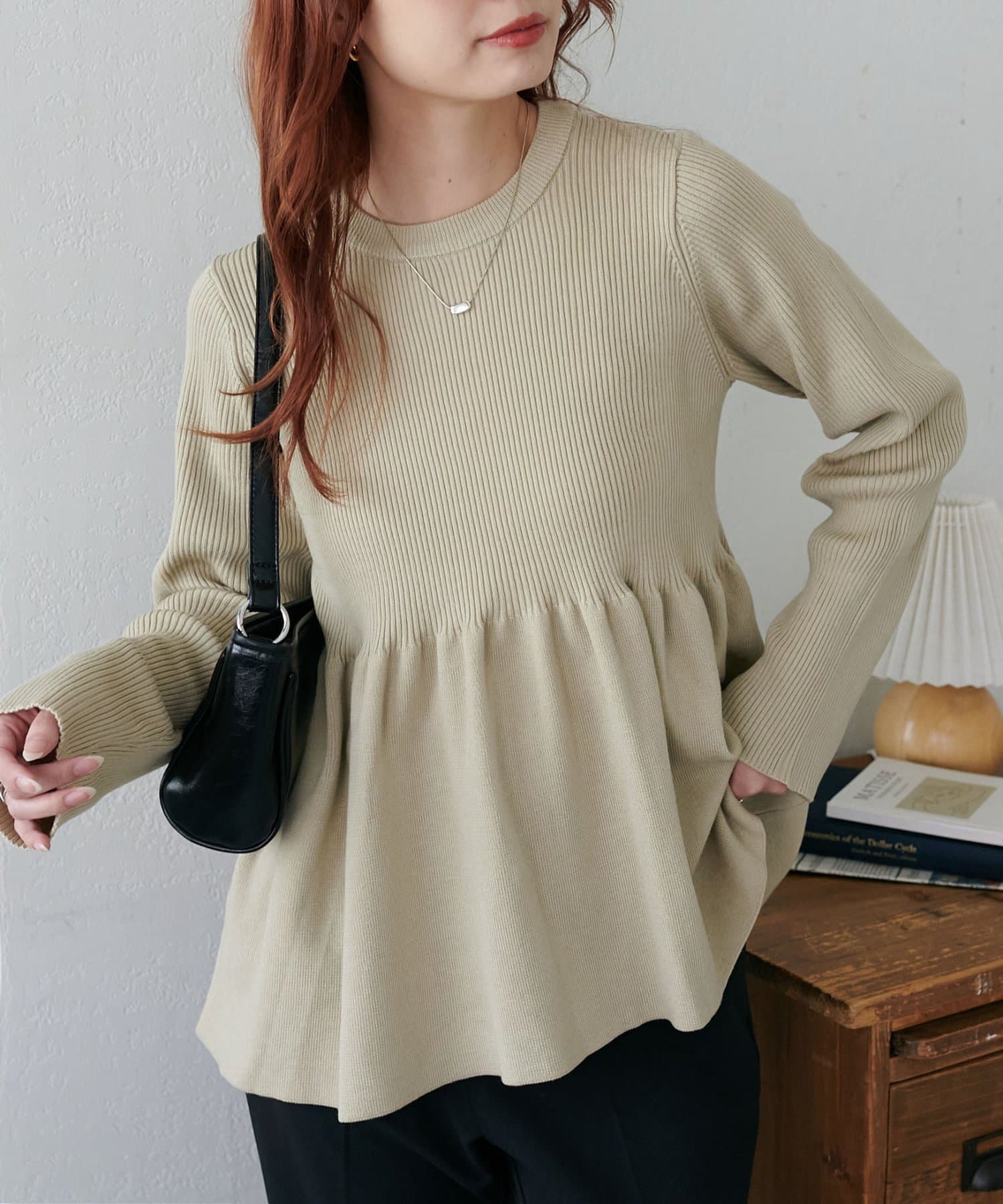 《スタイルアップ♪/体型カバー/8色展開》【WEB限定】リブ切替ペプラムプルオーバー