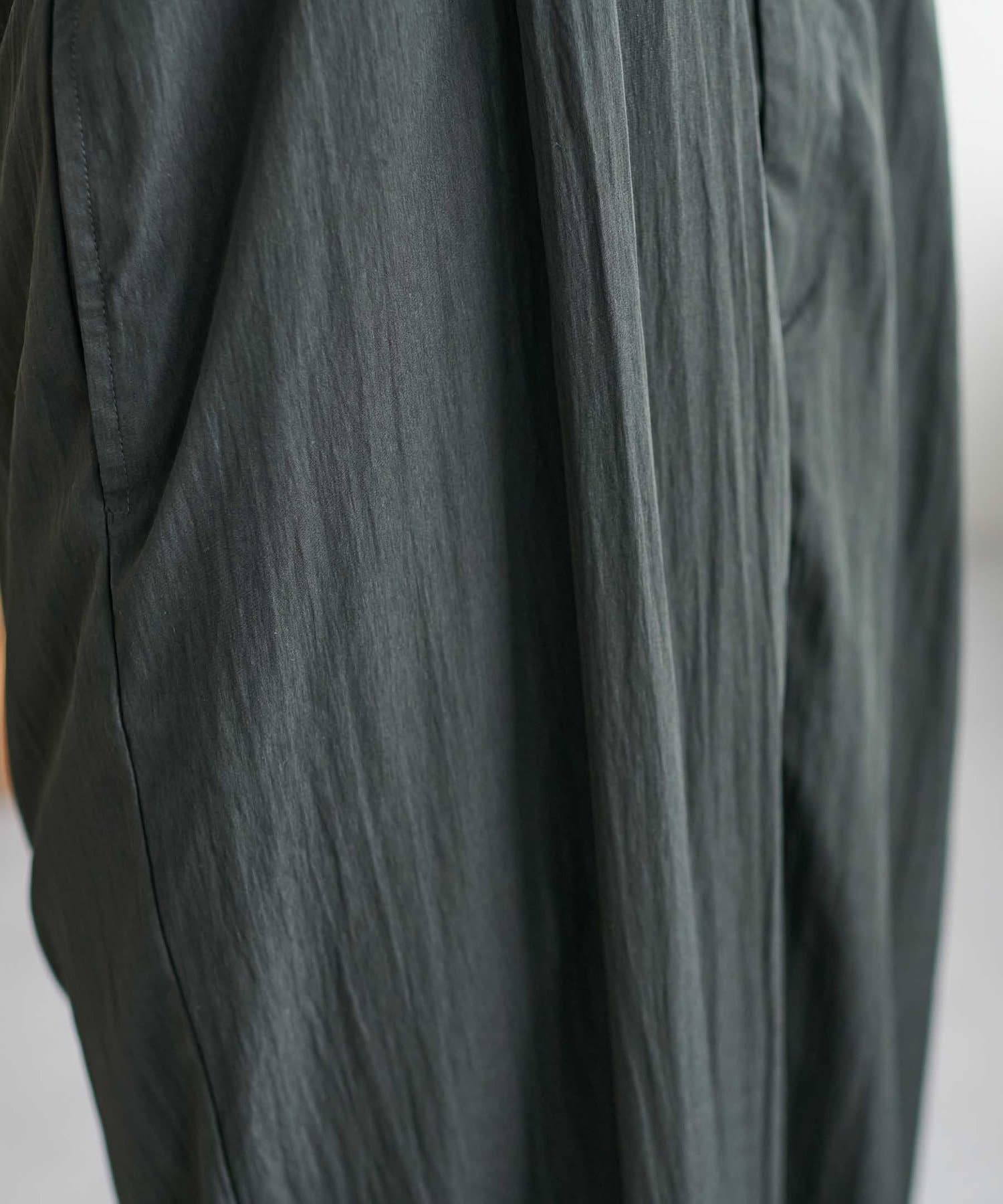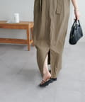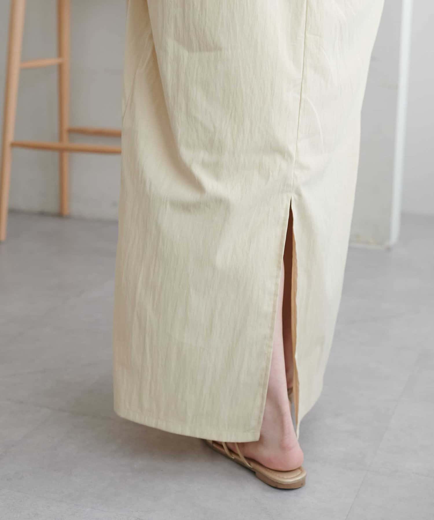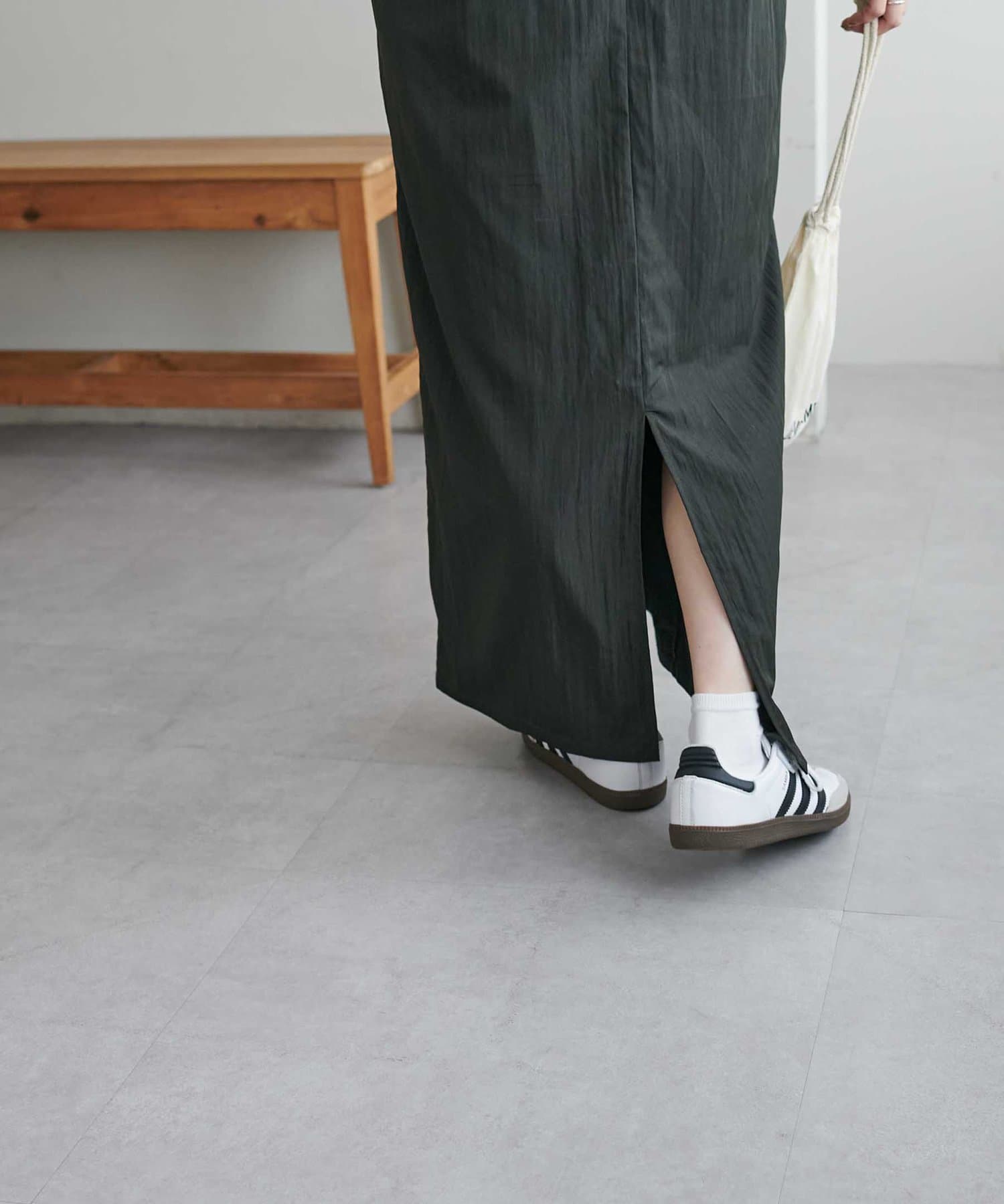 トレンド感のあるシャカシャカ素材で、一枚で旬なスタイリングが完成します。バックスリットが入っているので足捌きも楽ちん◎