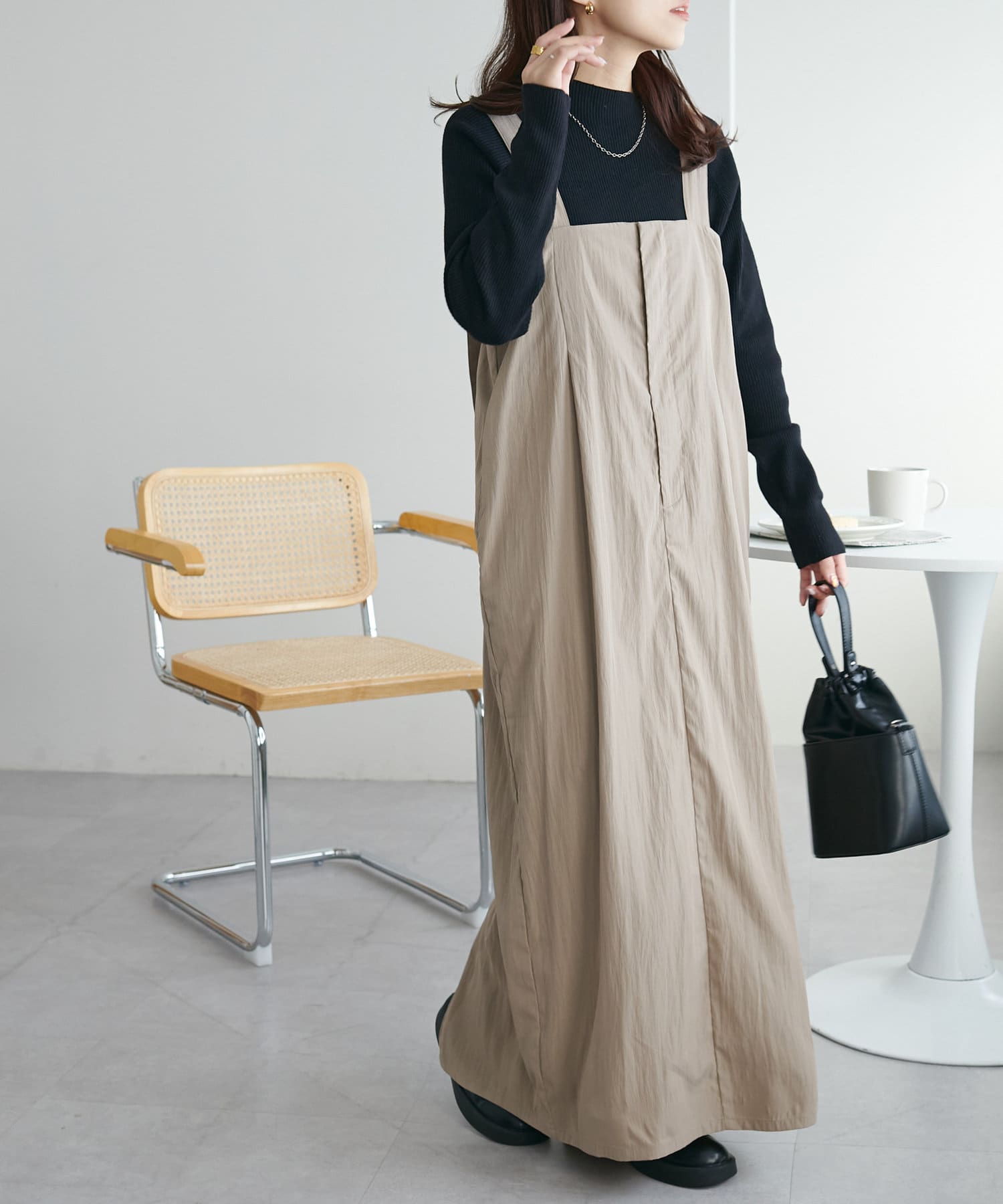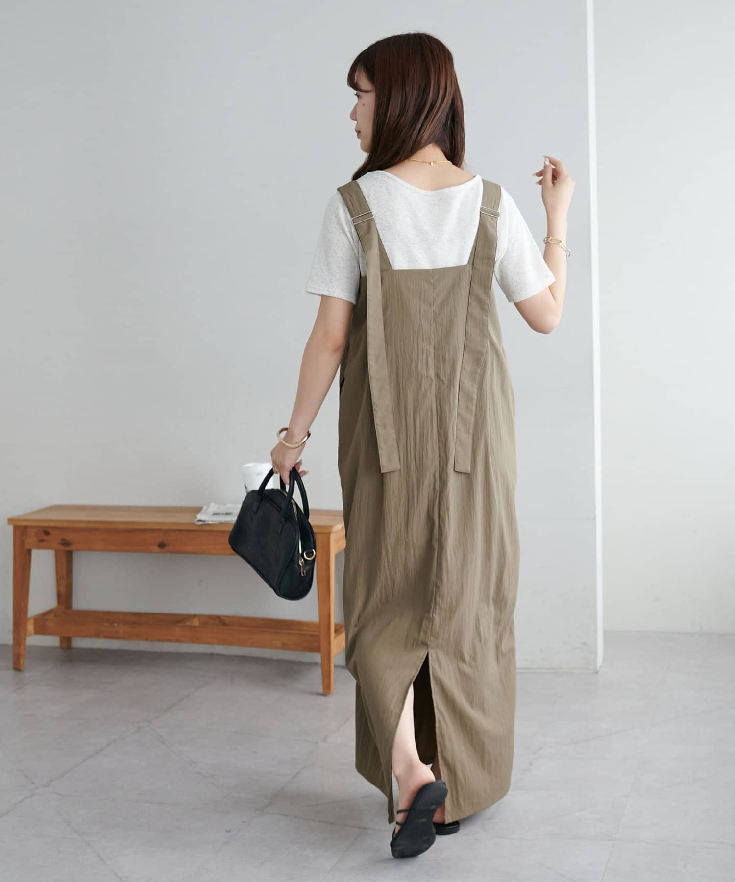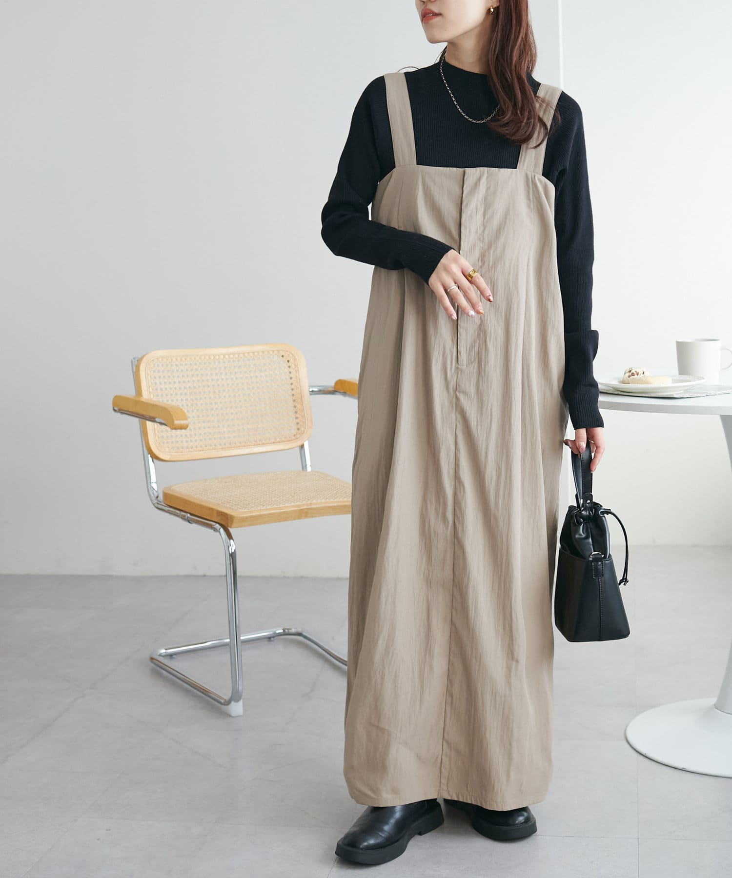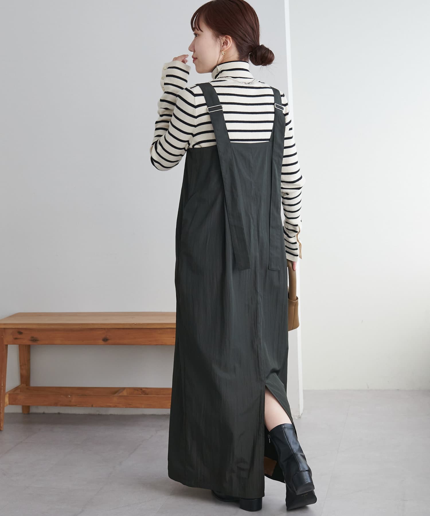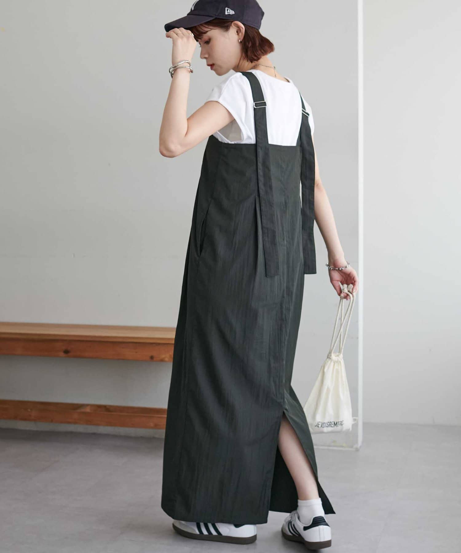 ・162cmスタッフ:ナイロン素材なので、着るだけでカジュアルコーデが完成します!バックスリットのデザインなので歩きやすいですよ◎
