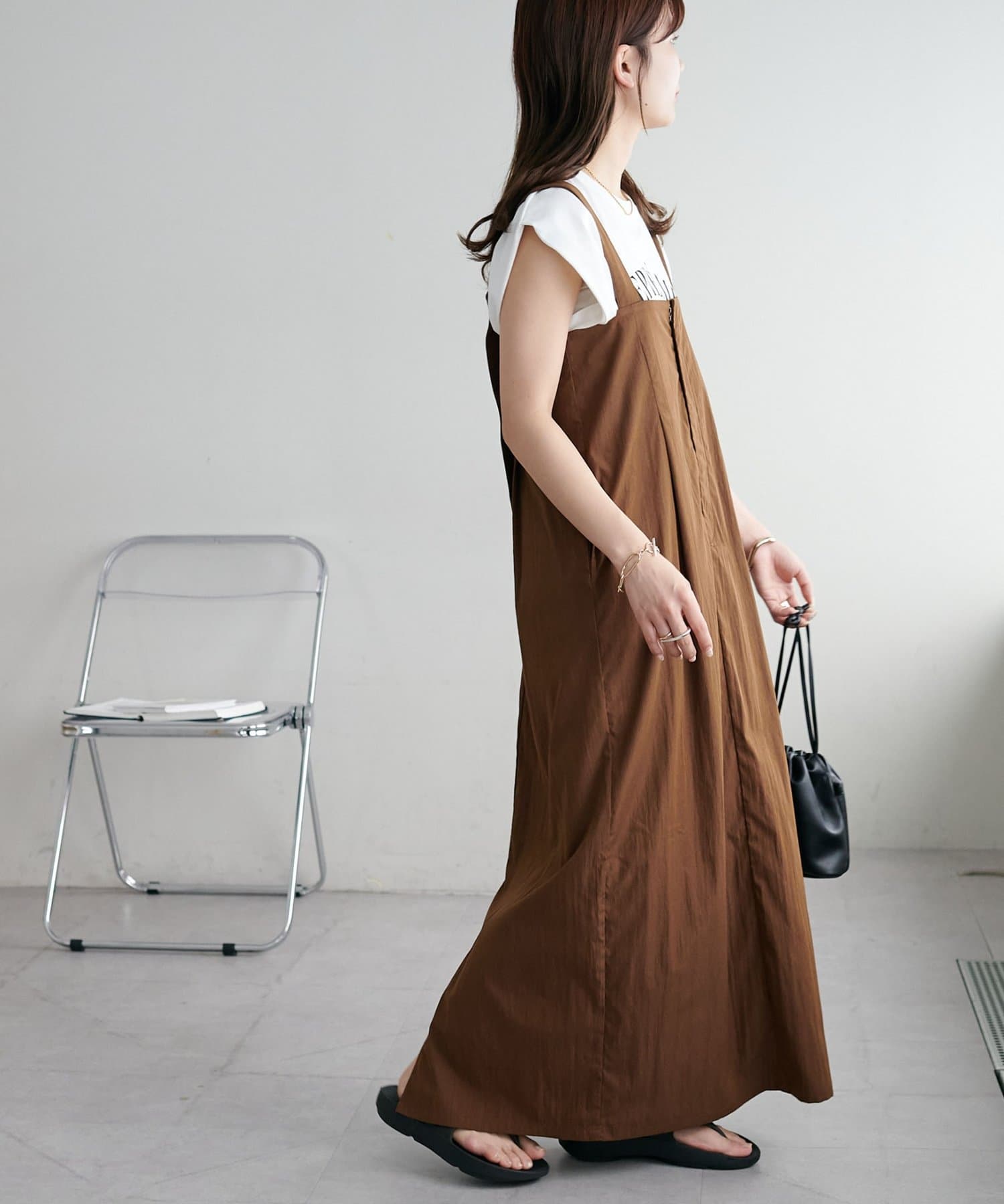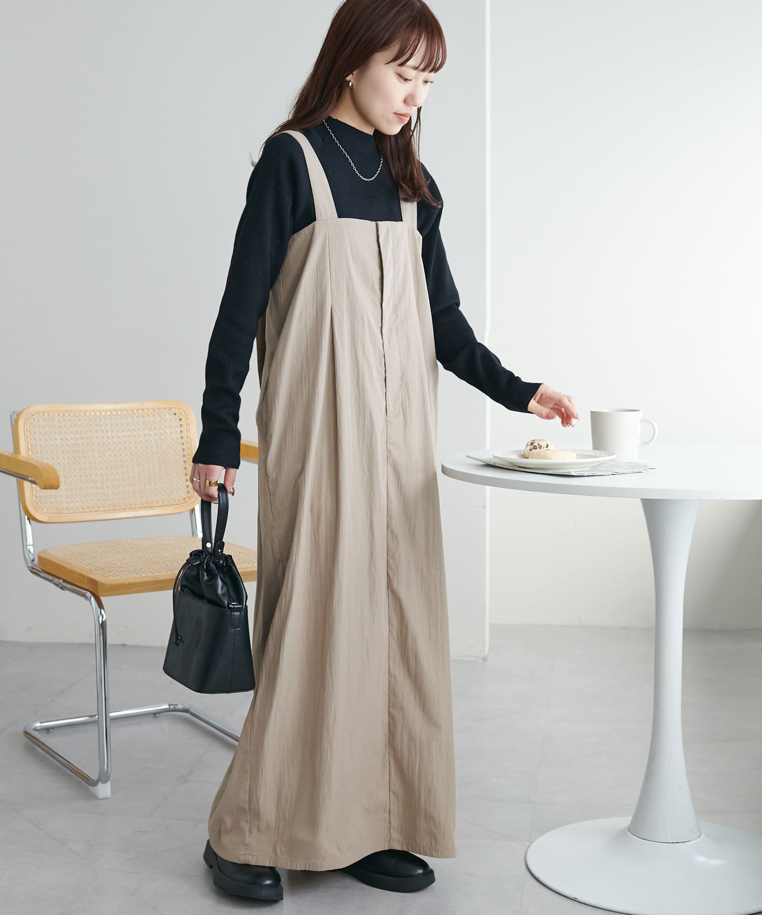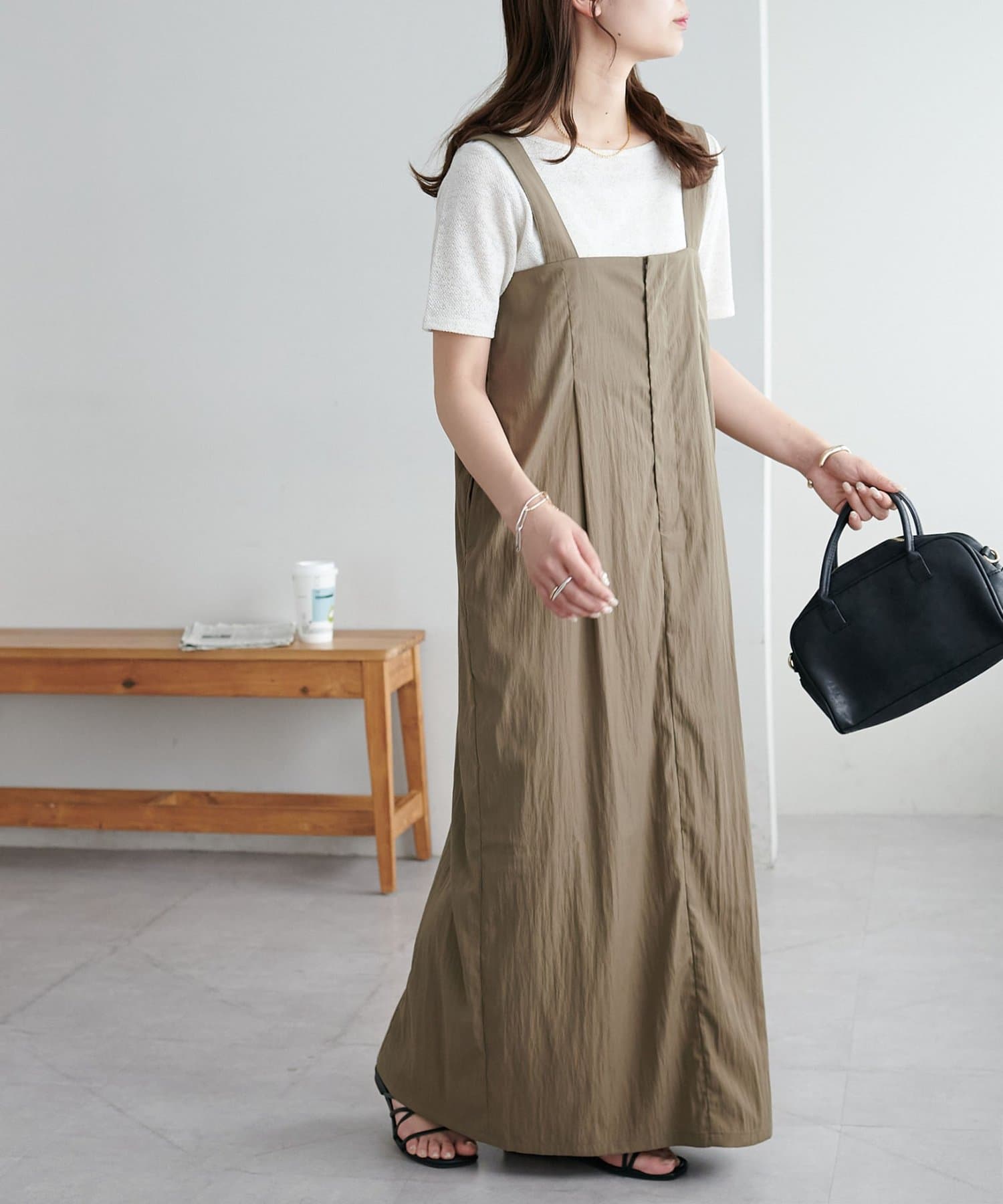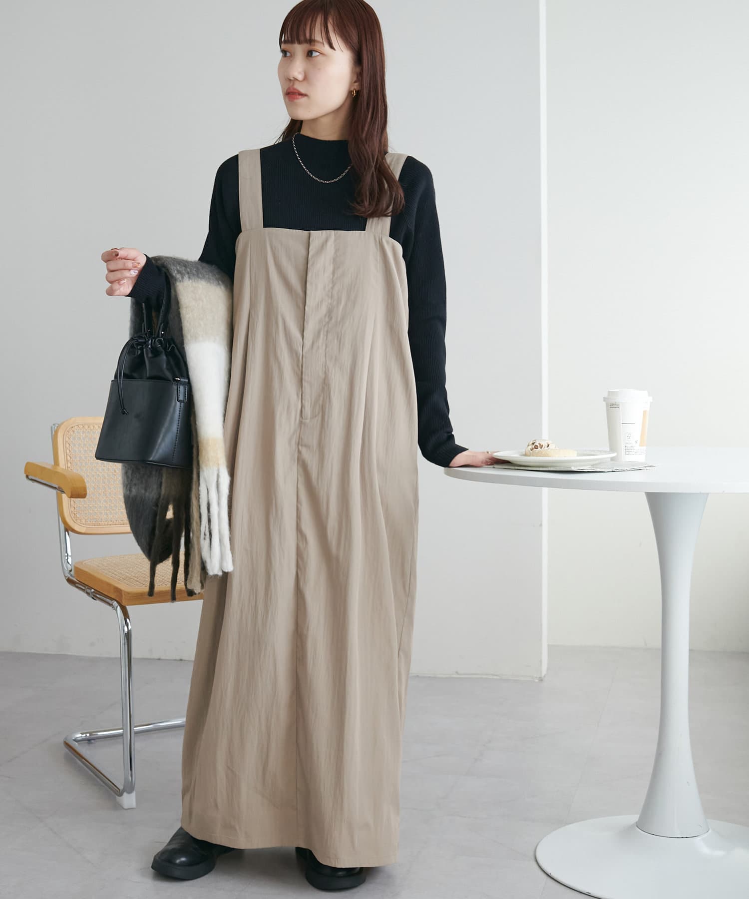 ・162cmスタッフ:ナイロン素材なので、着るだけでカジュアルコーデが完成します!バックスリットのデザインなので歩きやすいですよ◎