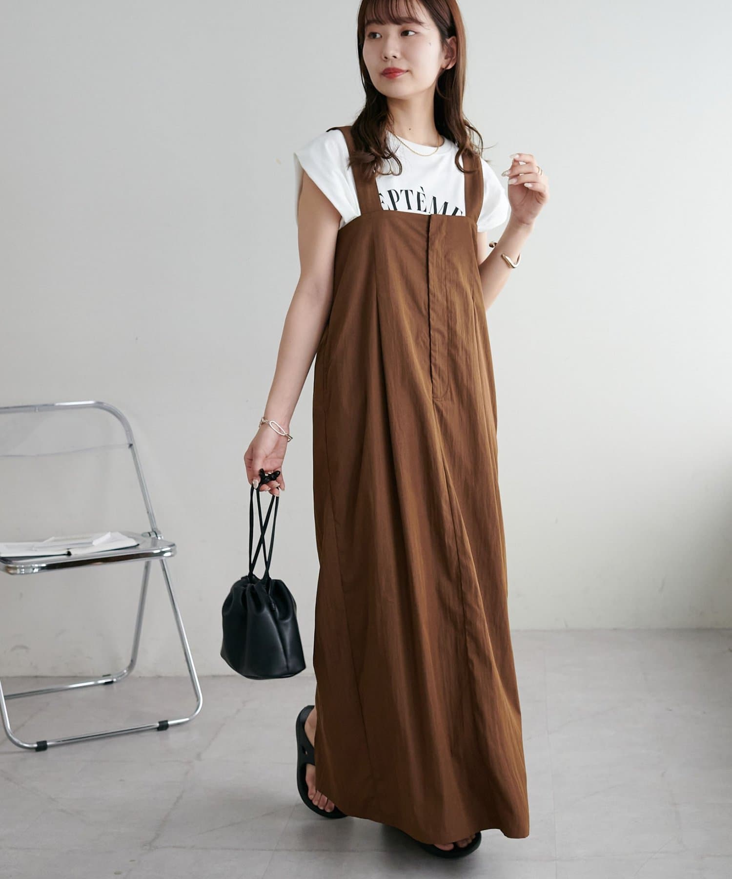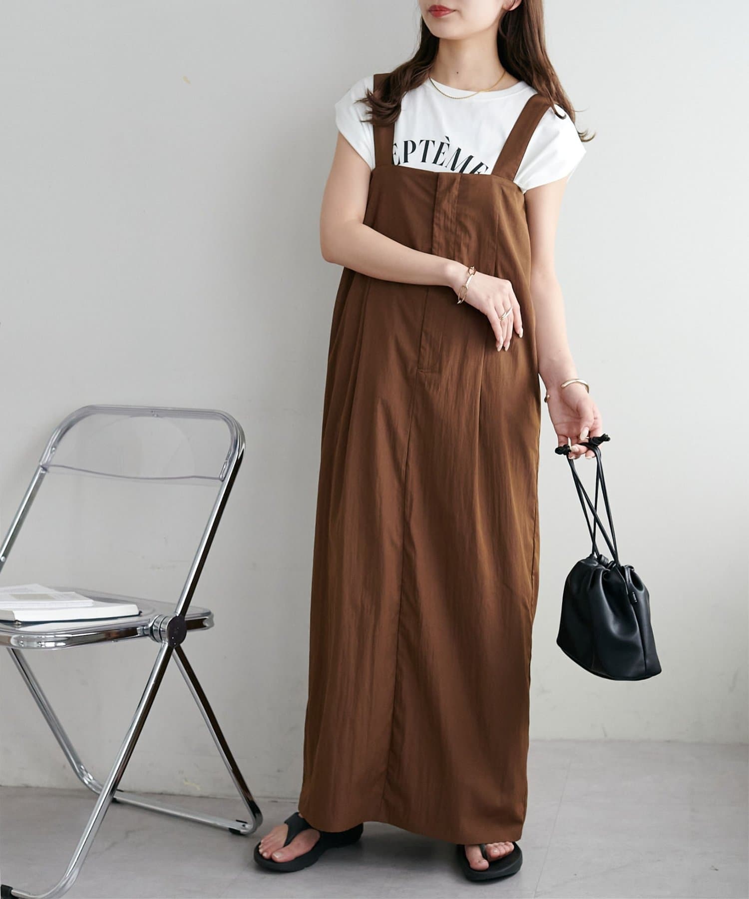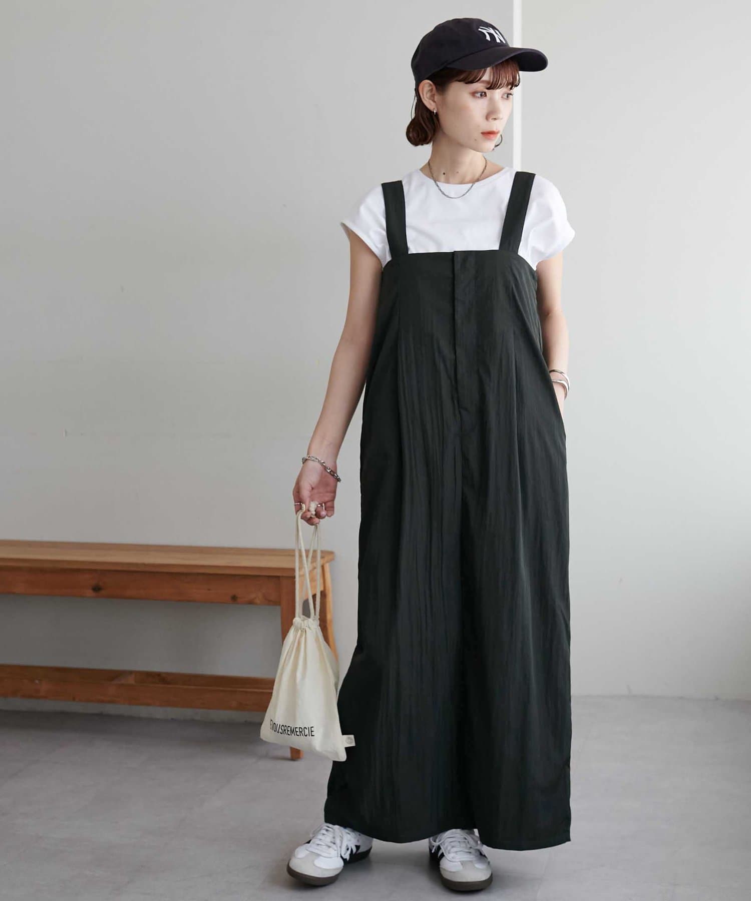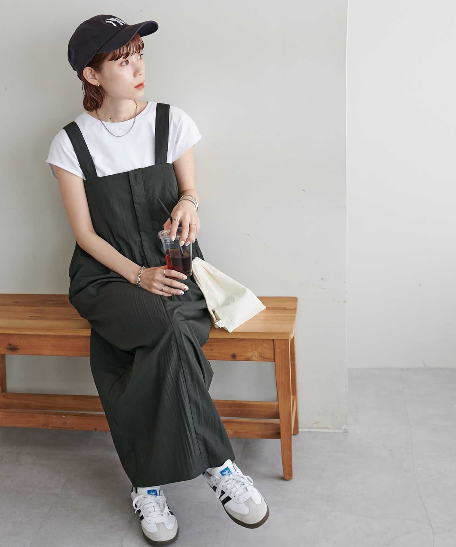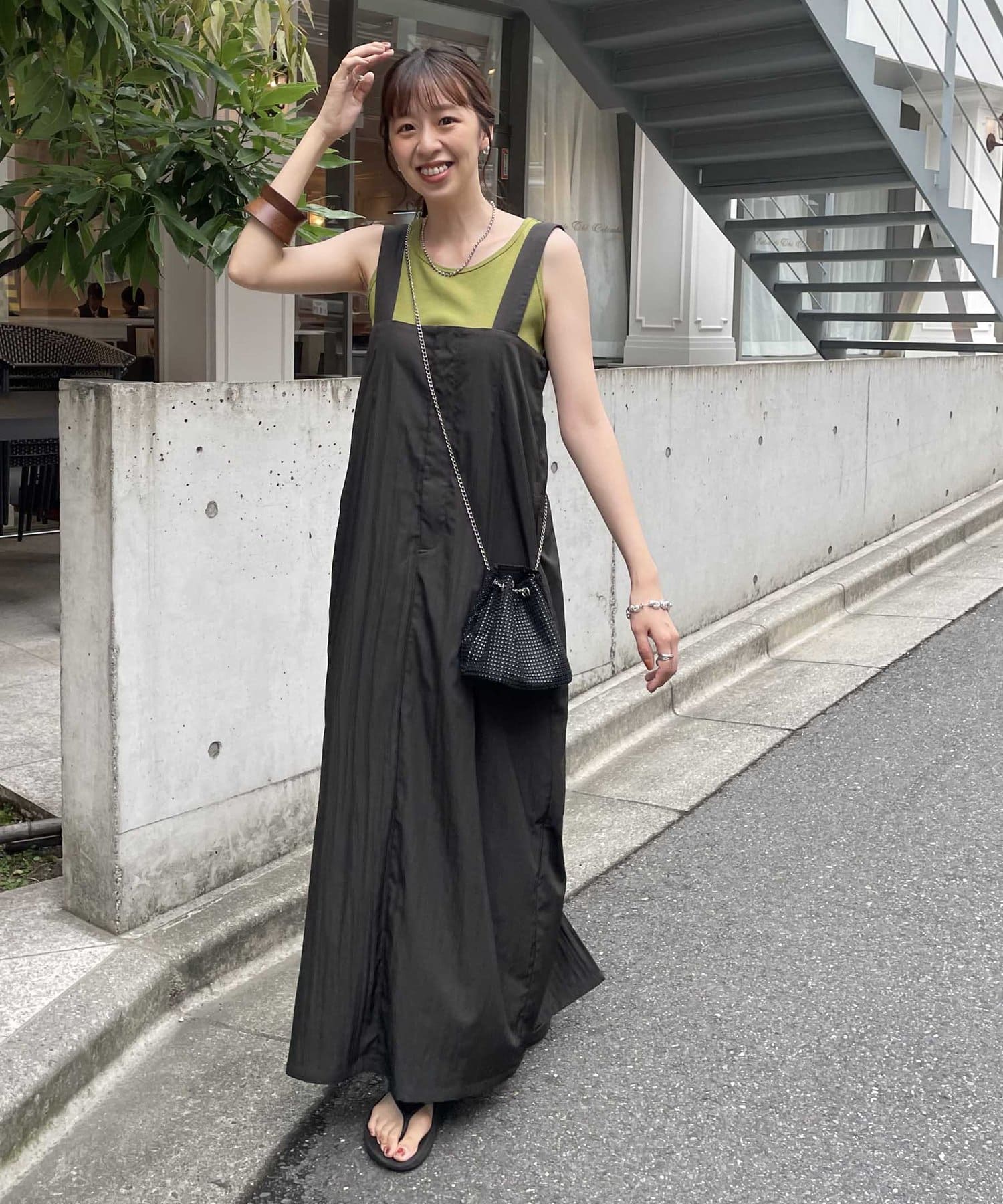 ・162cmスタッフ:ナイロン素材なので、着るだけでカジュアルコーデが完成します!バックスリットのデザインなので歩きやすいですよ◎