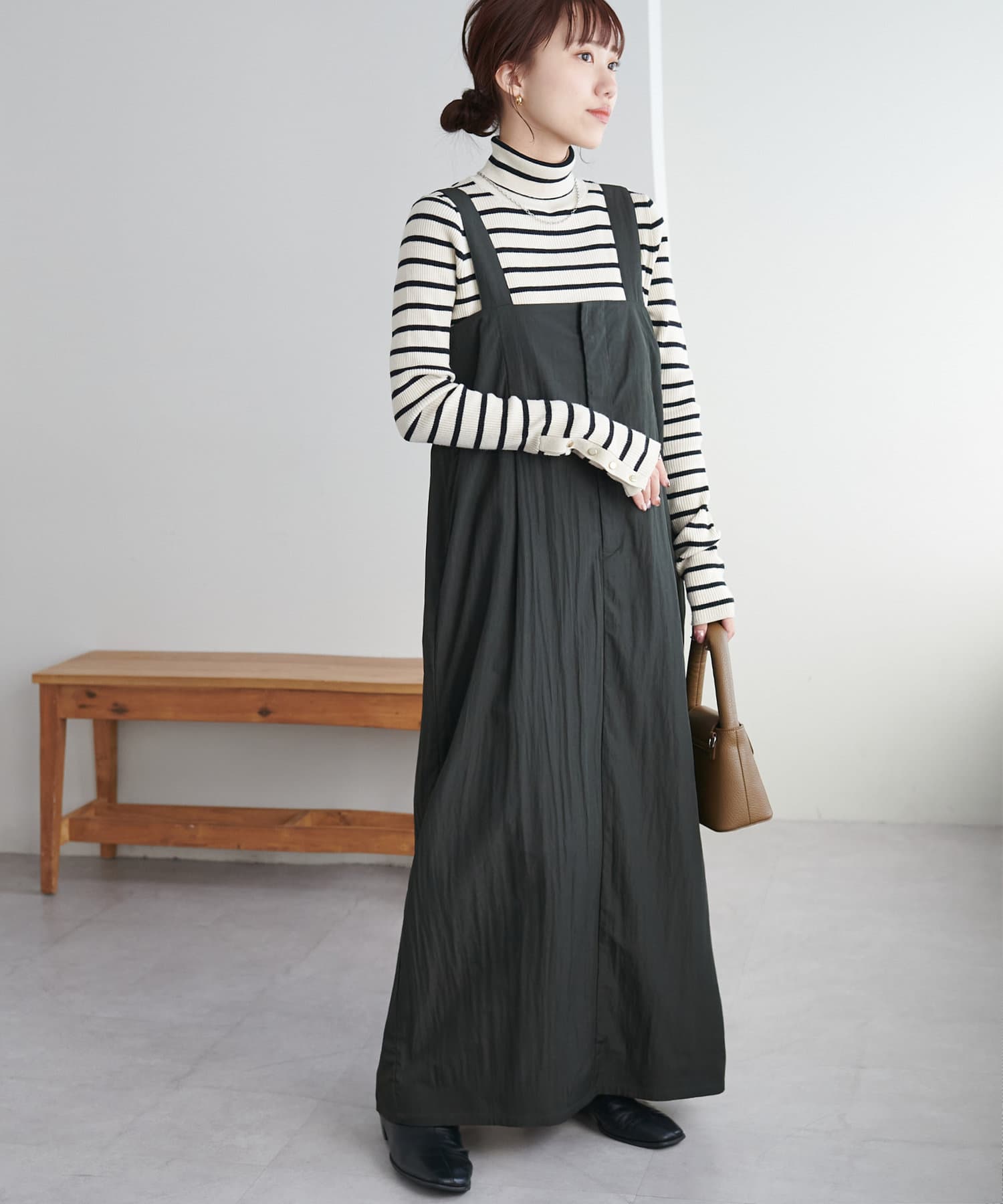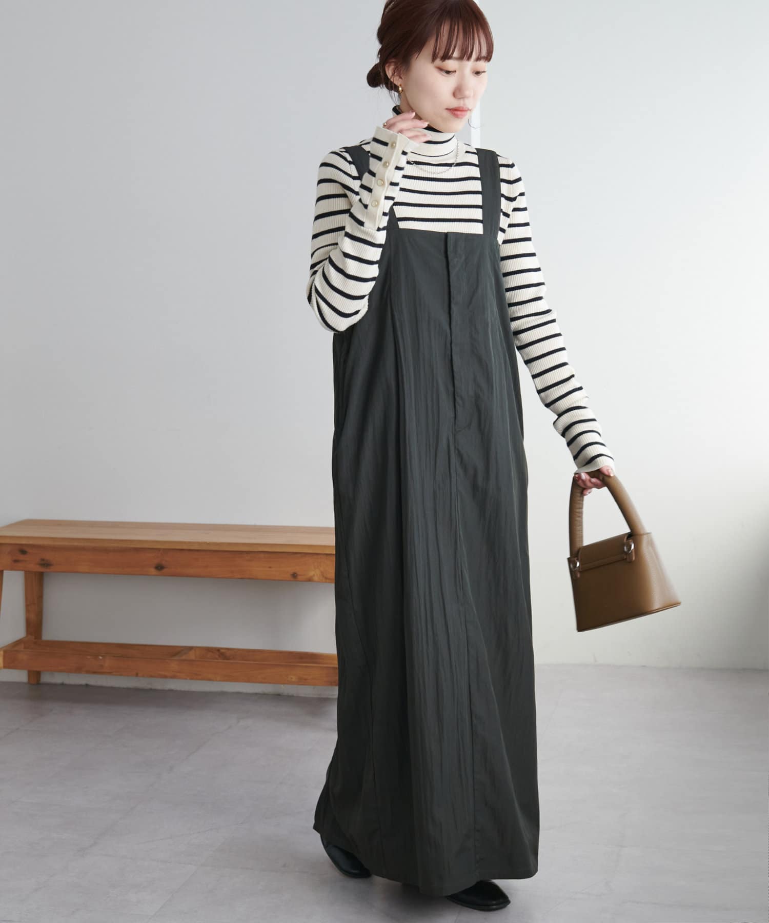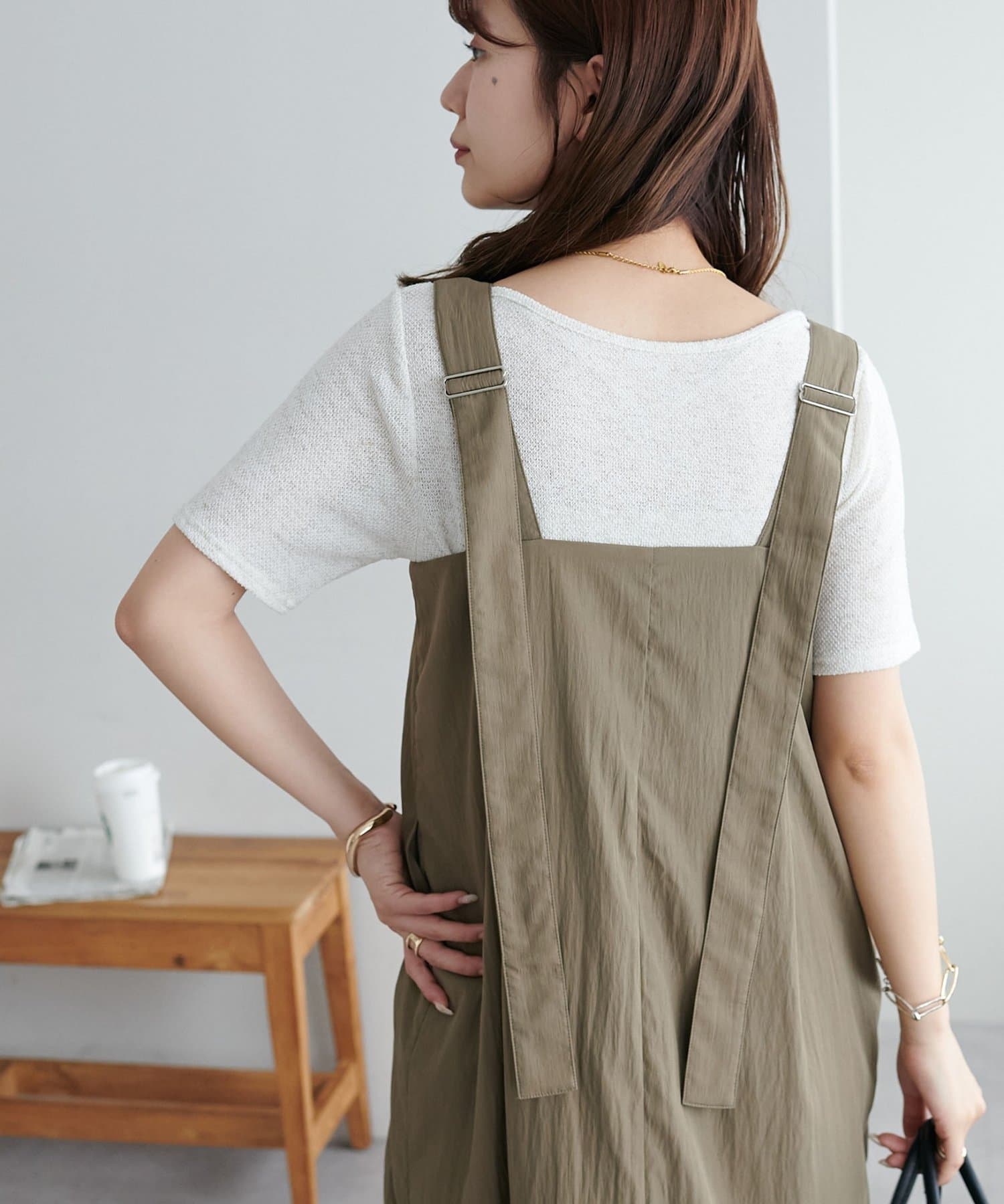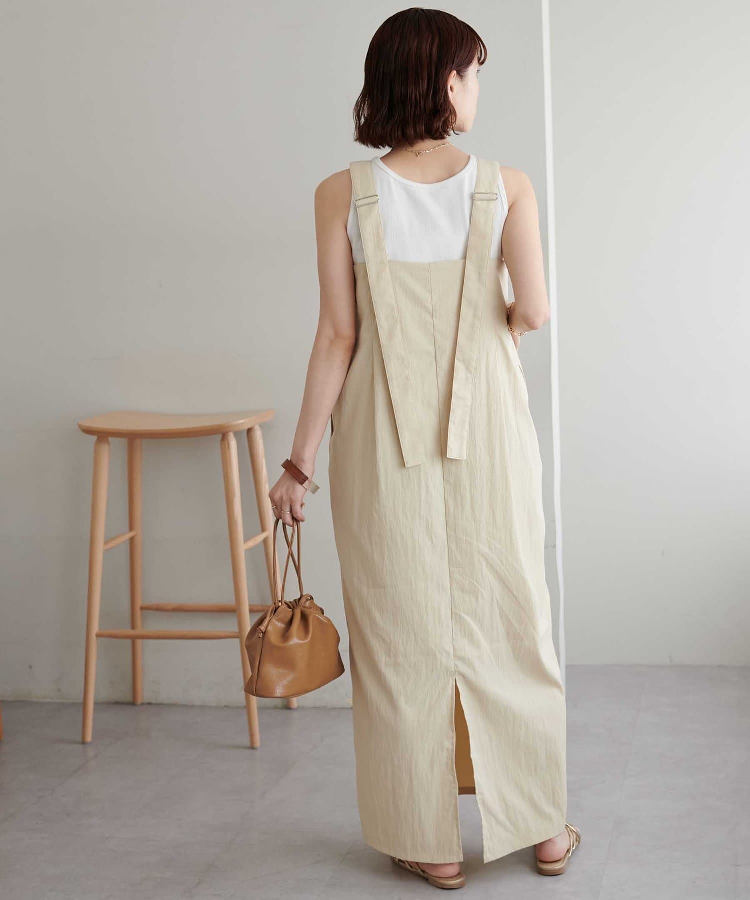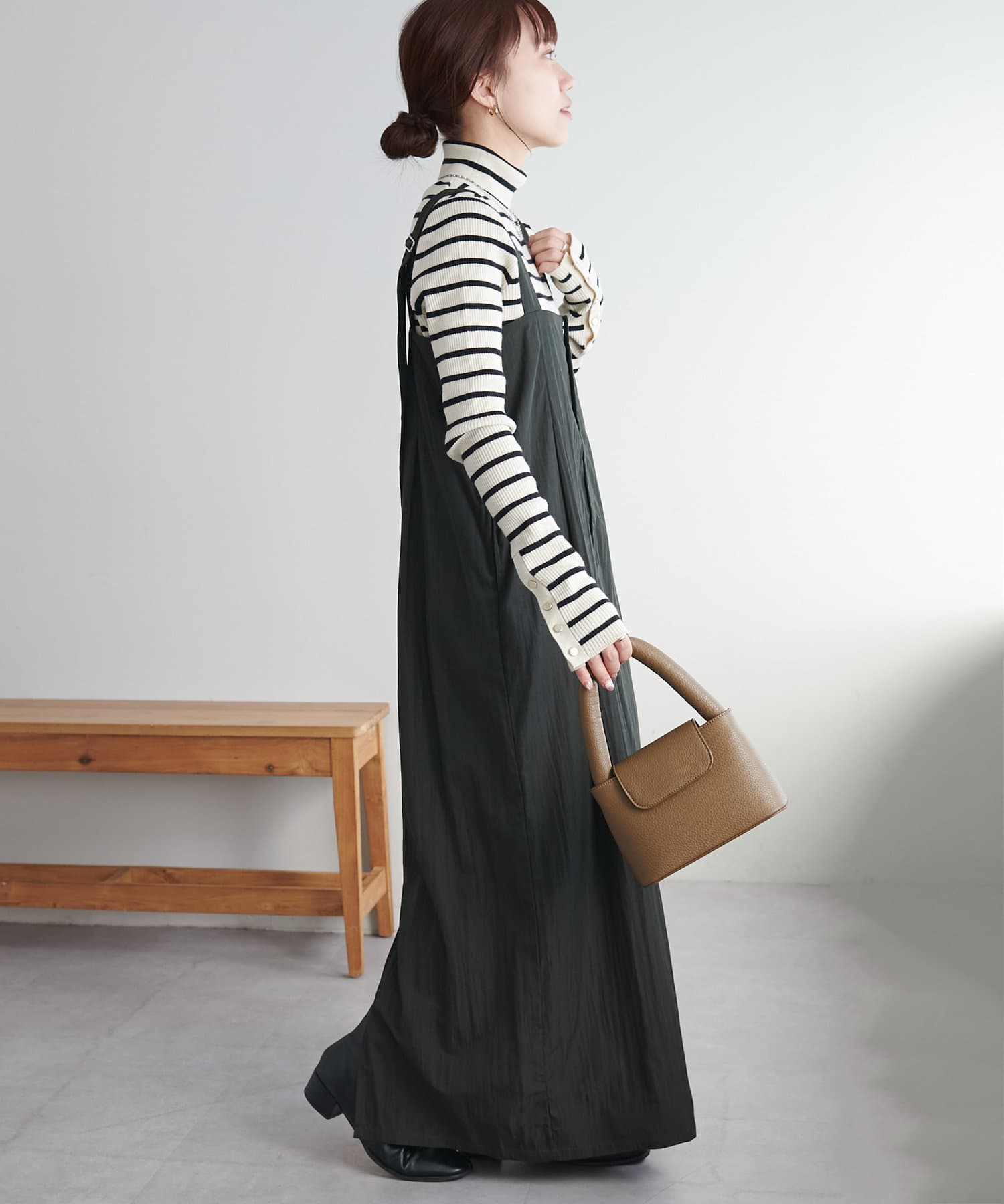 ・162cmスタッフ:ナイロン素材なので、着るだけでカジュアルコーデが完成します!バックスリットのデザインなので歩きやすいですよ◎