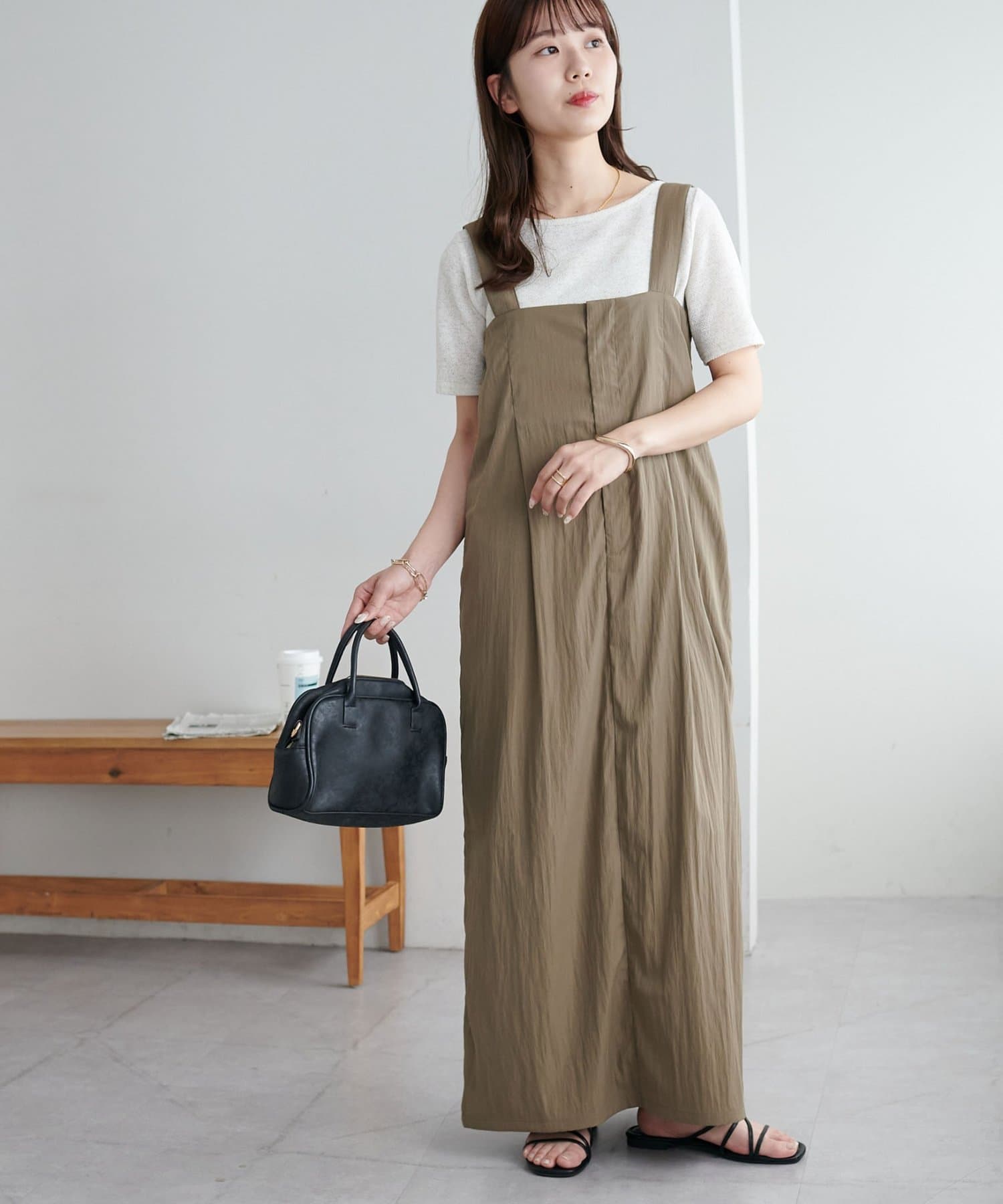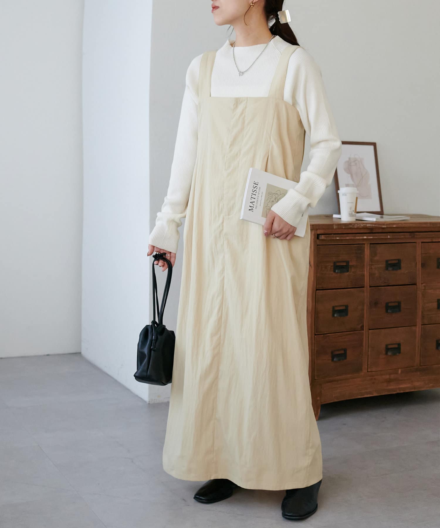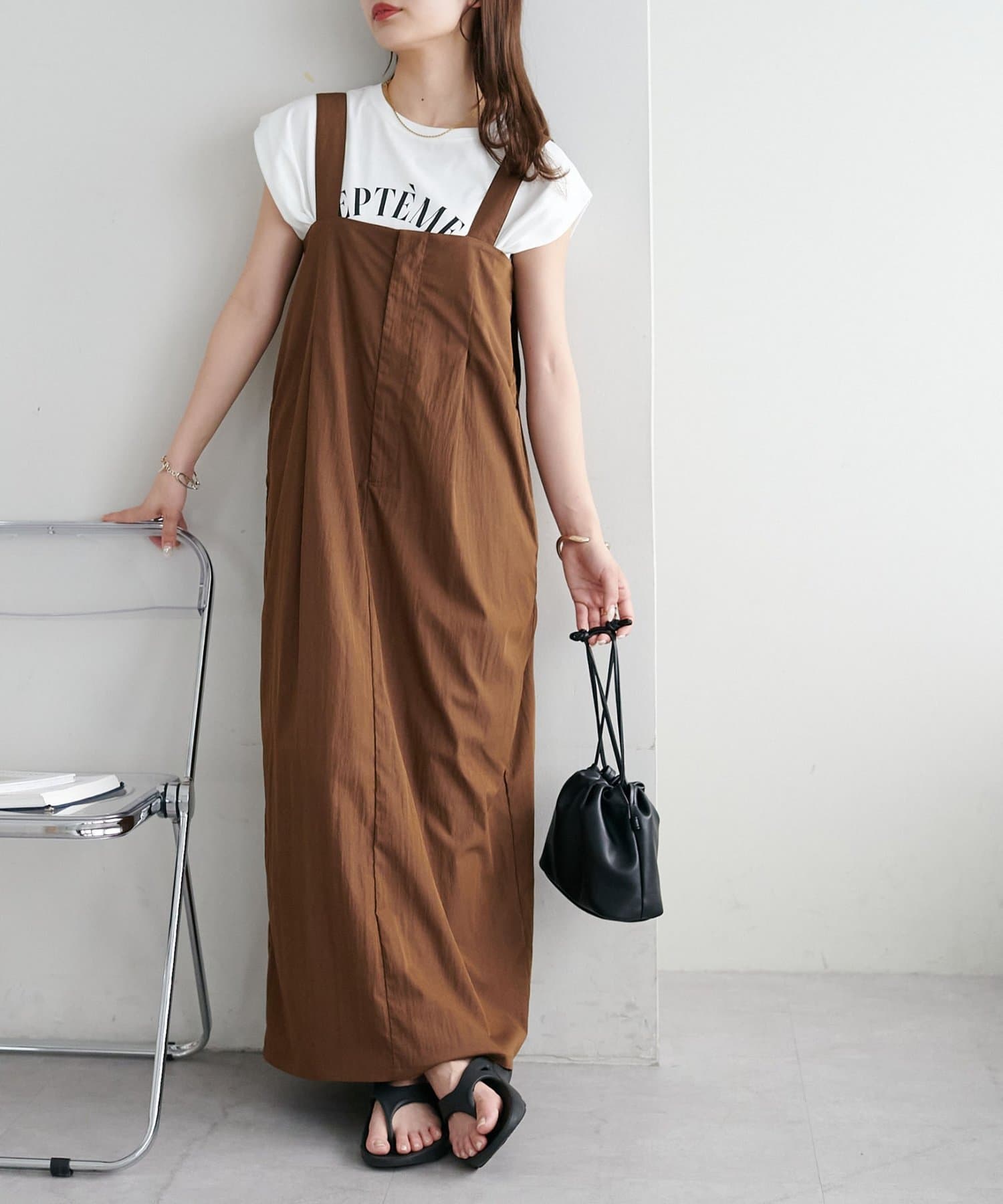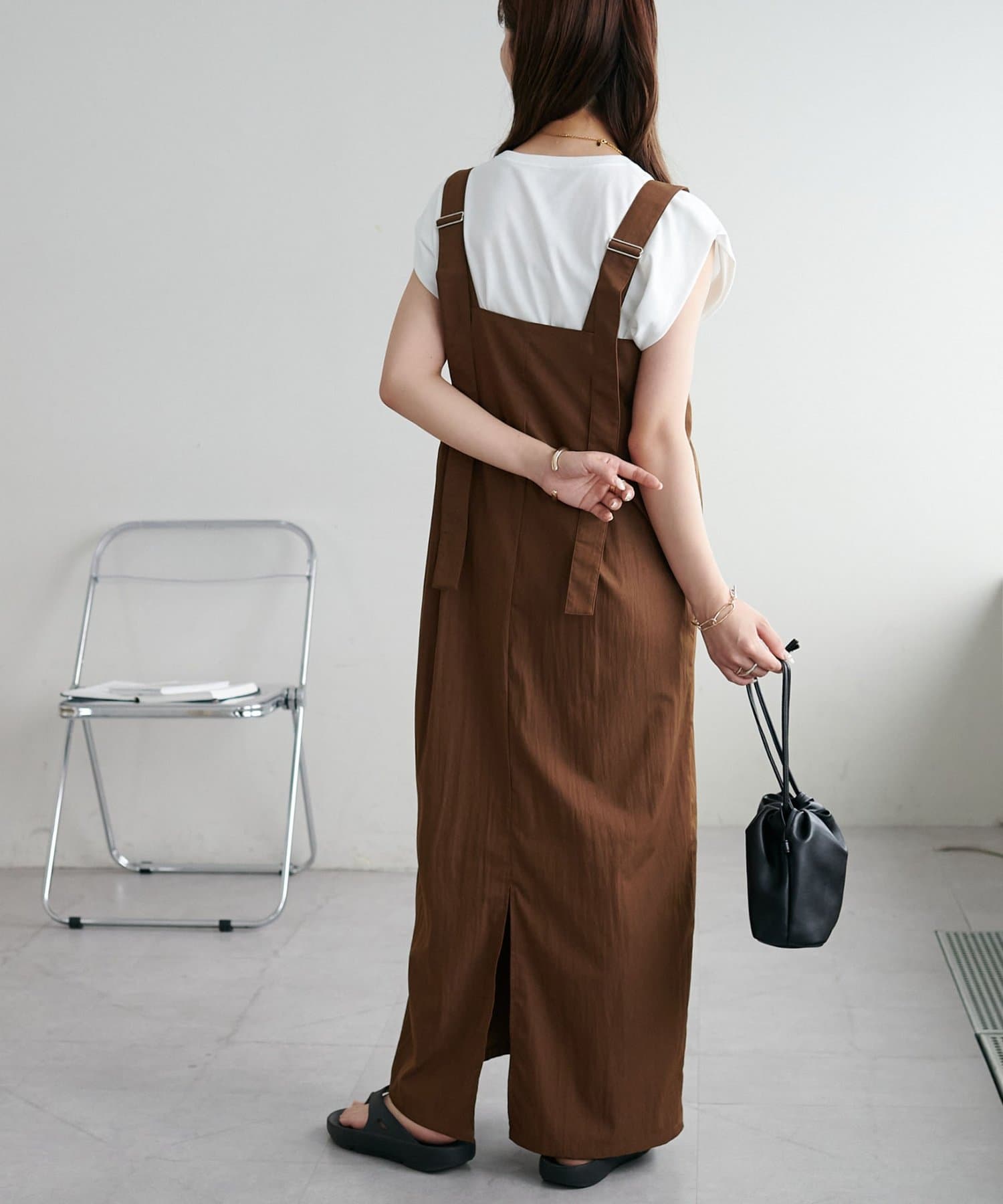 ・162cmスタッフ:ナイロン素材なので、着るだけでカジュアルコーデが完成します!バックスリットのデザインなので歩きやすいですよ◎