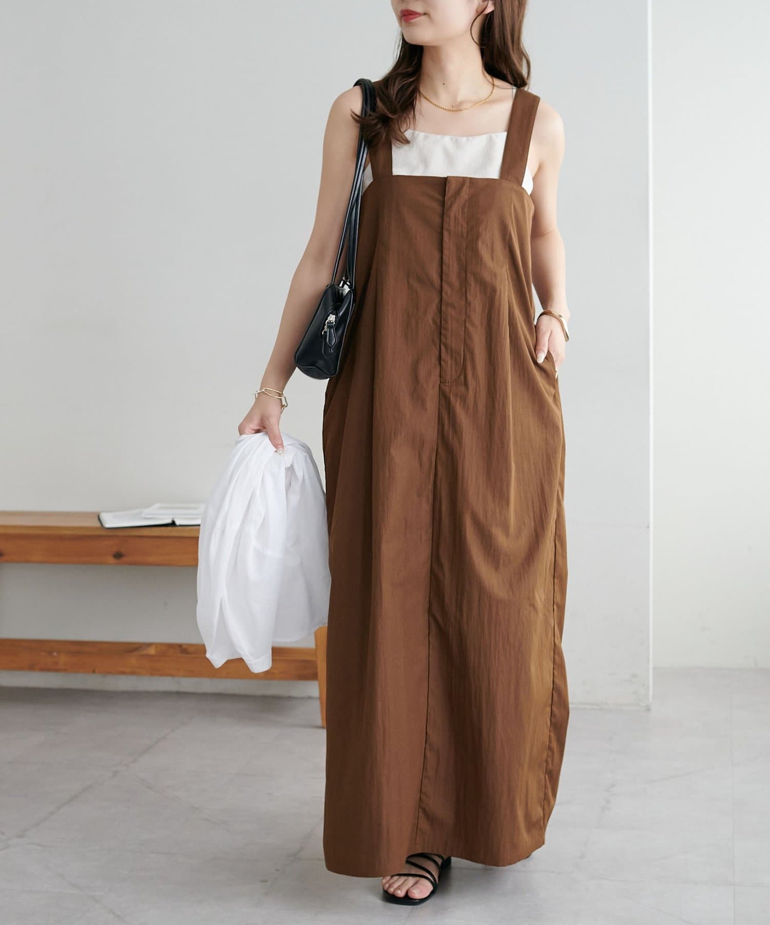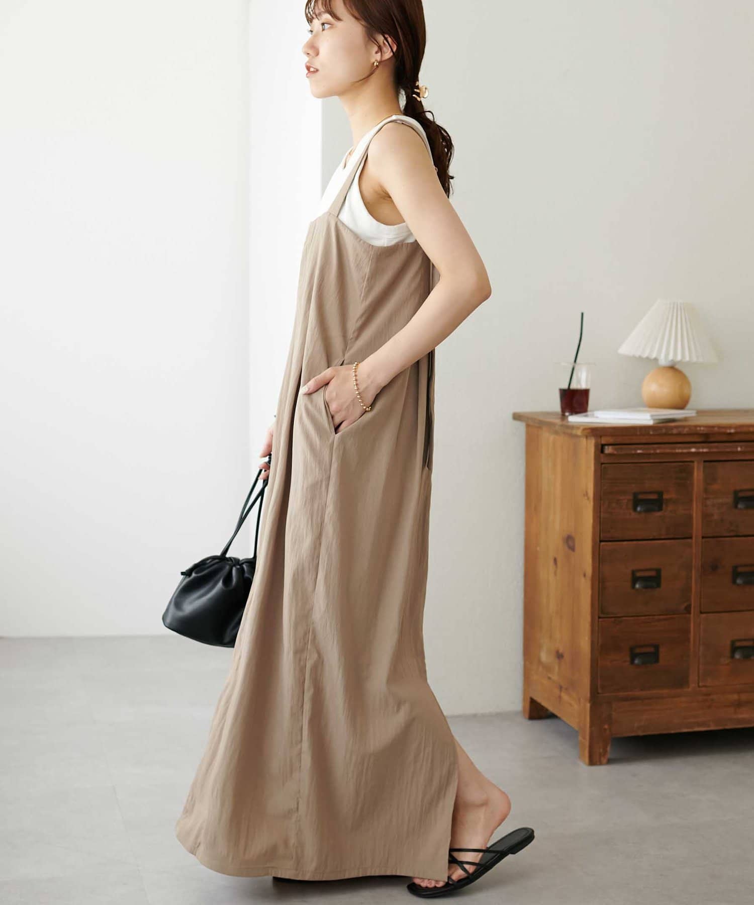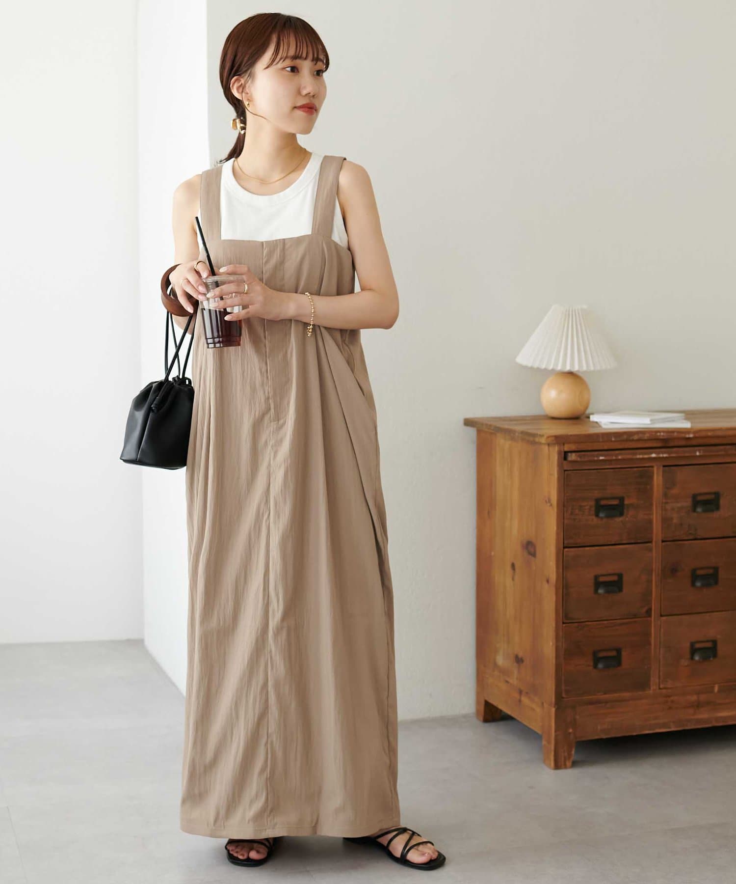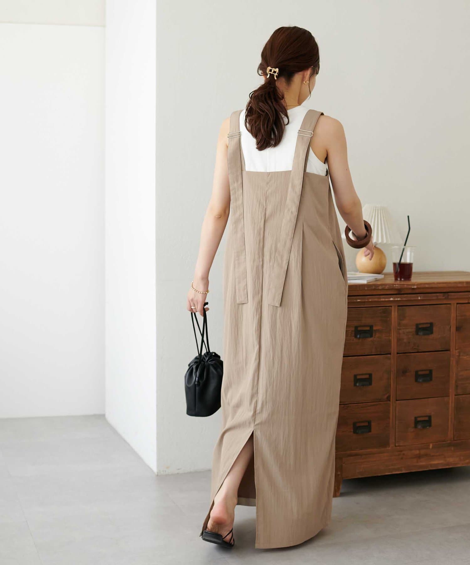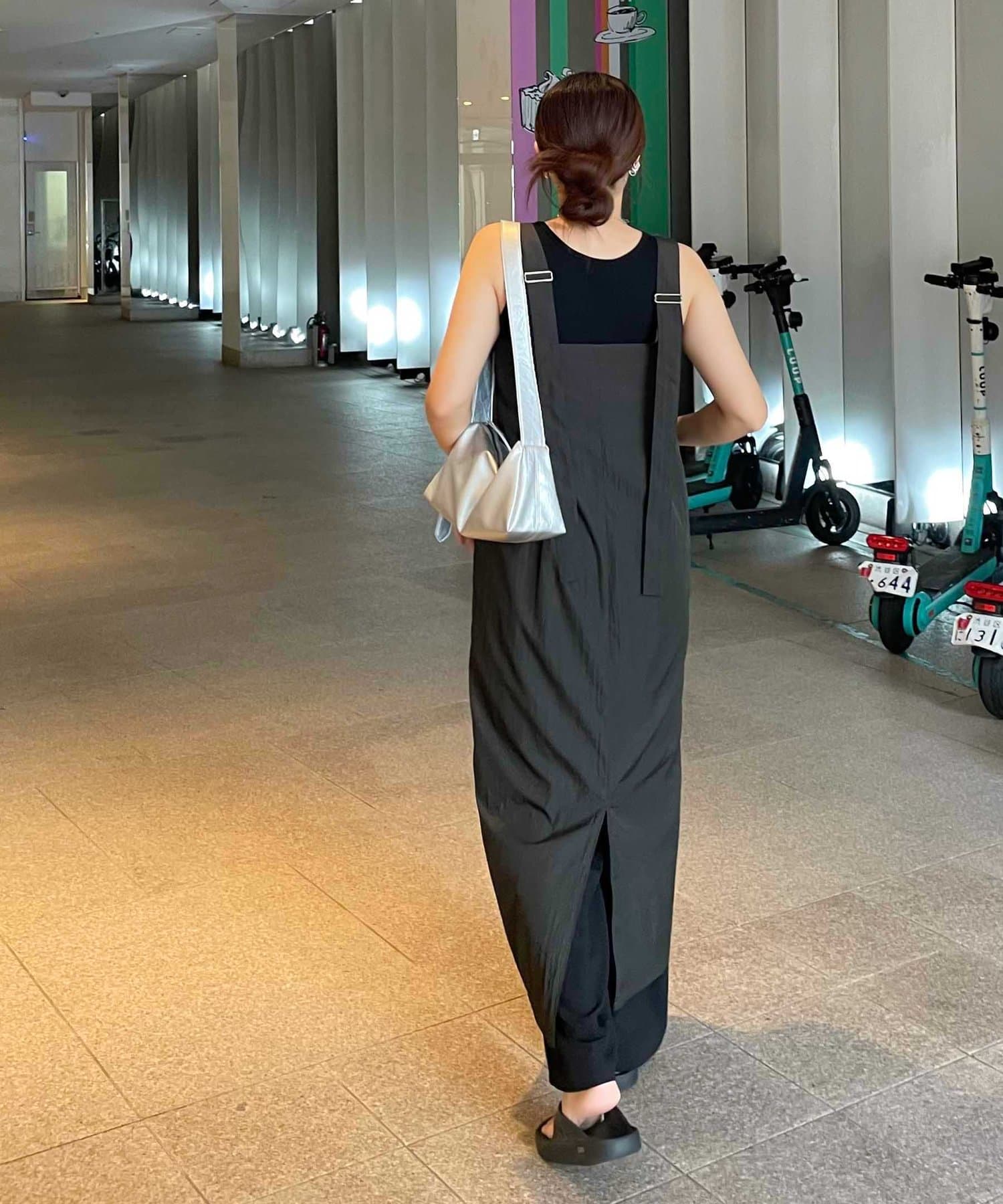 ・162cmスタッフ:ナイロン素材なので、着るだけでカジュアルコーデが完成します!バックスリットのデザインなので歩きやすいですよ◎